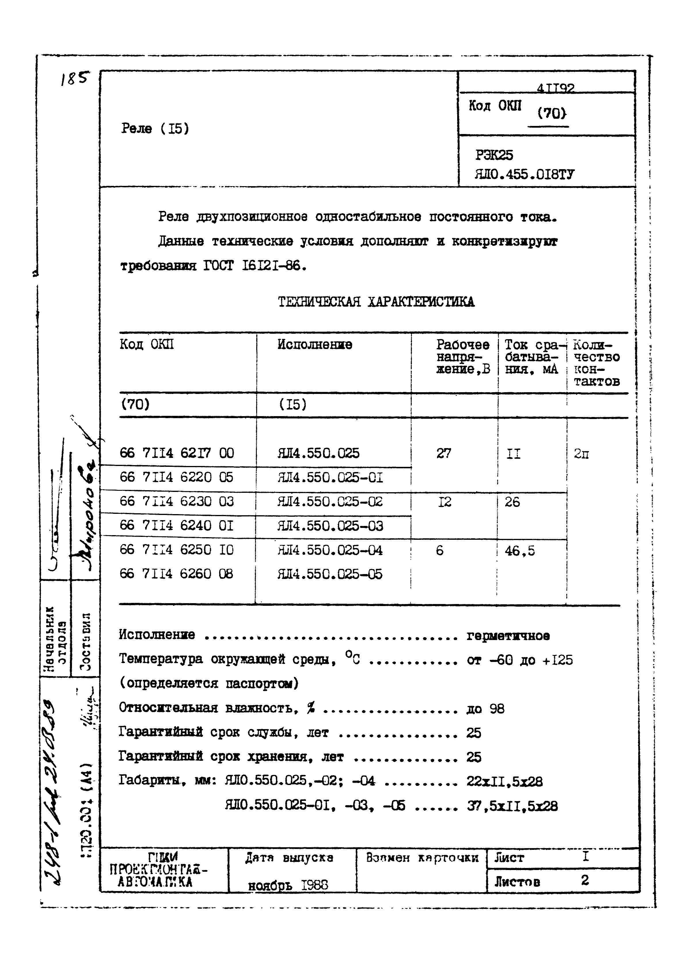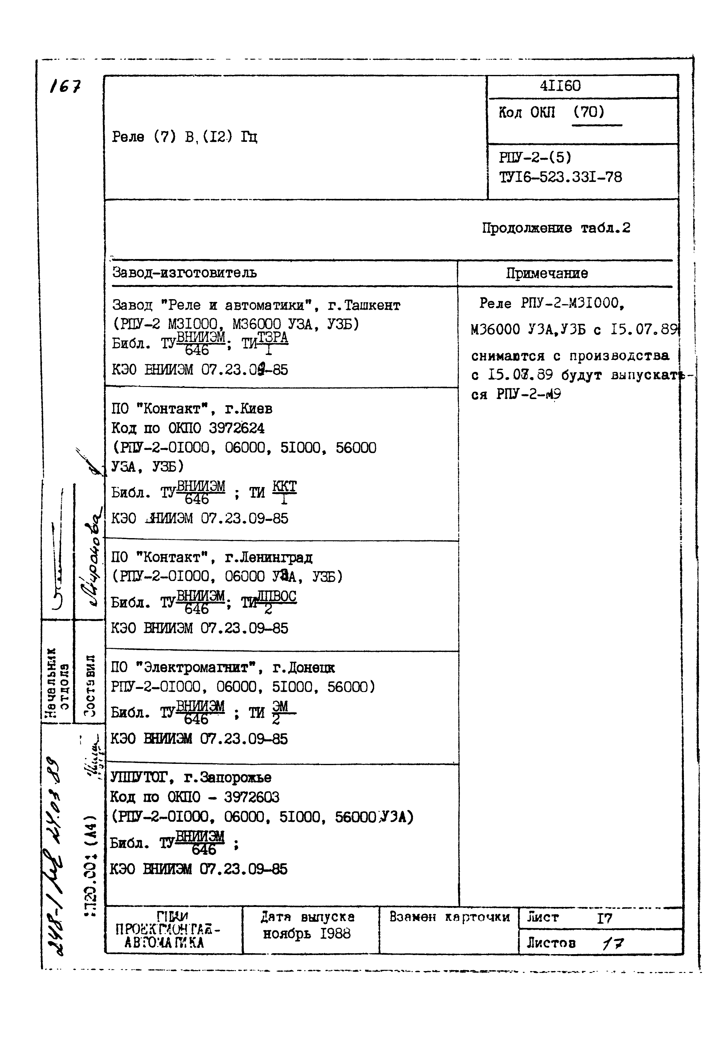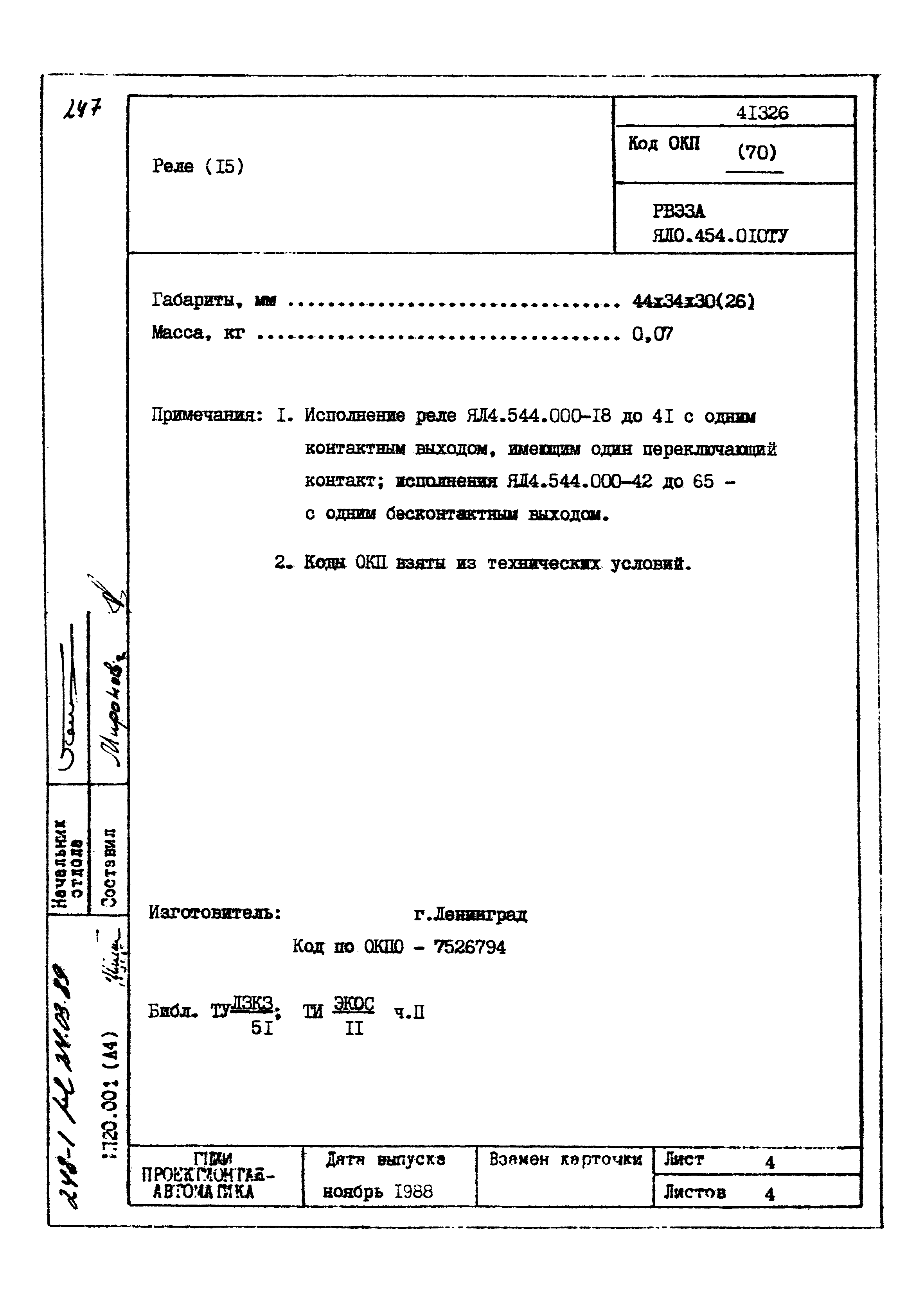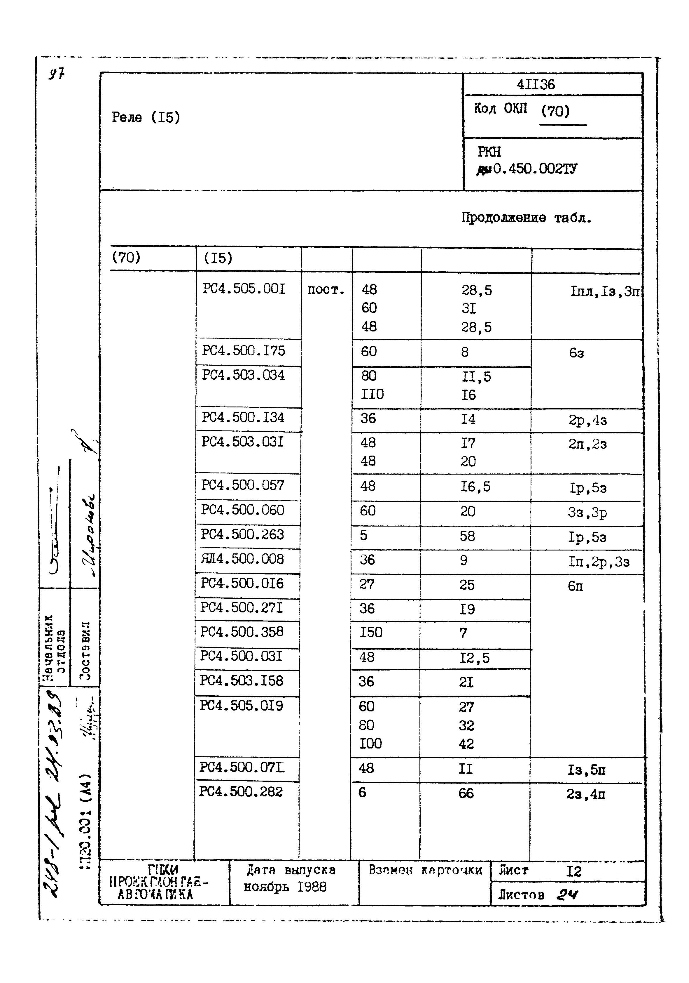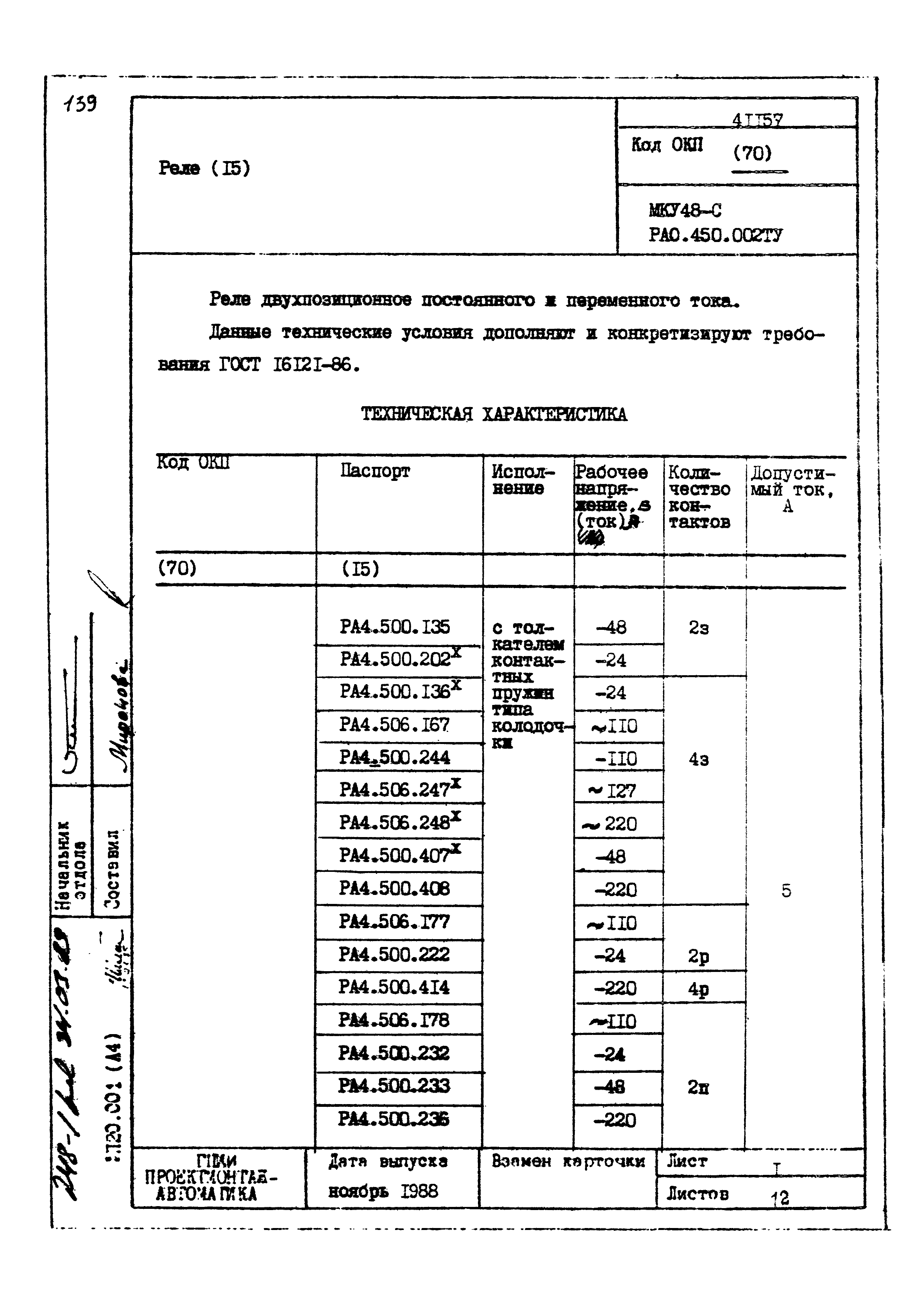 | Заменяет собой: | - «Картотека серийных приборов и средств автоматизации. Раздел 41. Реле контактные двух- и трехпозиционные» (1985 год)