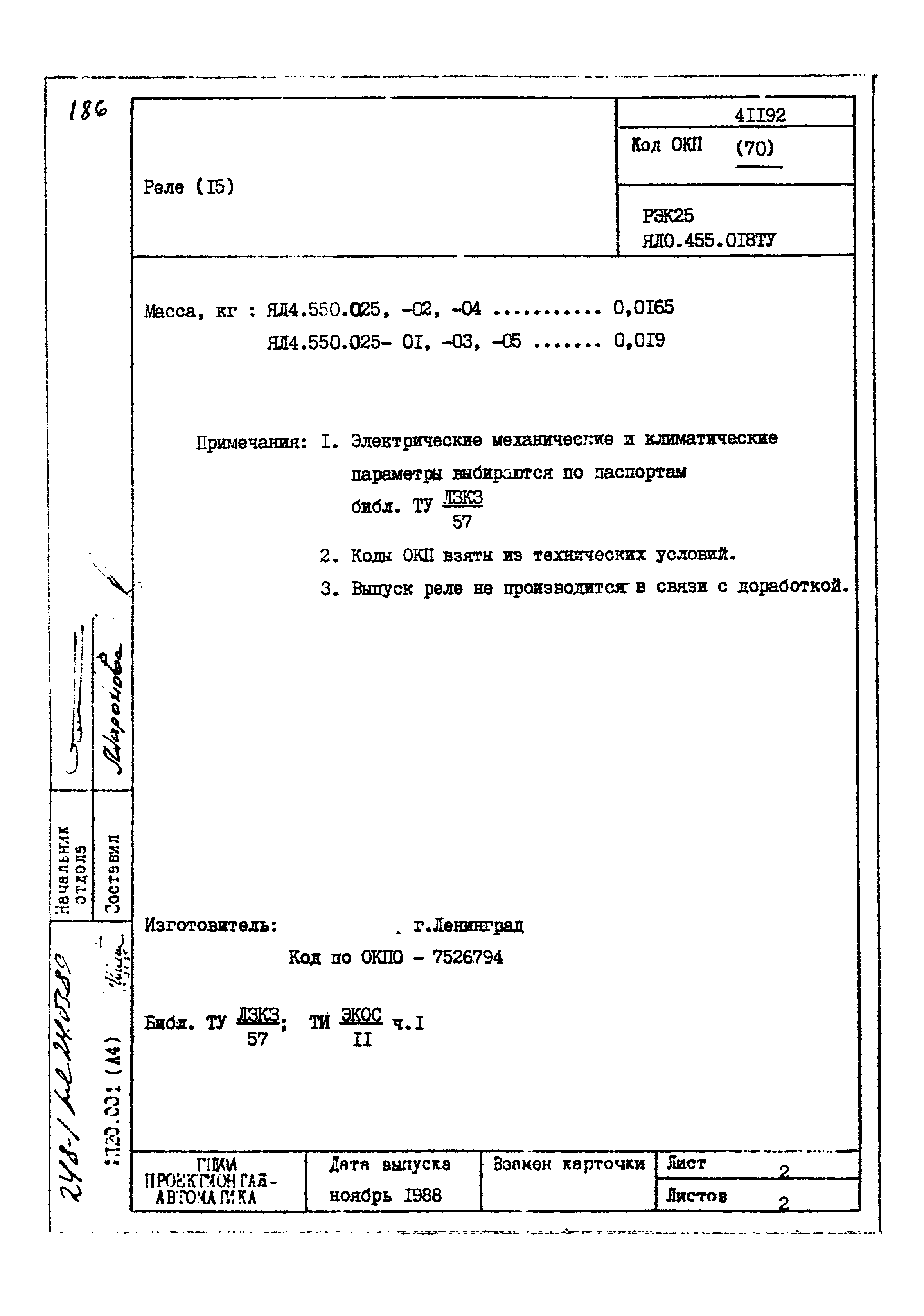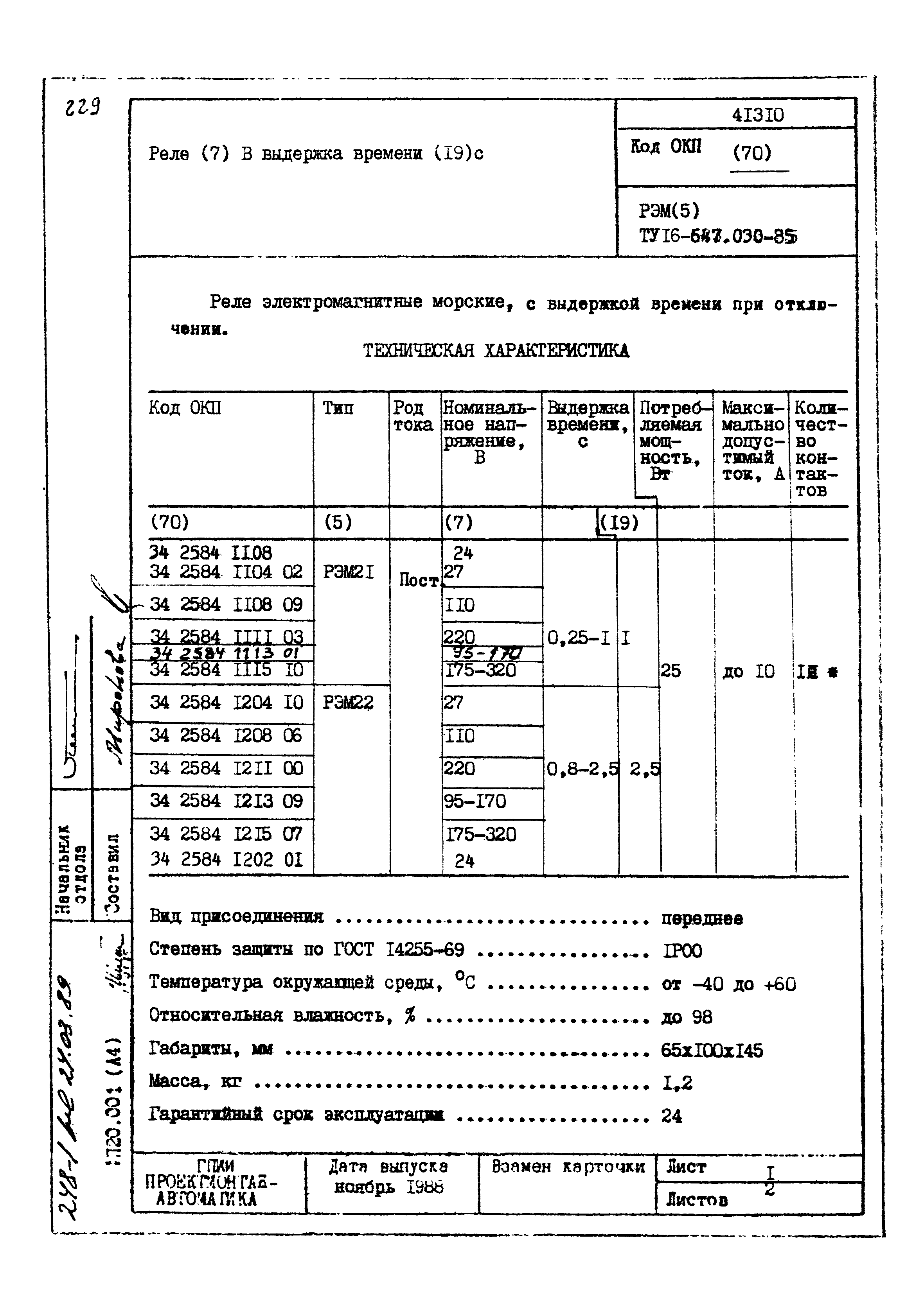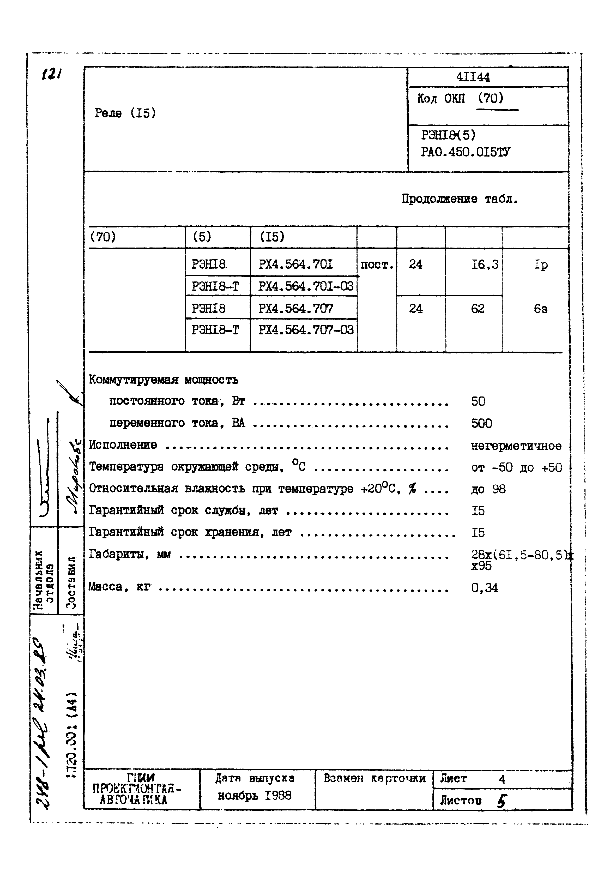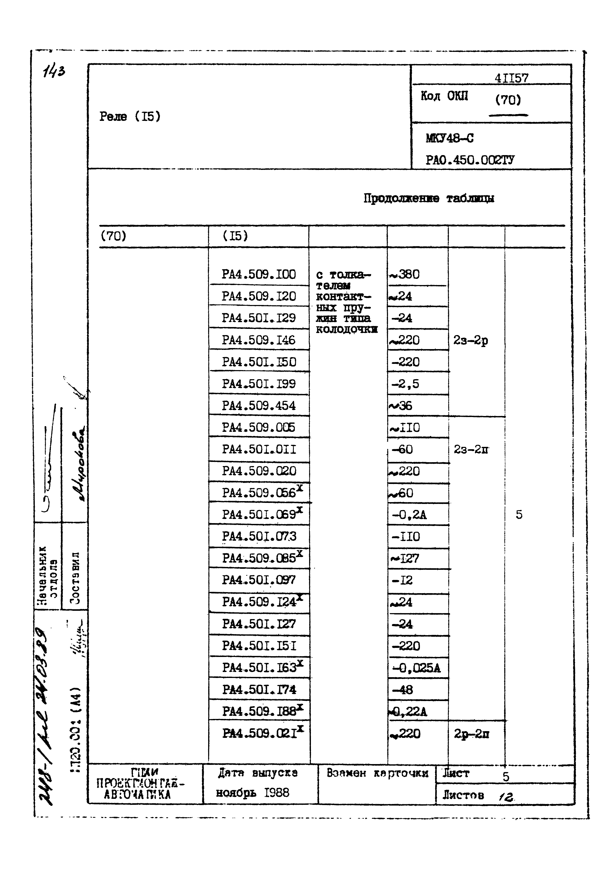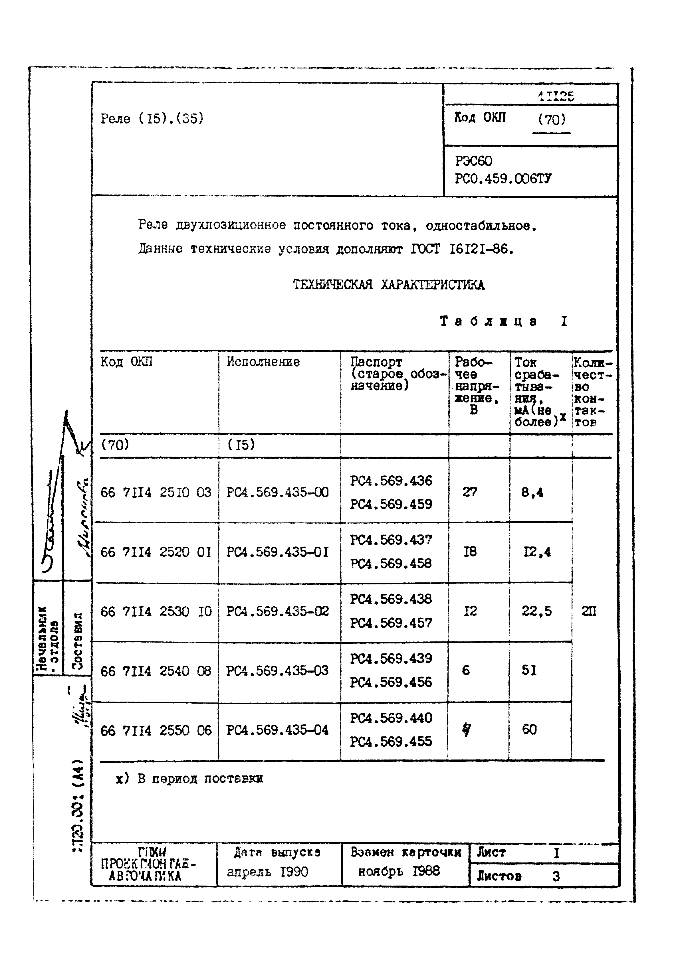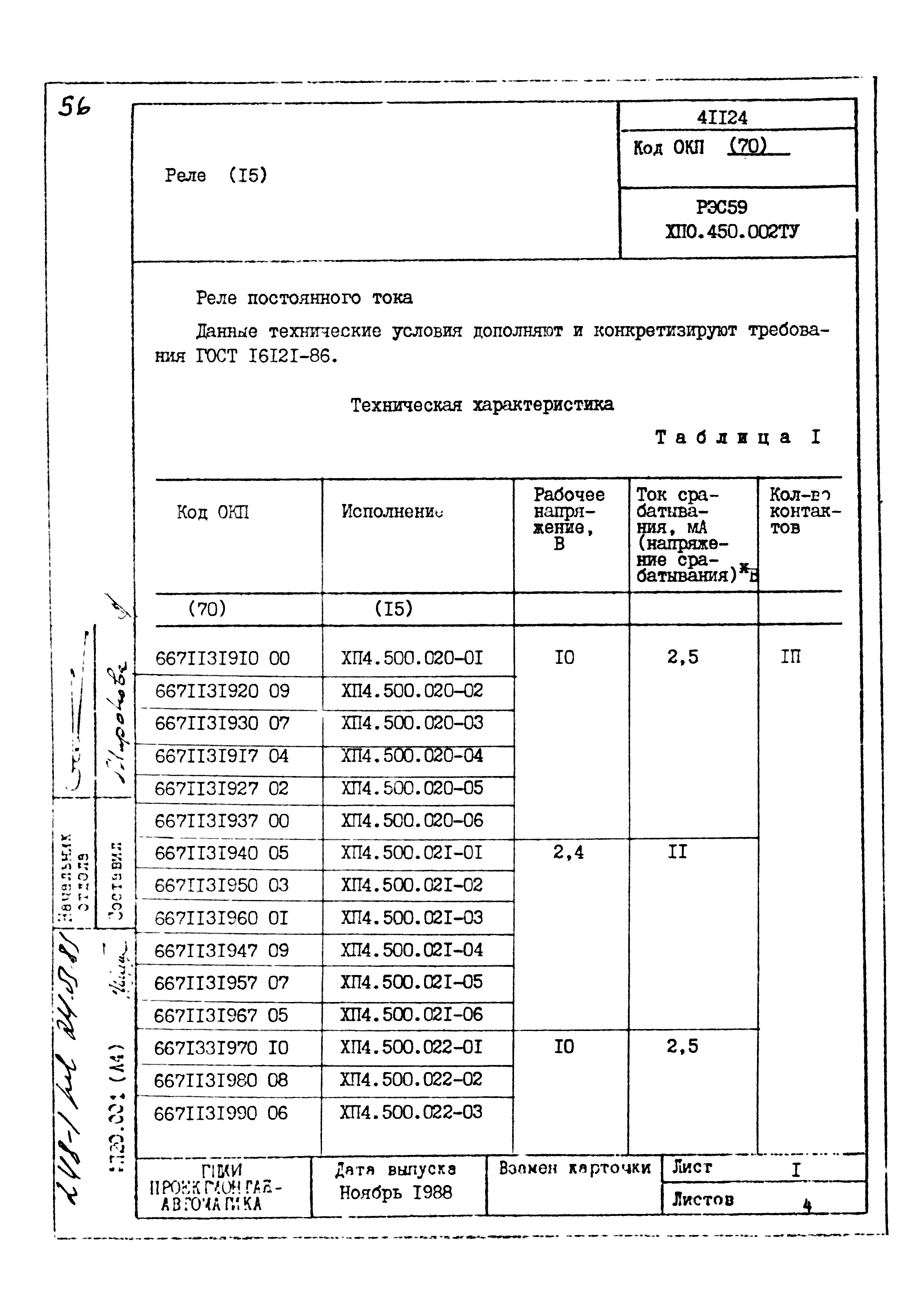 | Заменяет собой: | - «Картотека серийных приборов и средств автоматизации. Раздел 41. Реле контактные двух- и трехпозиционные» (1985 год)