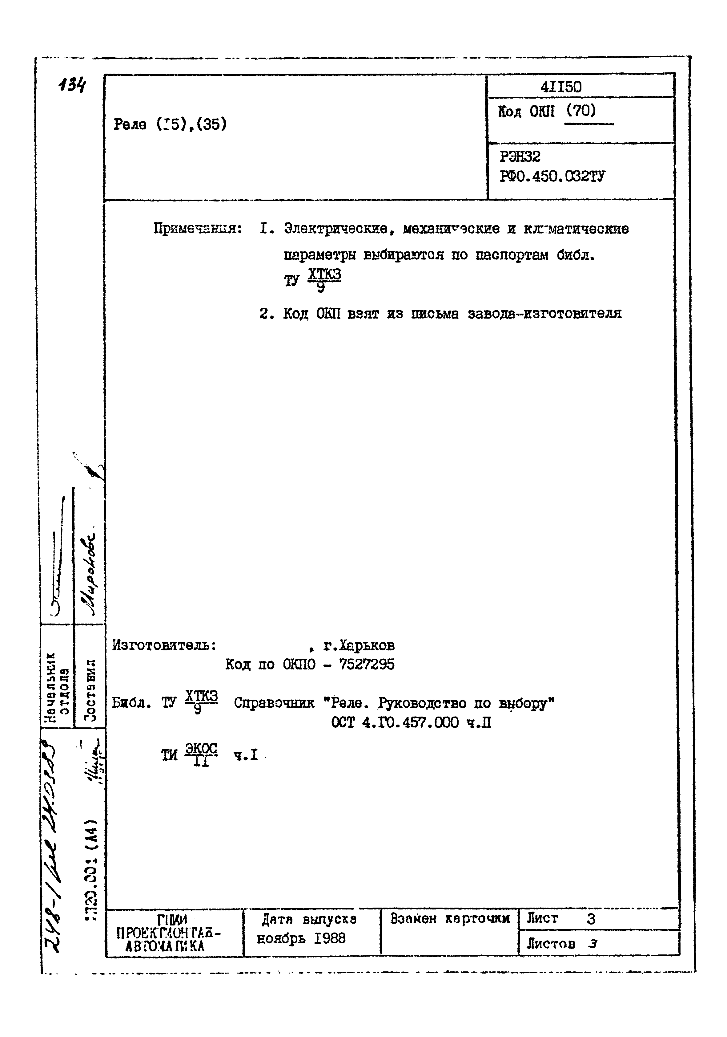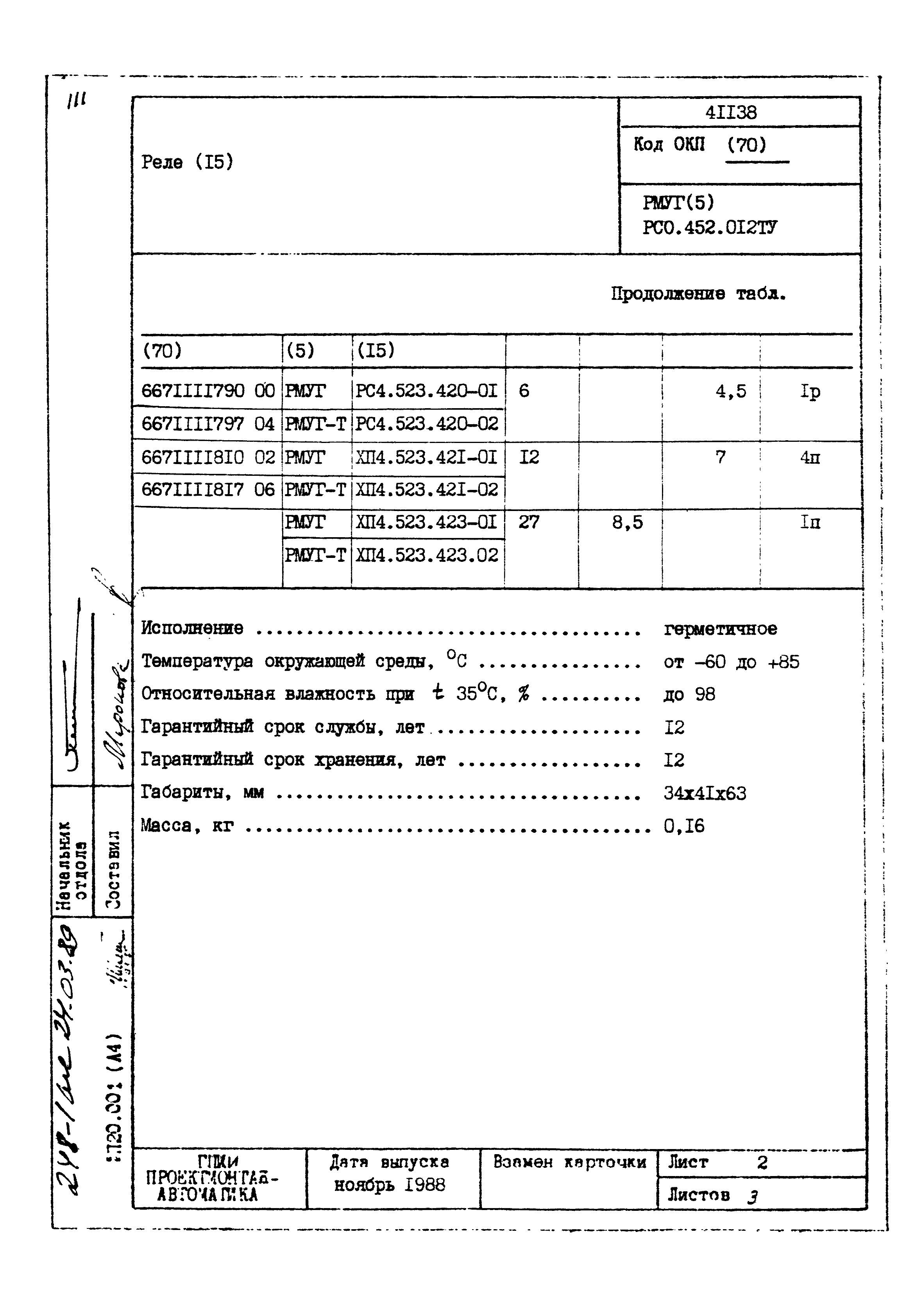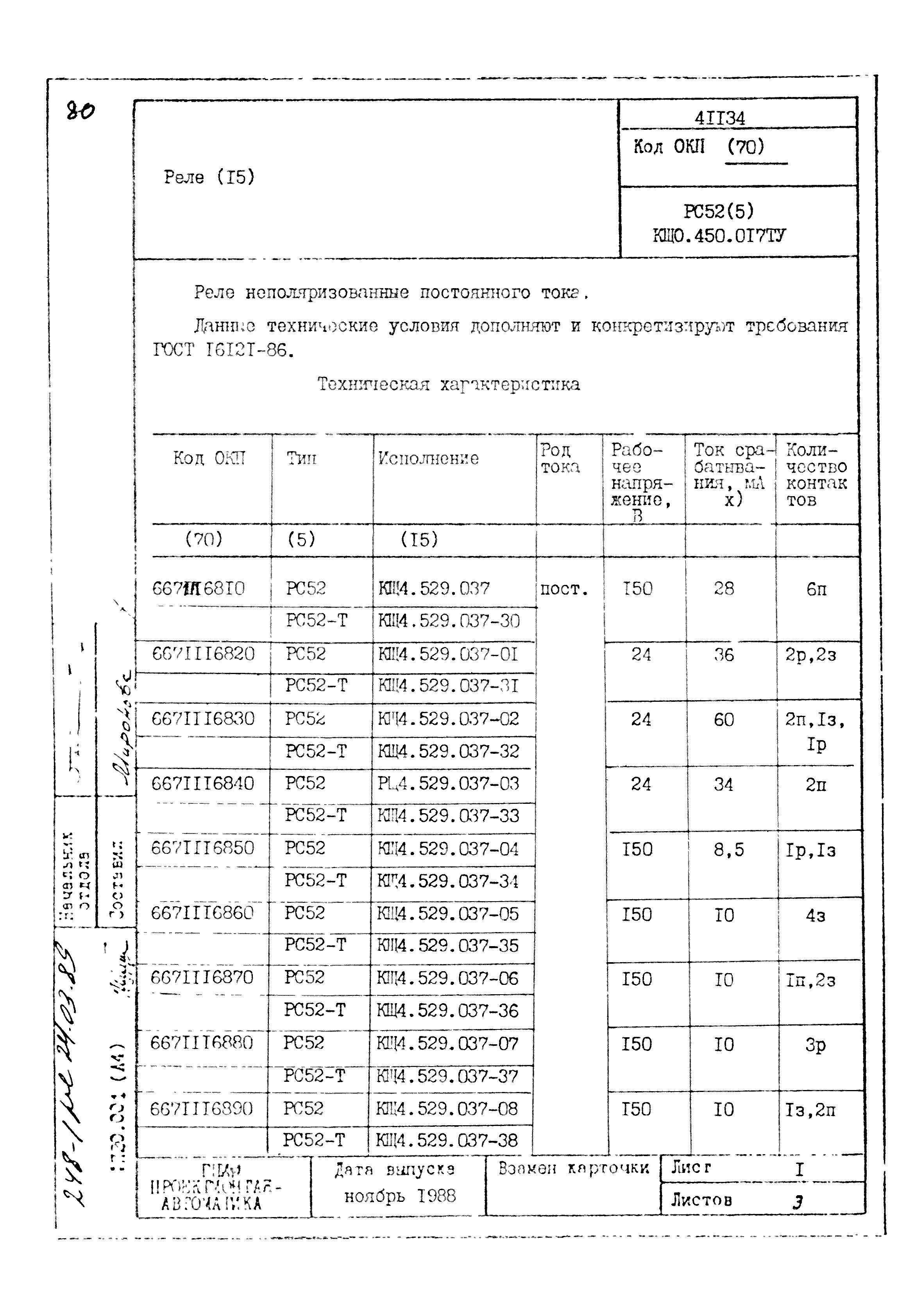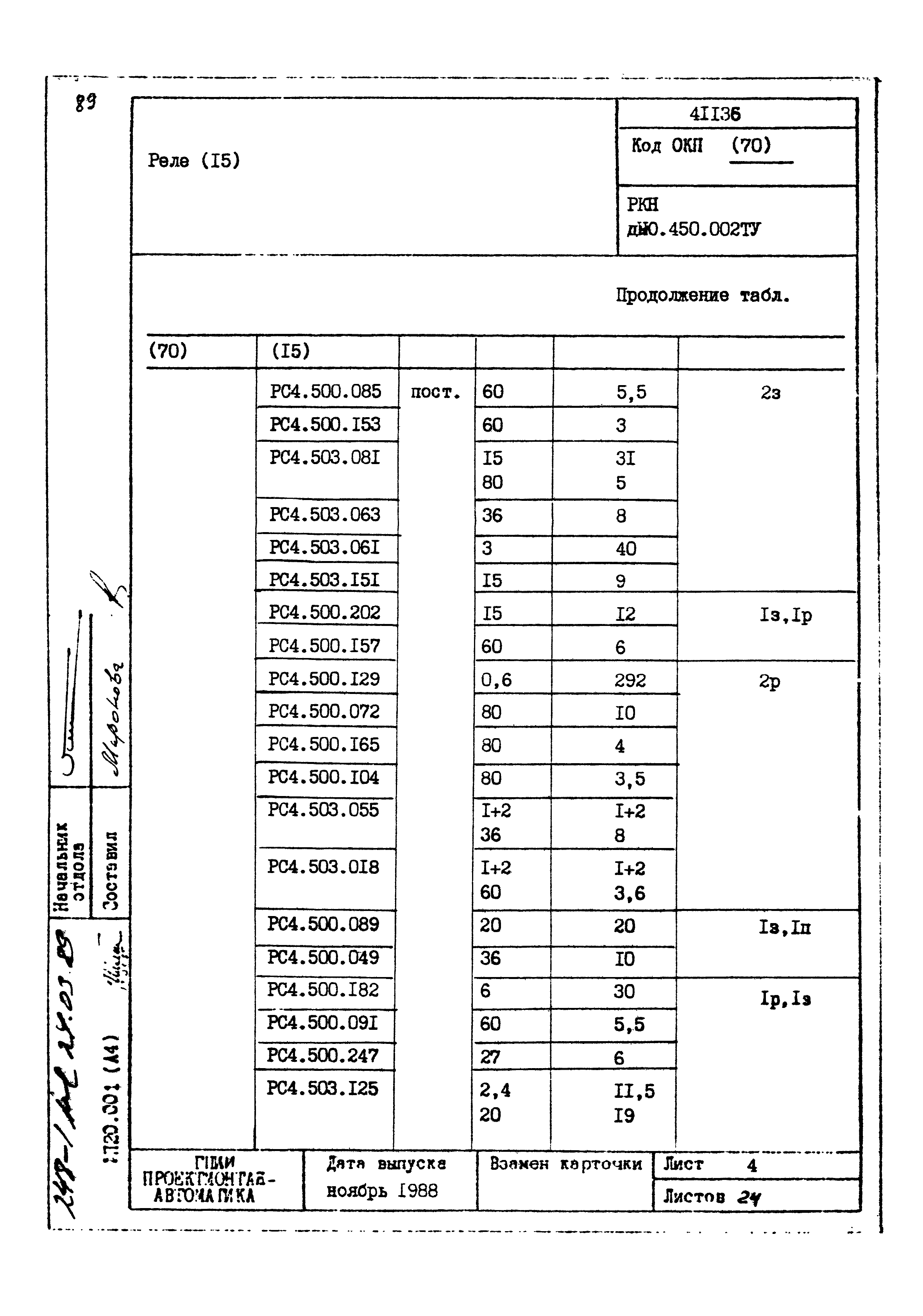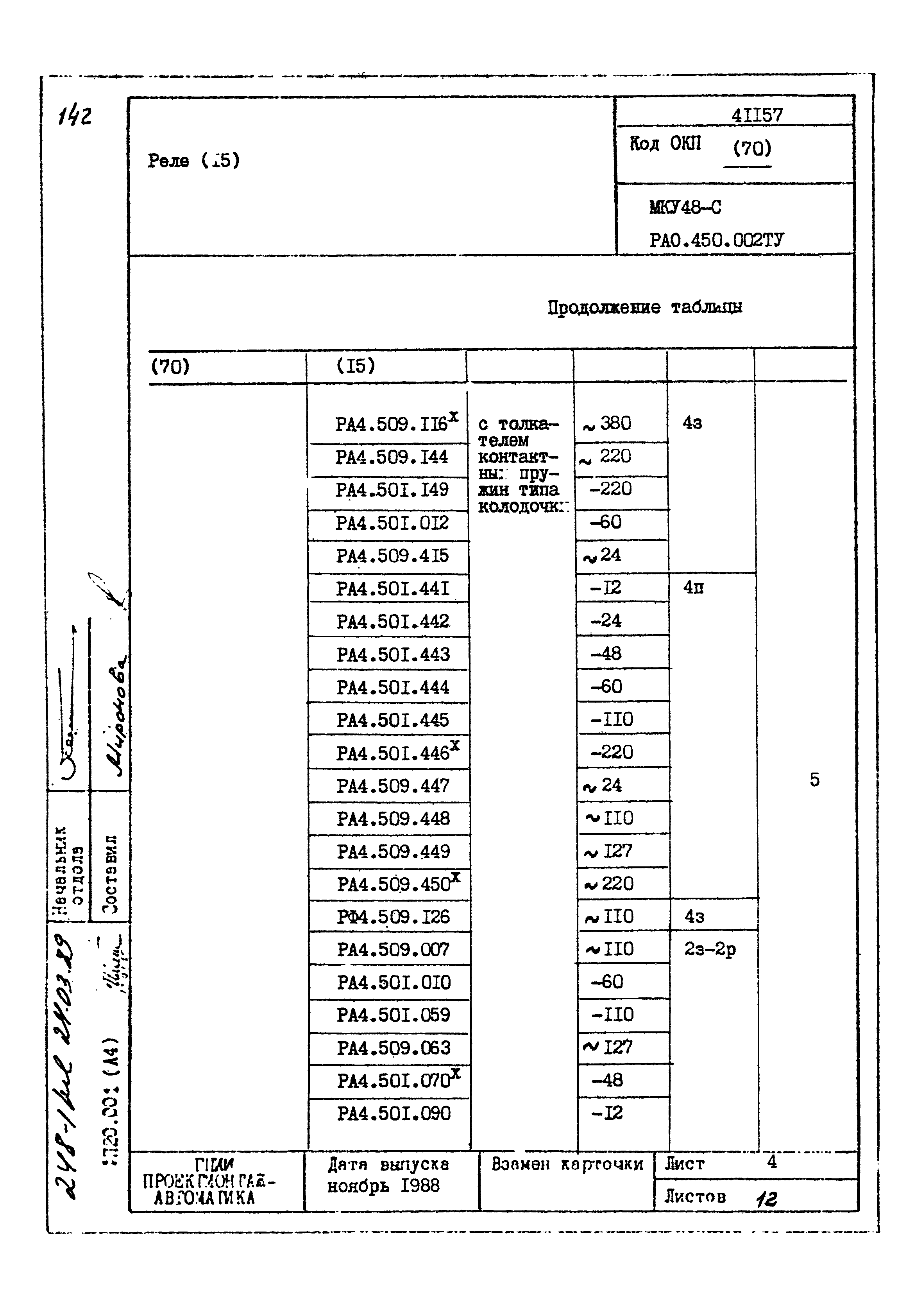 | Заменяет собой: | - «Картотека серийных приборов и средств автоматизации. Раздел 41. Реле контактные двух- и трехпозиционные» (1985 год)