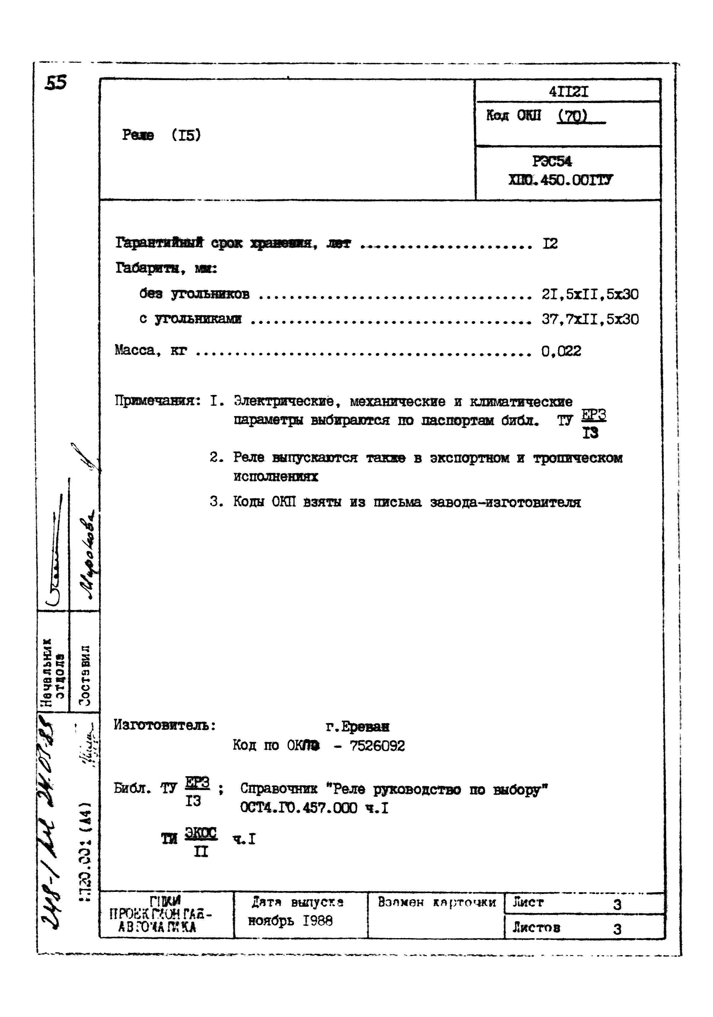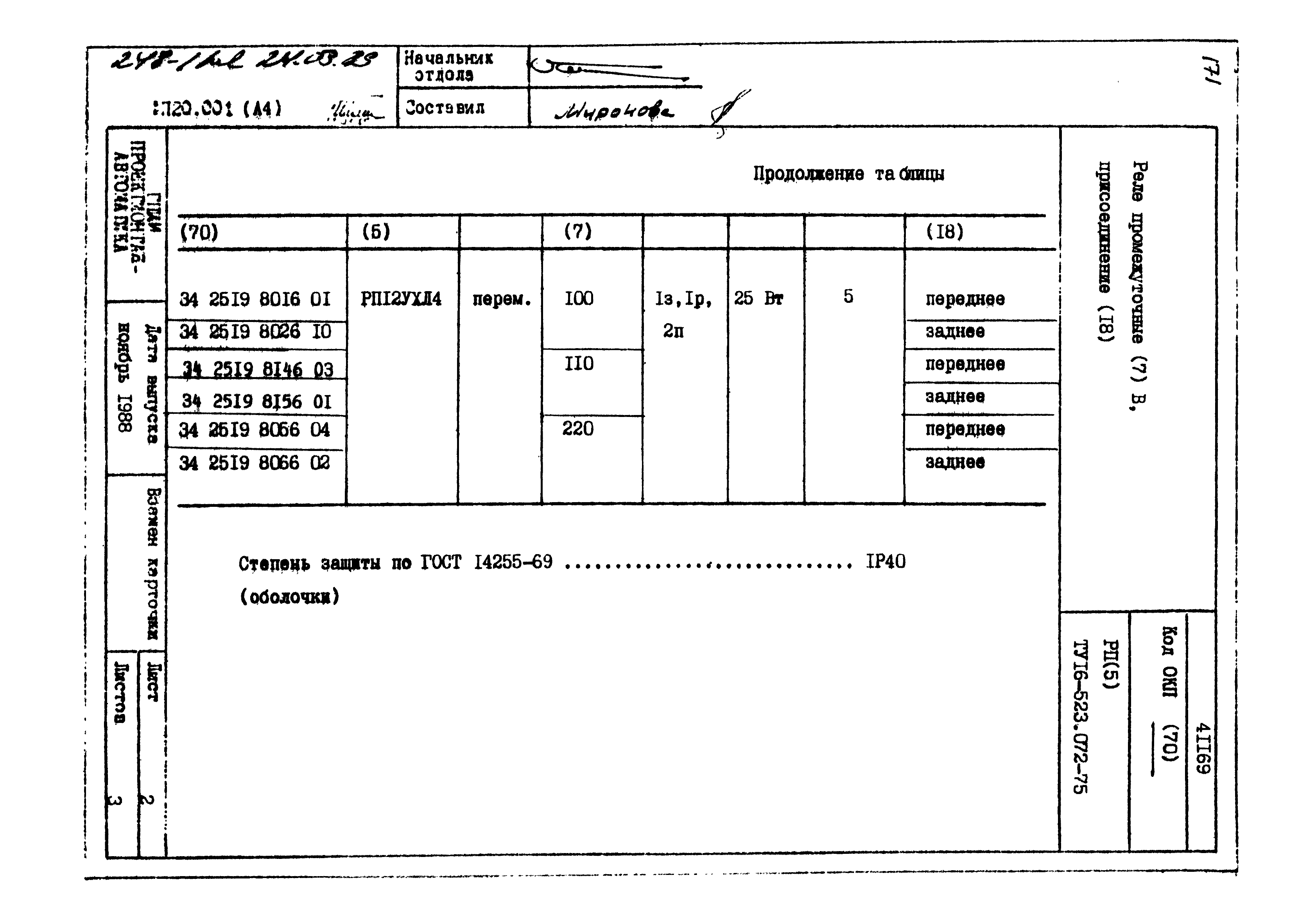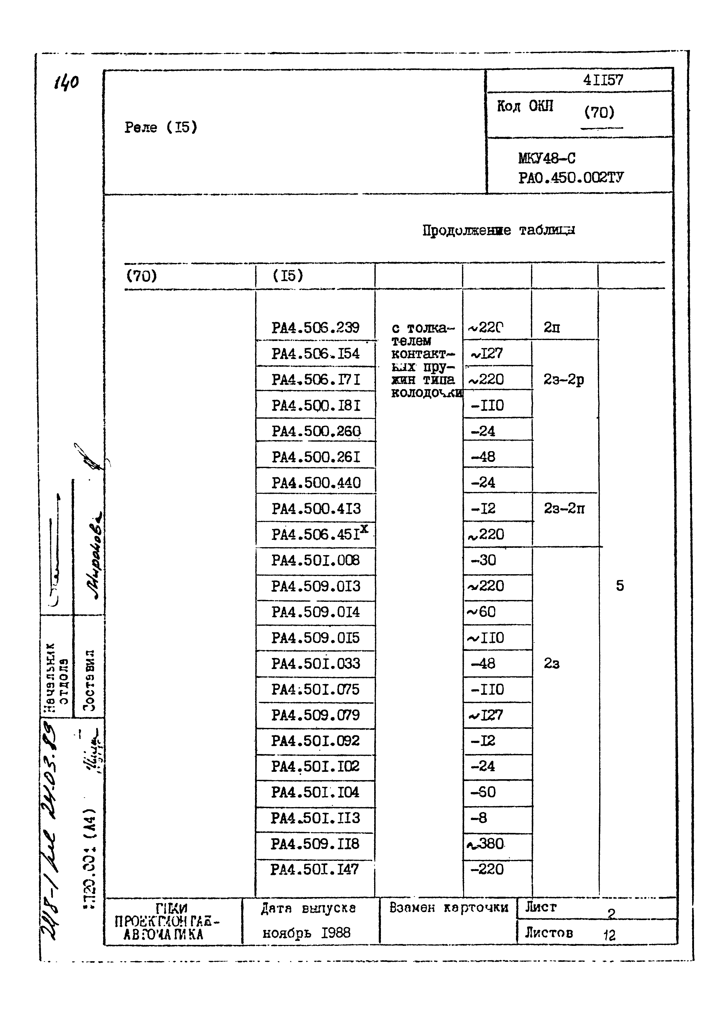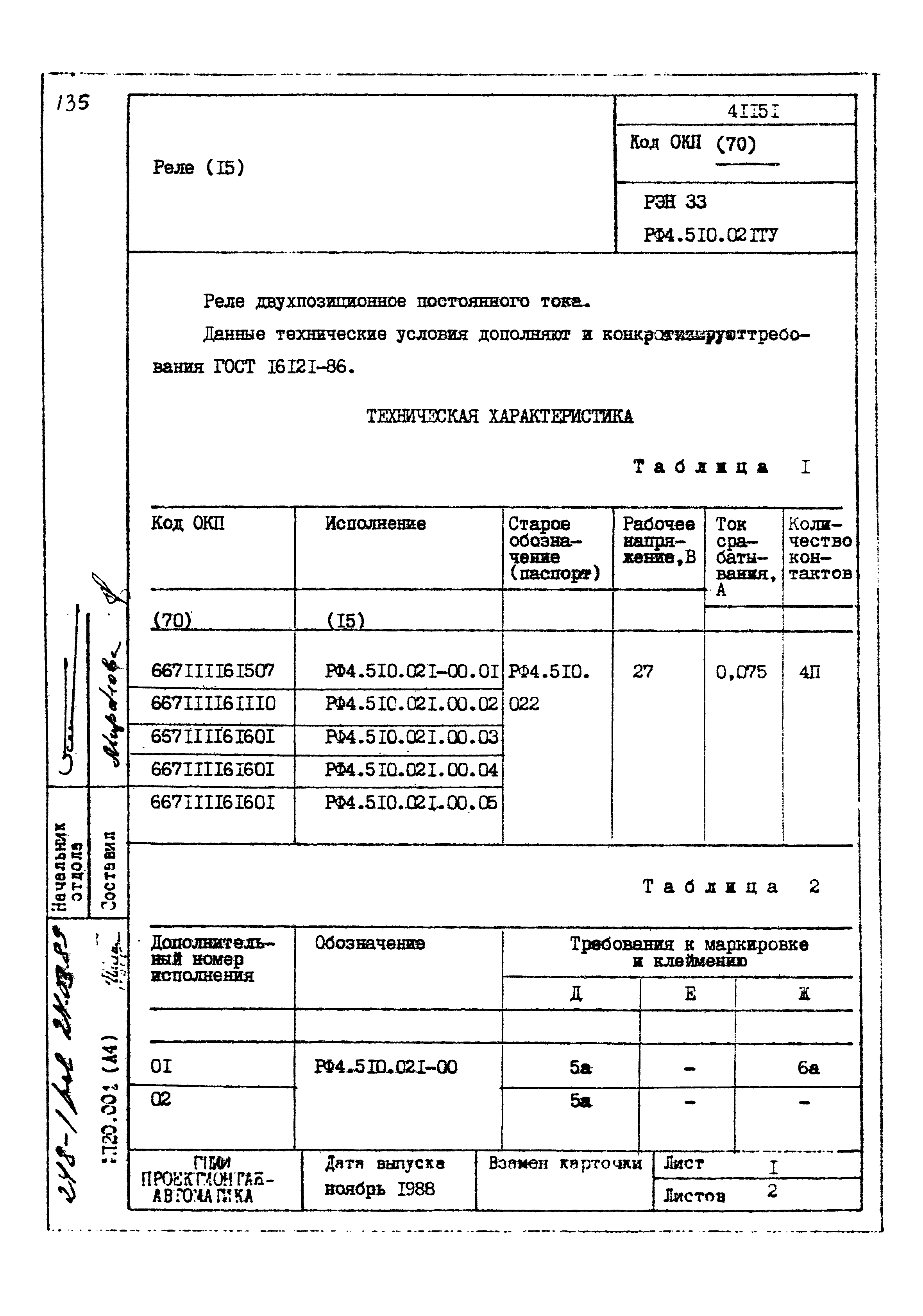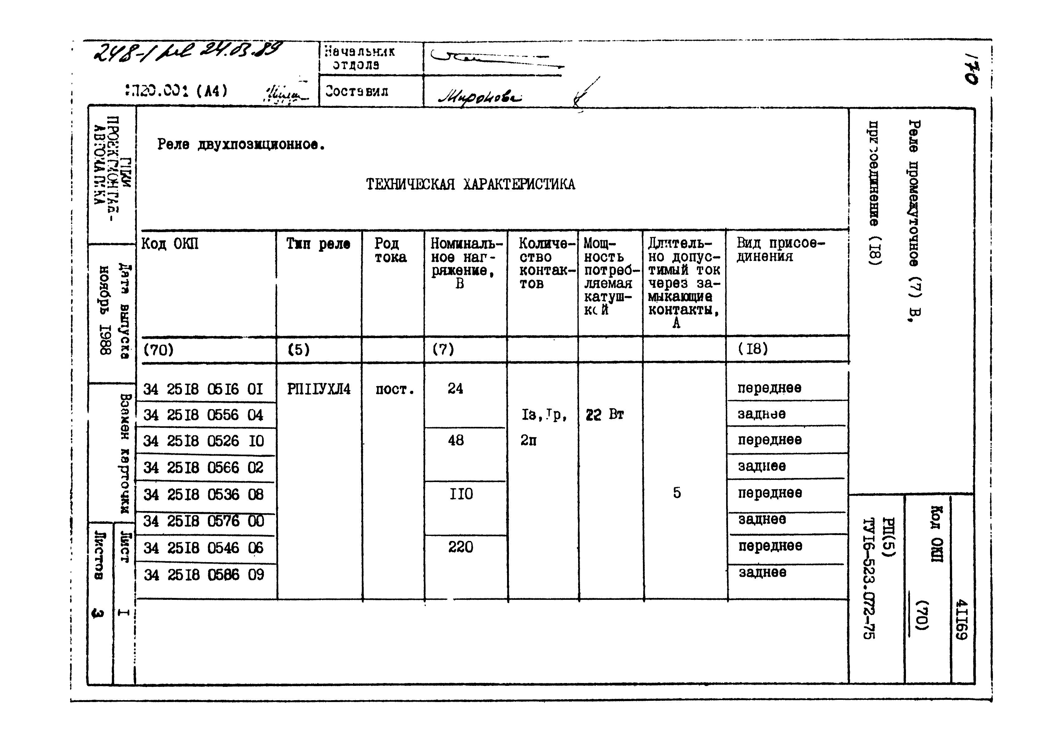 | Заменяет собой: | - «Картотека серийных приборов и средств автоматизации. Раздел 41. Реле контактные двух- и трехпозиционные» (1985 год)