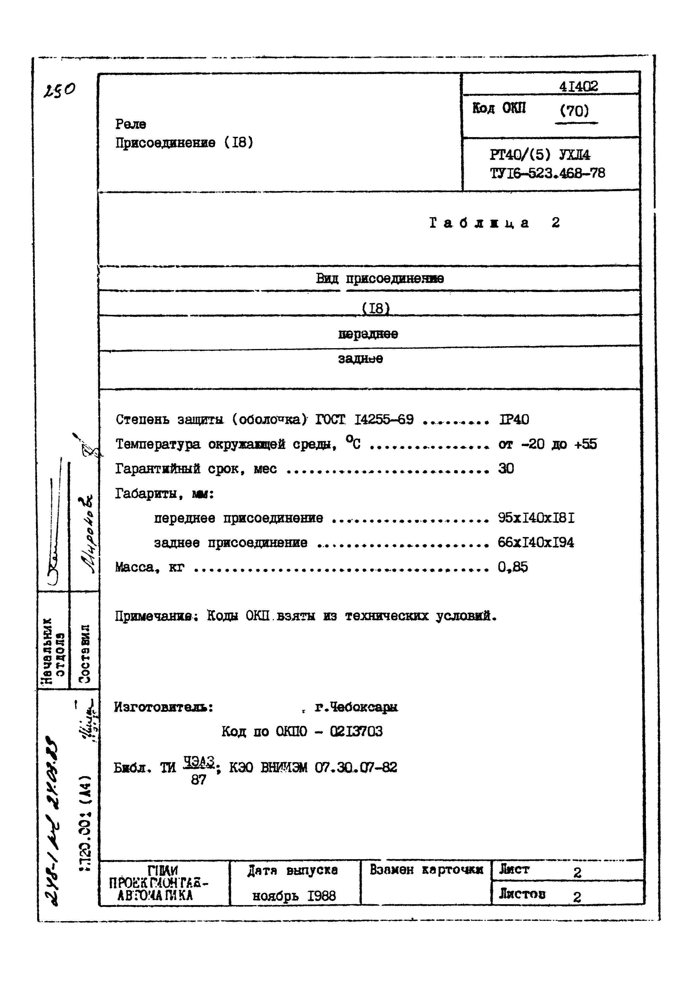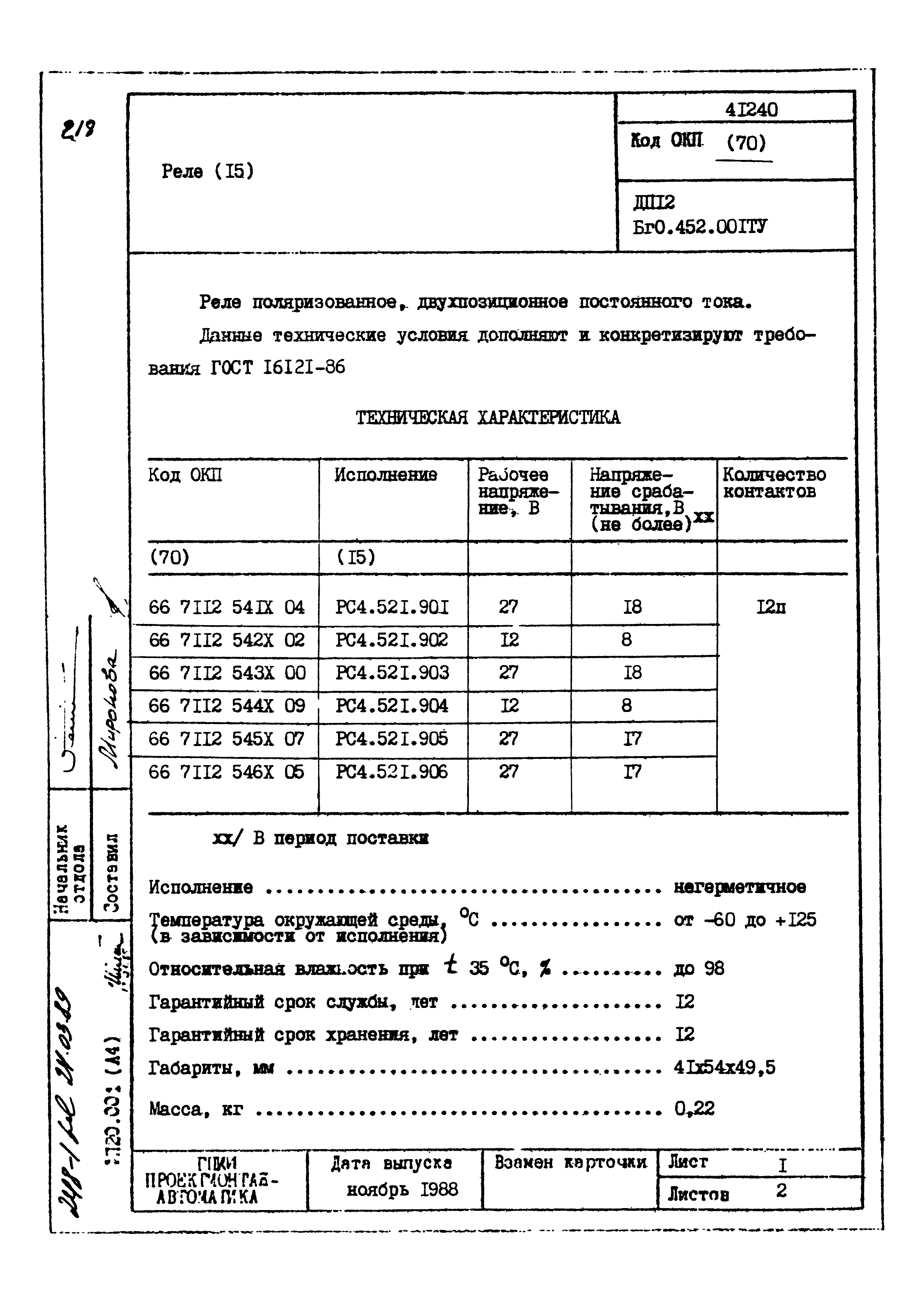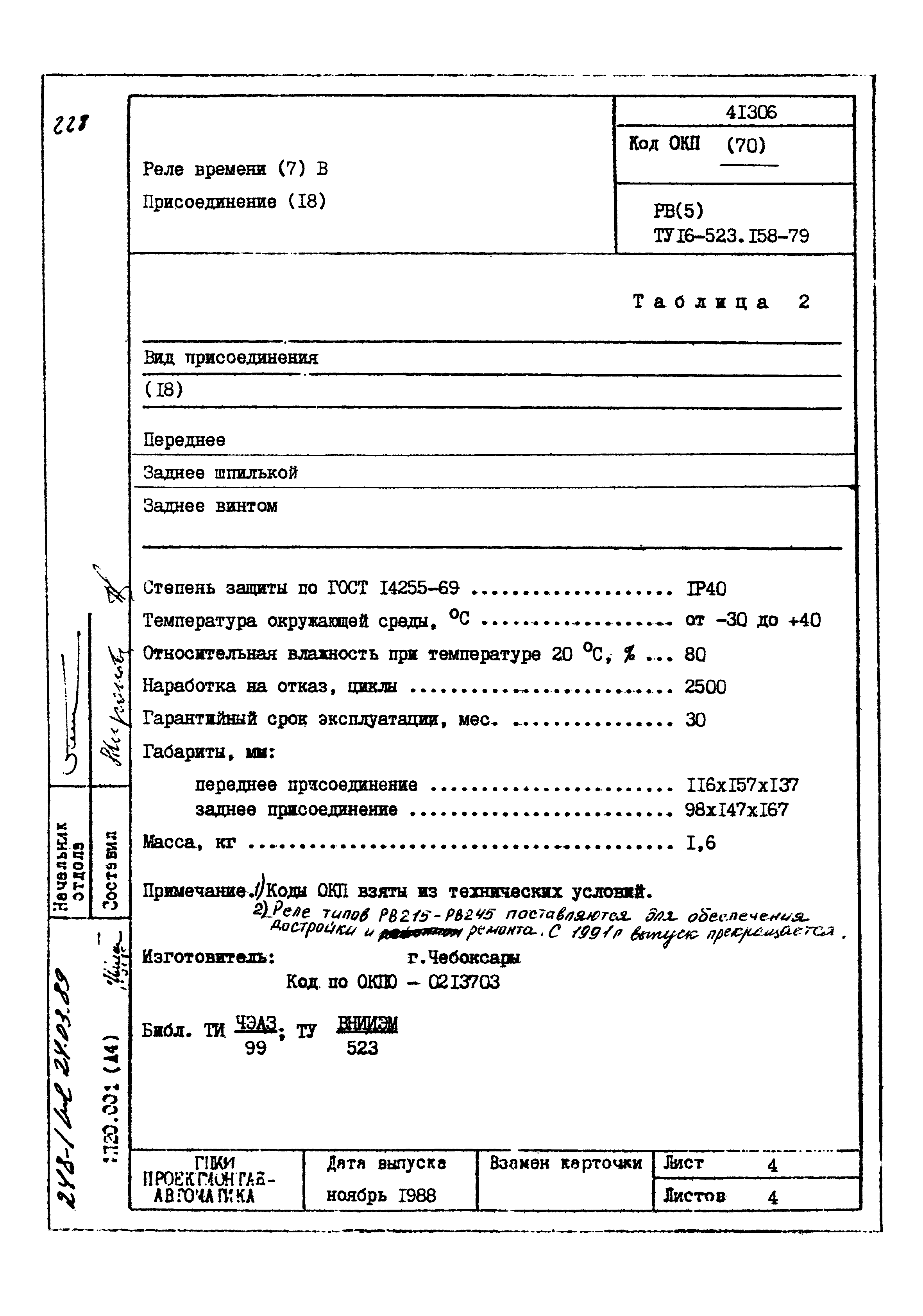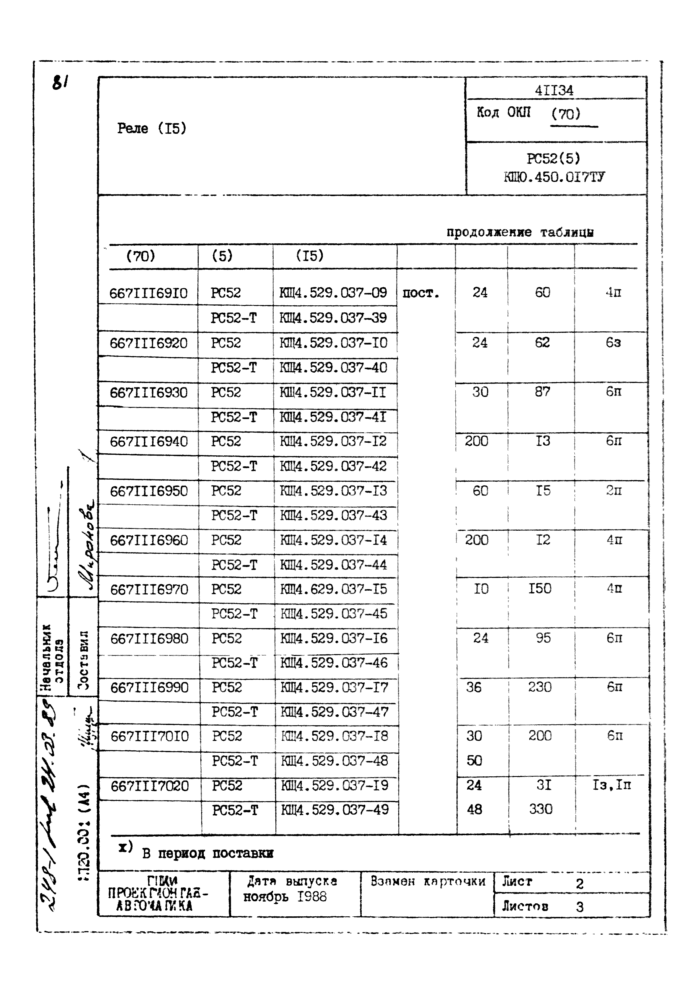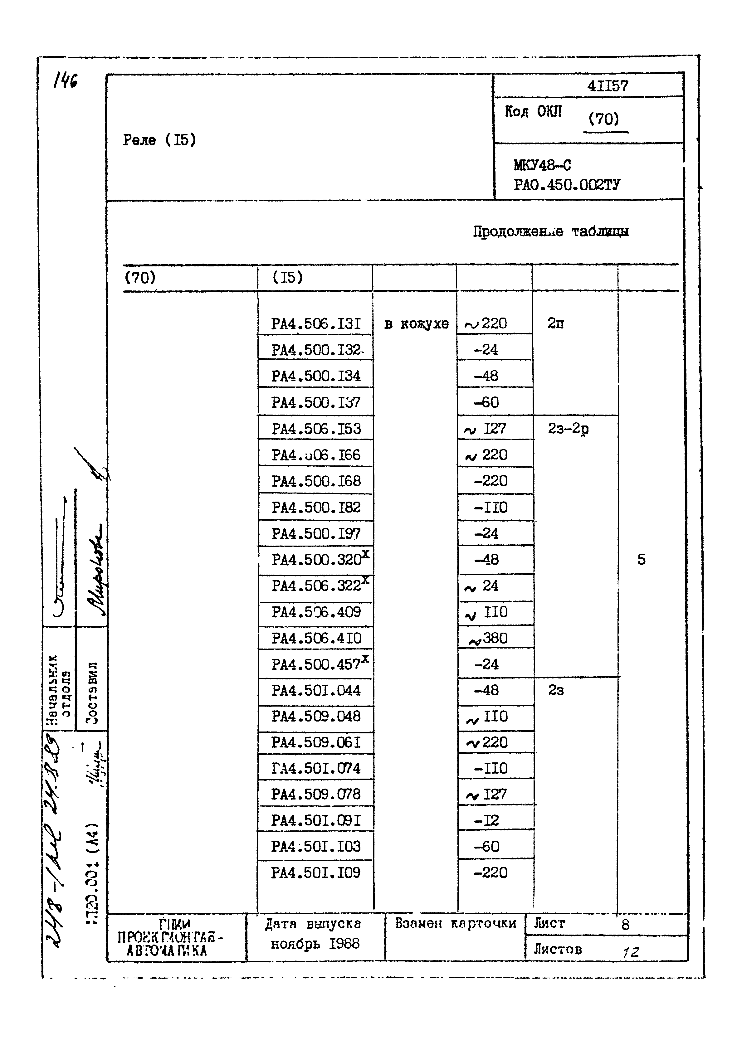 | Заменяет собой: | - «Картотека серийных приборов и средств автоматизации. Раздел 41. Реле контактные двух- и трехпозиционные» (1985 год)