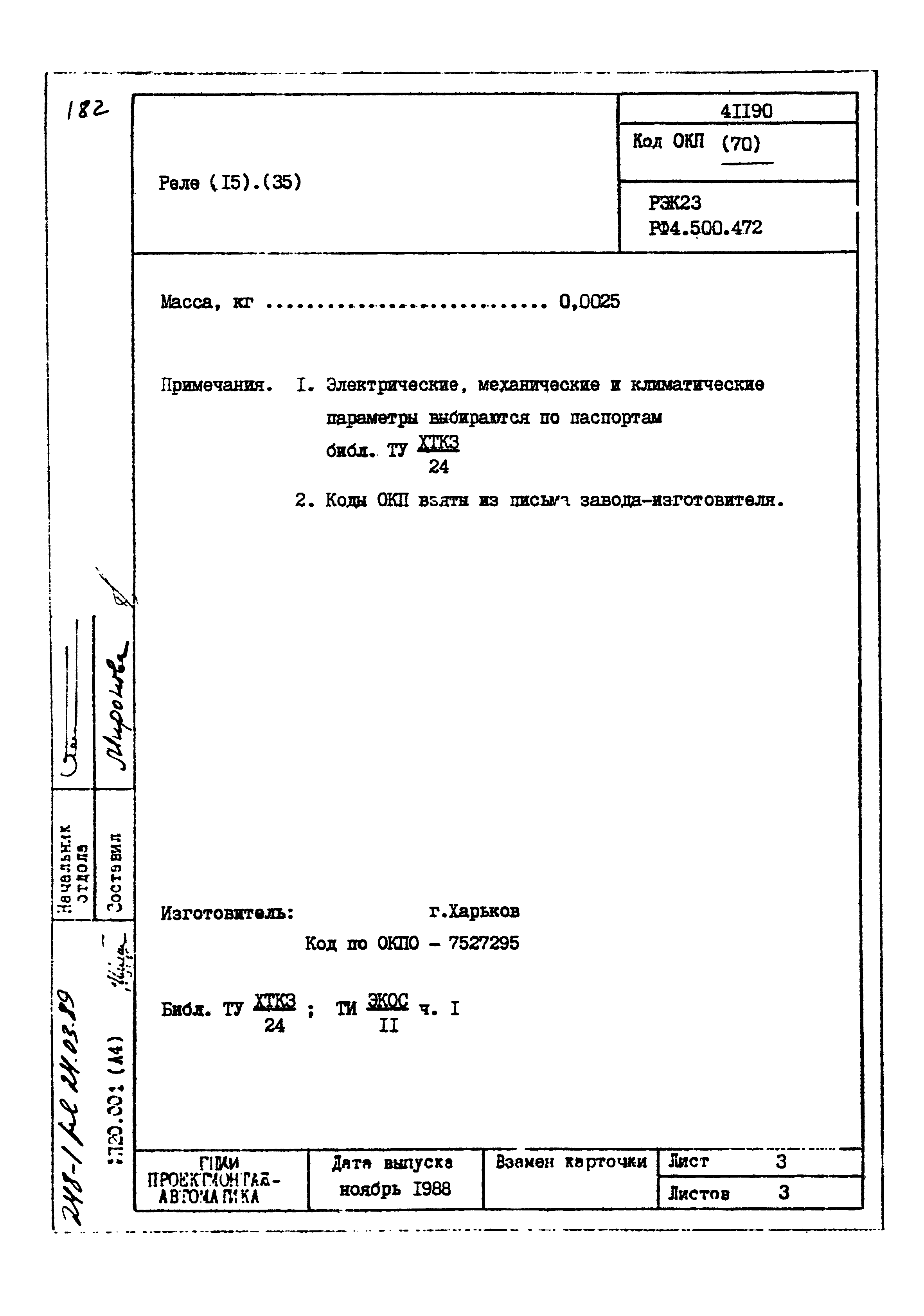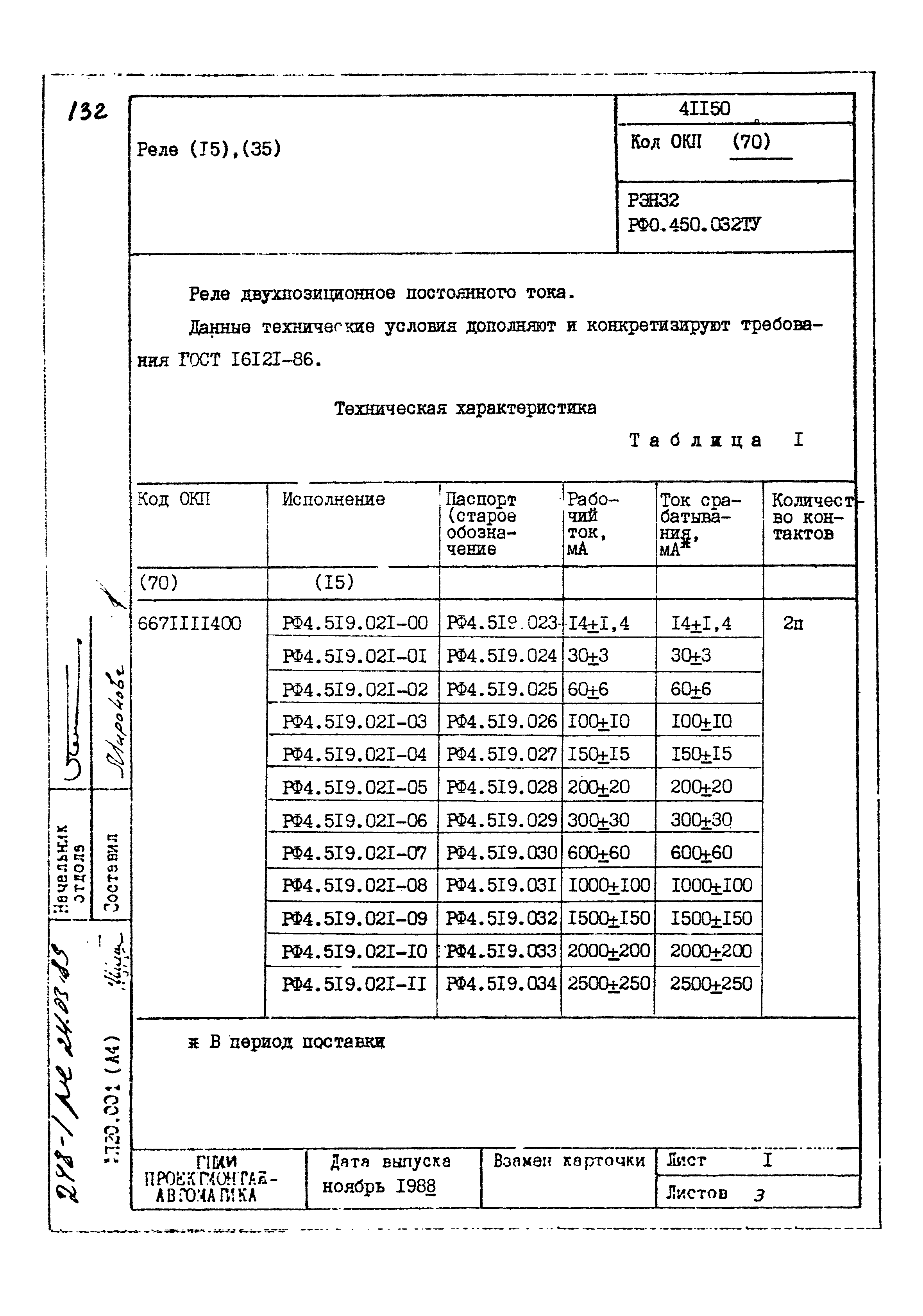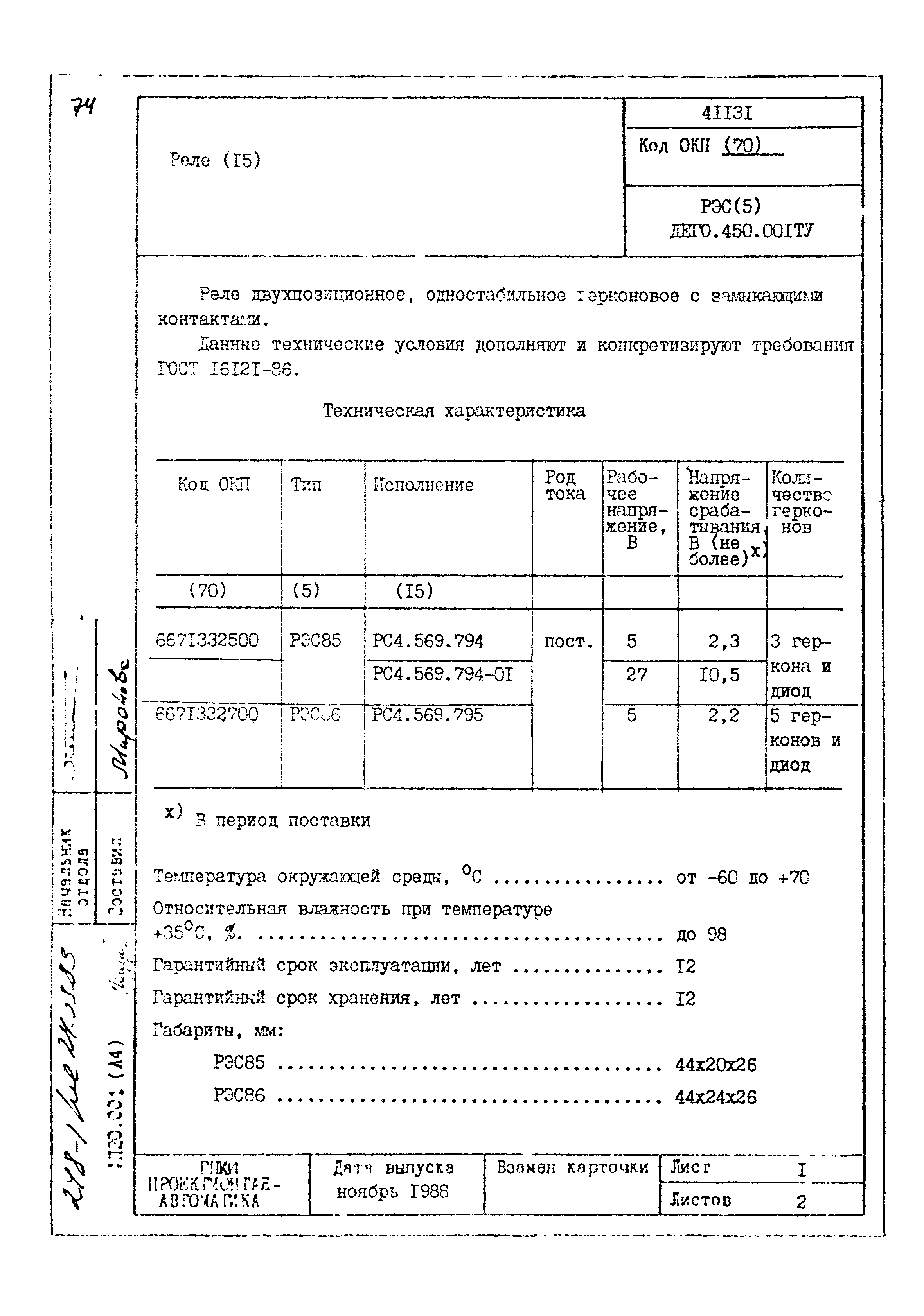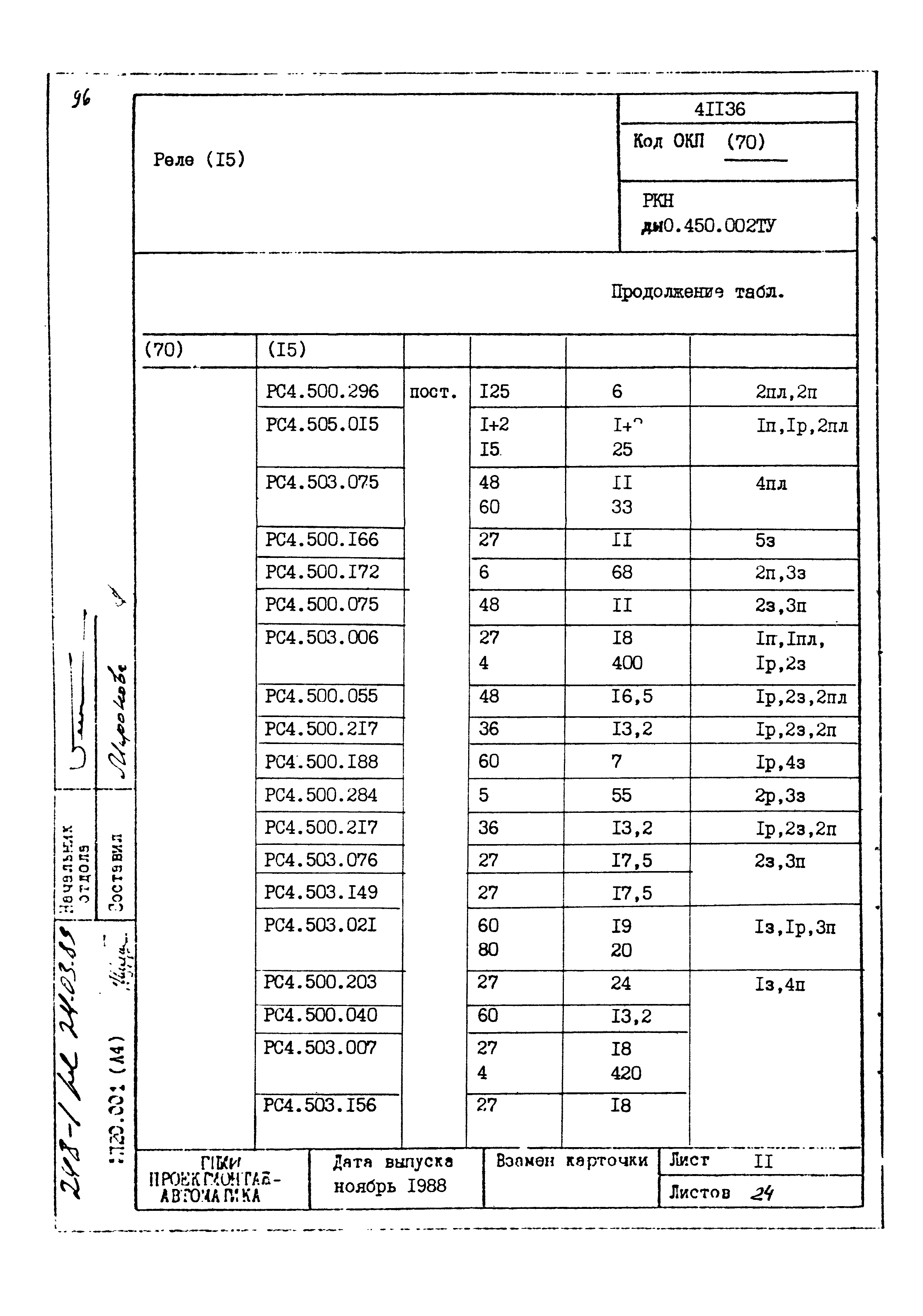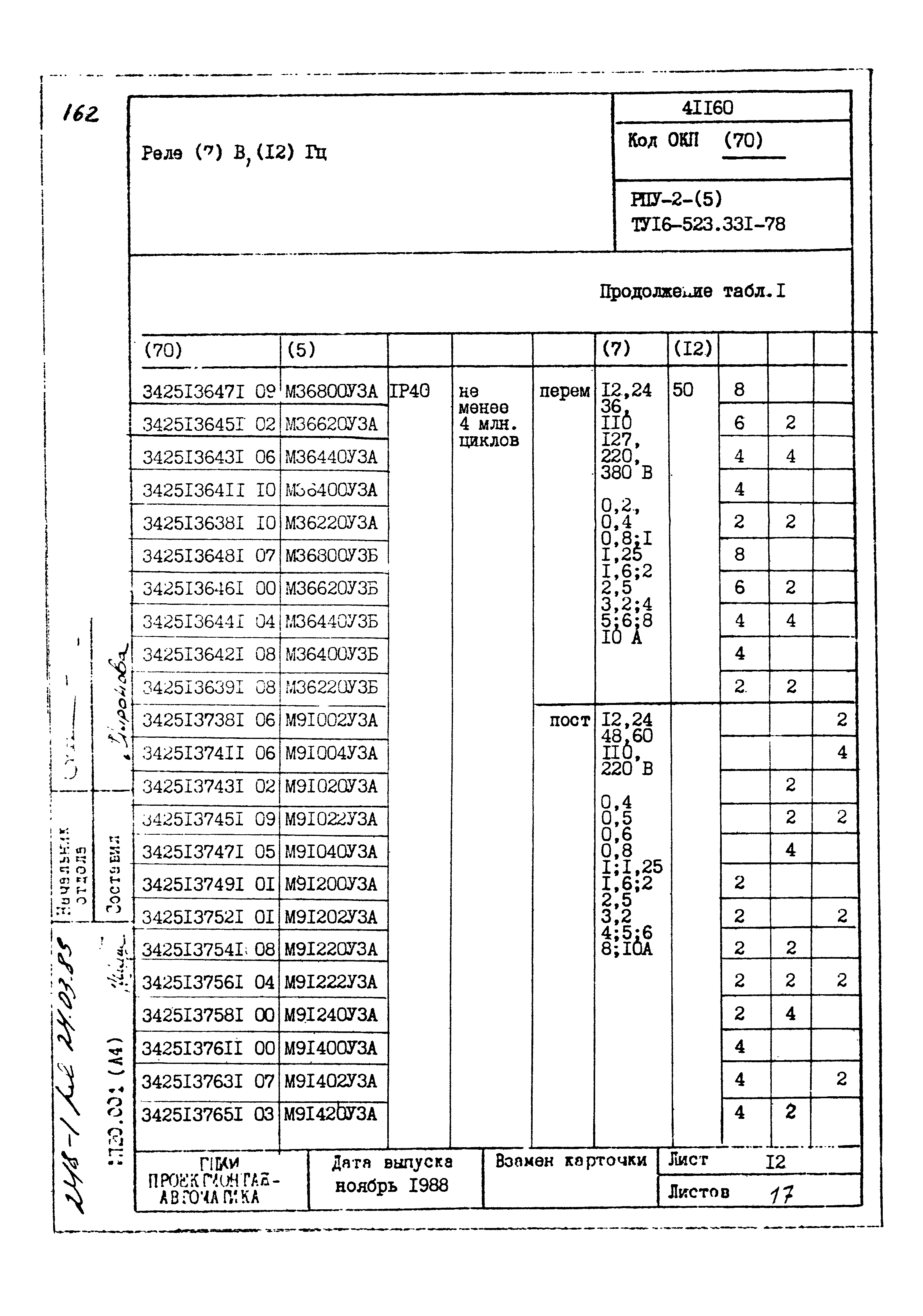 | Заменяет собой: | - «Картотека серийных приборов и средств автоматизации. Раздел 41. Реле контактные двух- и трехпозиционные» (1985 год)