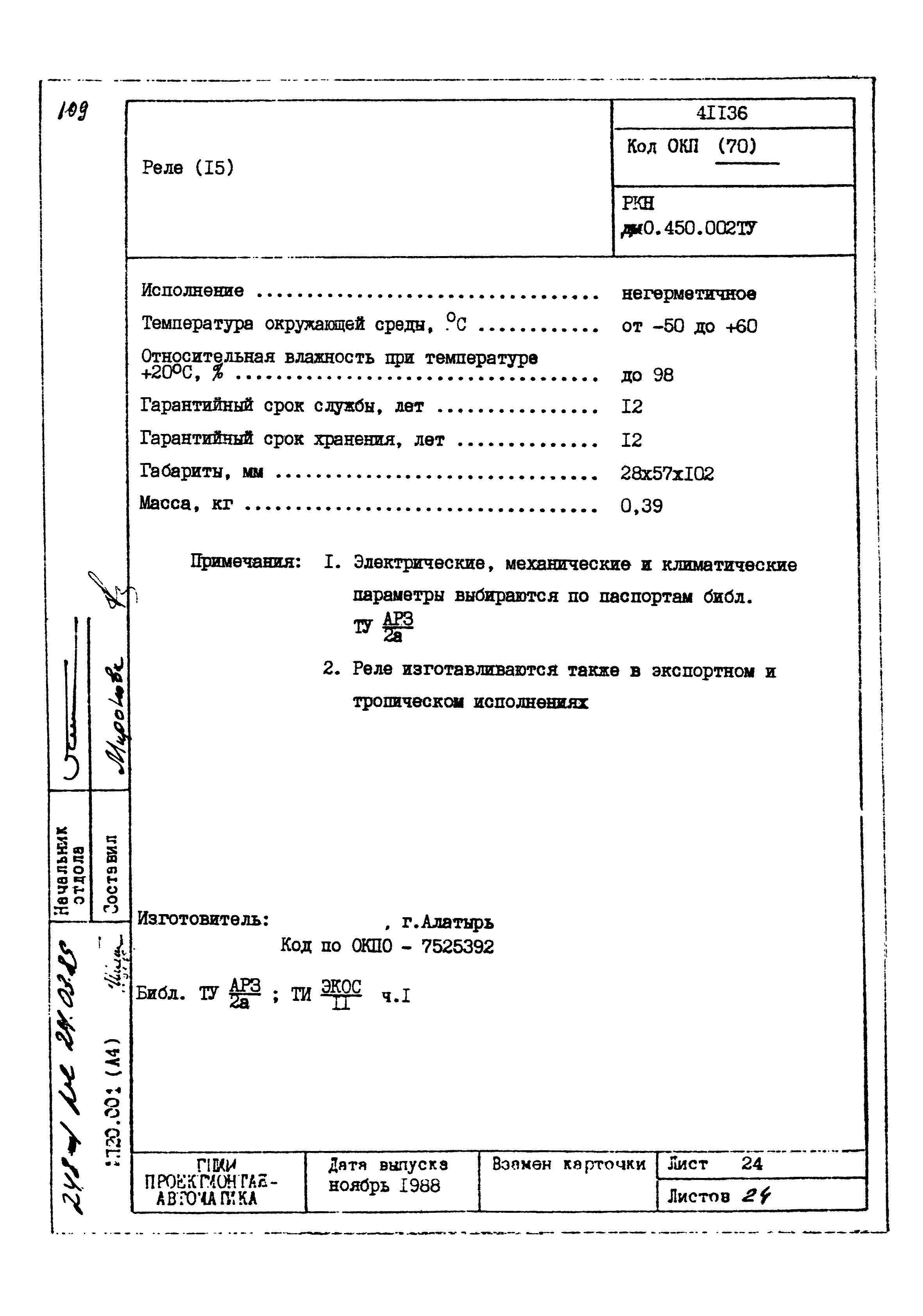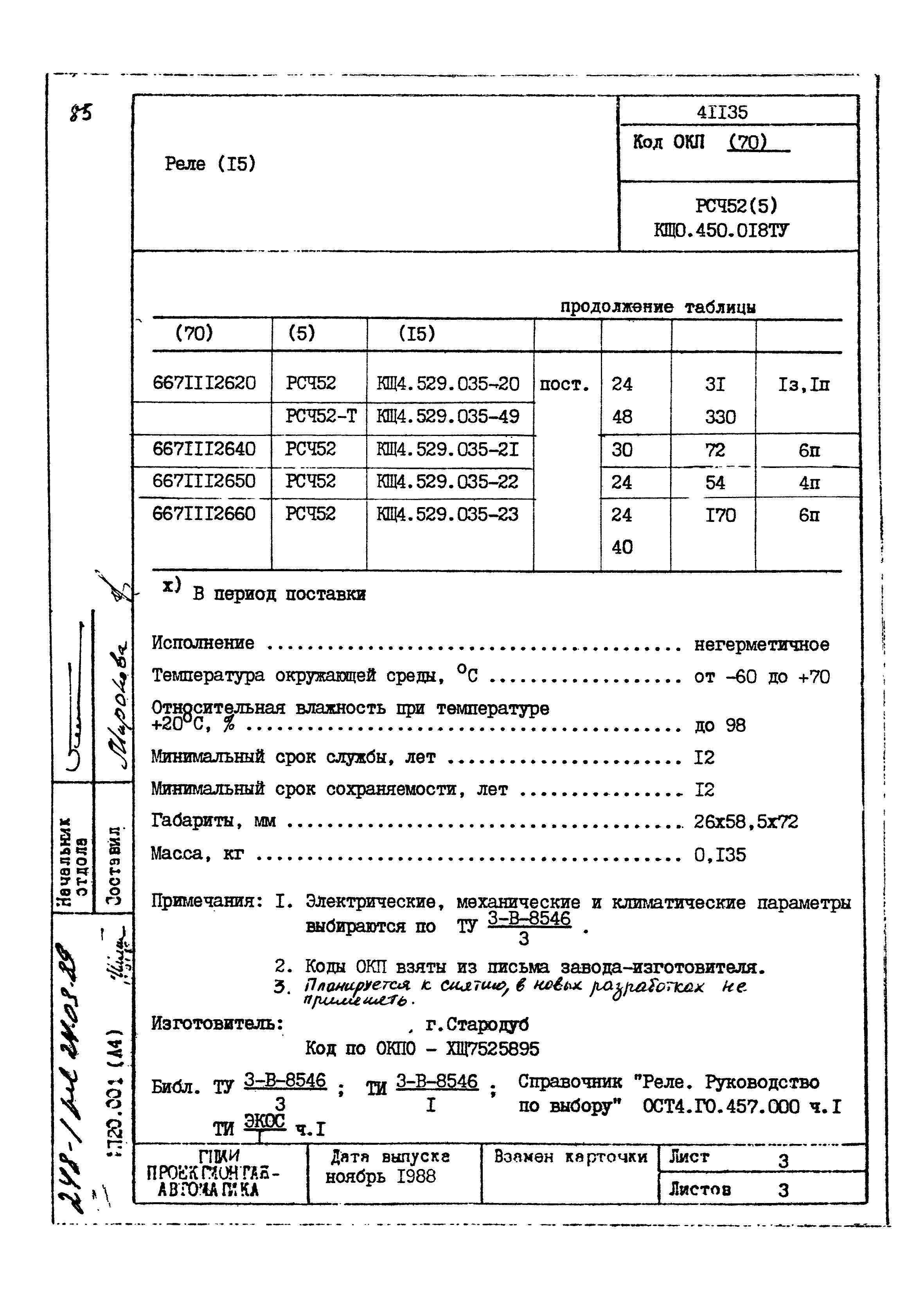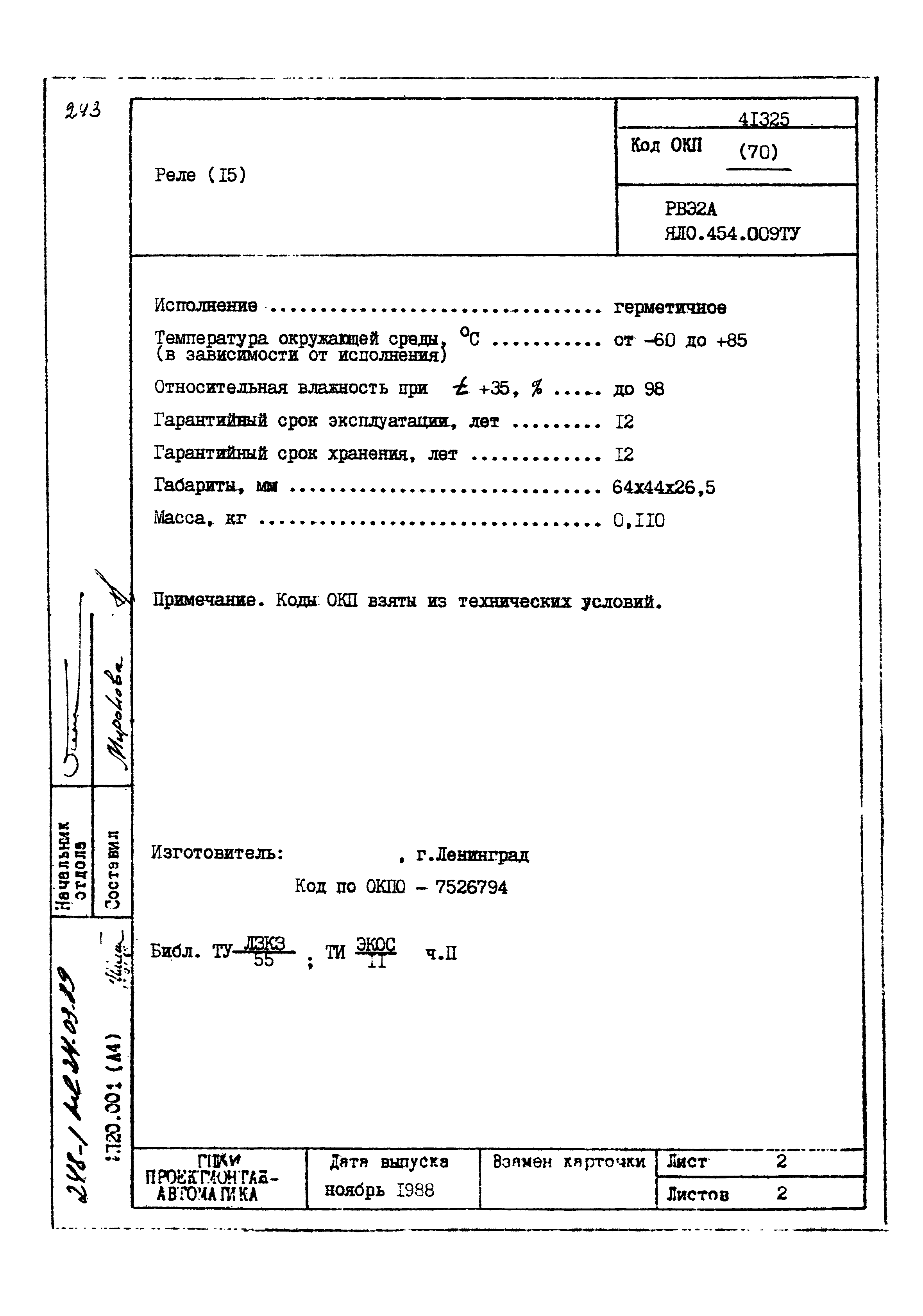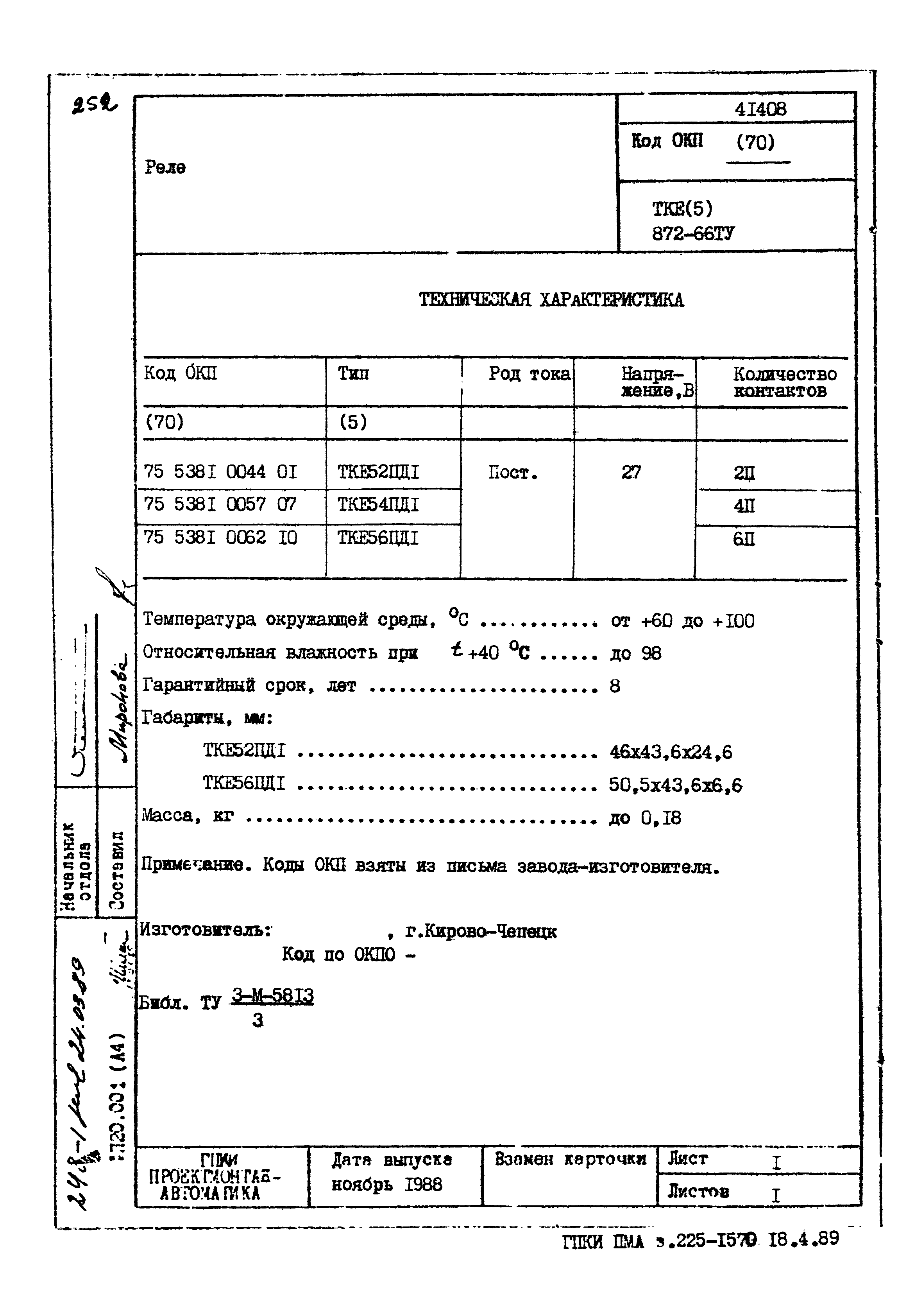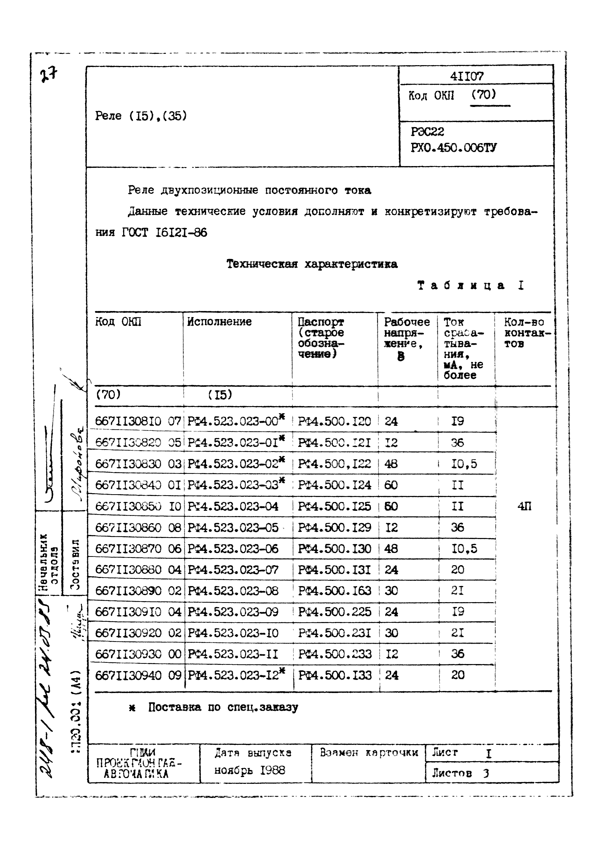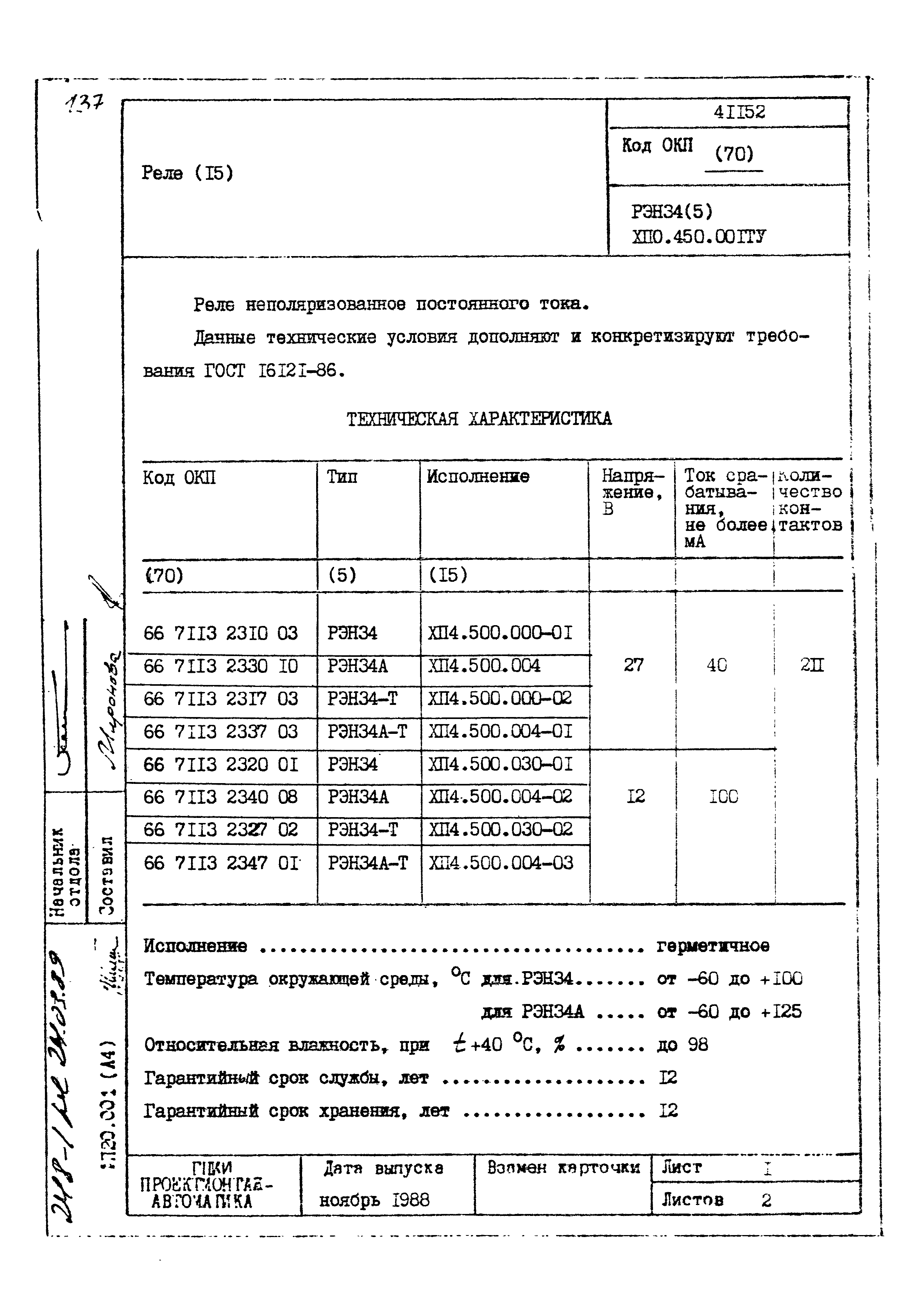 | Заменяет собой: | - «Картотека серийных приборов и средств автоматизации. Раздел 41. Реле контактные двух- и трехпозиционные» (1985 год)