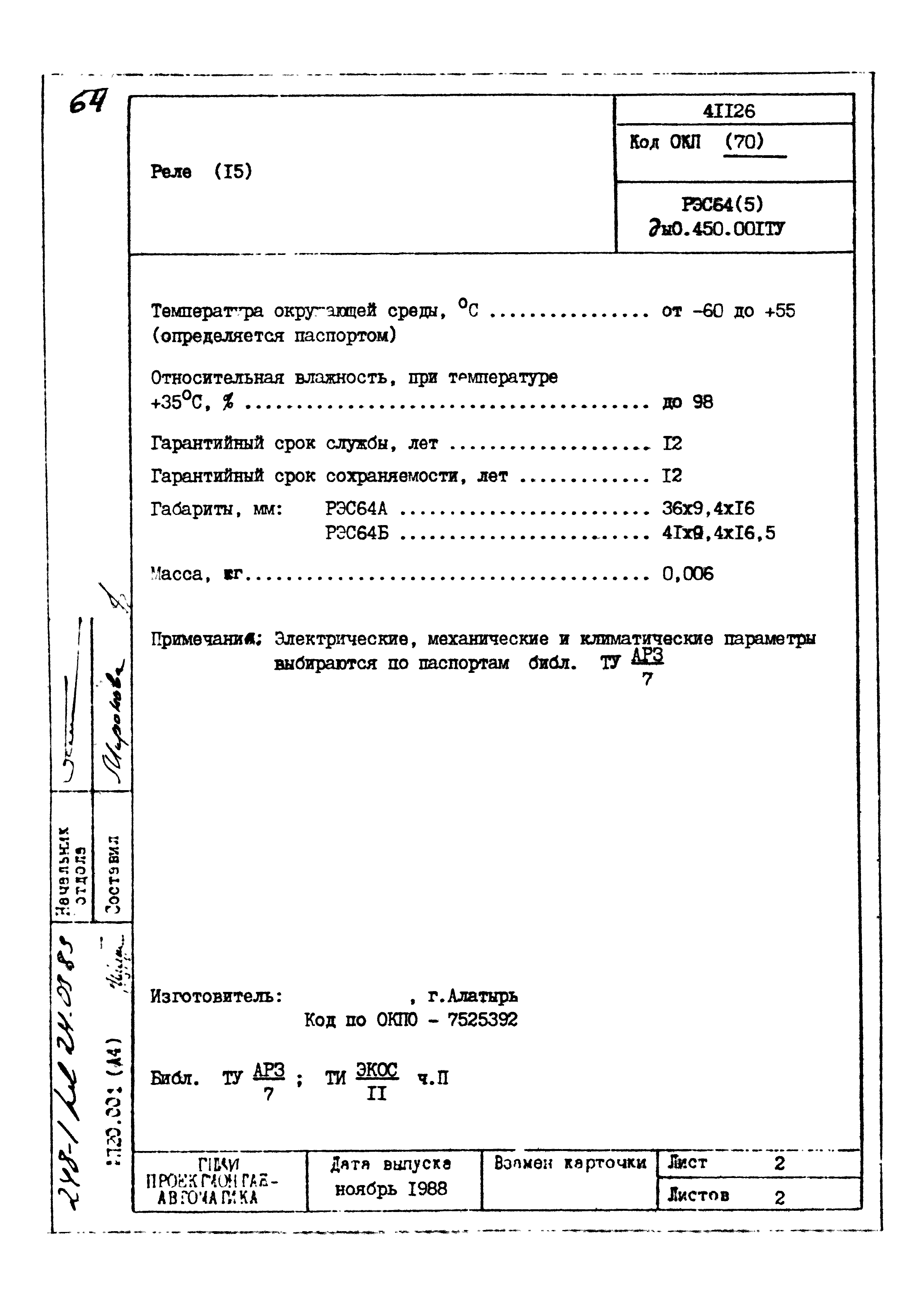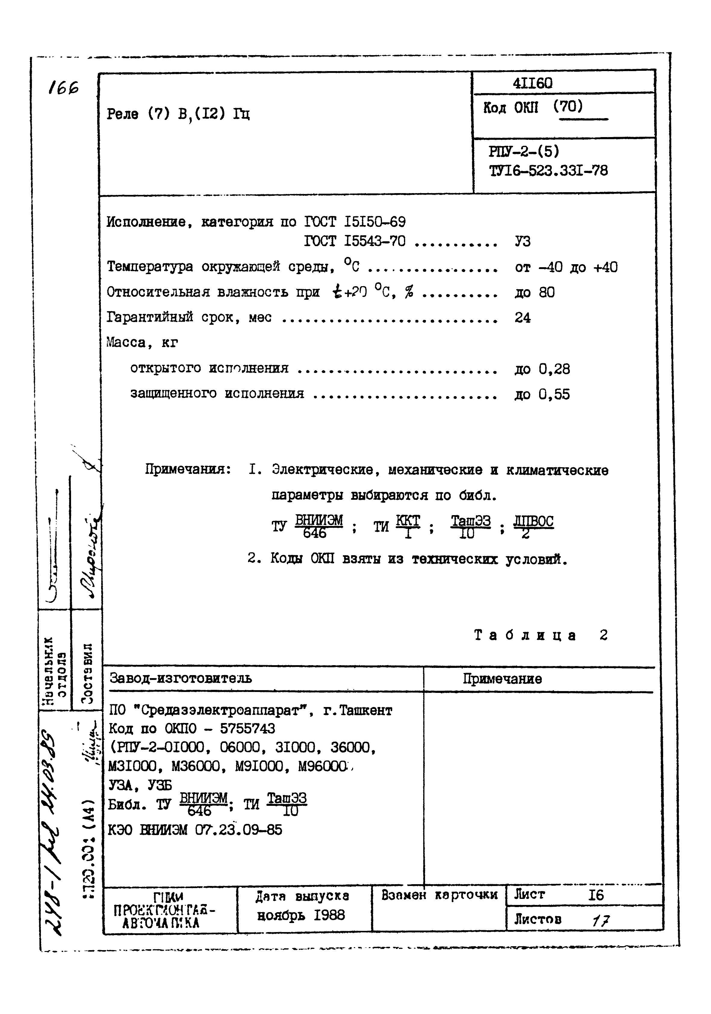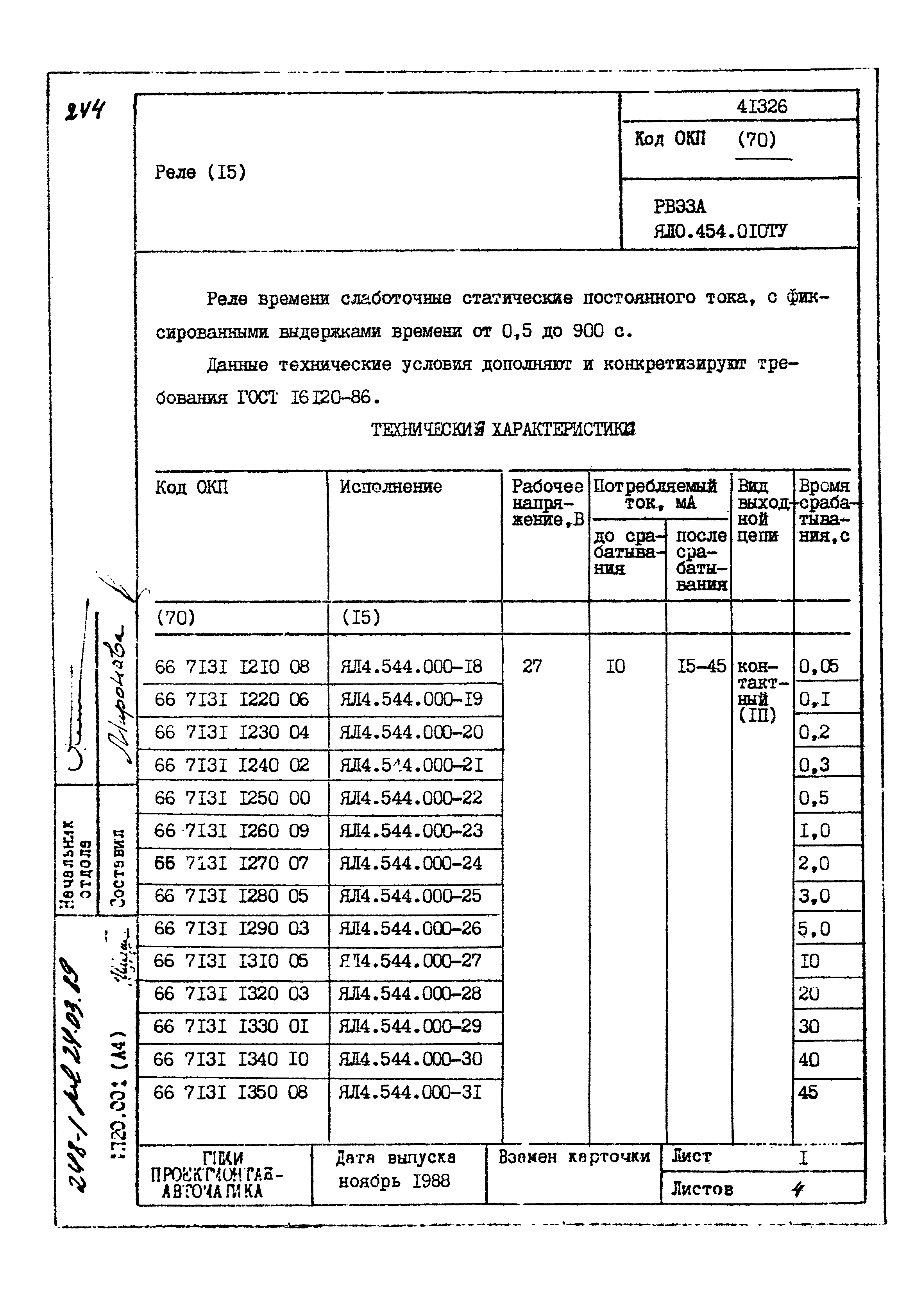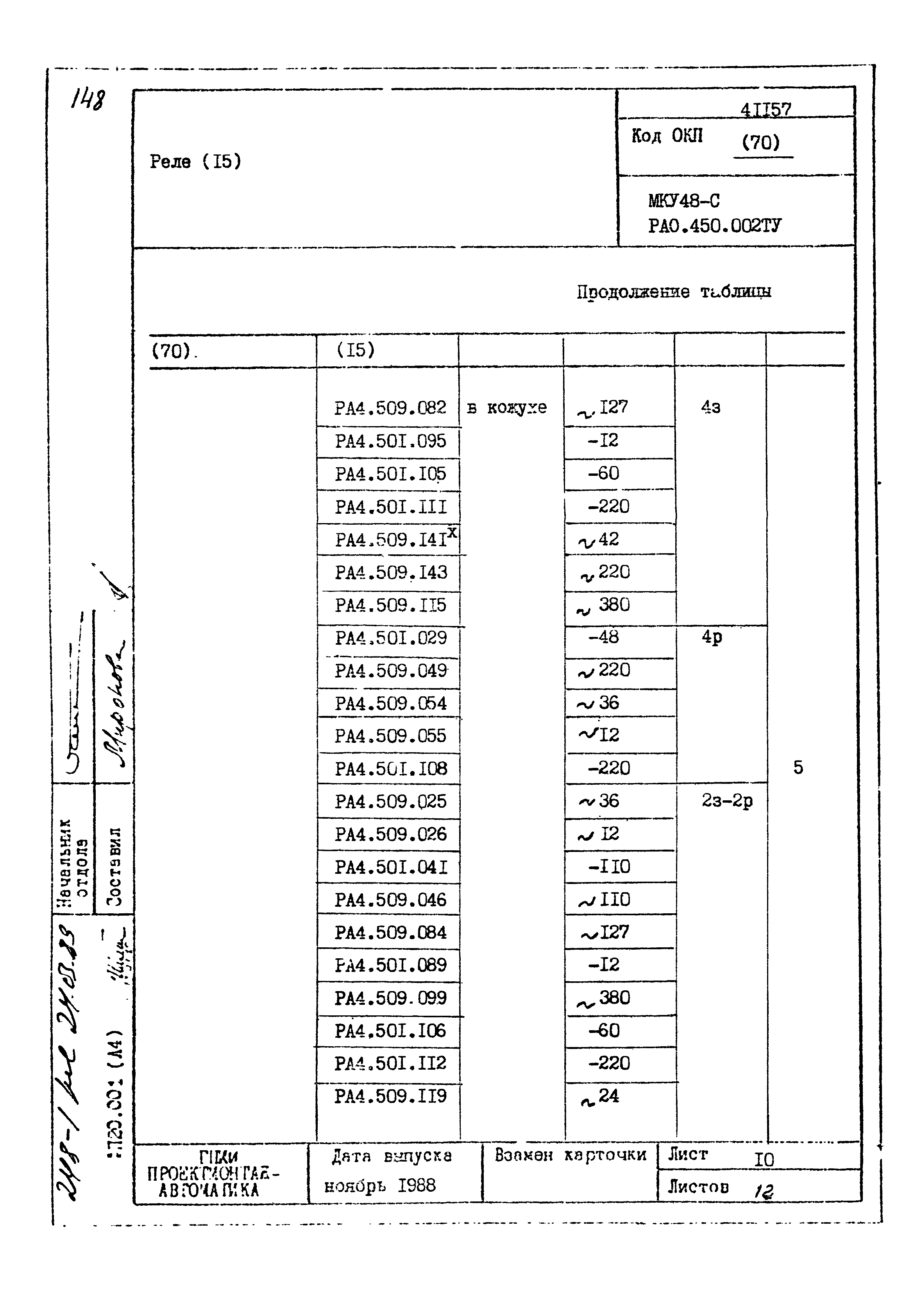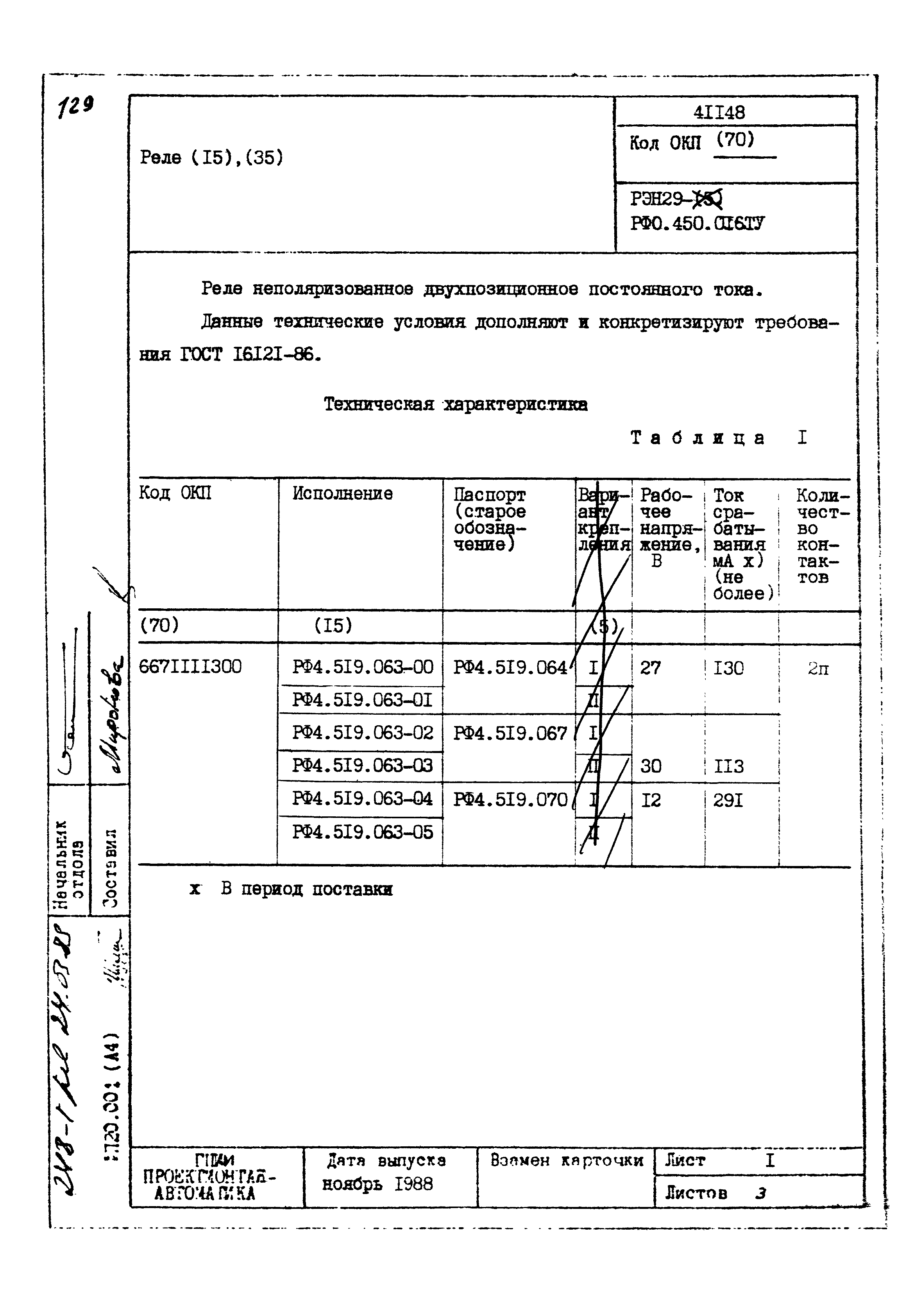 | Заменяет собой: | - «Картотека серийных приборов и средств автоматизации. Раздел 41. Реле контактные двух- и трехпозиционные» (1985 год)