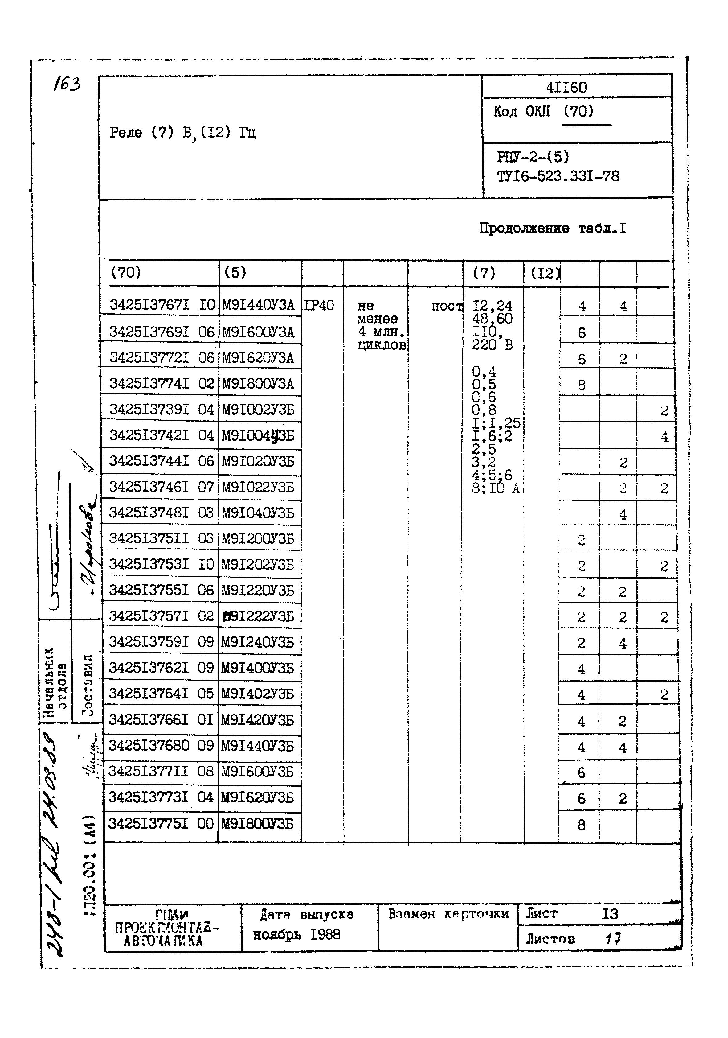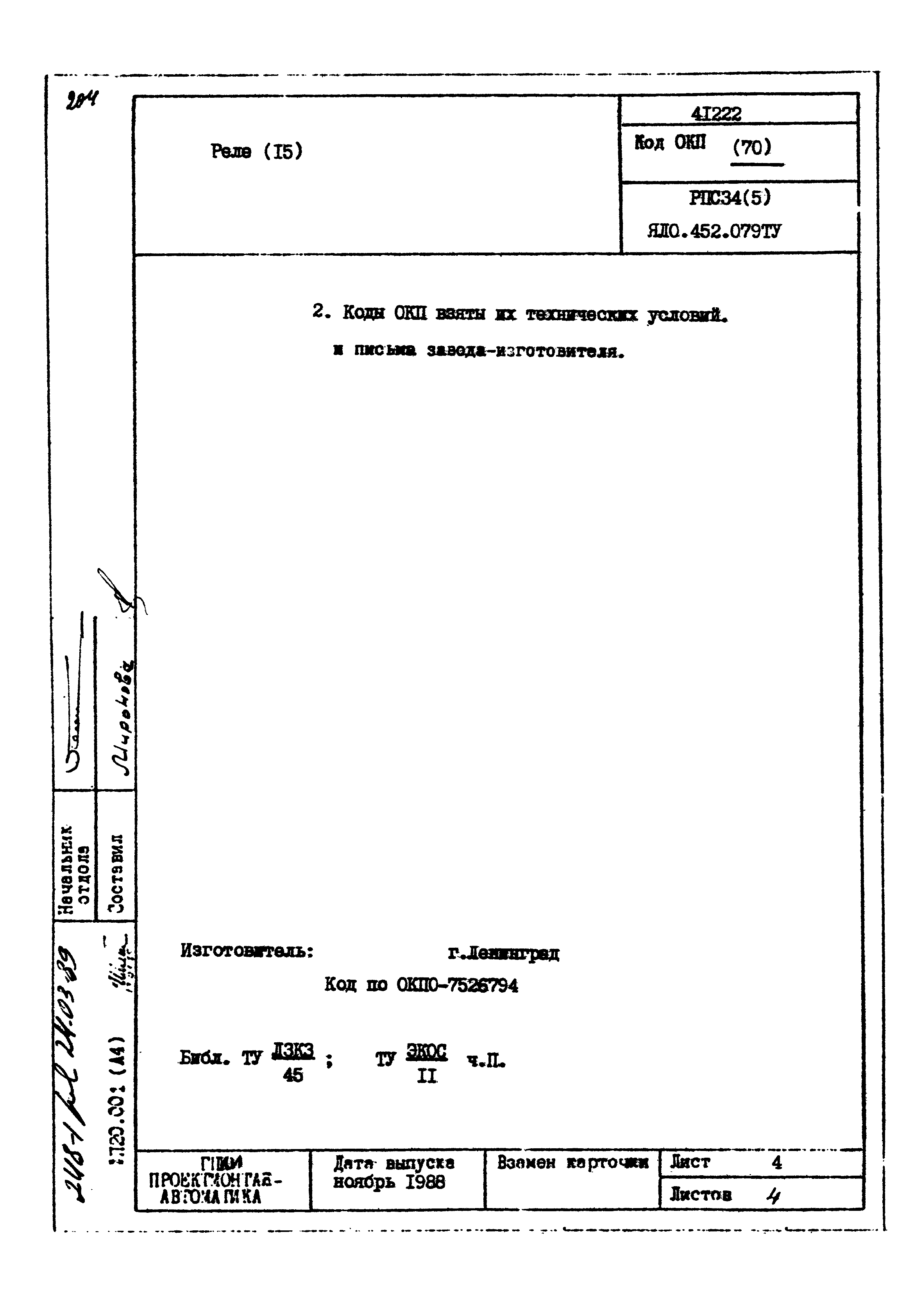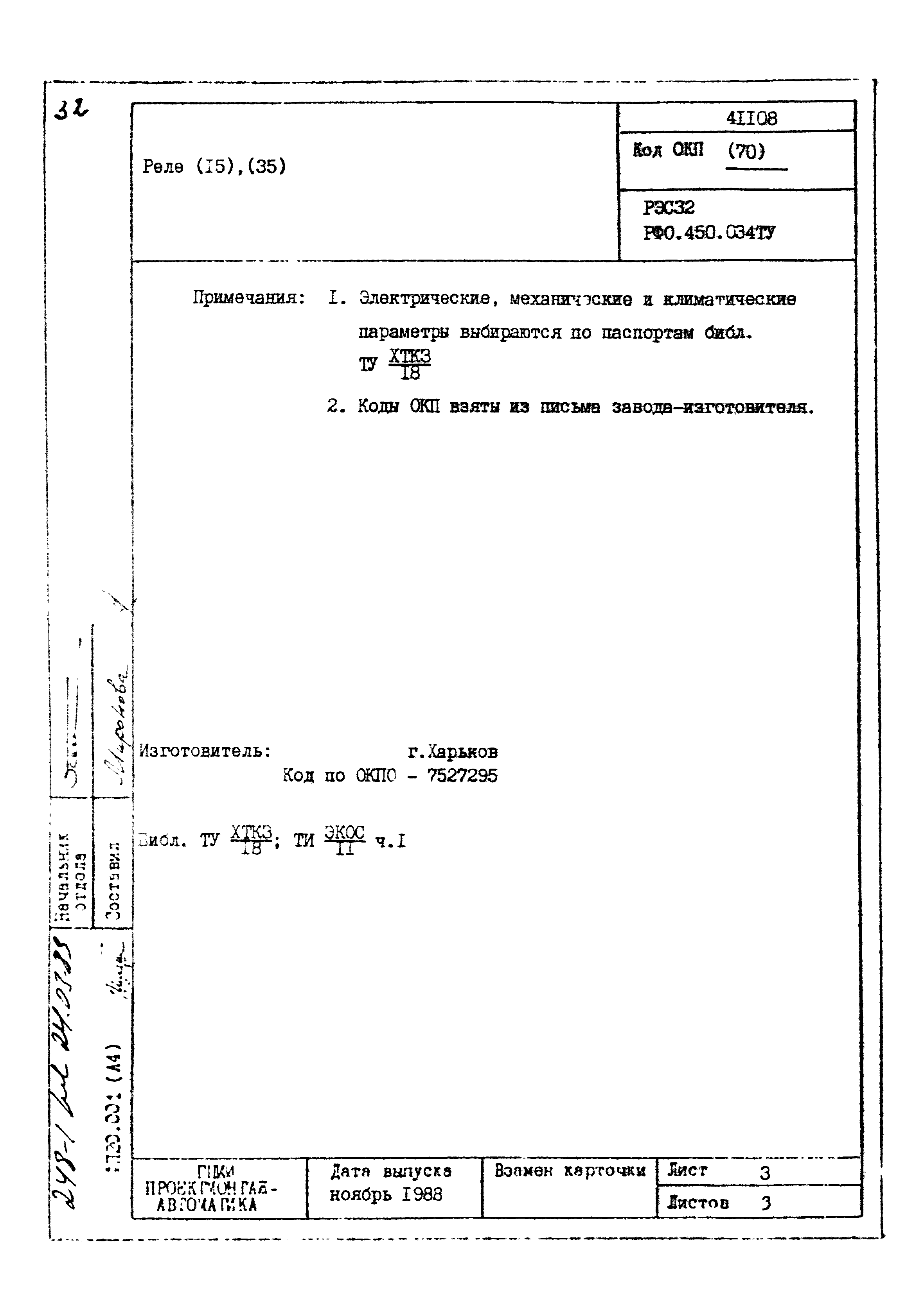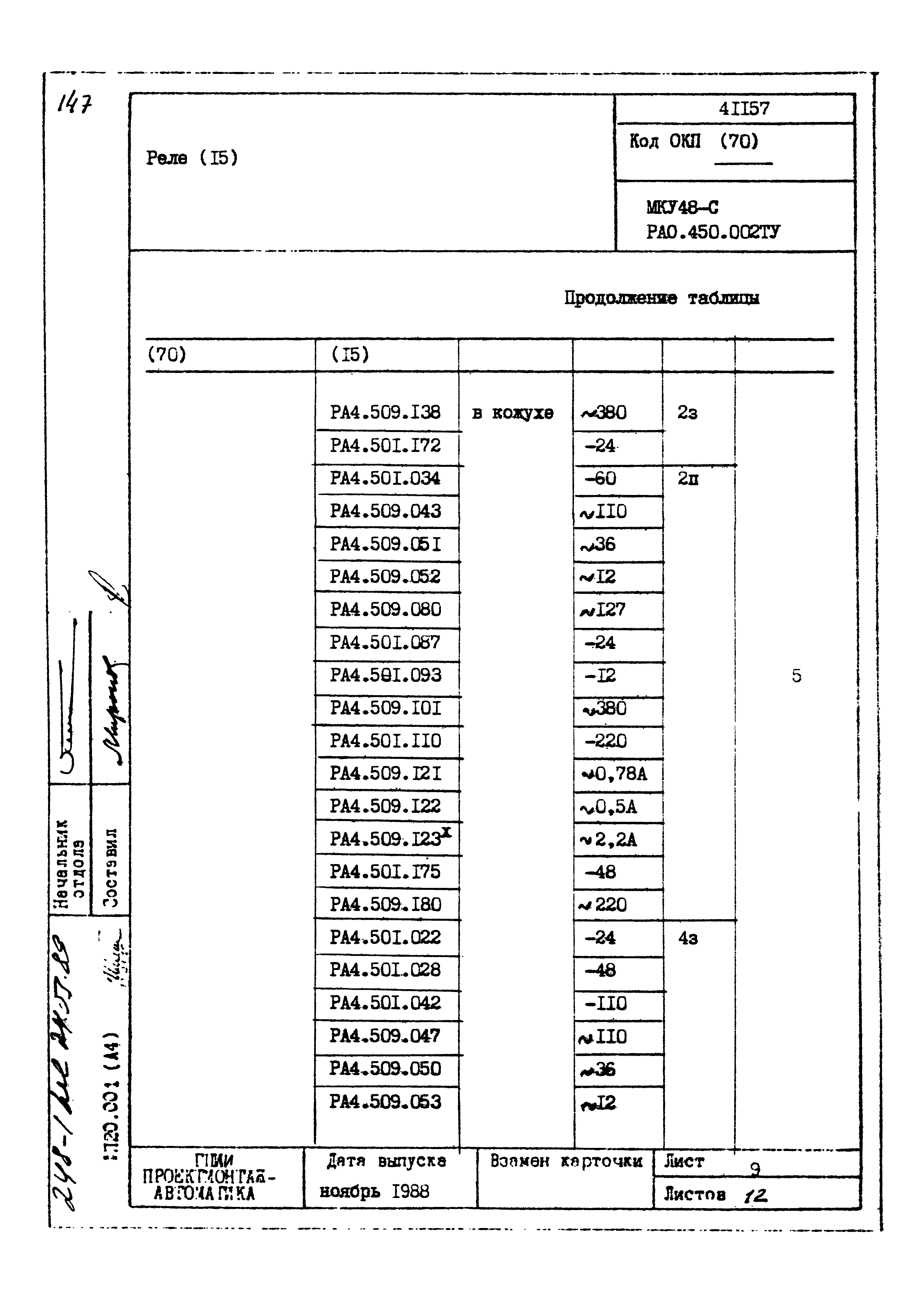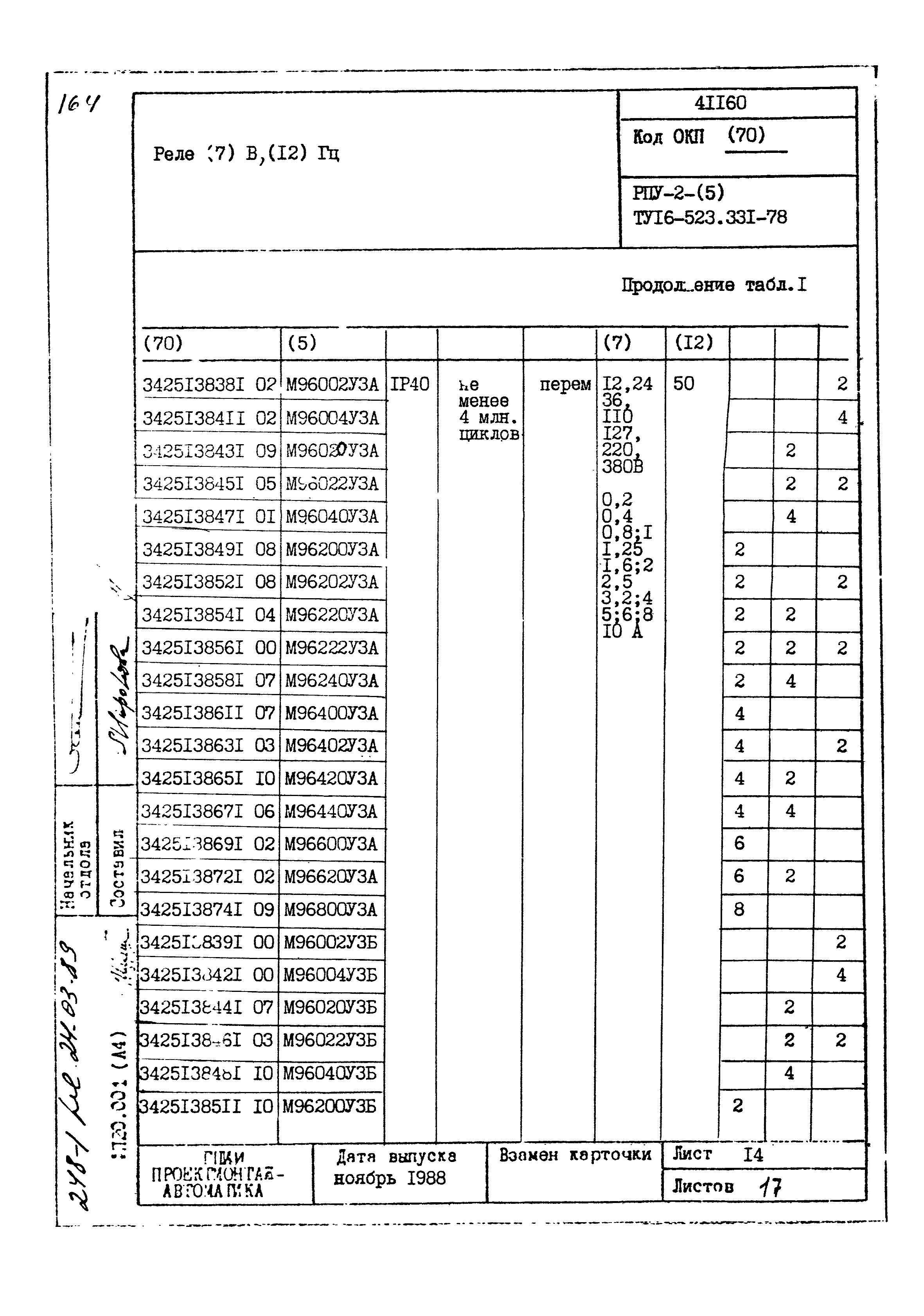 | Заменяет собой: | - «Картотека серийных приборов и средств автоматизации. Раздел 41. Реле контактные двух- и трехпозиционные» (1985 год)