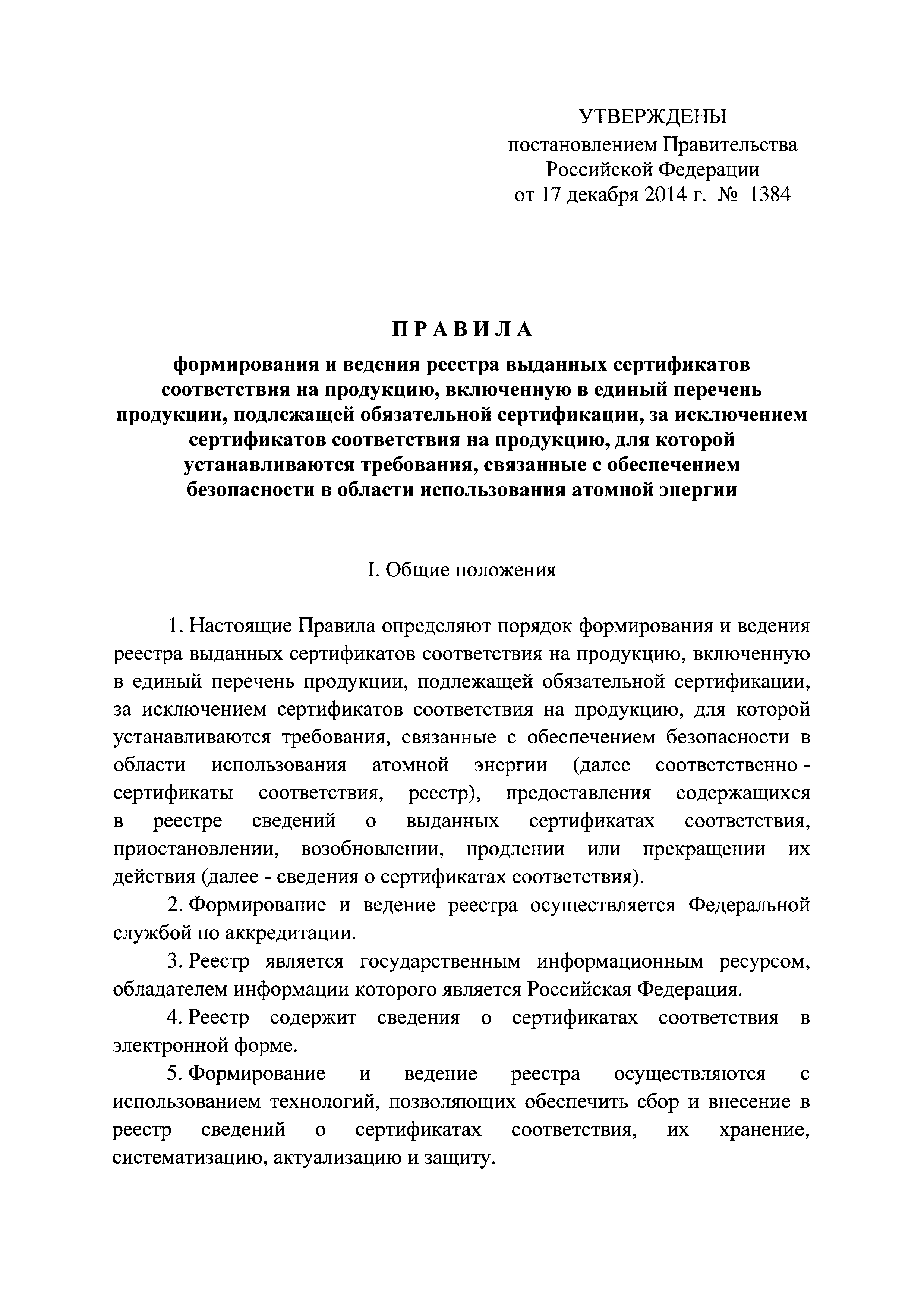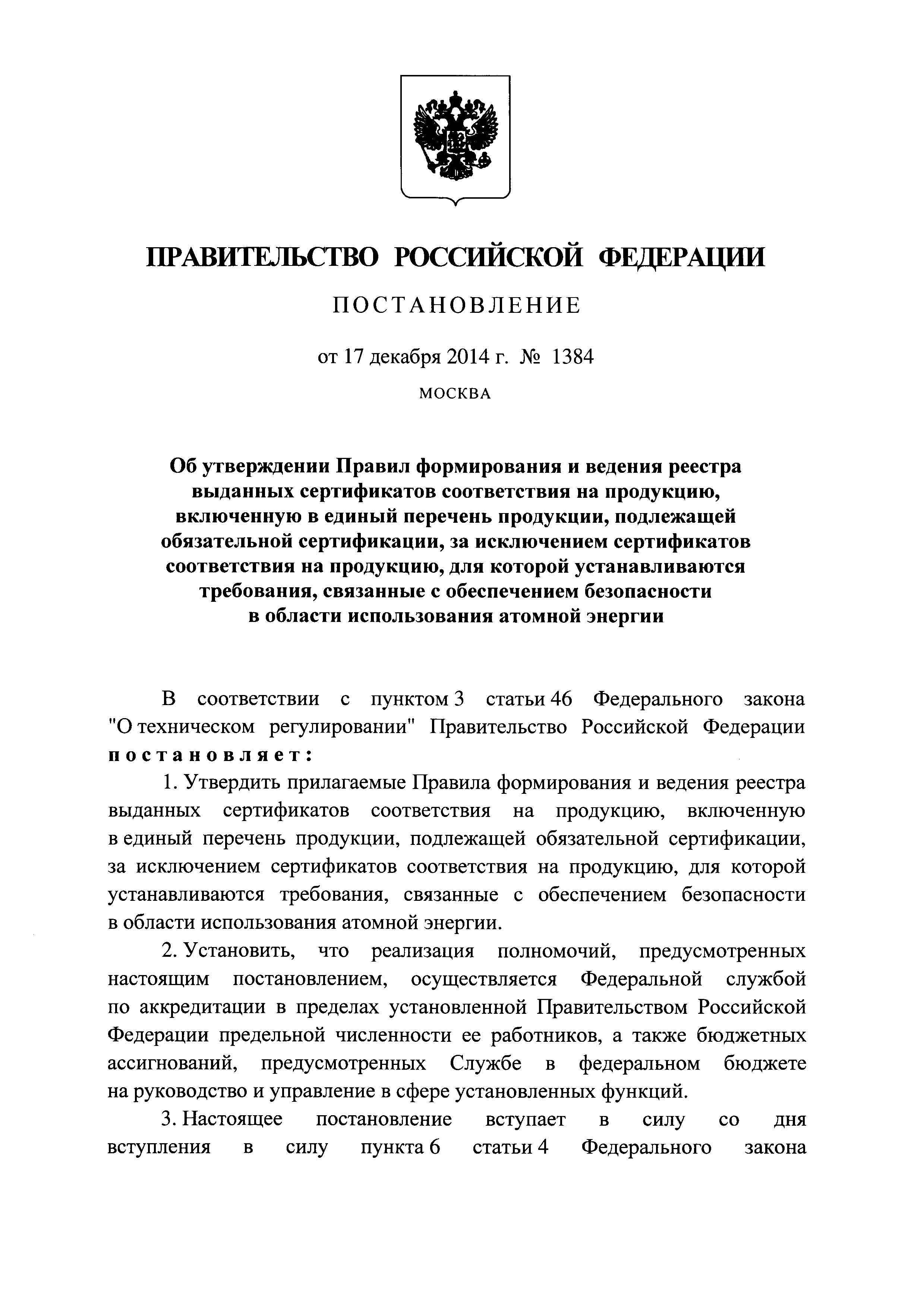 | Утверждён: | 17.12.2014 Правительство Российской Федерации (1384) |