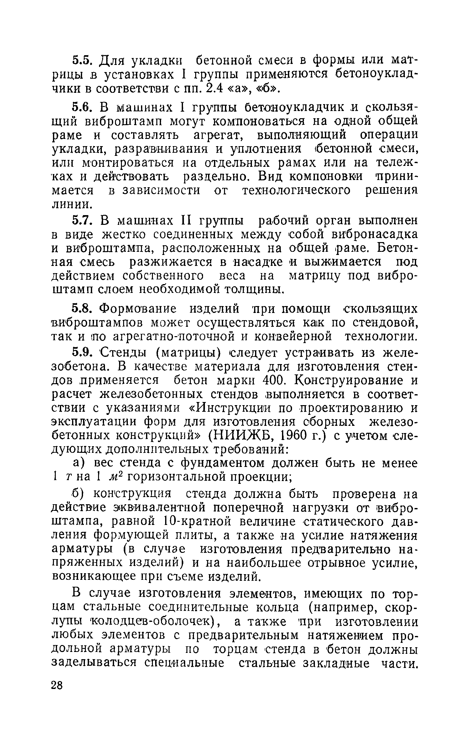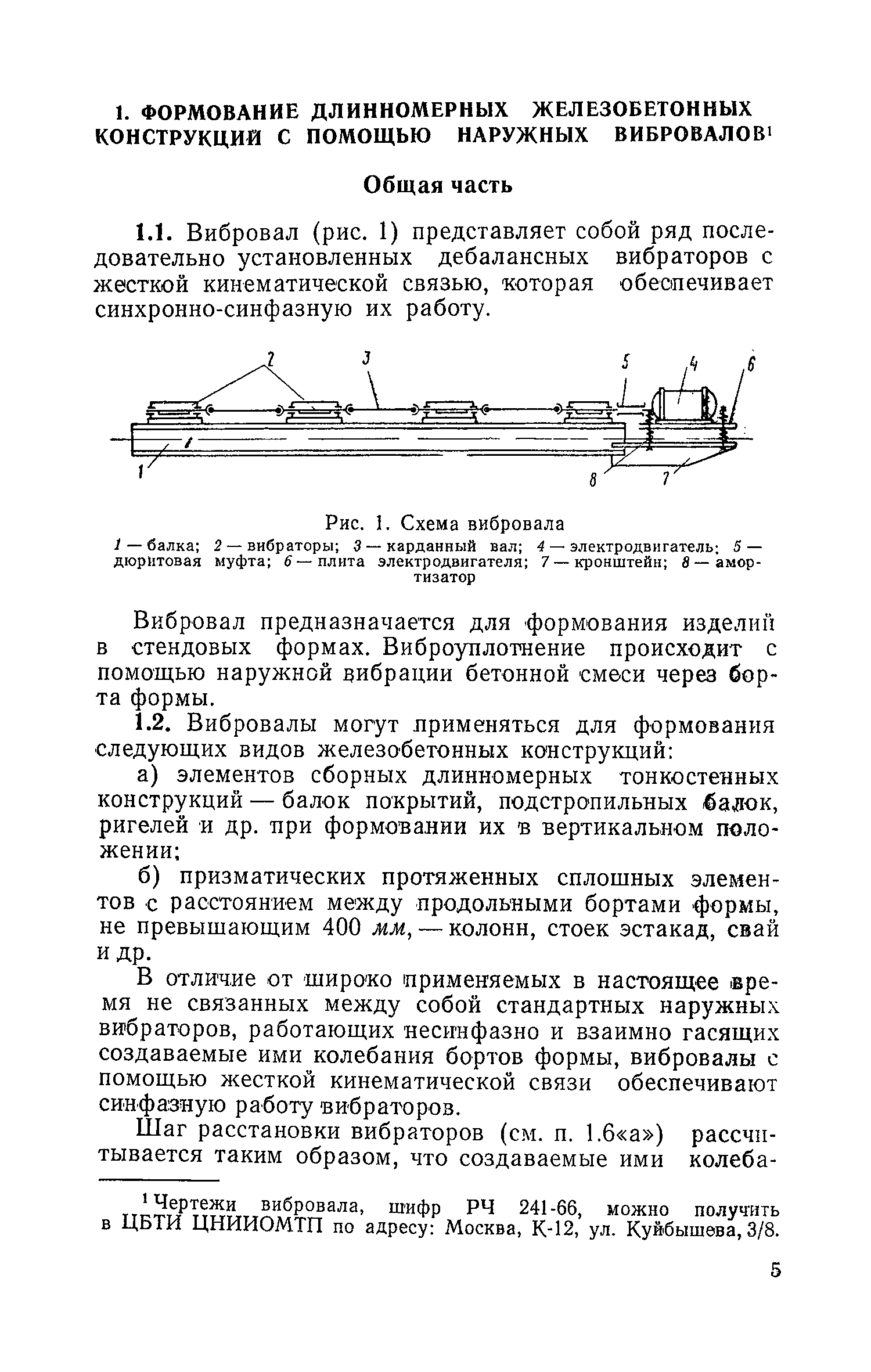 | Оглавление: | Предисловие 1. Формование длкиномерньх железобетонных конструкций с помощью наружных вибровалов 2. Формование круоноразмерных железобетонных конструкций на виброплощадках 3. Формование длинномерных железобетонных конструкций на вибрационных резонансных установках продольно-горизонтального вибрирования 4. Формование длинномерных железобетонных конструкций с помощью вибрирующего днища формы (способ "вибропоршня") 5. Формование тонкостенных плит и оболочек скользящими виброштампами Приложение 1. Пример подбора параметров виброустановки с продольно-горизонтальными колебаниями Приложение 2. Пример расчета вибрирующего днища вибропоршневой установки Приложение 3. Пример подбора параметров скользящего виброштампа I группы Приложение 4. Пример подбора параметров скользящего виброштампа II группы |