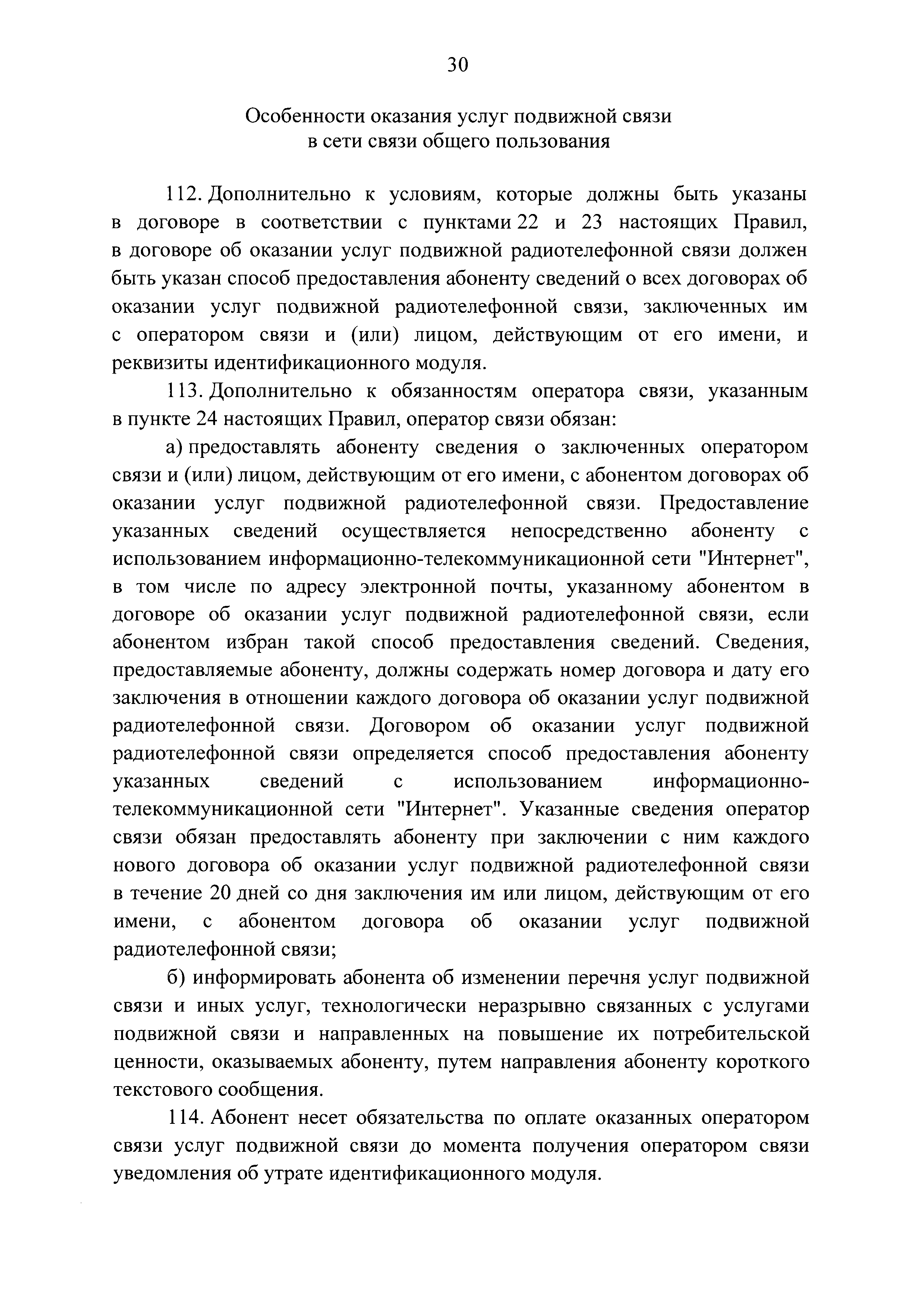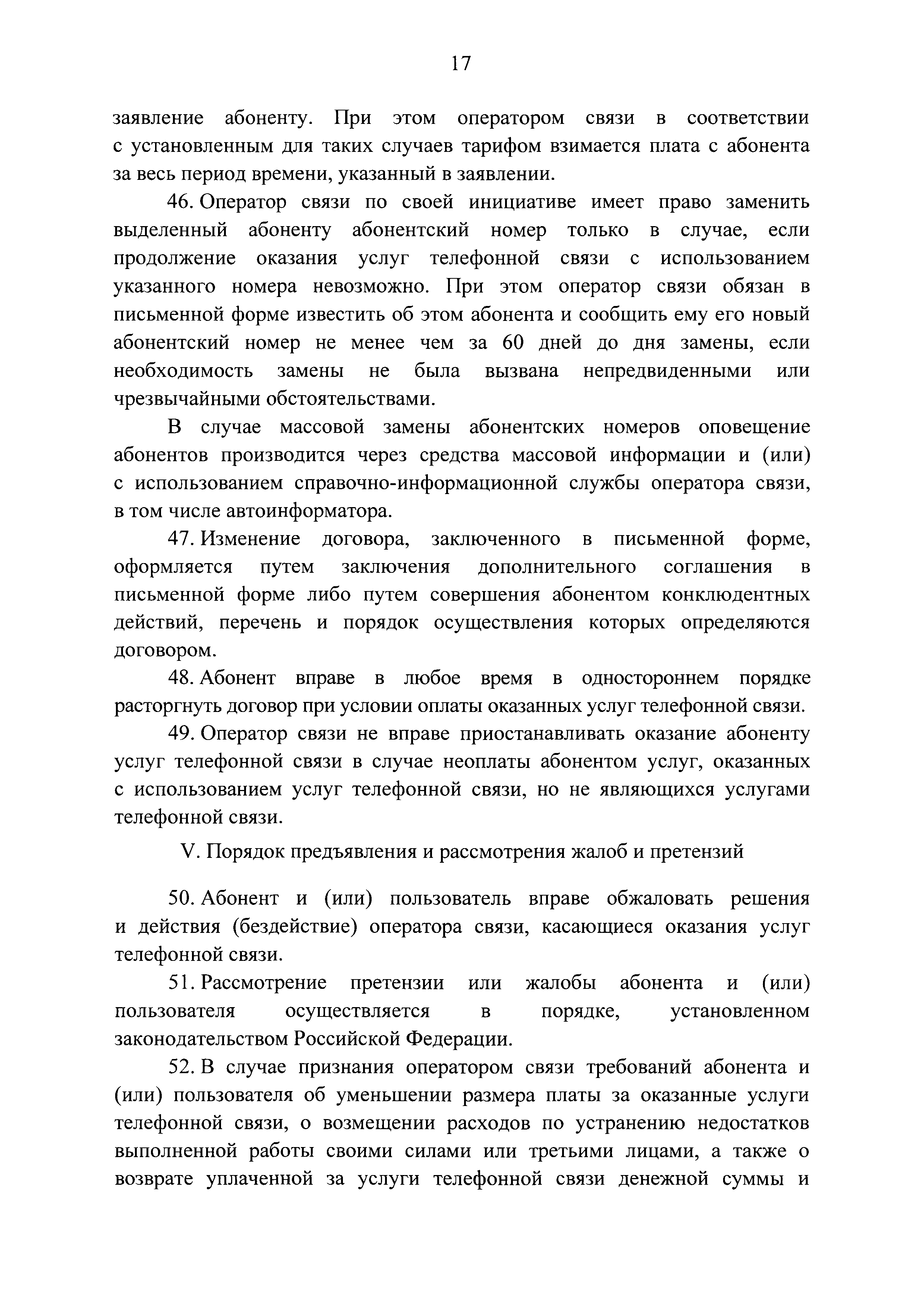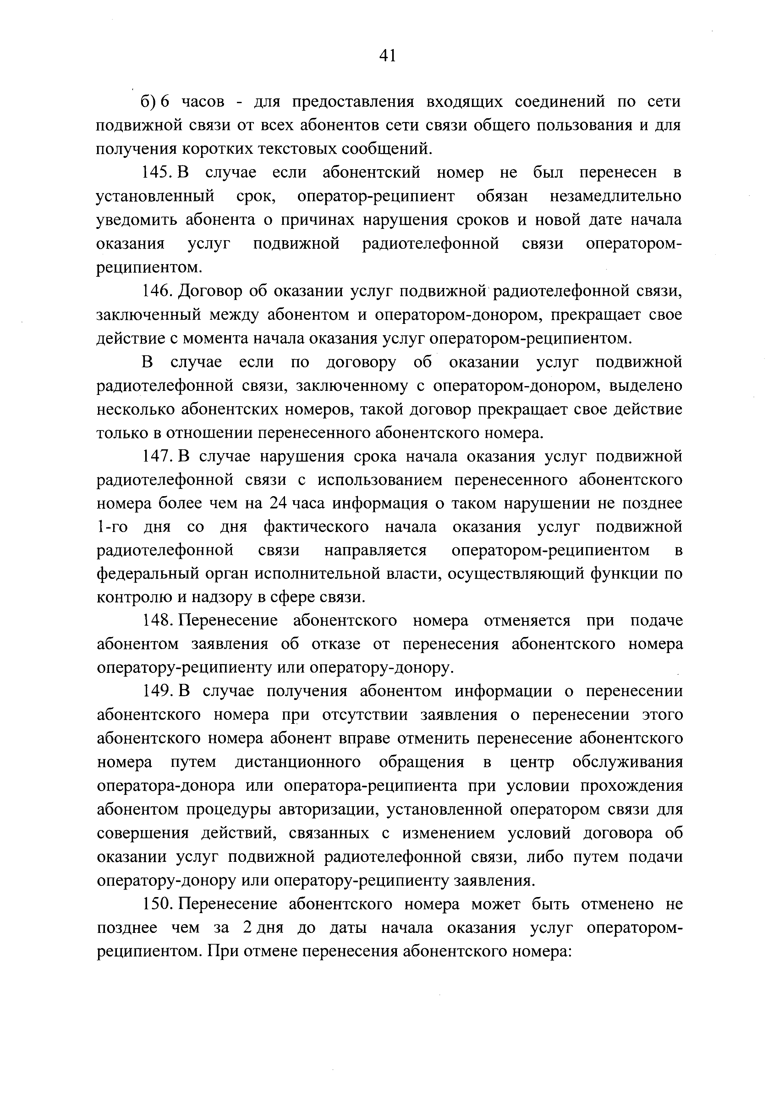 | Оглавление: | I. Общие положения II. Порядок и условия заключения договора III. Порядок и условия исполнения договора Права и обязанности сторон при исполнении договора Форма и порядок расчетов за оказанные услуги телефонной связи IV. Порядок и условия приостановления оказания услуг телефонной связи, изменения и расторжения договора V. Порядок предъявления и рассмотрения жалоб и претензий VI. Ответственность сторон VII. Особенности оказания услуг телефонной связи Особенности оказания услуг местной телефонной связи Особенности оказания услуг местной телефонной связи абоненту-гражданину Особенности оказания услуг внутризоновой, междугородной и международной телефонной связи Особенности оказания услуг местной, внутризоновой, междугородной и международной телефонной связи с использованием средств коллективного доступа Особенности оказания услуг подвижной связи в сети связи общего пользования Приложение |