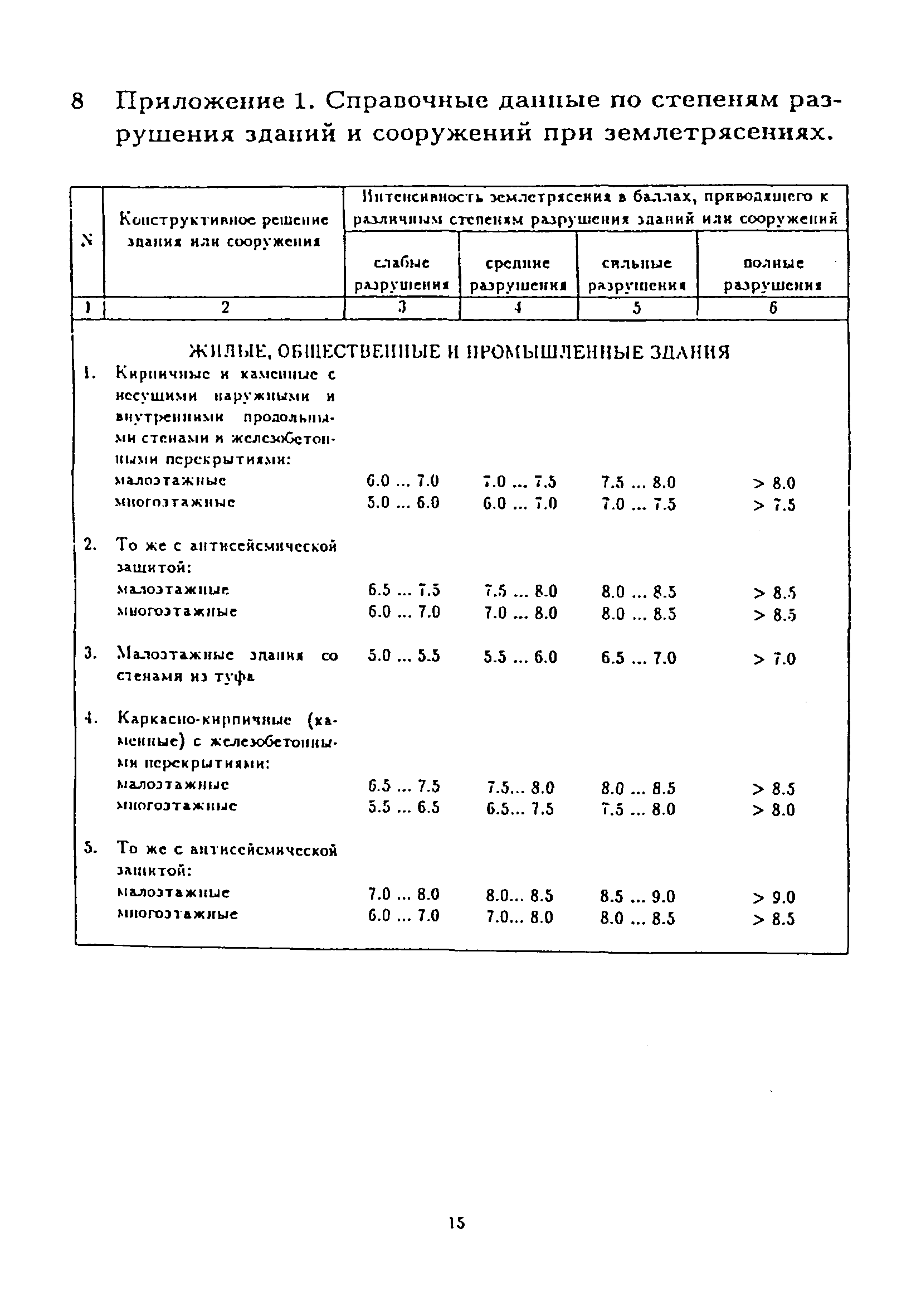 | Оглавление: | 1 Назначение методики 2 Общие положения 3 Состав и содержание исходных данных 4 Определение параметров поражающих факторов землятресений 5 Оценка характера и степеней разрушения зданий и сооружений 5.1 Точечные объекты 5.2 Площадные объекты 5.3 Протяженные объекты 5.4 Учет динамики разрушения зданий и сооружений 6 Состав и содержание результатов оценки последствий землятресений 7 Пример оценки последствий землятресения на территории города 8 Приложение 1. Справочные данные по степеням разрушения зданий и сооружений при землятресениях 9 Приложение 2. Характеристика степеней разрушения зданий и сооружений 10 Приложение 3. Форма представления результатов оценки последствий землятресения 11 Список рекомендуемой литературы |