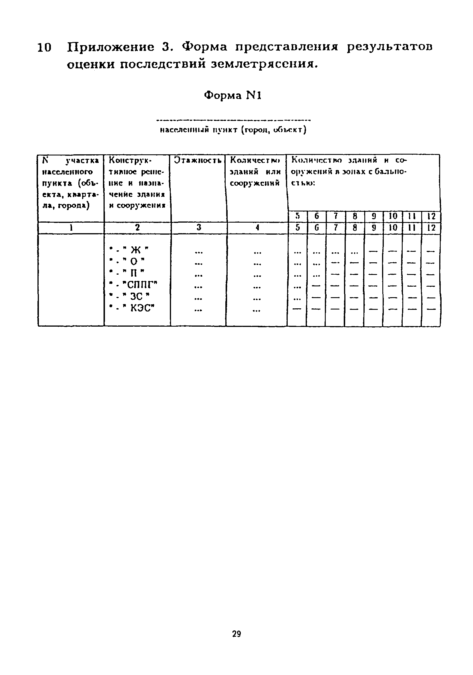 | Область применения: | Методика предназначена для: оценки и прогнозирования разрушений зданий и сооружений на территории населенного пункта; определения характеристик степеней разрушения; оперативного построения изосейст на основе сейсмического микрорайонирования; определения зоны средней бальности и бальности для различных зданий и сооружений. Методика предназначена для работников РСЧС и гражданской обороны |
