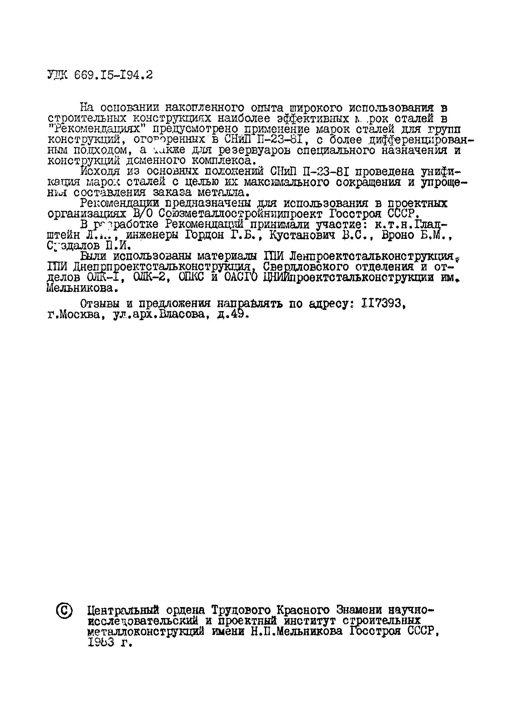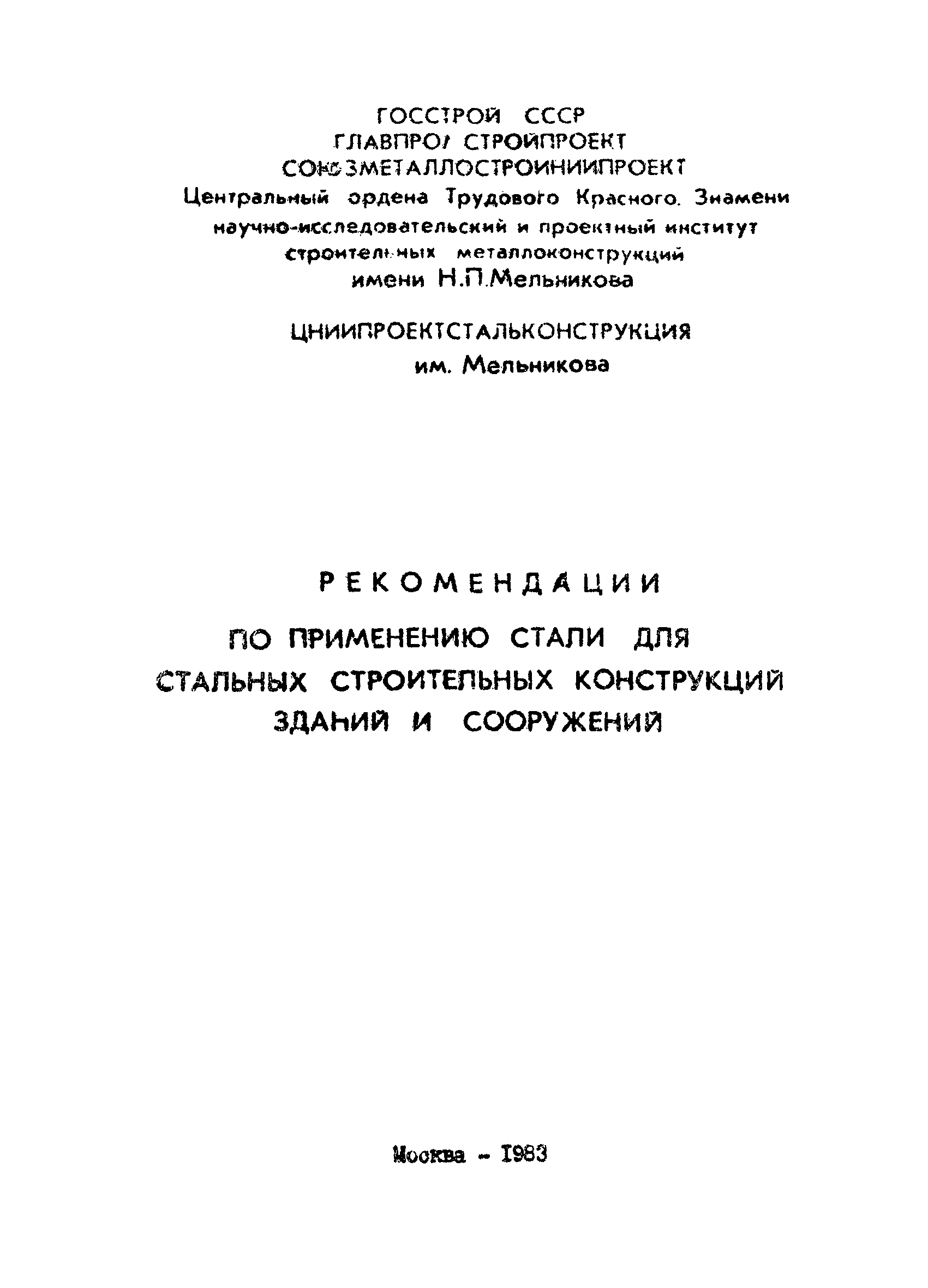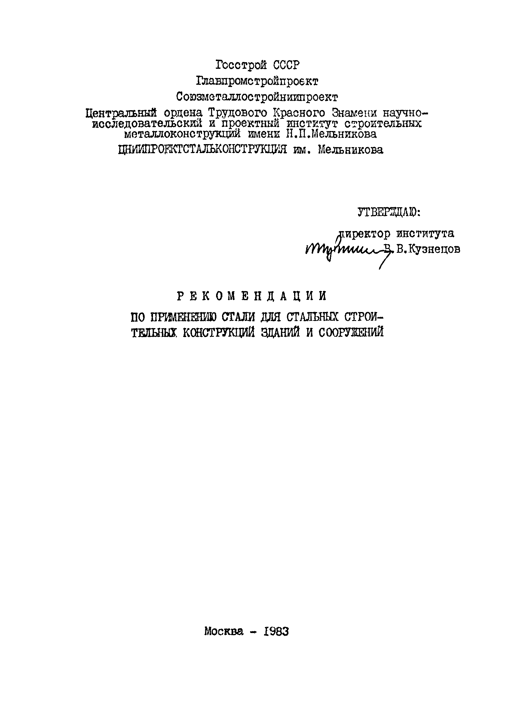 | | Утверждён: | ЦНИИпроектстальконструкция им. Мельникова