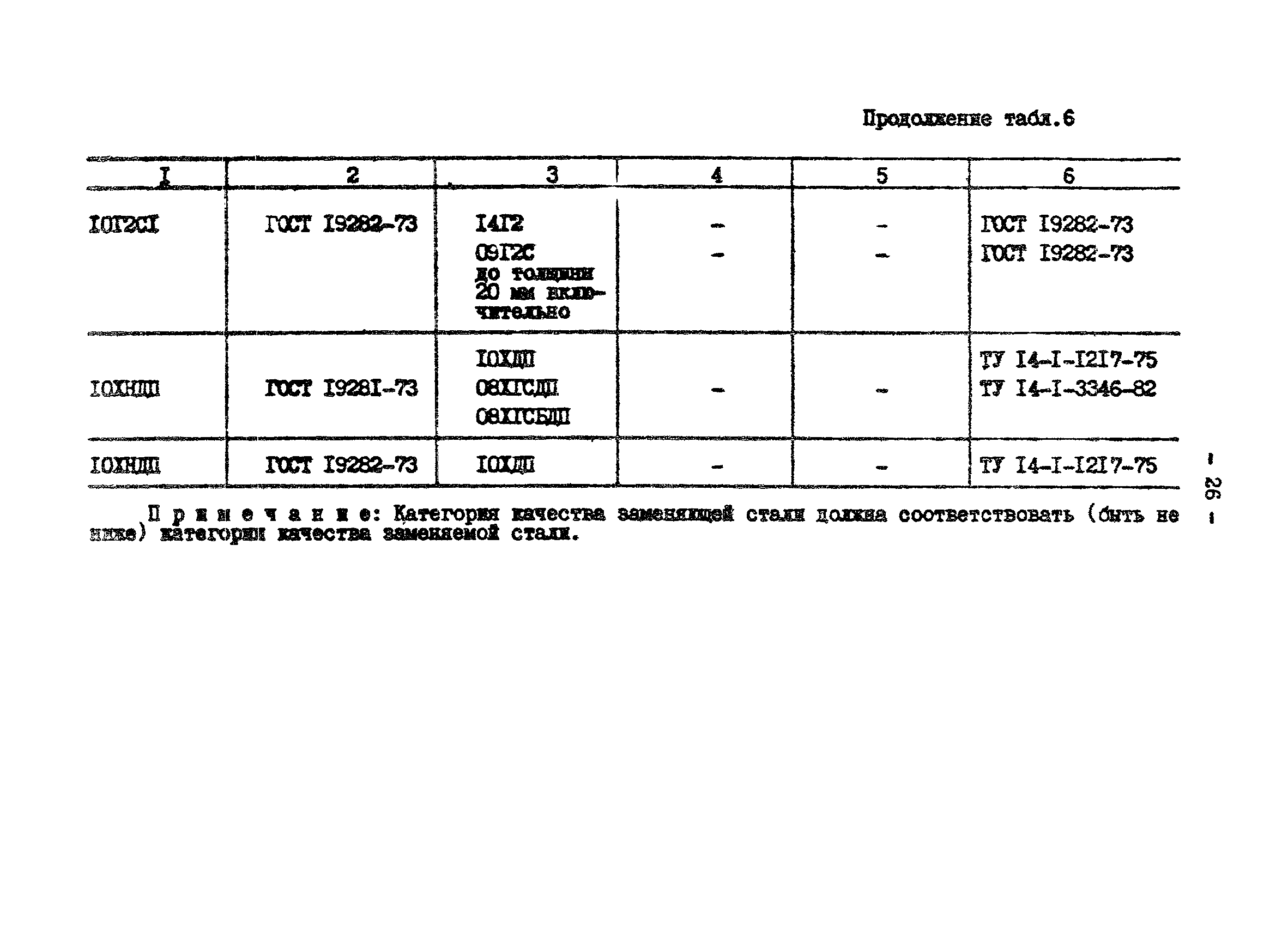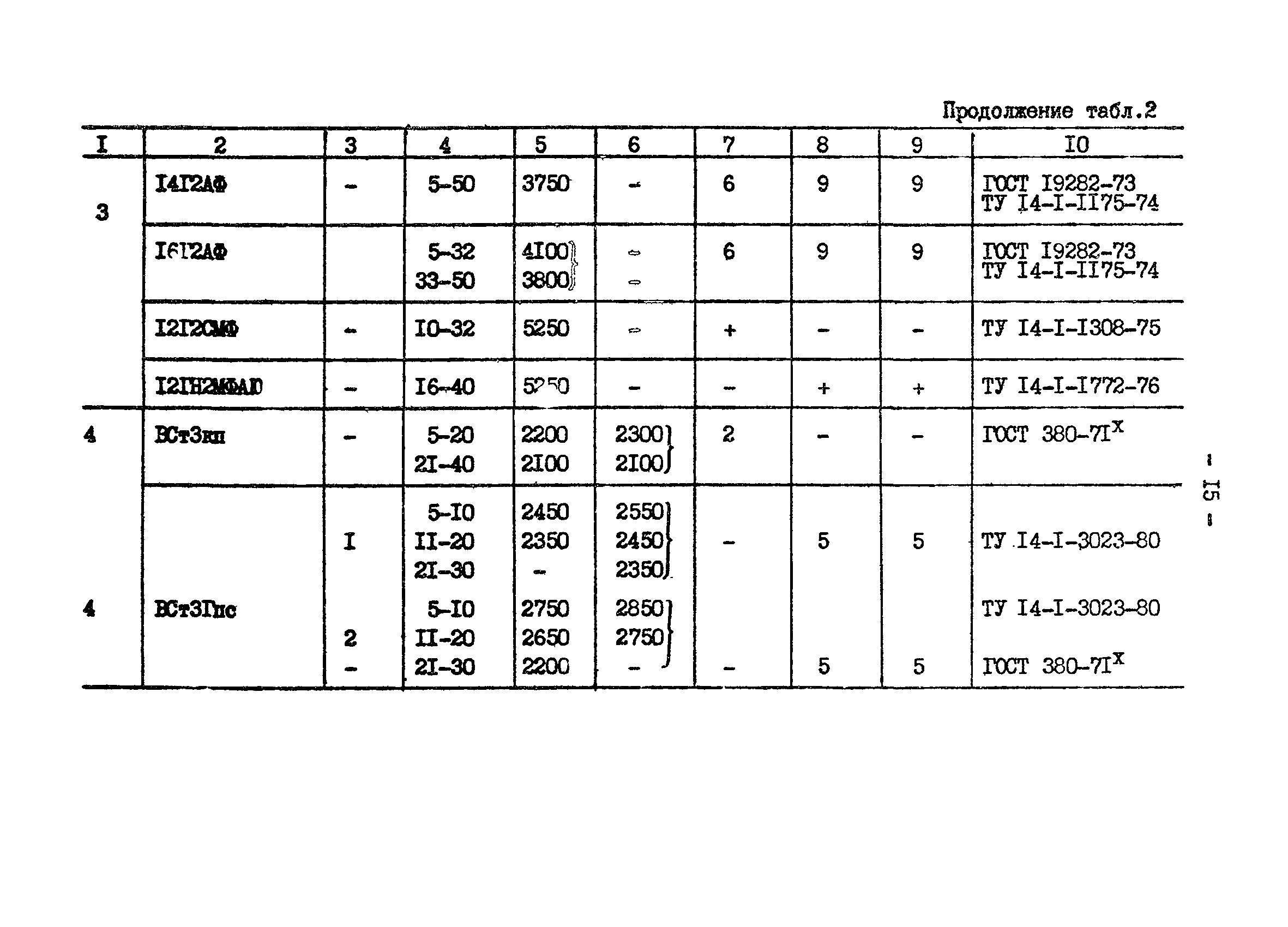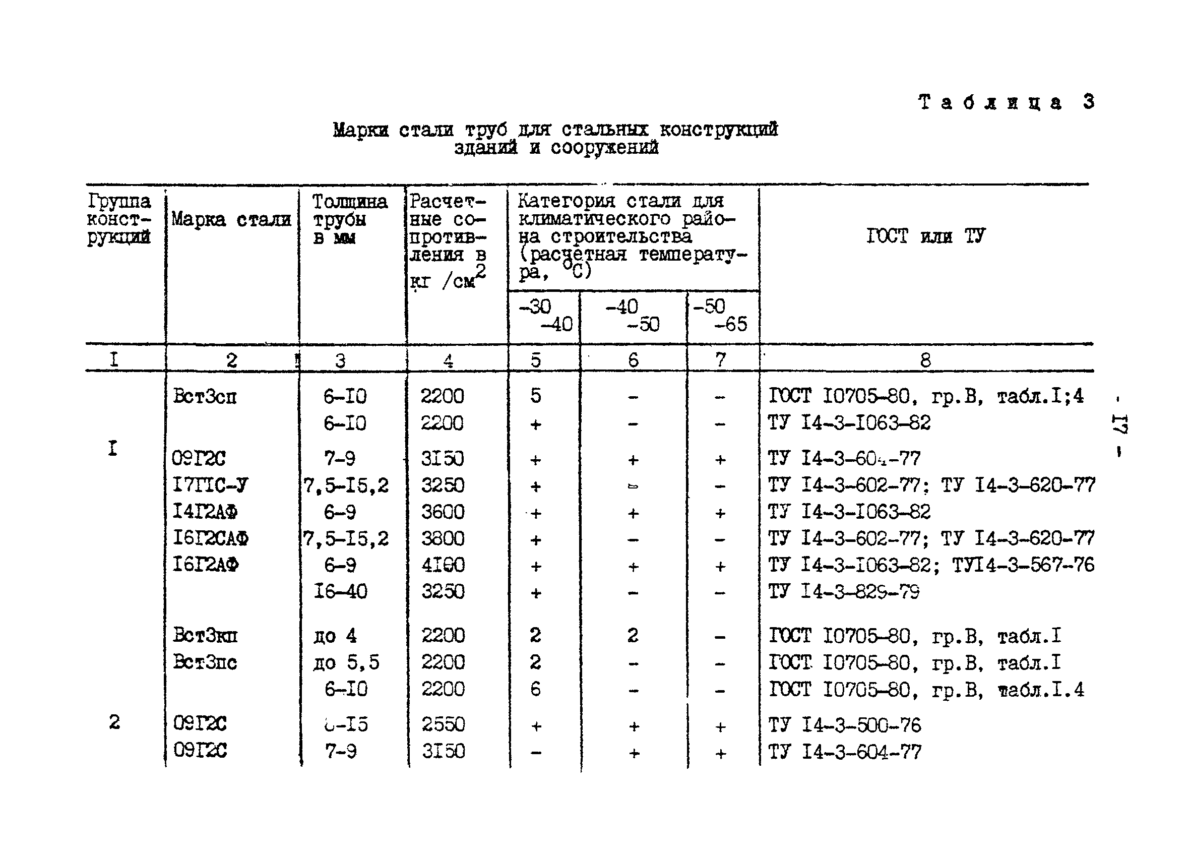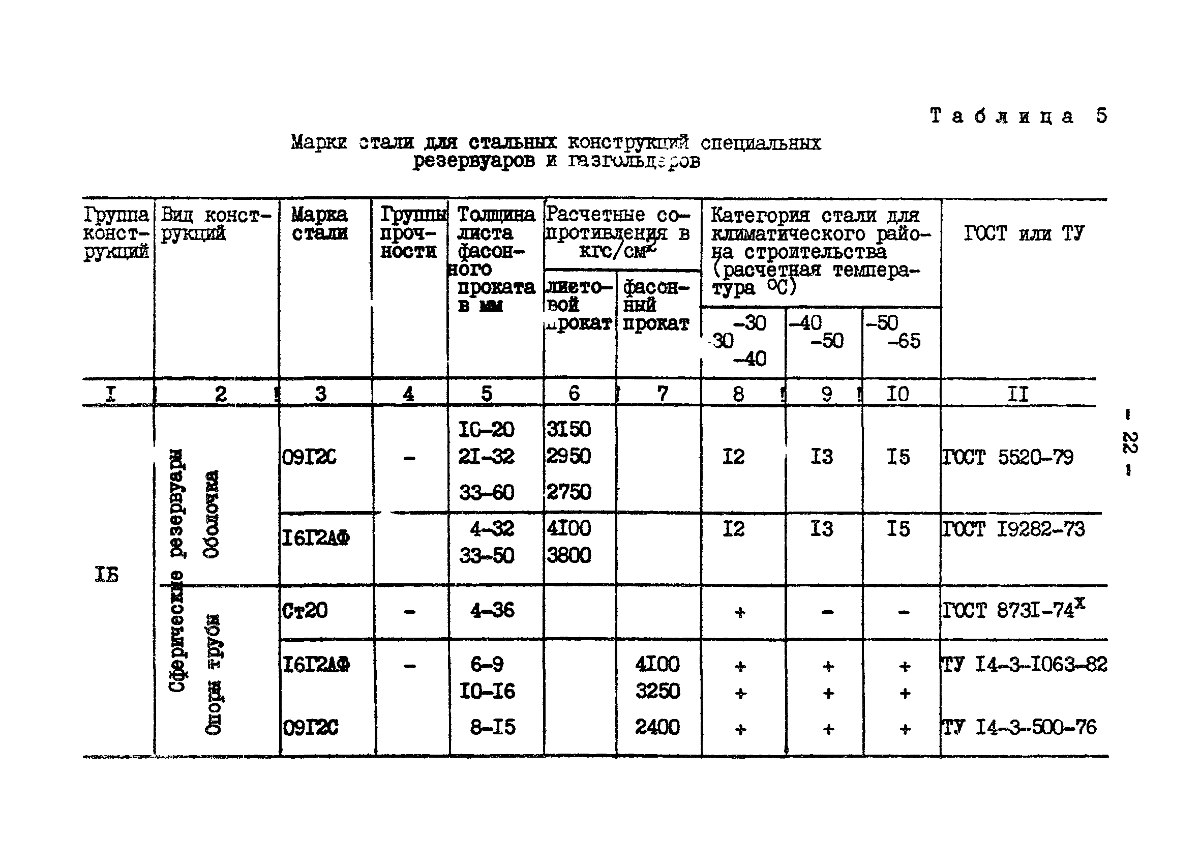 | | Нормативные ссылки: |   СНиП II-23-81* «Стальные конструкции»  ГОСТ 24379.0-80 «Болты фундаментные. Общие технические условия»  ГОСТ 24379.1-80 «Болты фундаментные. Конструкция и размеры»  ГОСТ 7173-54 «Рельсы железнодорожные типа Р43 для путей промышленного транспорта. Конструкция и размеры»  ГОСТ 7174-75 «Рельсы железнодорожные типа Р50. Конструкция и размеры»  ГОСТ 22356-77 «Болты и гайки высокопрочные и шайбы. Общие технические условия» ГОСТ 19282-73 «Сталь низколегированная толстолистовая и широкополосная универсальная. Технические условия» ГОСТ 4121-76 «Рельсы крановые. Технические условия» ГОСТ 1050-74 «Сталь углеродистая качественная конструкционная. Технические условия» СНиП II-28-73* «Защита строительных конструкций от коррозии. Нормы проектирования»  ГОСТ 19281-73 «Сталь низколегированная сортовая и фасонная»  ГОСТ 380-71 «Сталь углеродистая обыкновенного качества. Марки и общие технические требования» ГОСТ 1759-70 «Болты, винты, шпильки и гайки» ГОСТ 23570-79 «Прокат из стали углеродистой свариваемой для строительных металлических конструкций. Технические условия» ТУ 14-105-465-82 «Сталь толстолистовая горячекатаная, термообработанная марки 14Г2АФ. Опытная партия» ТУ 14-1-3023-80 «Прокат листовой, широкополосный универсальный и фасонный из углеродистой и низколегированной стали с гарантированным уровнем механических свойств, дифференцированным по группам прочности» ТУ 14-1-389-72 «Сталь сортовая, фасонная, полосовая низколегированная марки 10ХНДП. Технические условия» ТУ 14-1-1217-75 «Сталь листовая низколегированная марок 10ХНДП и 10ХДП. Опытная партия» ГОСТ 8239-72 «Сталь горячекатаная. Балки двутавровые. Сортамент» ГОСТ 17066-80 «Прокат тонколистовой из конструкционной низколегированной стали. Технические условия» ГОСТ 18267-82 «Рельсы железнодорожные типов Р50, Р65 и Р75 широкой колеи, термообработанные путем объемной закалки в масле. Технические условия»  ГОСТ 4121-96 «Рельсы крановые. Технические условия»  ГОСТ 5520-79 «Прокат листовой из углеродистой, низколегированной и легированной стали для котлов и сосудов, работающих под давлением. Технические условия»  ГОСТ 5632-72 «Стали высоколегированные и сплавы коррозионно-стойкие, жаростойкие и жаропрочные. Марки»  ГОСТ 10705-80 «Трубы стальные электросварные. Технические условия»  ГОСТ 10706-76 «Трубы стальные электросварные прямошовные. Технические требования»  ГОСТ 8731-74 «Трубы стальные бесшовные горячедеформированные. Технические требования»