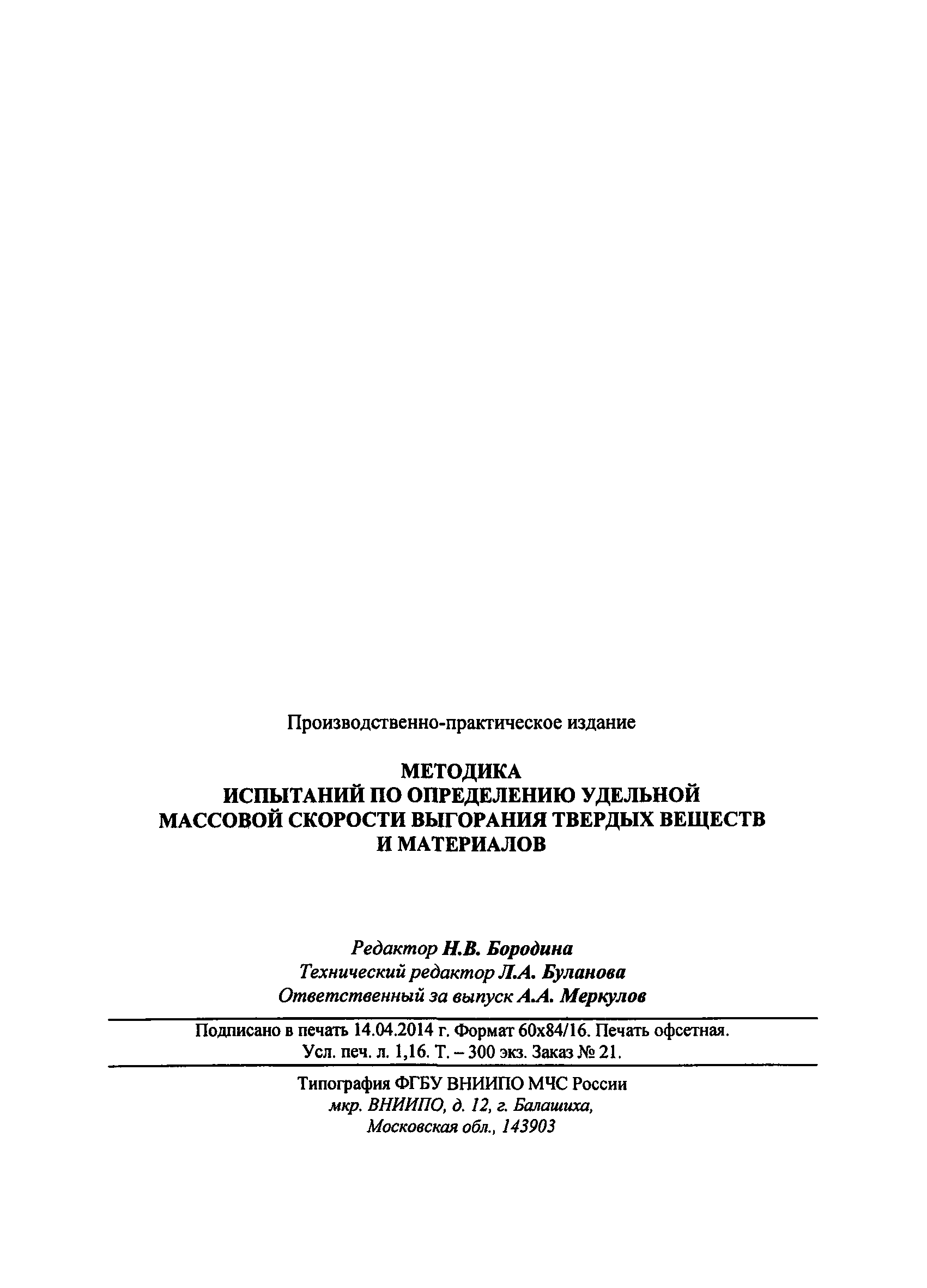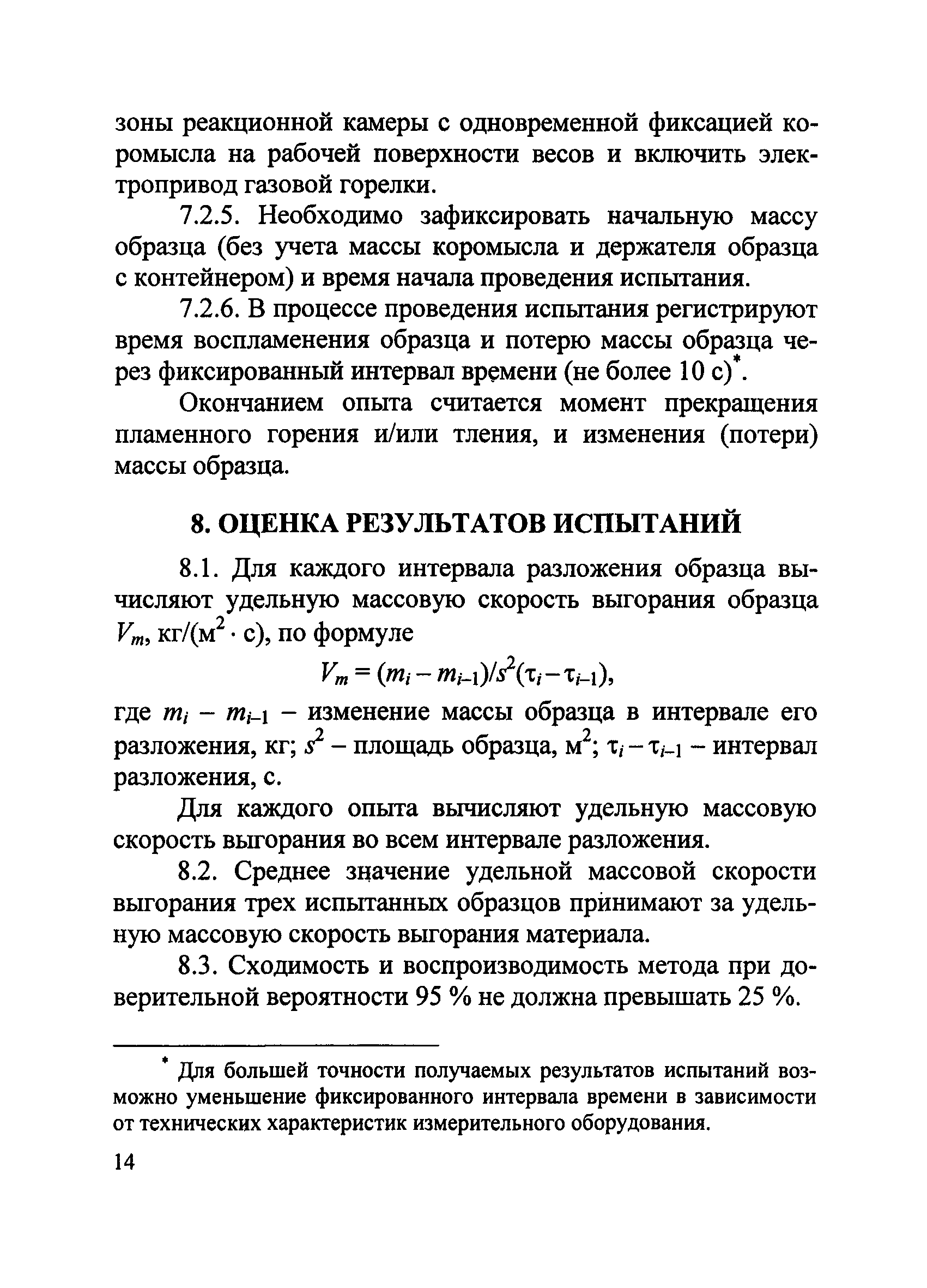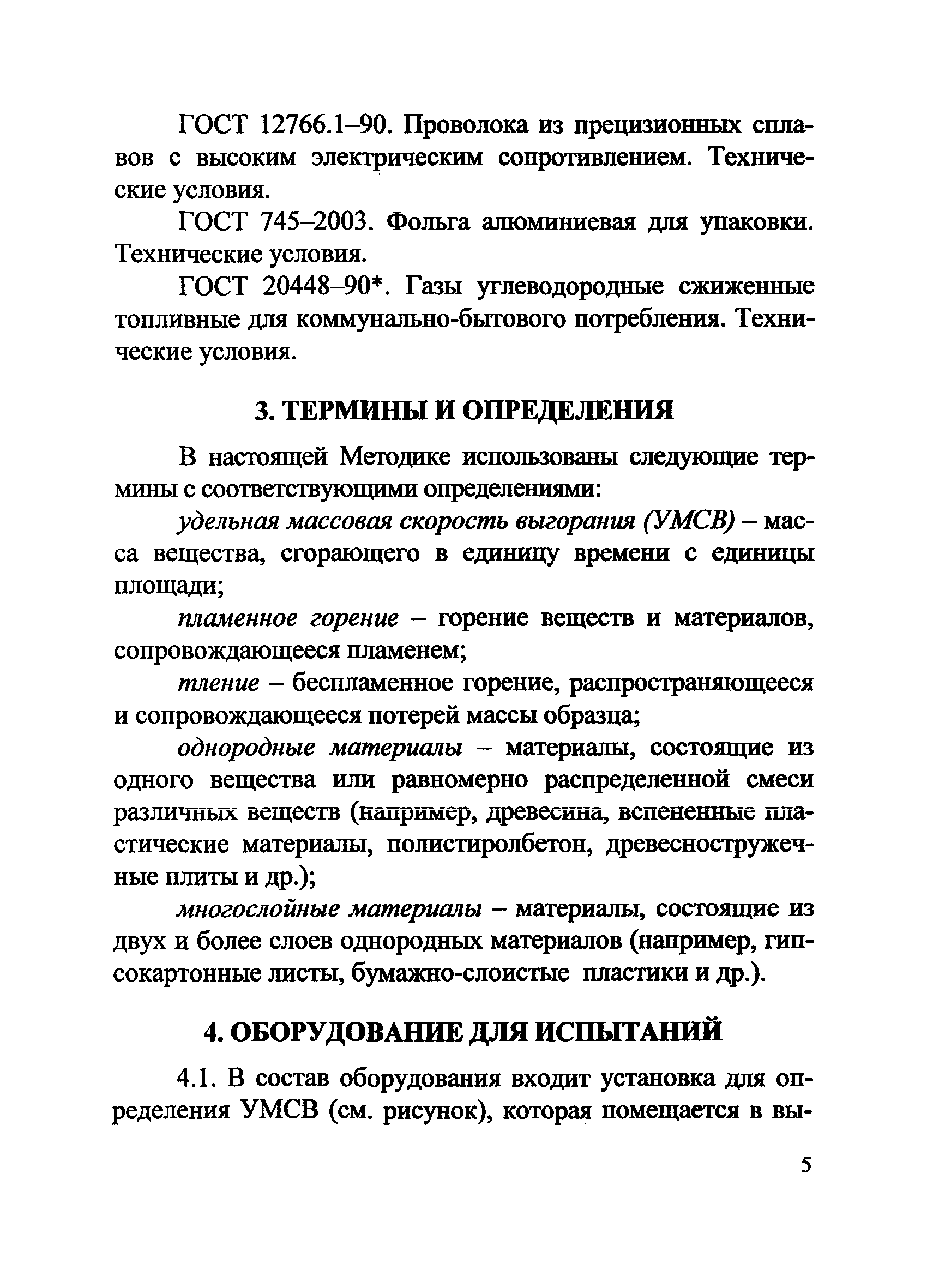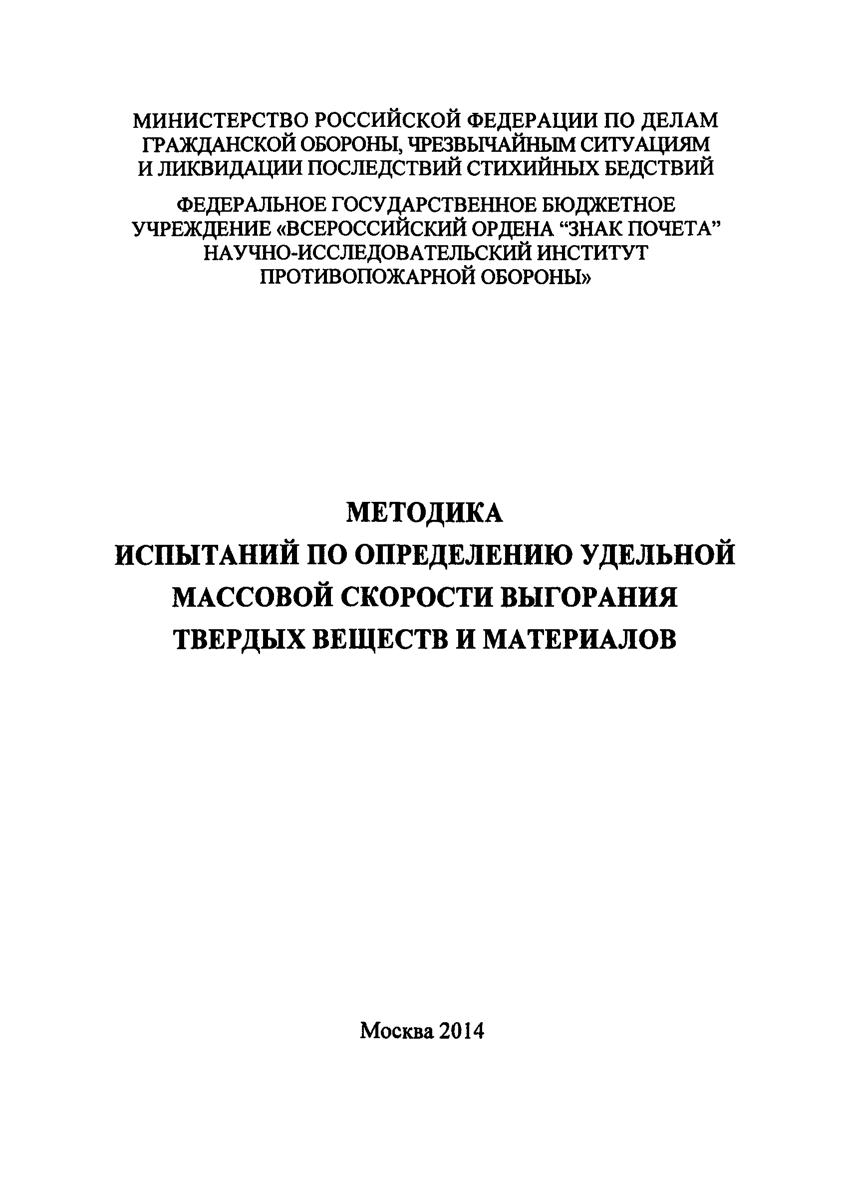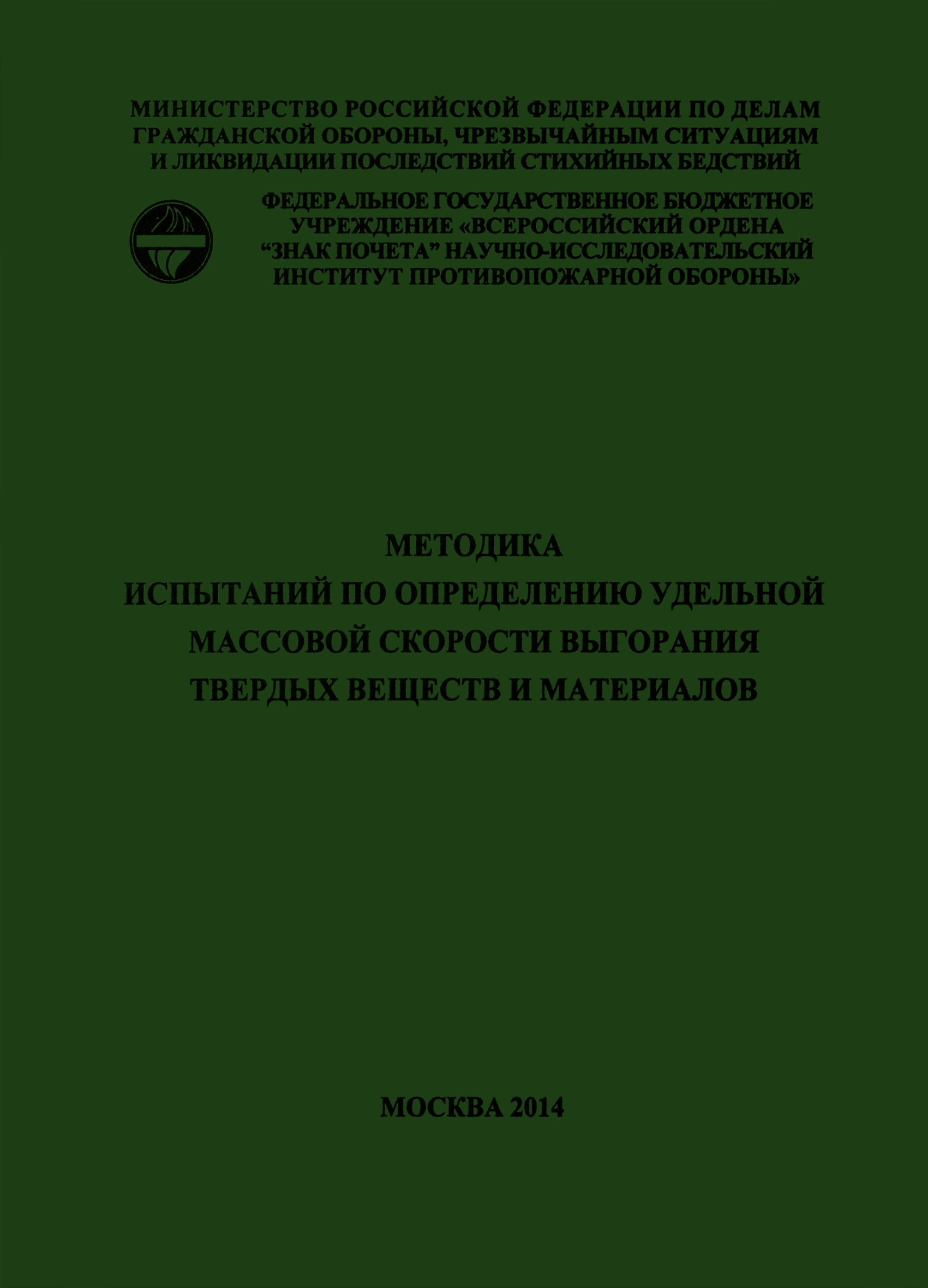 | Название рус.: | Методика испытаний по определению удельной массовой скорости выгорания твердых веществ и материалов |