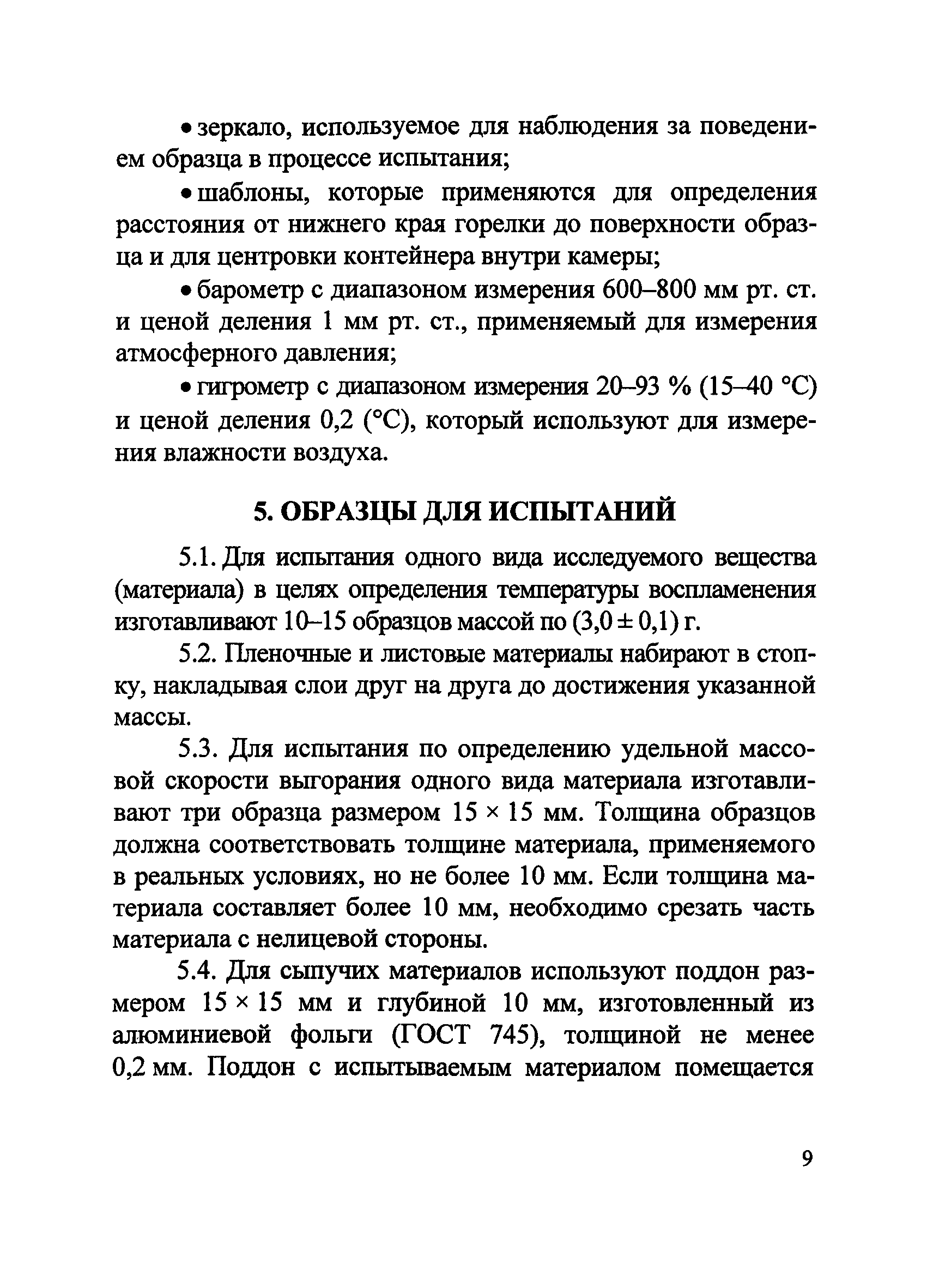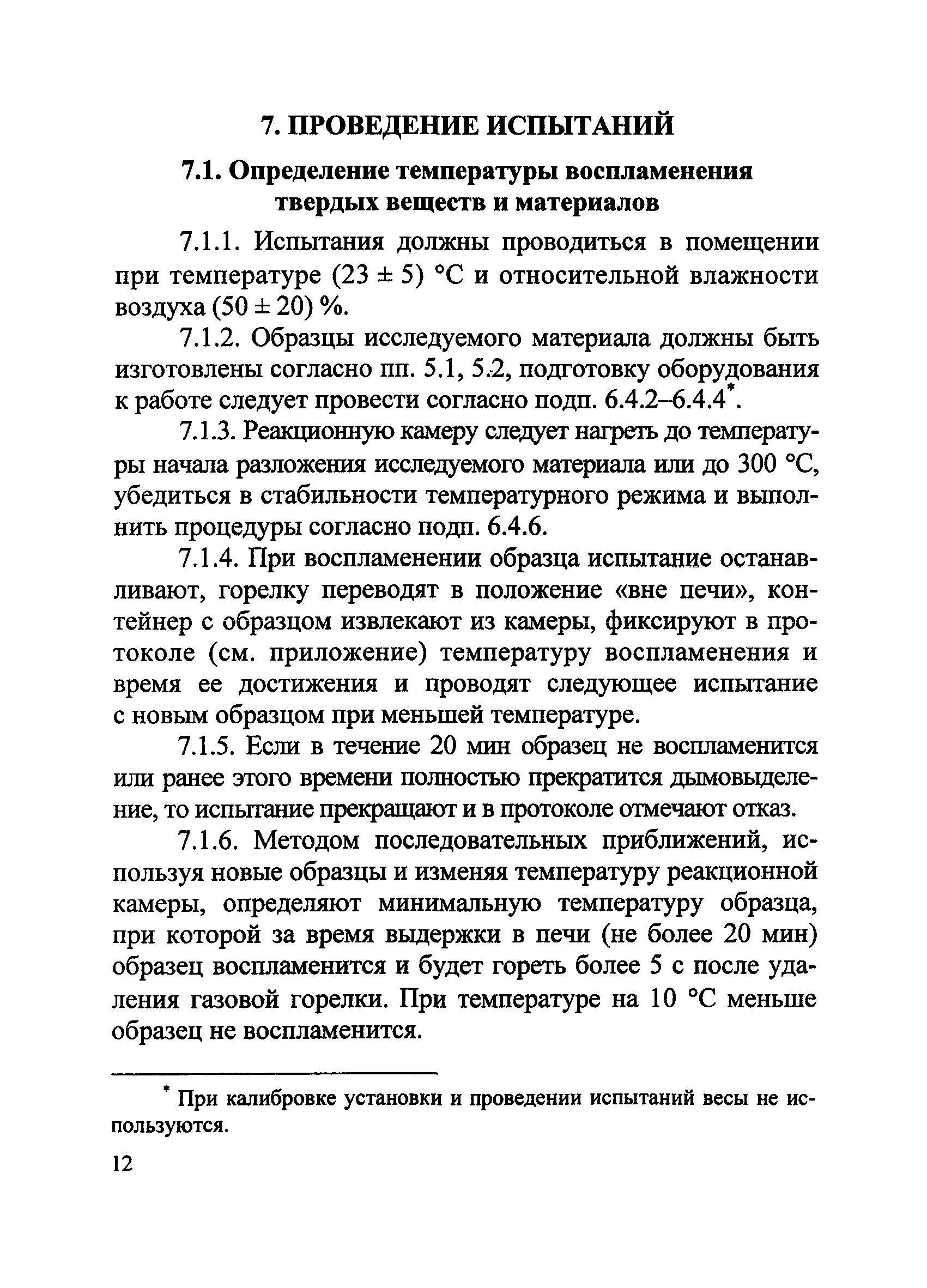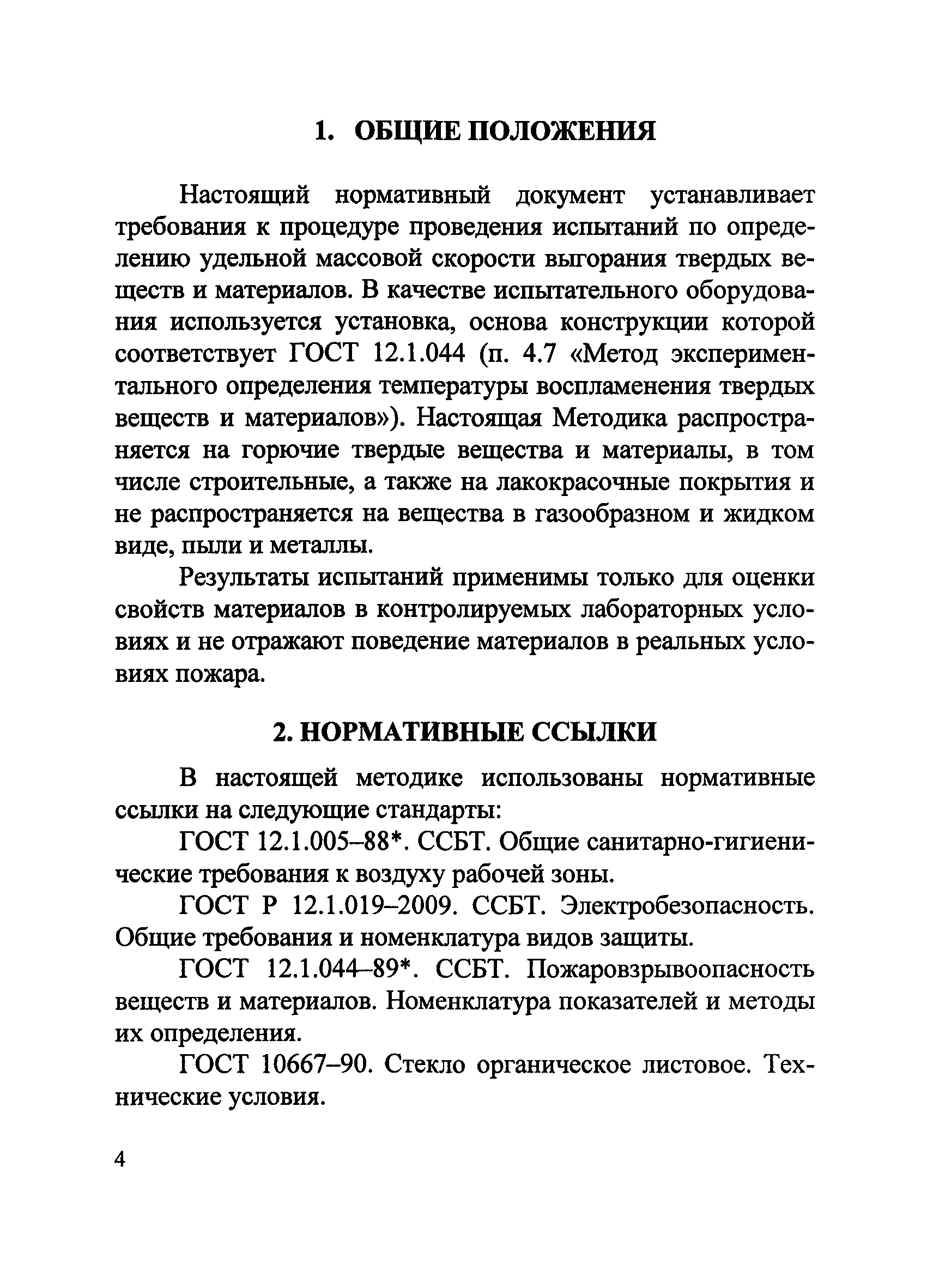 | Оглавление: | 1. Общие положения 2. Нормативные ссылки 3. Термины и определения 4. Оборудование для испытаний 5. Образцы для испытаний 6. Калибровка установки 7. Проведение испытаний 7.1. Определение температуры воспламенения твердых веществ и материалов 7.2. Определение удельной массовой скорости выгорания твердых веществ и материалов 8. Оценка результатов испытаний 9. Оформление протокола испытаний 10. Требования безопасности Приложение (рекомендуемое). Форма протокола испытаний |