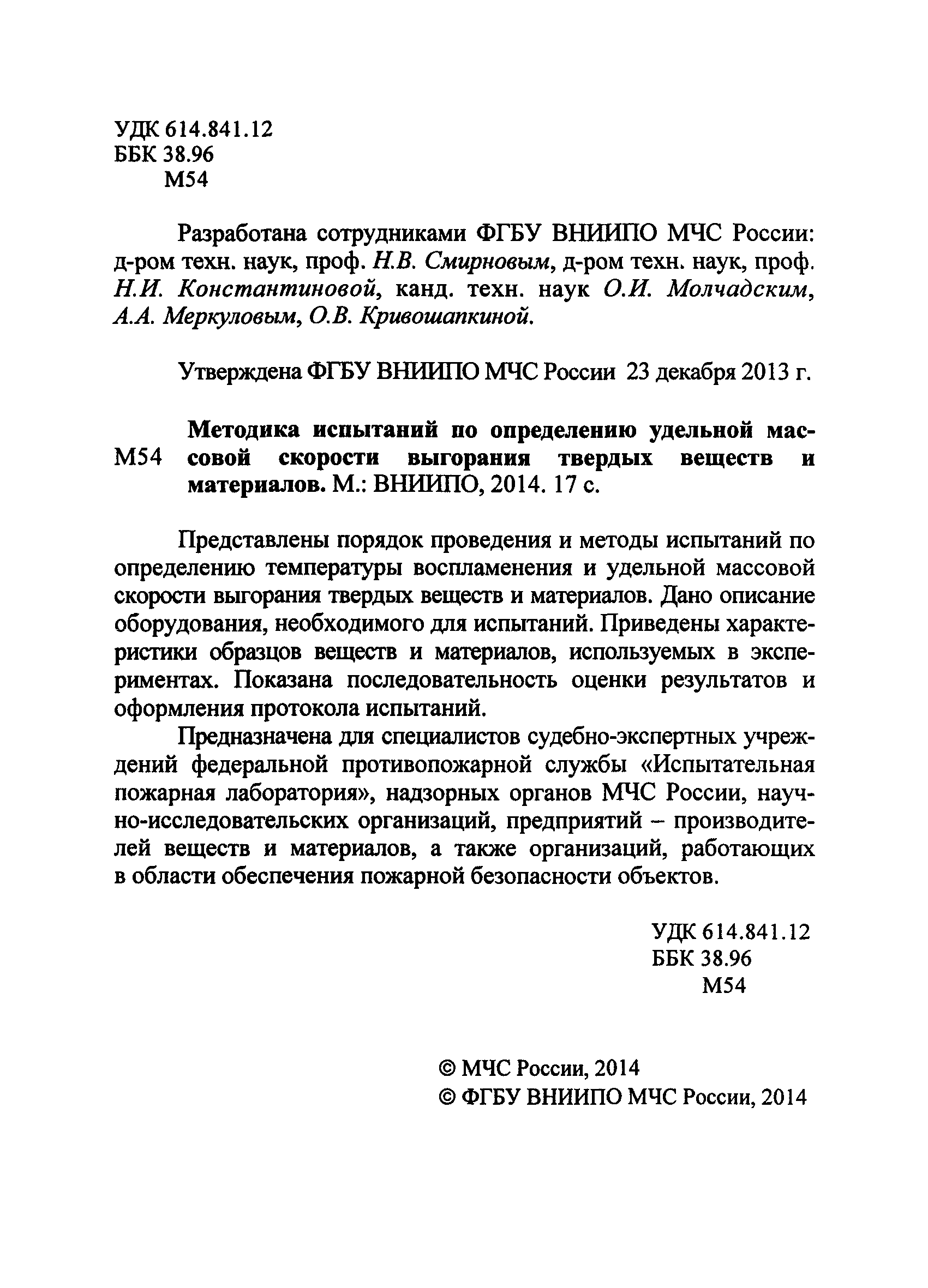 | Утверждён: | 23.12.2013 ФГБУ ВНИИПО МЧС России |