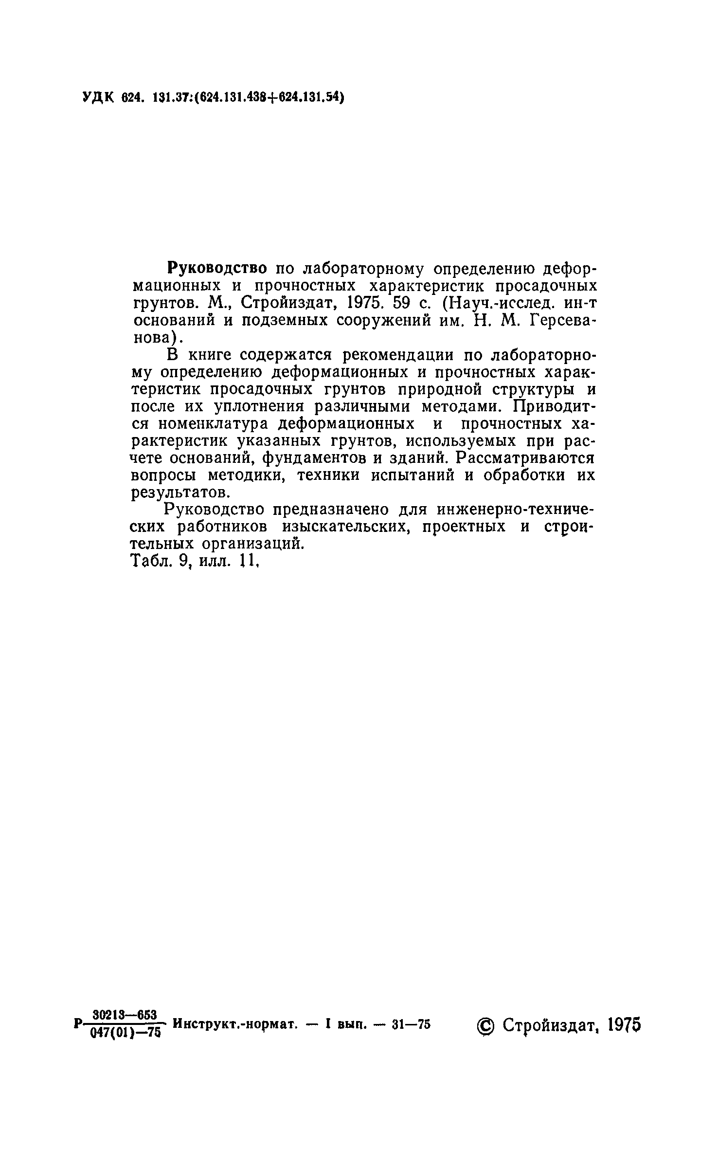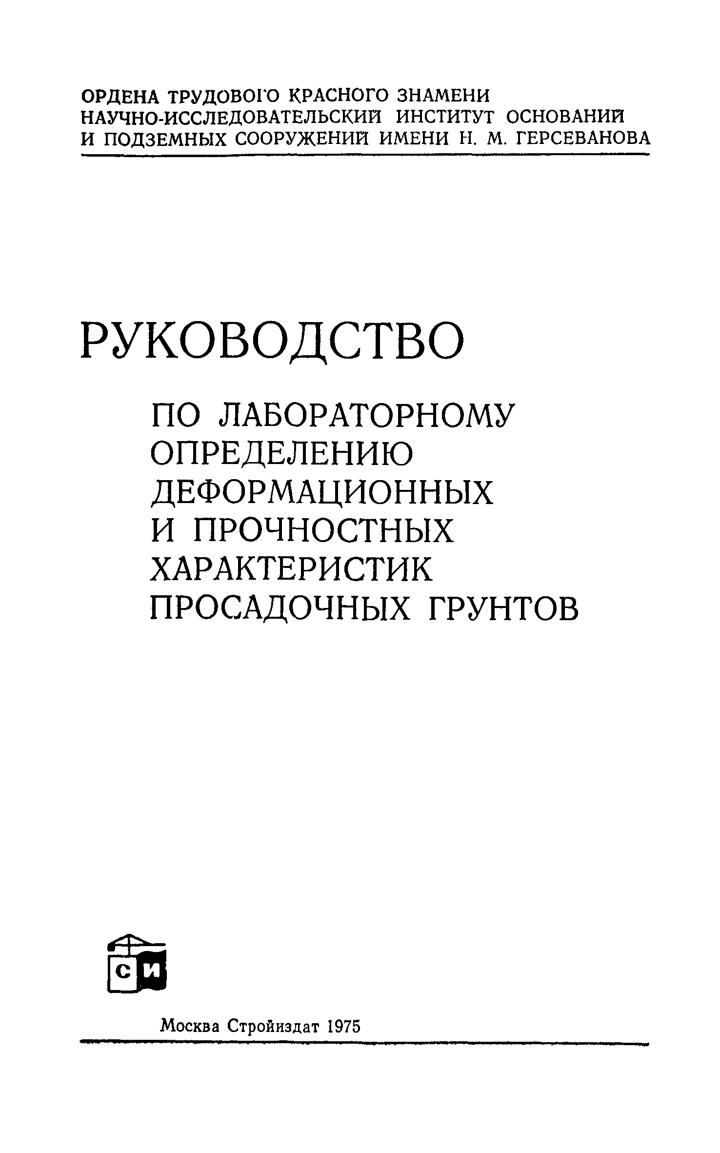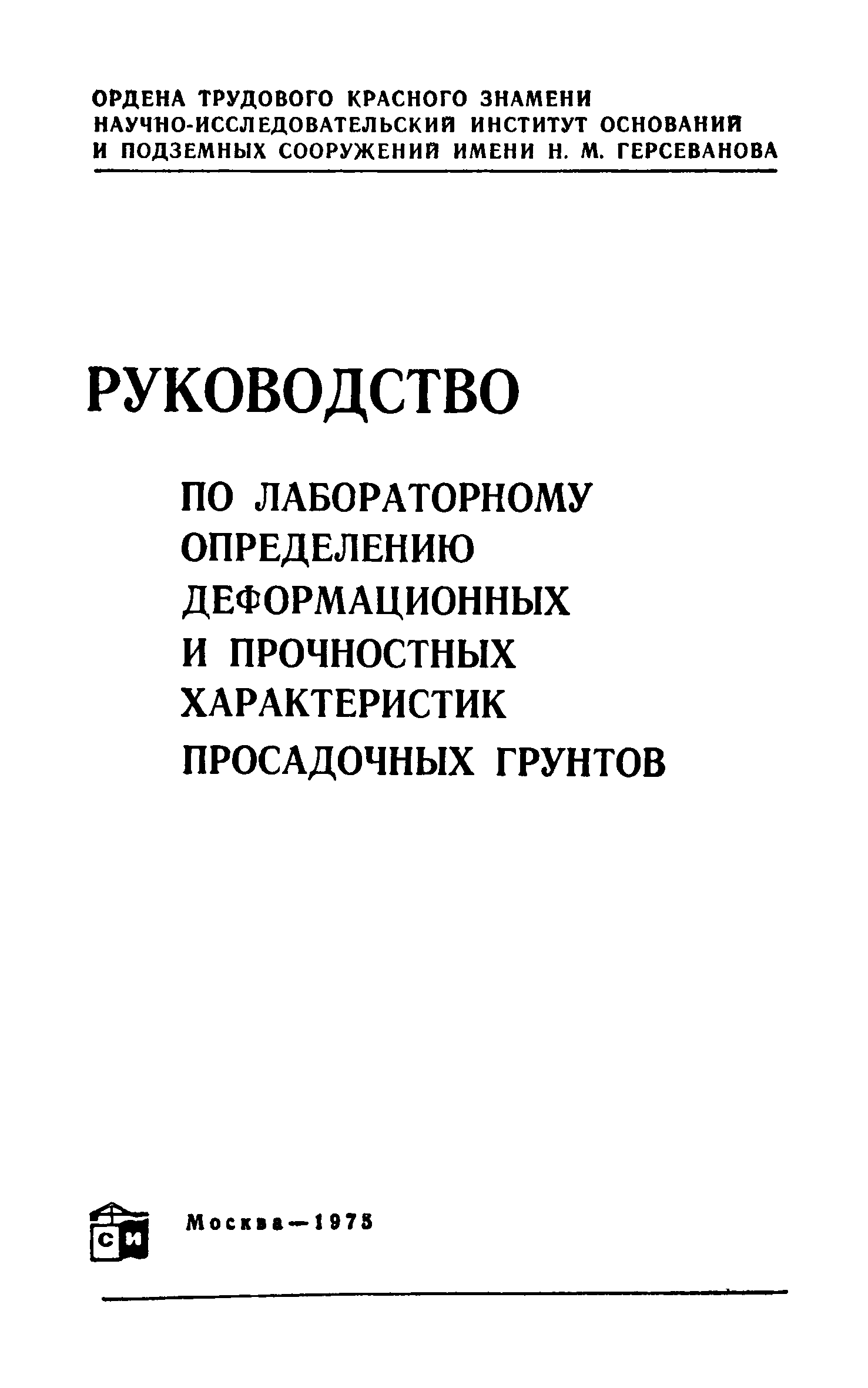 | Название рус.: | Руководство по лабораторному определению деформационных и прочностных характеристик просадочных грунтов |