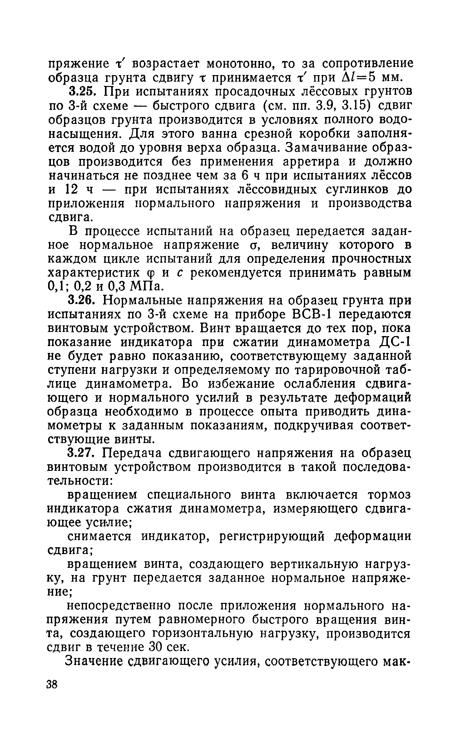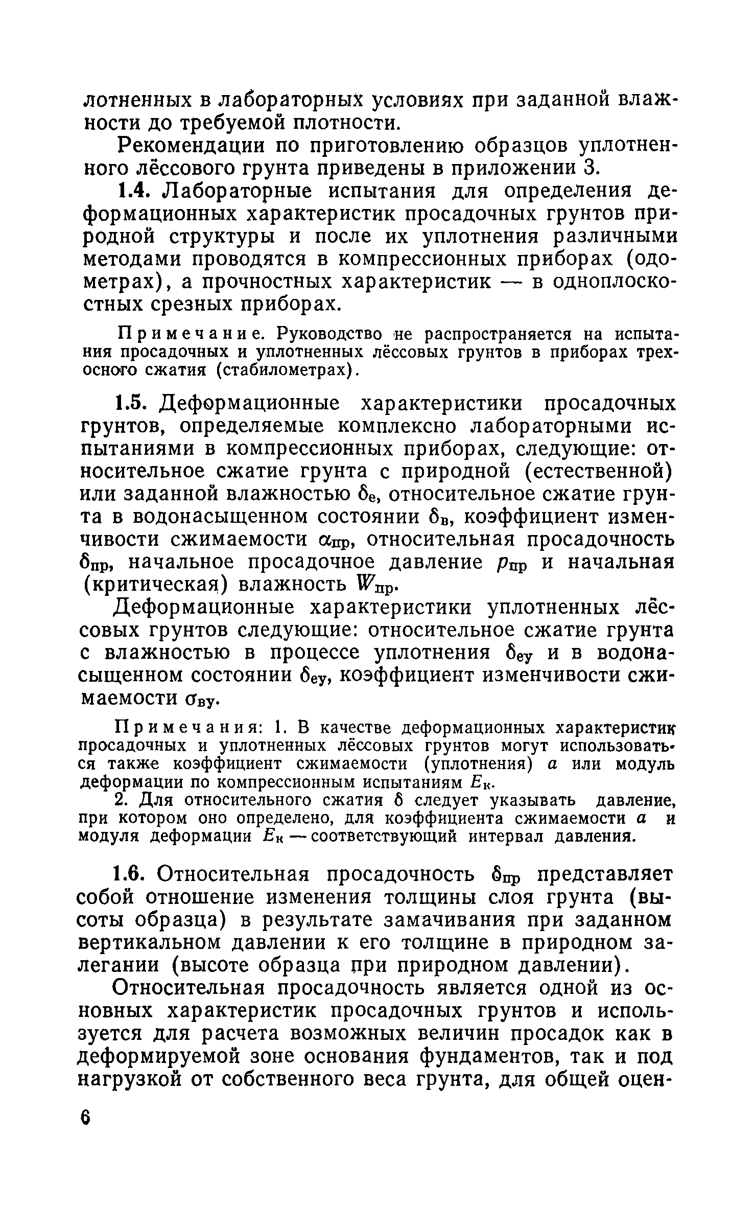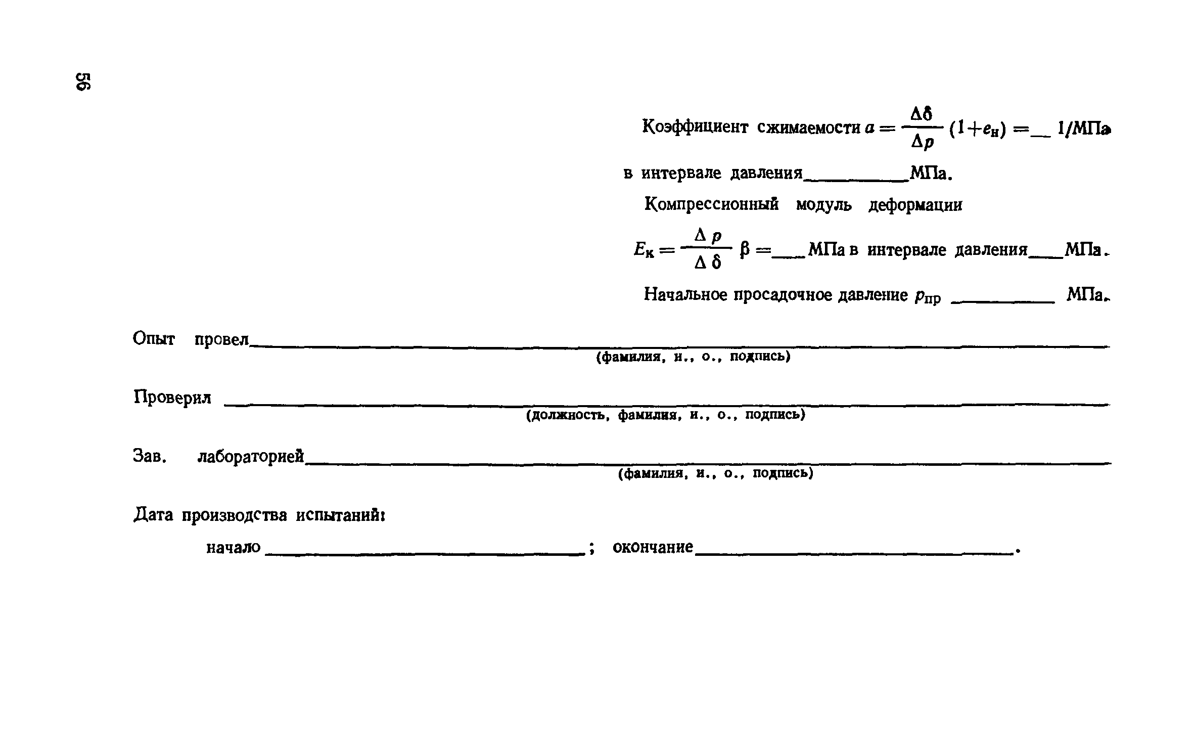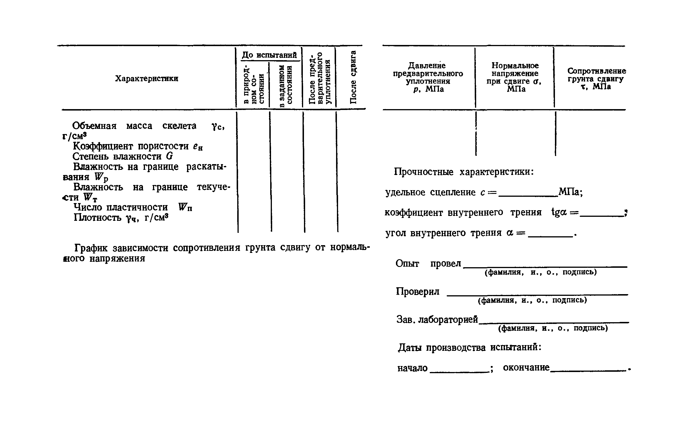 | Оглавление: | Введение 1 Общие положения 2 Определение деформационных характеристик просадочных грунтов Методы испытаний Требования к компрессионным приборам и подготовке образцов грунта для испытаний Проведение испытаний Обработка результатов испытаний 3 Определение прочностных характеристик просадочных грунтов Схемы испытаний Требования к срезным приборам и подготовке образцов грунта для испытаний Проведение испытаний Обработка результатов испытаний Приложение 1. Соотношение между некоторыми единицами физических величин, подлежащими изъятию, и единицами СИ Приложение 2. Рекомендации по обработке данных о развитии деформаций просадочных грунтов во времени при испытаниях в компрессионном приборе Приложение 3. Рекомендации по приготовлению образцов уплотненного лёссового грунта Приложение 4. Журнал испытаний просадочного грунта в компрессионном приборе Приложение 5. Журнал испытаний просадочного грунта в срезном приборе по схемам медленного сдвига Приложение 6. Журнал испытаний просадочного грунта в срезном приборе по схеме быстрого сдвига Приложение 7. Паспорт испытаний просадочного грунта в компрессионном приборе Приложение 8. Паспорт испытаний просадочного грунта в срезном приборе |