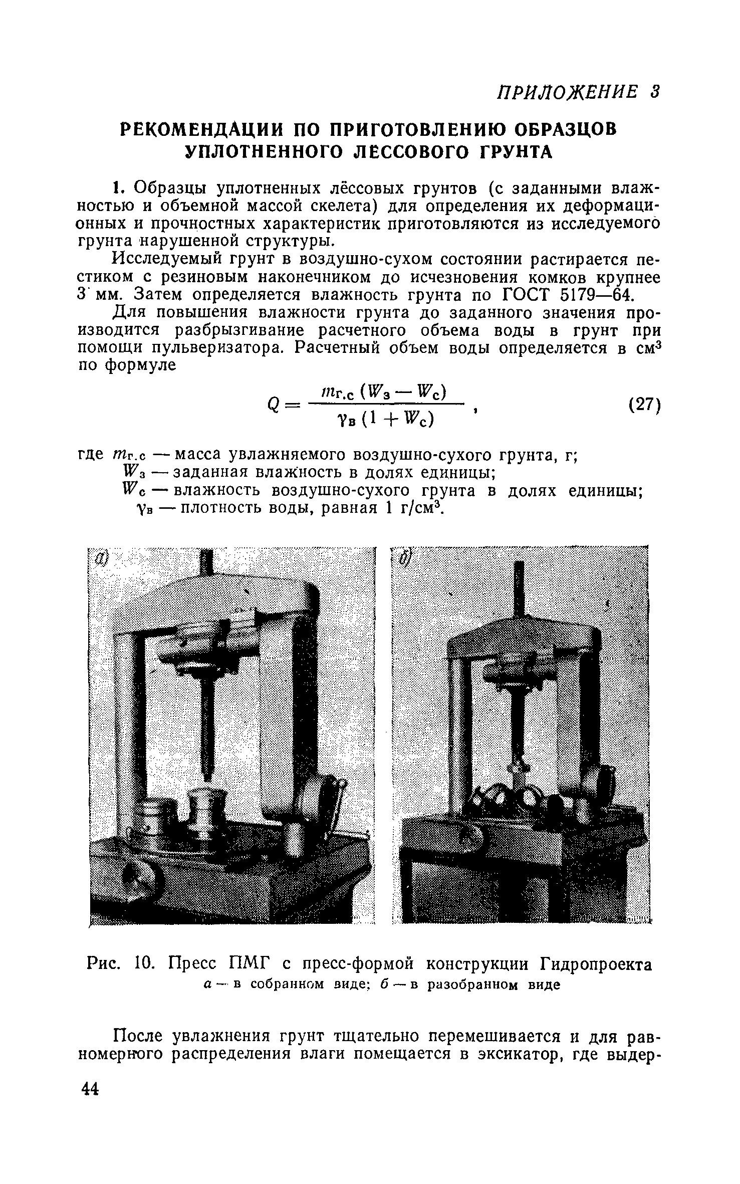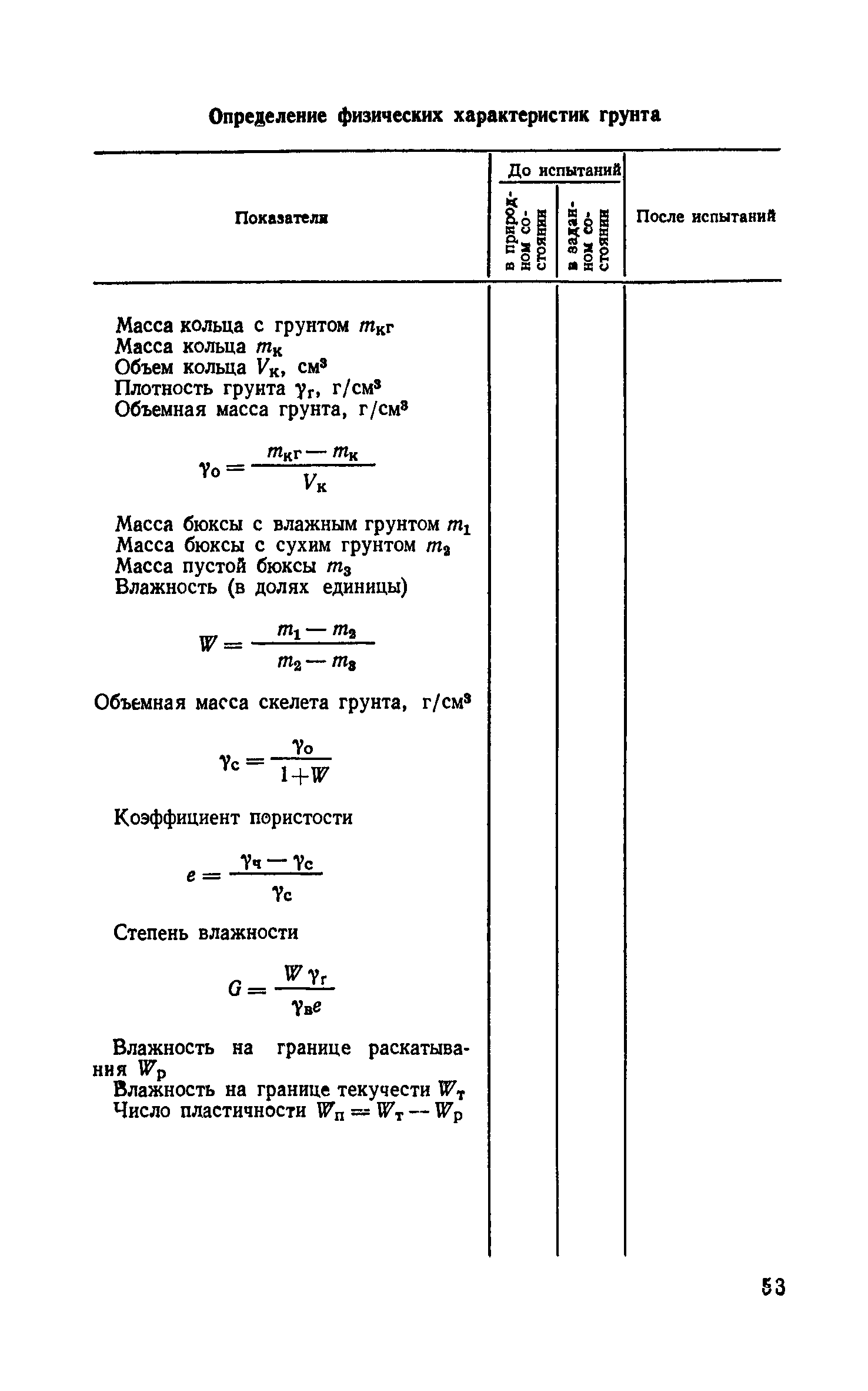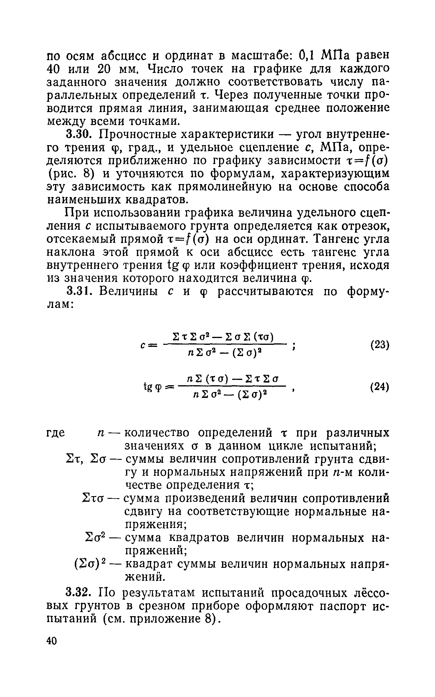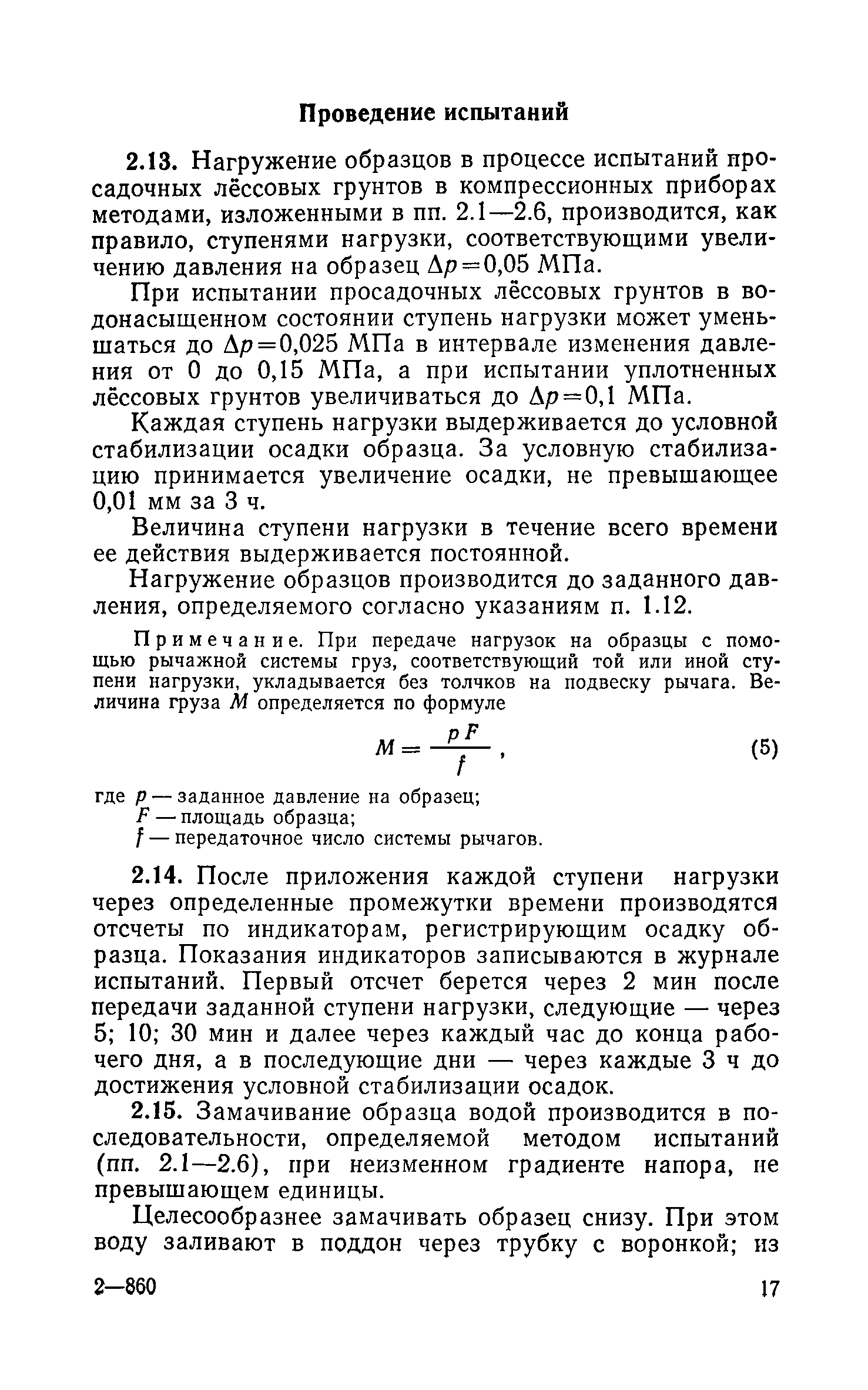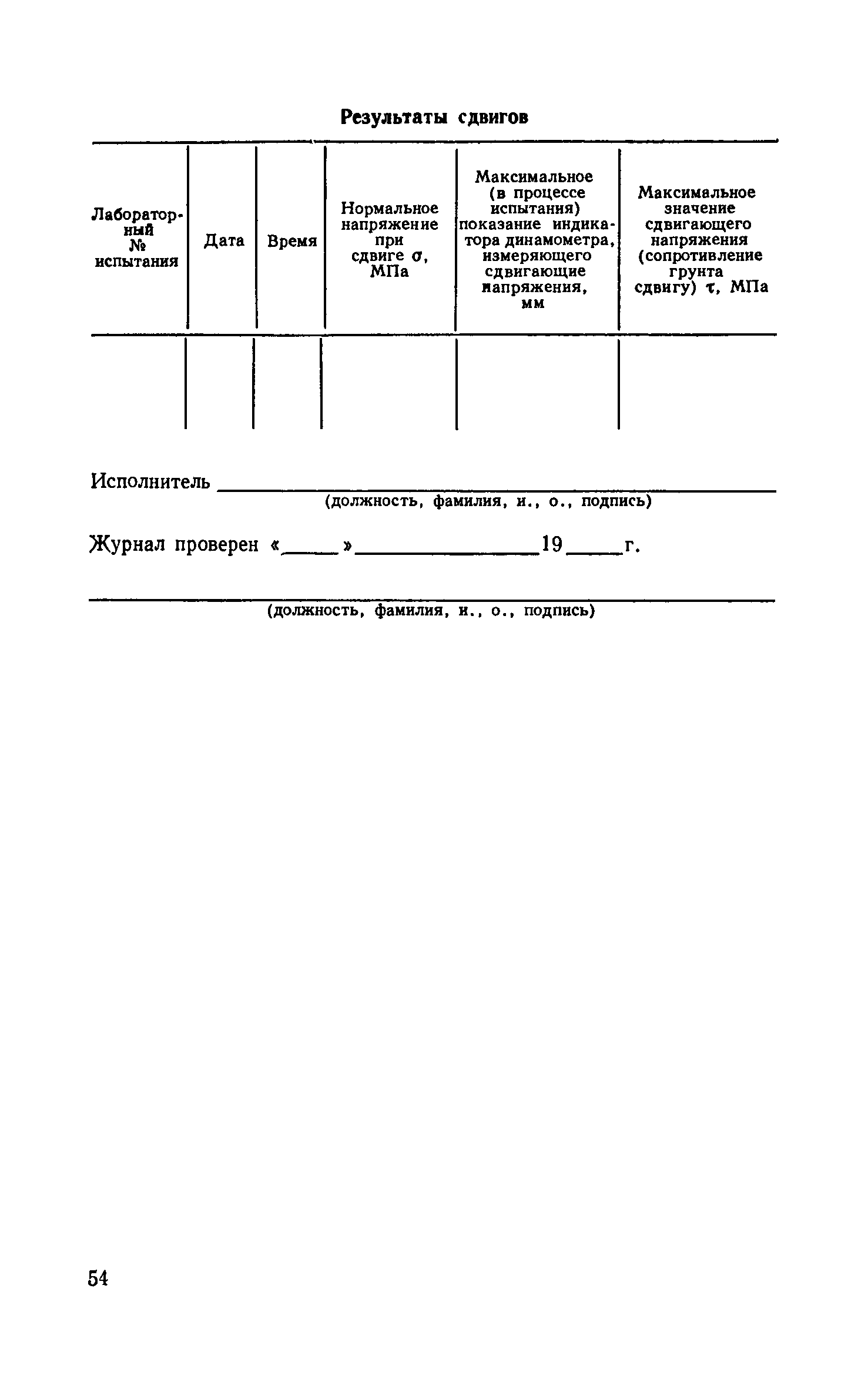 | Оглавление: | Введение 1 Общие положения 2 Определение деформационных характеристик просадочных грунтов Методы испытаний Требования к компрессионным приборам и подготовке образцов грунта для испытаний Проведение испытаний Обработка результатов испытаний 3 Определение прочностных характеристик просадочных грунтов Схемы испытаний Требования к срезным приборам и подготовке образцов грунта для испытаний Проведение испытаний Обработка результатов испытаний Приложение 1. Соотношение между некоторыми единицами физических величин, подлежащими изъятию, и единицами СИ Приложение 2. Рекомендации по обработке данных о развитии деформаций просадочных грунтов во времени при испытаниях в компрессионном приборе Приложение 3. Рекомендации по приготовлению образцов уплотненного лёссового грунта Приложение 4. Журнал испытаний просадочного грунта в компрессионном приборе Приложение 5. Журнал испытаний просадочного грунта в срезном приборе по схемам медленного сдвига Приложение 6. Журнал испытаний просадочного грунта в срезном приборе по схеме быстрого сдвига Приложение 7. Паспорт испытаний просадочного грунта в компрессионном приборе Приложение 8. Паспорт испытаний просадочного грунта в срезном приборе |