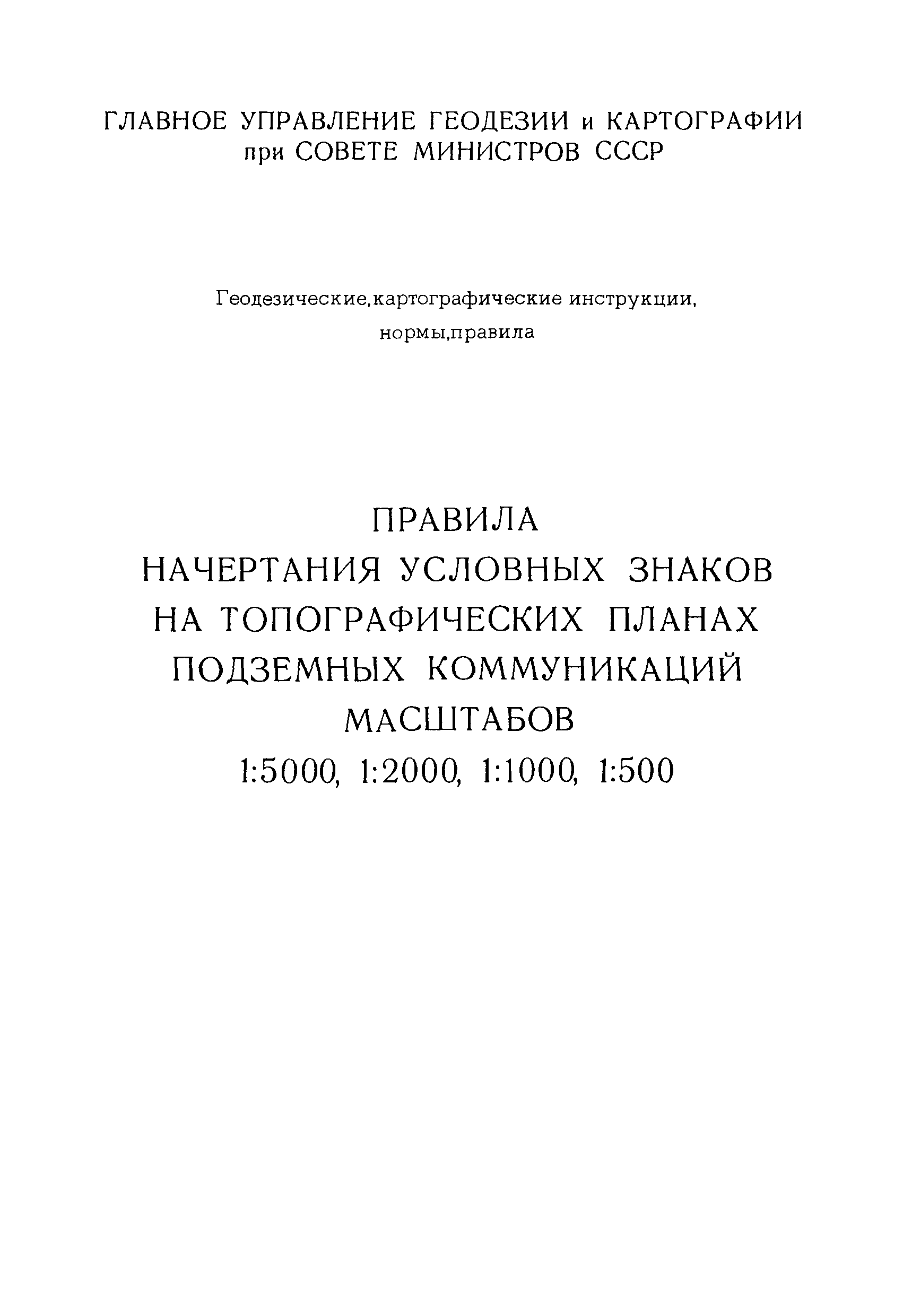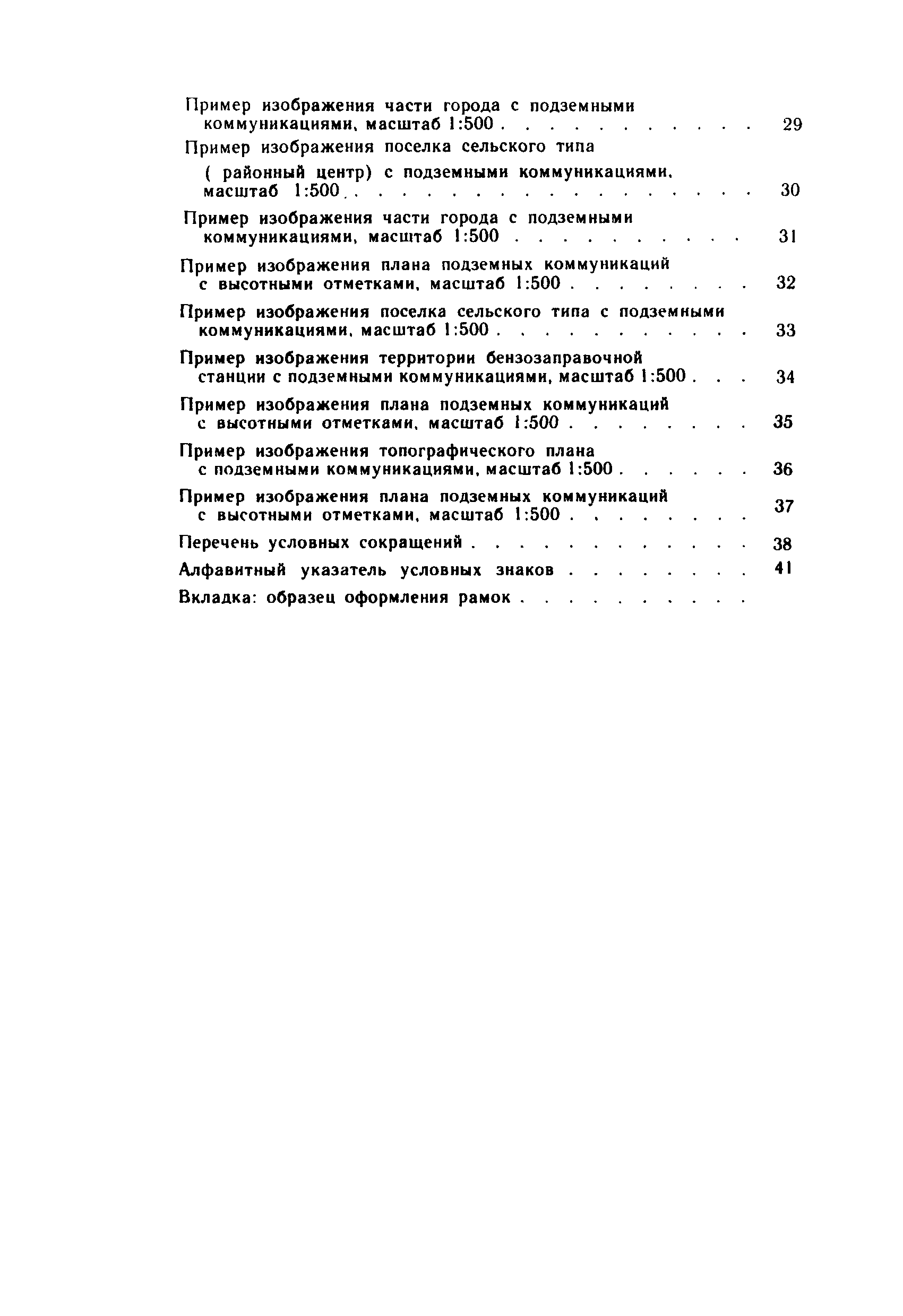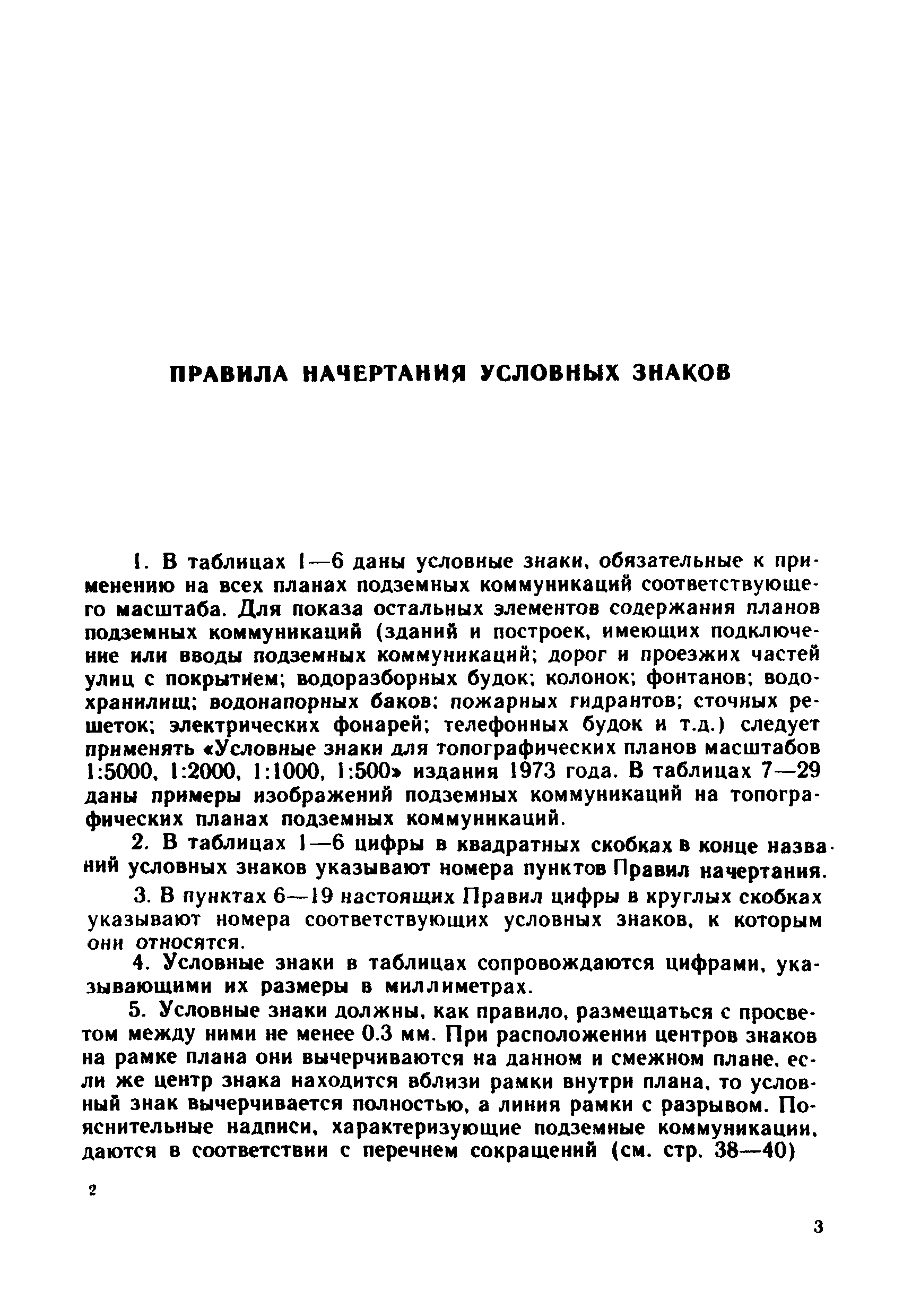 Правила начертания условных знаков на топографических планах подземных коммуникаций масштабов 1:5000, 1:2000, 1:1000, 1:500| Статус: | утратил силу | | Название рус.: | Правила начертания условных знаков на топографических планах подземных коммуникаций масштабов 1:5000, 1:2000, 1:1000, 1:500 | | Дата добавления в базу: | 21.05.2015 | | Дата актуализации: | 01.01.2021 | | Дата введения: | 01.01.1981 | | Дата окончания срока действия: | 01.01.2018 | | Оглавление: | Правила начертания условных знаков Условные знаки для планов подземных коммуникаций масштабов 1:5000, 1:2000. 1:1000, 1:500 Пример изображения части города с подземными коммуникациями, масштаб 1:2000 Пример изображения части города с подземными коммуникациями, масштаб 1:1000 Пример изображения промышленной площадки с подземными коммуникациями, масштаб 1:1000 Пример изображения промышленной площадки с раздельной сетью (трубопроводы) подземных коммуникаций, масштаб 1:1000 Пример изображения промышленной площадки с раздельной сетью (кабельные прокладки) подземных коммуникаций, масштаб 1:1000 Пример изображения части города с подземными коммуникациями, масштаб 1:500 Пример изображения проезда с подземными коммуникациями, масштаб 1:500 Пример изображения проезда с раздельной сетью (трубопроводы) подземных коммуникаций, масштаб 1:500 Пример изображения проезда с раздельной сетью (кабельные прокладки) подземных коммуникаций, масштаб 1:500 Пример изображения части города с подземными коммуникациями, масштаб 1:500 Пример изображения части улицы с подземными коммуникациями, масштаб 1:500 Пример изображения части города с подземными коммуникациями, масштаб 1:500 Пример изображения части рабочего поселка с подземными коммуникациями, масштаб 1:500 Пример изображения части города с подземными коммуникациями, масштаб 1:500 Пример изображения поселка сельского типа (районный центр) с подземными коммуникациями, масштаб 1:500 Пример изображения части города с подземными коммуникациями, масштаб 1:500 Пример изображения плана подземных коммуникаций с высотными отметками, масштаб 1:500 Пример изображения поселка сельского типа с подземными коммуникациями, масштаб 1:500 Пример изображения территории бензозаправочной станции с подземными коммуникациями, масштаб 1:500 Пример изображения плана подземных коммуникаций с высотными отметками, масштаб 1:500 Пример изображения топографического плана с подземными коммуникациями, масштаб 1:500 Пример изображения плана подземных коммуникаций с высотными отметками, масштаб 1:500 Перечень условных сокращений Алфавитный указатель условных знаков Вкладка: образец оформления рамок | | Разработан: | НИИПГ ГУГК