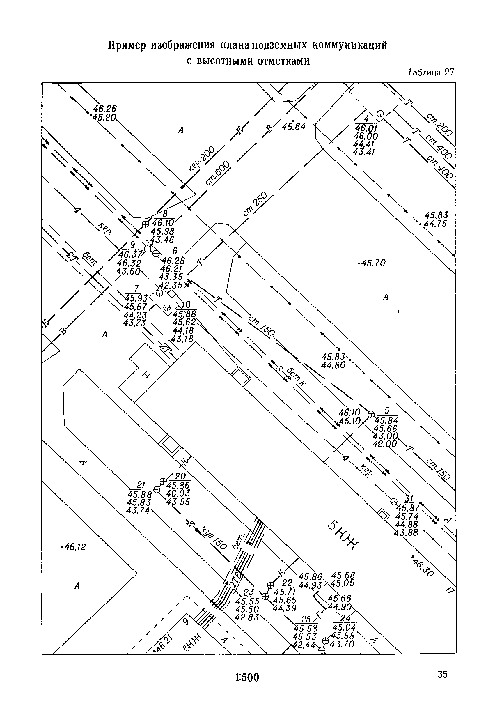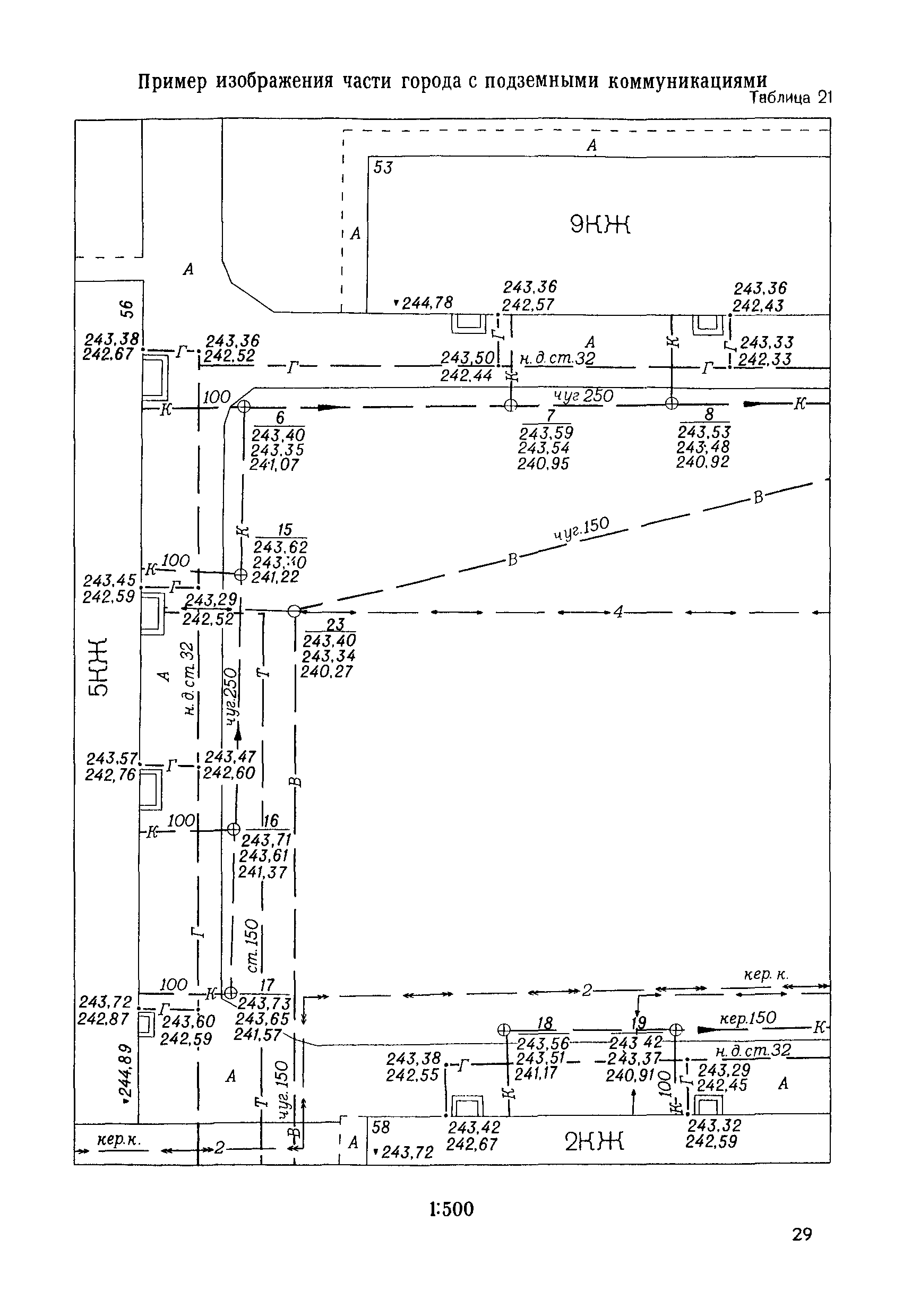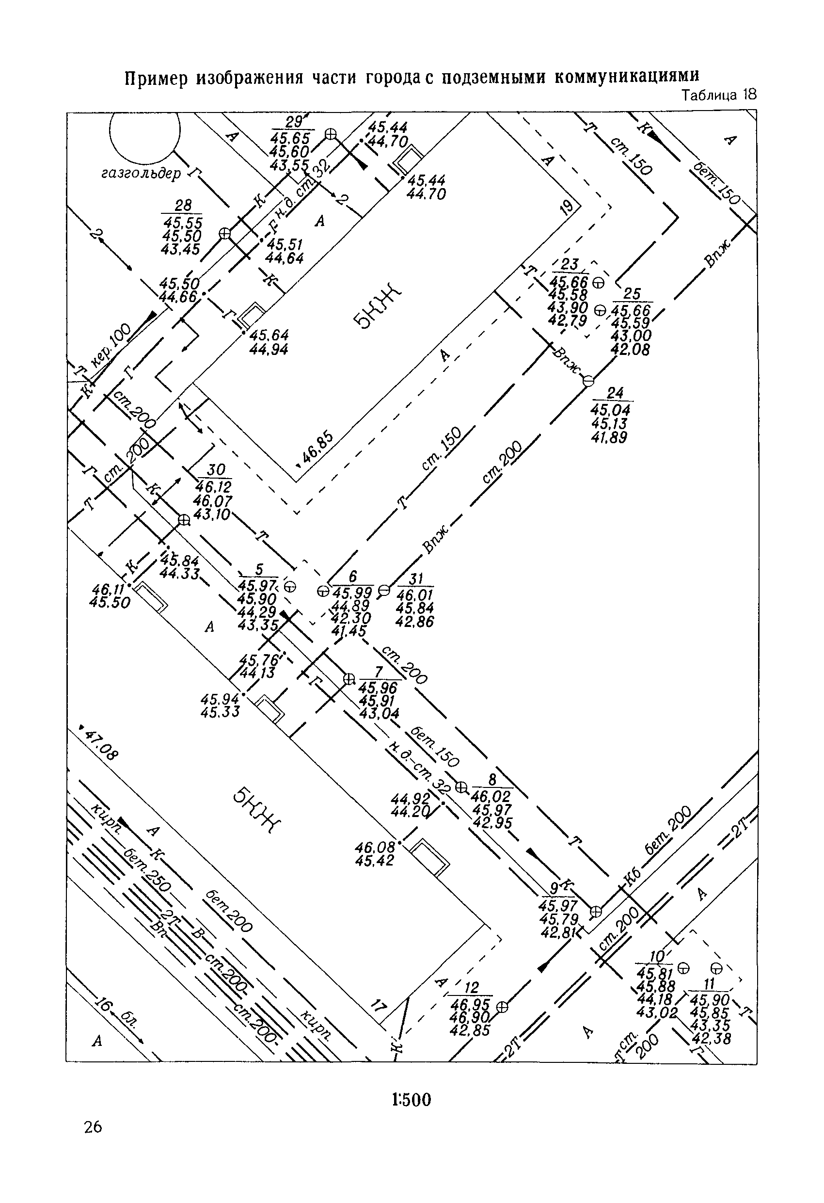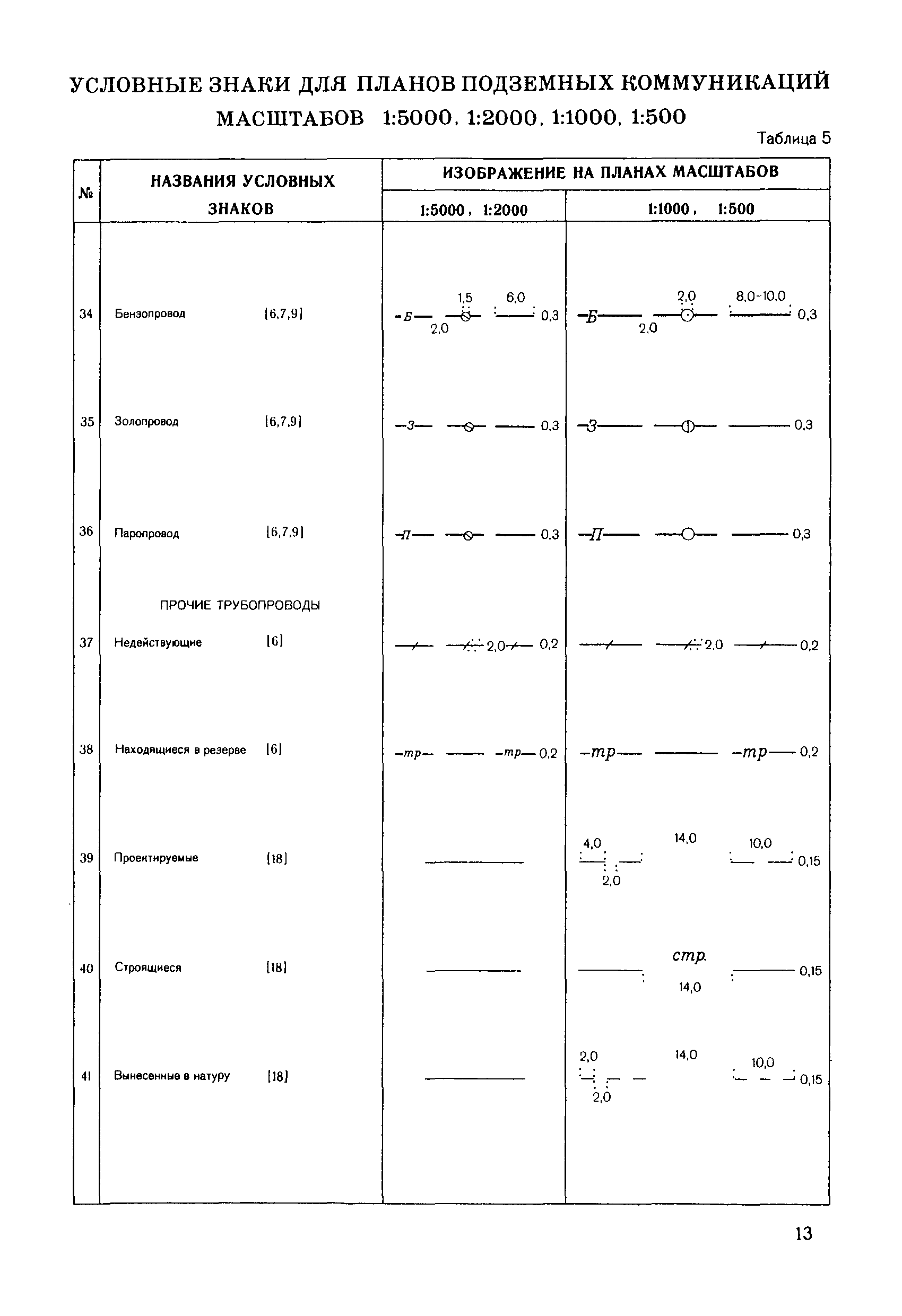 Правила начертания условных знаков на топографических планах подземных коммуникаций масштабов 1:5000, 1:2000, 1:1000, 1:500| Статус: | утратил силу | | Название рус.: | Правила начертания условных знаков на топографических планах подземных коммуникаций масштабов 1:5000, 1:2000, 1:1000, 1:500 | | Дата добавления в базу: | 21.05.2015 | | Дата актуализации: | 01.01.2021 | | Дата введения: | 01.01.1981 | | Дата окончания срока действия: | 01.01.2018 | | Оглавление: | Правила начертания условных знаков Условные знаки для планов подземных коммуникаций масштабов 1:5000, 1:2000. 1:1000, 1:500 Пример изображения части города с подземными коммуникациями, масштаб 1:2000 Пример изображения части города с подземными коммуникациями, масштаб 1:1000 Пример изображения промышленной площадки с подземными коммуникациями, масштаб 1:1000 Пример изображения промышленной площадки с раздельной сетью (трубопроводы) подземных коммуникаций, масштаб 1:1000 Пример изображения промышленной площадки с раздельной сетью (кабельные прокладки) подземных коммуникаций, масштаб 1:1000 Пример изображения части города с подземными коммуникациями, масштаб 1:500 Пример изображения проезда с подземными коммуникациями, масштаб 1:500 Пример изображения проезда с раздельной сетью (трубопроводы) подземных коммуникаций, масштаб 1:500 Пример изображения проезда с раздельной сетью (кабельные прокладки) подземных коммуникаций, масштаб 1:500 Пример изображения части города с подземными коммуникациями, масштаб 1:500 Пример изображения части улицы с подземными коммуникациями, масштаб 1:500 Пример изображения части города с подземными коммуникациями, масштаб 1:500 Пример изображения части рабочего поселка с подземными коммуникациями, масштаб 1:500 Пример изображения части города с подземными коммуникациями, масштаб 1:500 Пример изображения поселка сельского типа (районный центр) с подземными коммуникациями, масштаб 1:500 Пример изображения части города с подземными коммуникациями, масштаб 1:500 Пример изображения плана подземных коммуникаций с высотными отметками, масштаб 1:500 Пример изображения поселка сельского типа с подземными коммуникациями, масштаб 1:500 Пример изображения территории бензозаправочной станции с подземными коммуникациями, масштаб 1:500 Пример изображения плана подземных коммуникаций с высотными отметками, масштаб 1:500 Пример изображения топографического плана с подземными коммуникациями, масштаб 1:500 Пример изображения плана подземных коммуникаций с высотными отметками, масштаб 1:500 Перечень условных сокращений Алфавитный указатель условных знаков Вкладка: образец оформления рамок | | Разработан: | НИИПГ ГУГК