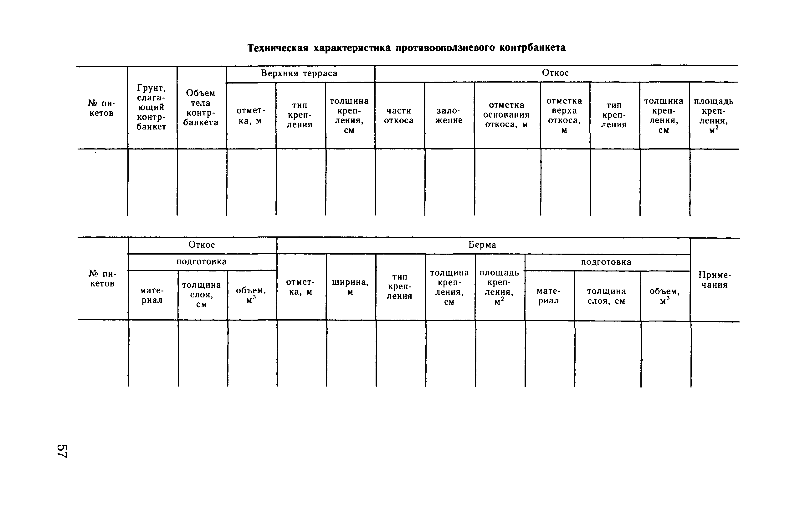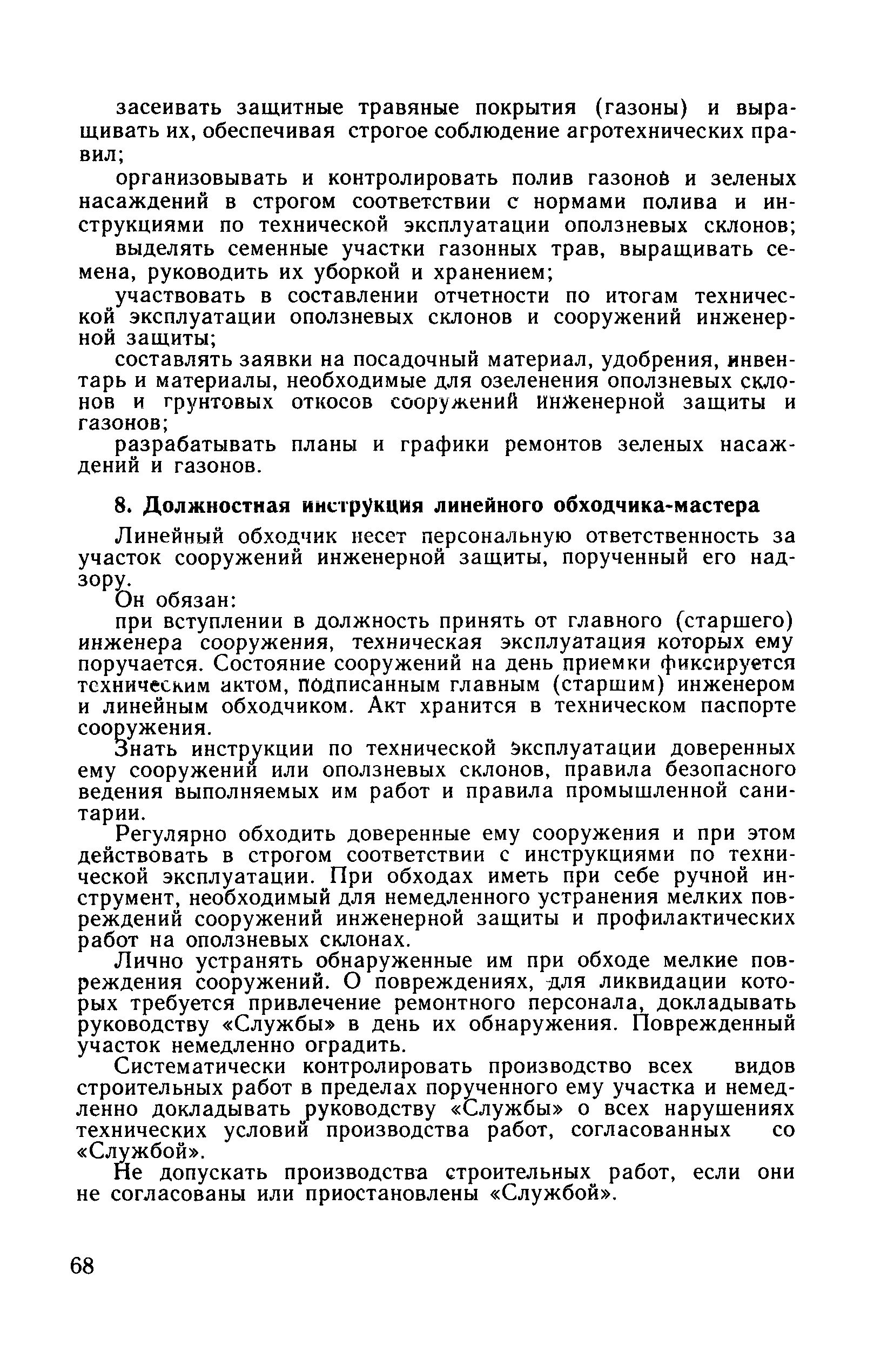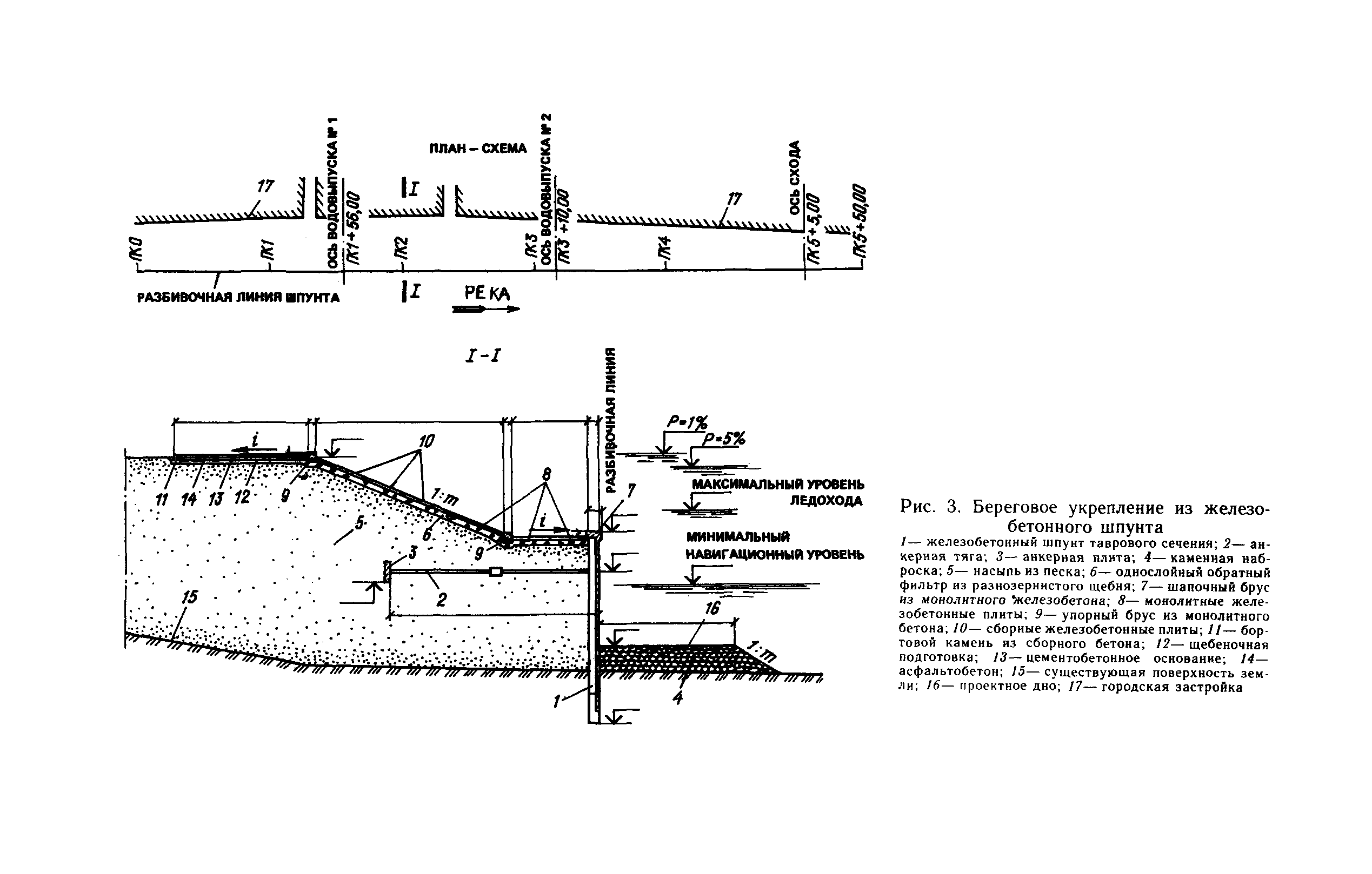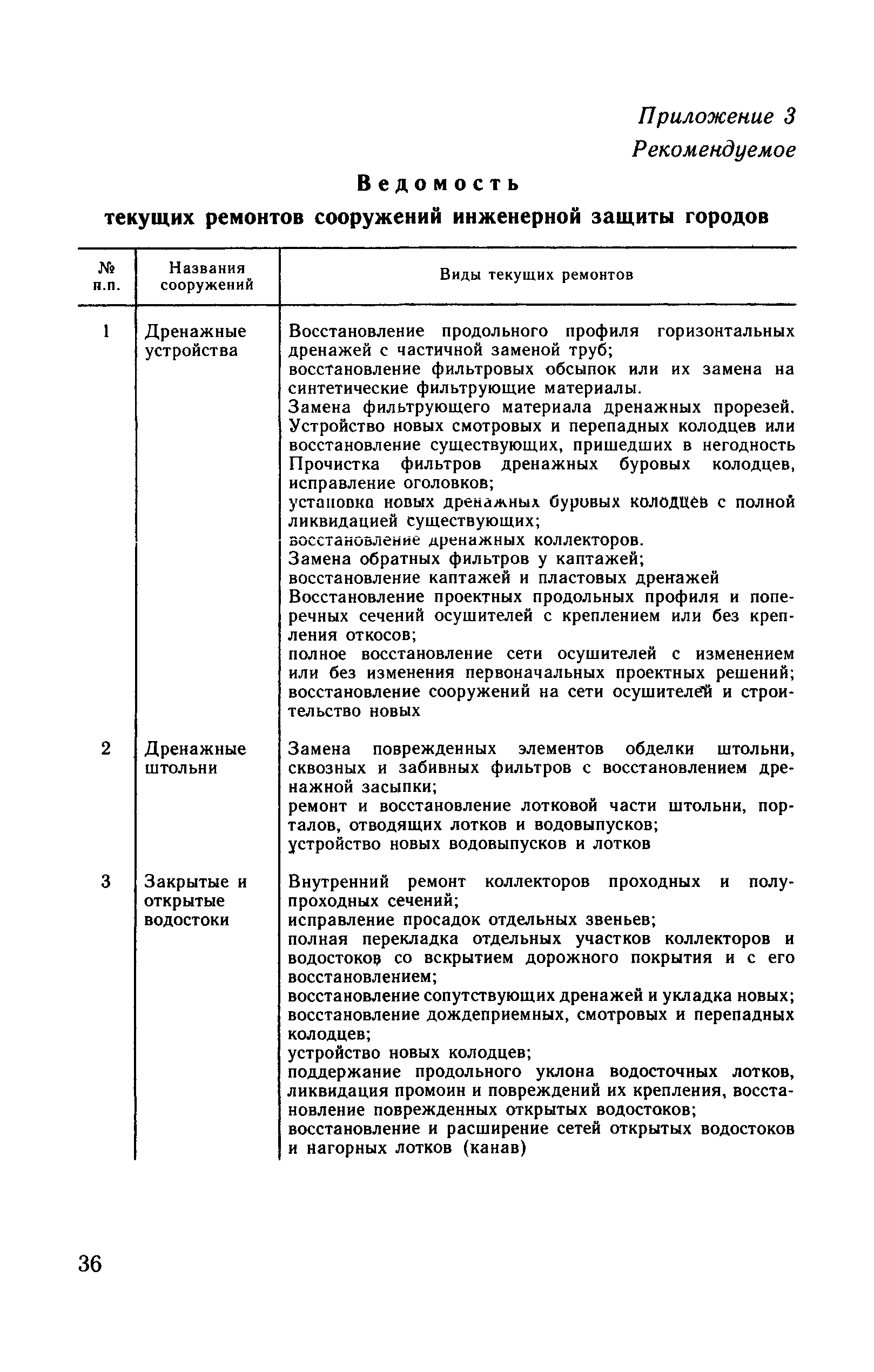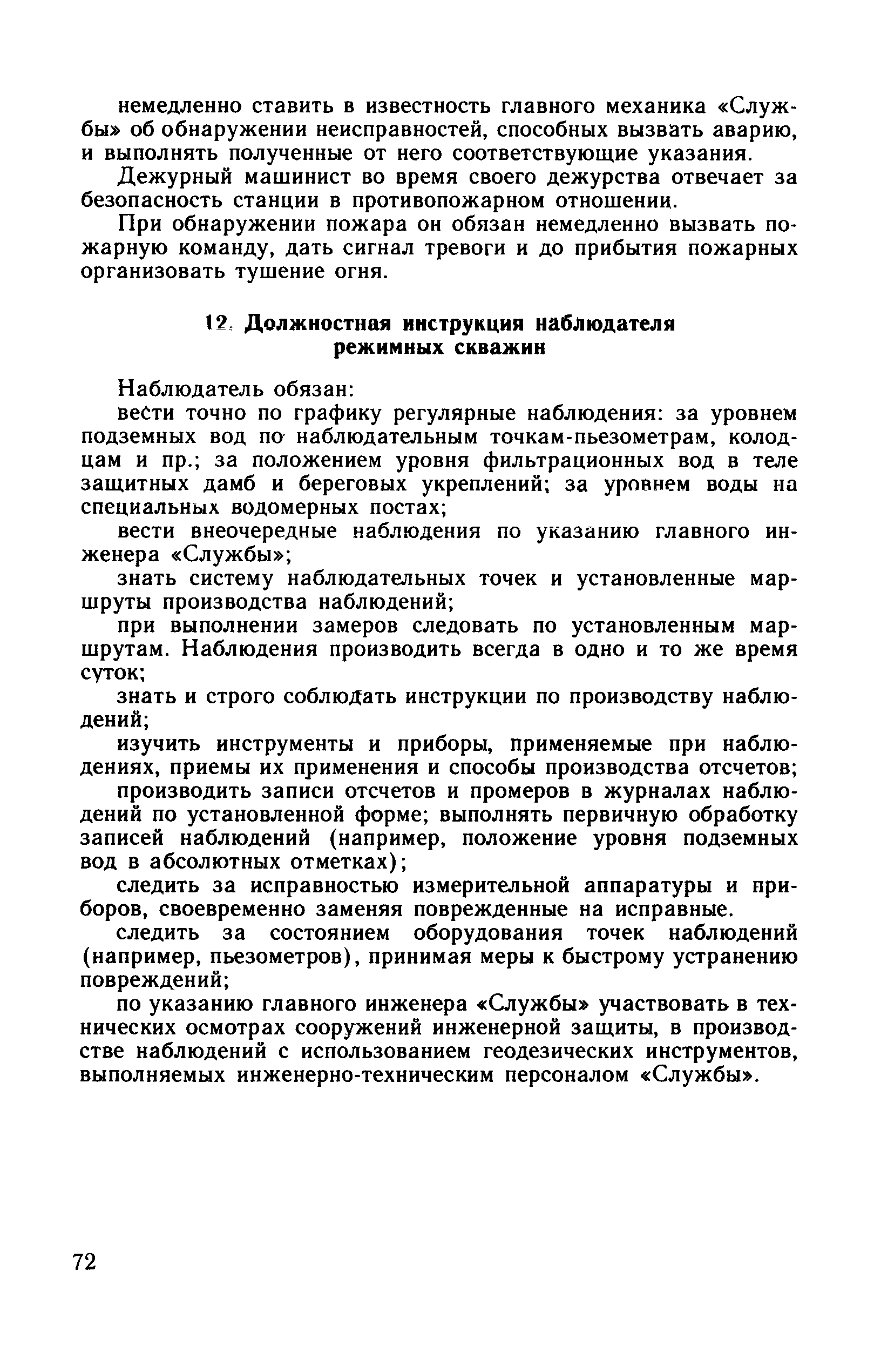 | Оглавление: | 1. Основные положения 2. Организация работы службы технической эксплуатации 3. Сооружения инженерной защиты от подтопления территорий подземными водами 4. Насосные станции 5. Береговые укрепления и защитные дамбы 6. Противооползневые сооружения, оползневые, потенциально-оползневые и обвалоопасные склоны Приложение 1(справочное). Перечень оборудования, механизмов и средств транспорта, рекомендуемых для технической эксплуатации сооружений инженерной защиты Приложение 2 (обязательное). Состав работ по содержанию сооружений инженерной защиты Приложение 3 (рекомендуемое). Ведомость текущих ремонтов сооружений инженерной защиты городов Приложение 4 (рекомендуемое). Примеры технических паспортов комплексов сооружений и мероприятий инженерной защиты Приложение 5 (рекомендуемое). Примерные должностные инструкции персонала "Службы" Приложение 6 (рекомендуемое). Абрис магистрального хода и поперечников Приложение 7 (рекомендуемое). План-схема, абрис и таблица ледовых наблюдений Приложение 8 (рекомендуемое). Типовое аварийное расписание Приложение 9 (рекомендуемое). Абрисы склонового стока талых вод |