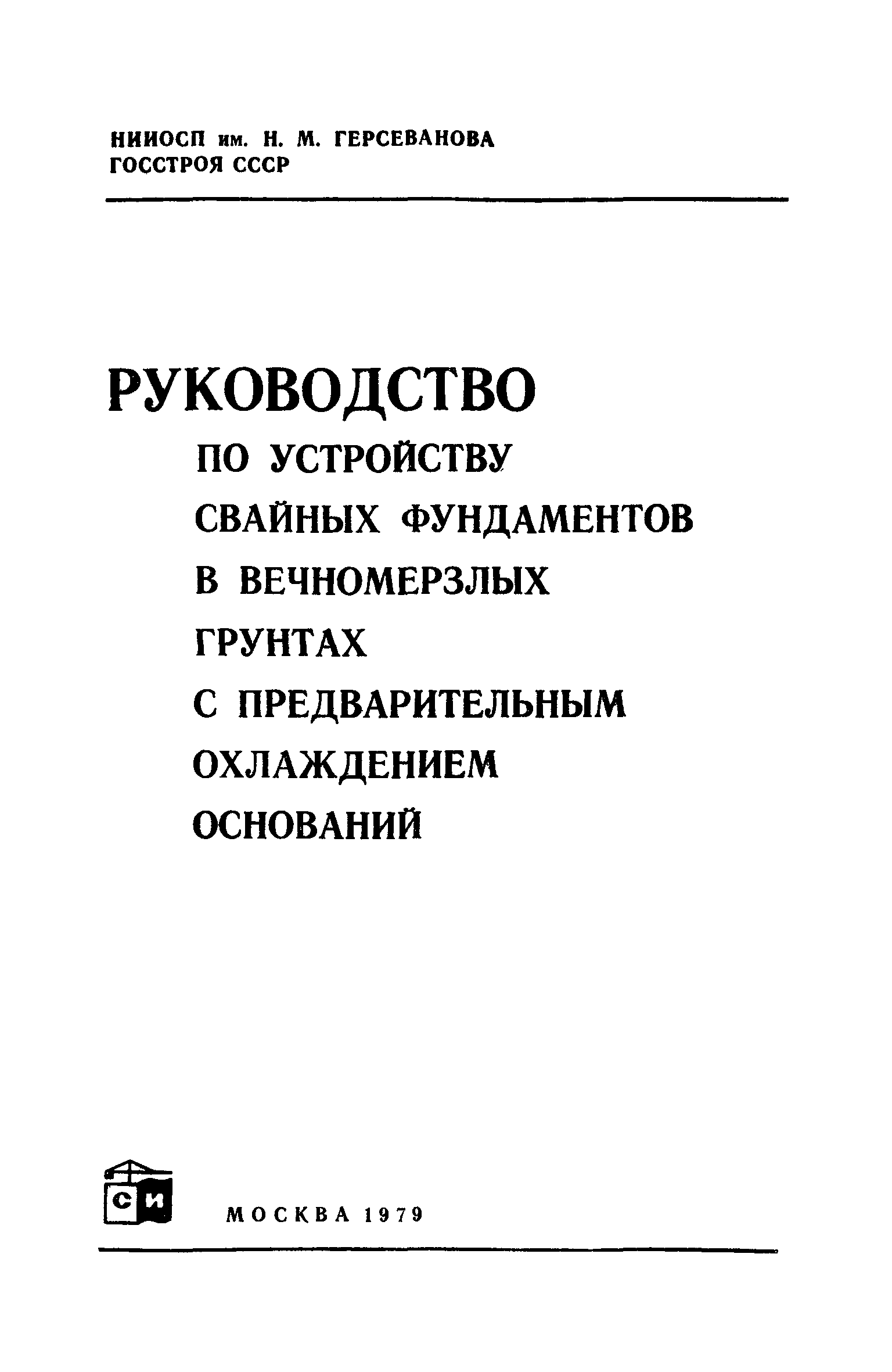 | Название рус.: | Руководство по устройству свайных фундаментов в вечномерзлых грунтах с предварительным охлаждением оснований |