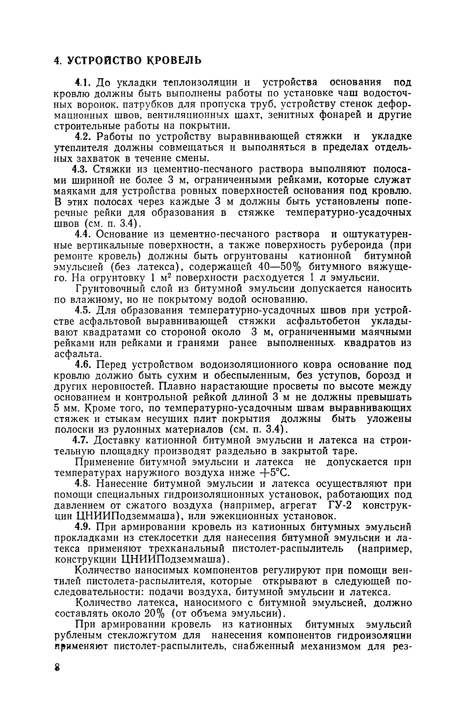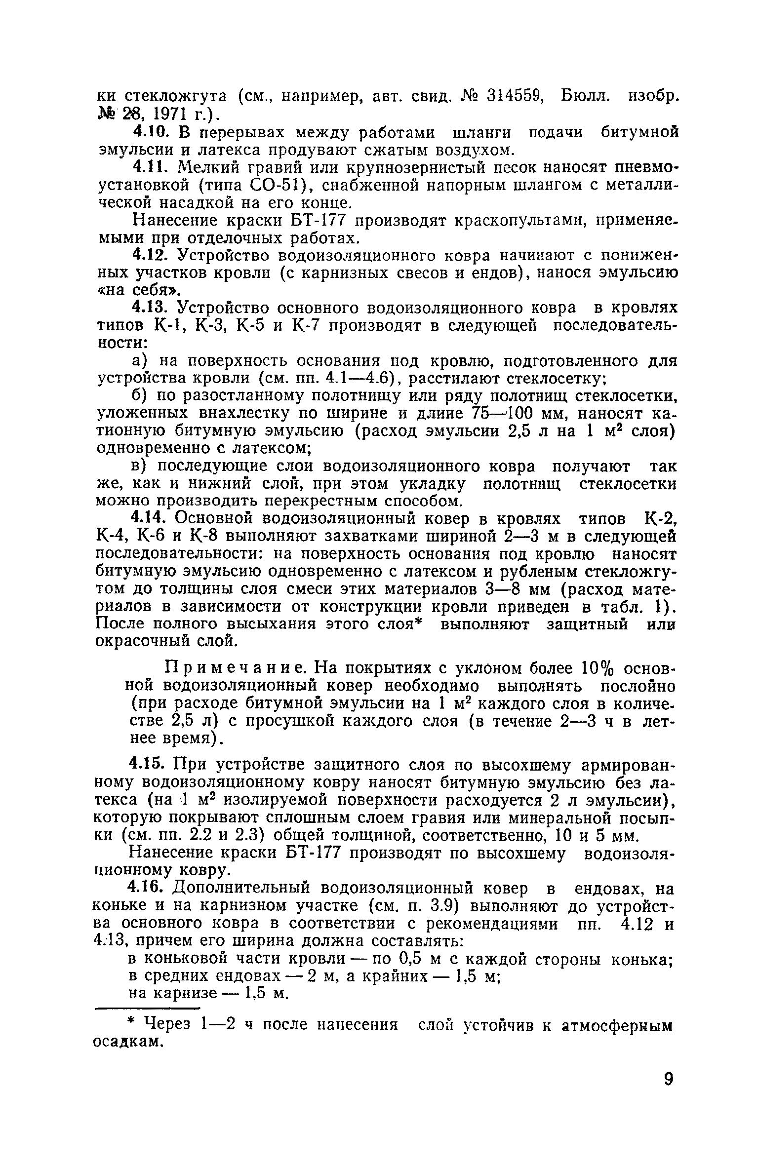 Руководство по проектированию и устройству кровель из катионных битумных эмульсий, армированных стекломатериалами| Статус: | справочные материалы, мп, тпр | | Название рус.: | Руководство по проектированию и устройству кровель из катионных битумных эмульсий, армированных стекломатериалами | | Дата добавления в базу: | 21.05.2015 | | Дата актуализации: | 01.01.2021 | | Область применения: | В Руководстве приведены конструкции кровель с применением катионных битумных эмульсий, армированных стекломатериалами, требовании к применяемым материалам, а также правила выполнения и приемки кровельных работ и приготовления эмульсий. | | Оглавление: | Предисловие 1. Общая часть 2. Требования к материалам 3. Конструкции кровель 4. Устроиство кровель Приложение. Приготовление катионной битумной эмульсии | | Разработан: | ЦНИИпромзданий Госстроя СССР