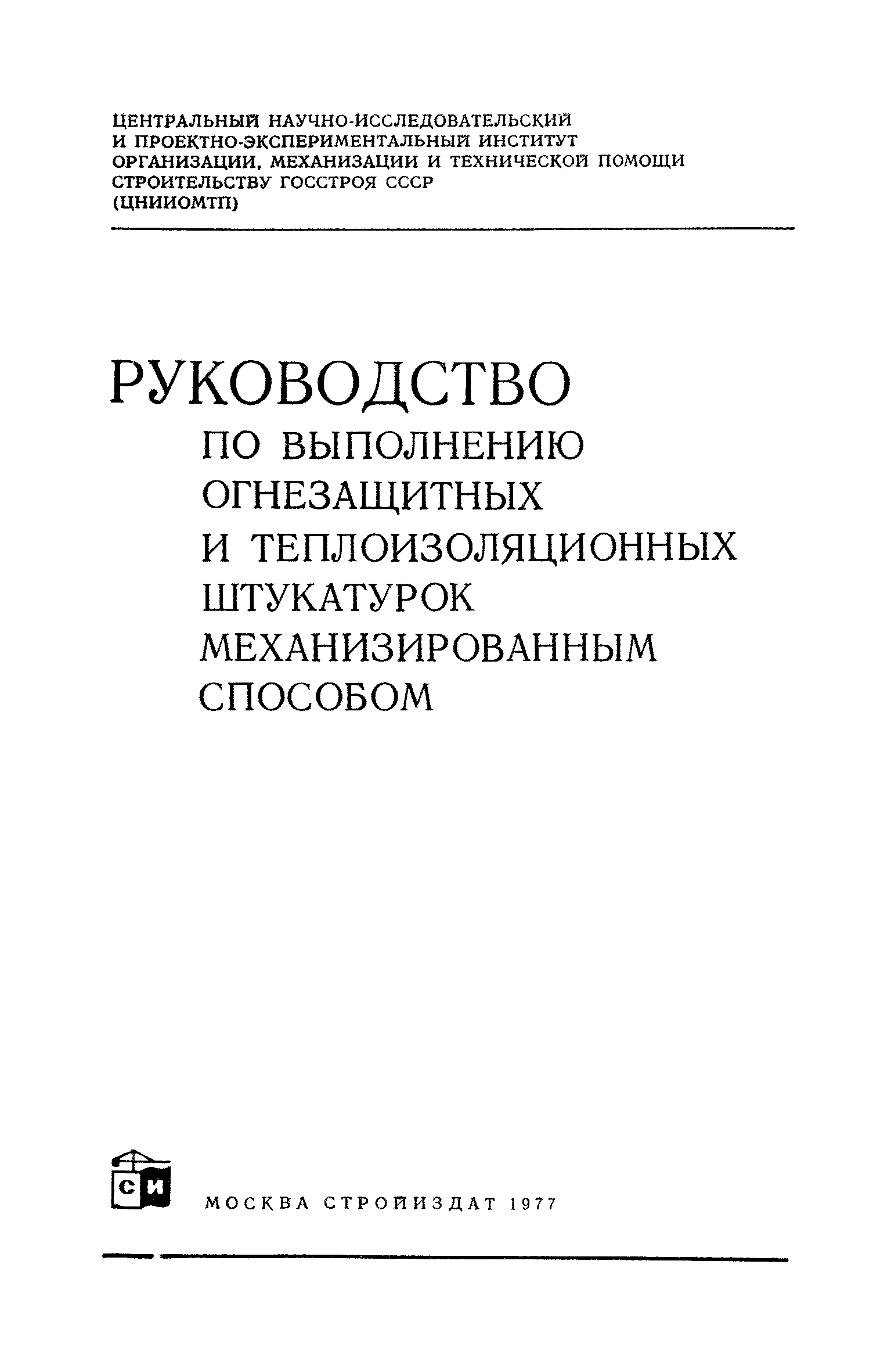 | Название рус.: | Руководство по выполнению огнезащитных и теплоизоляционных штукатурок механизированным способом |