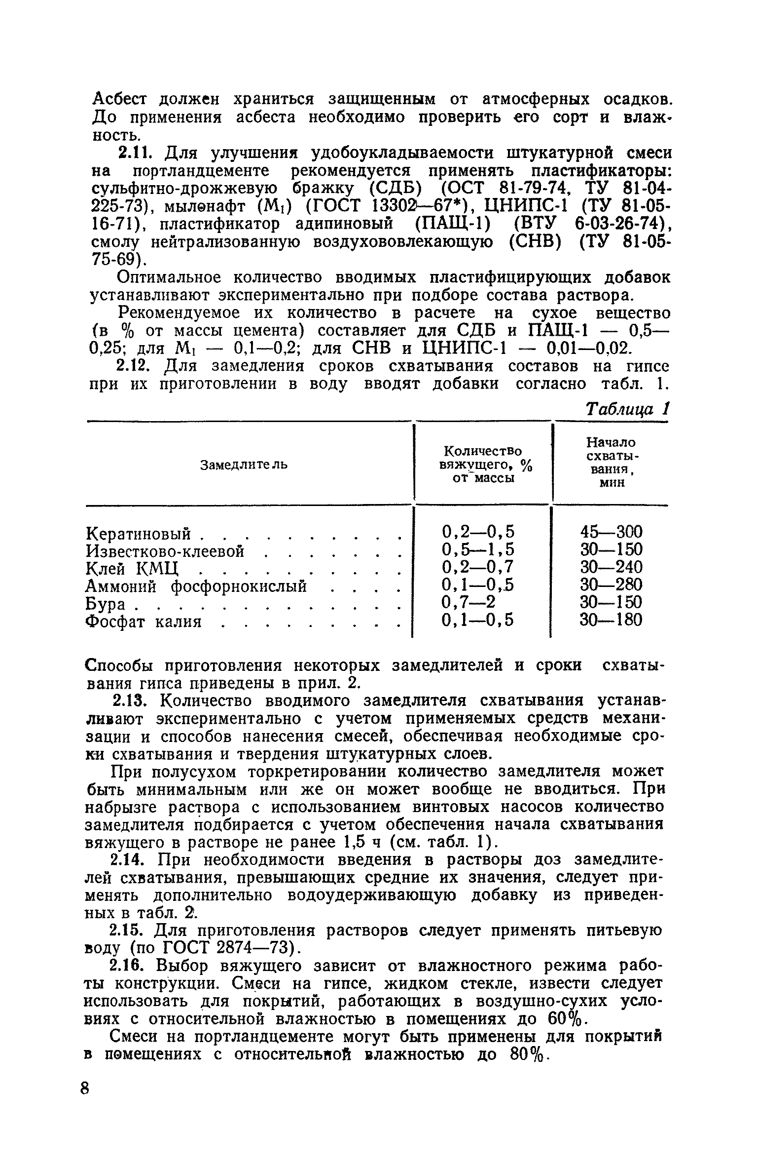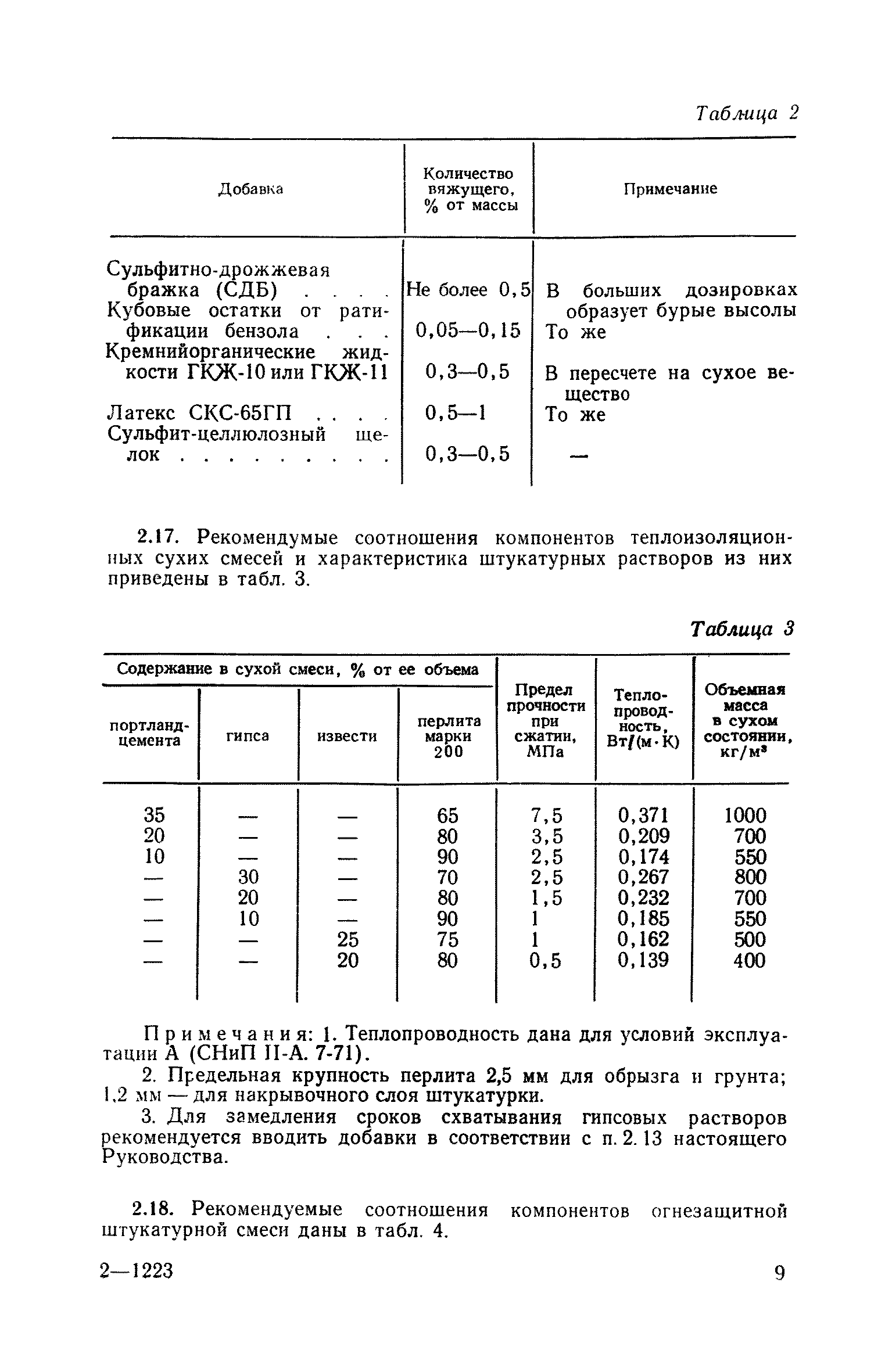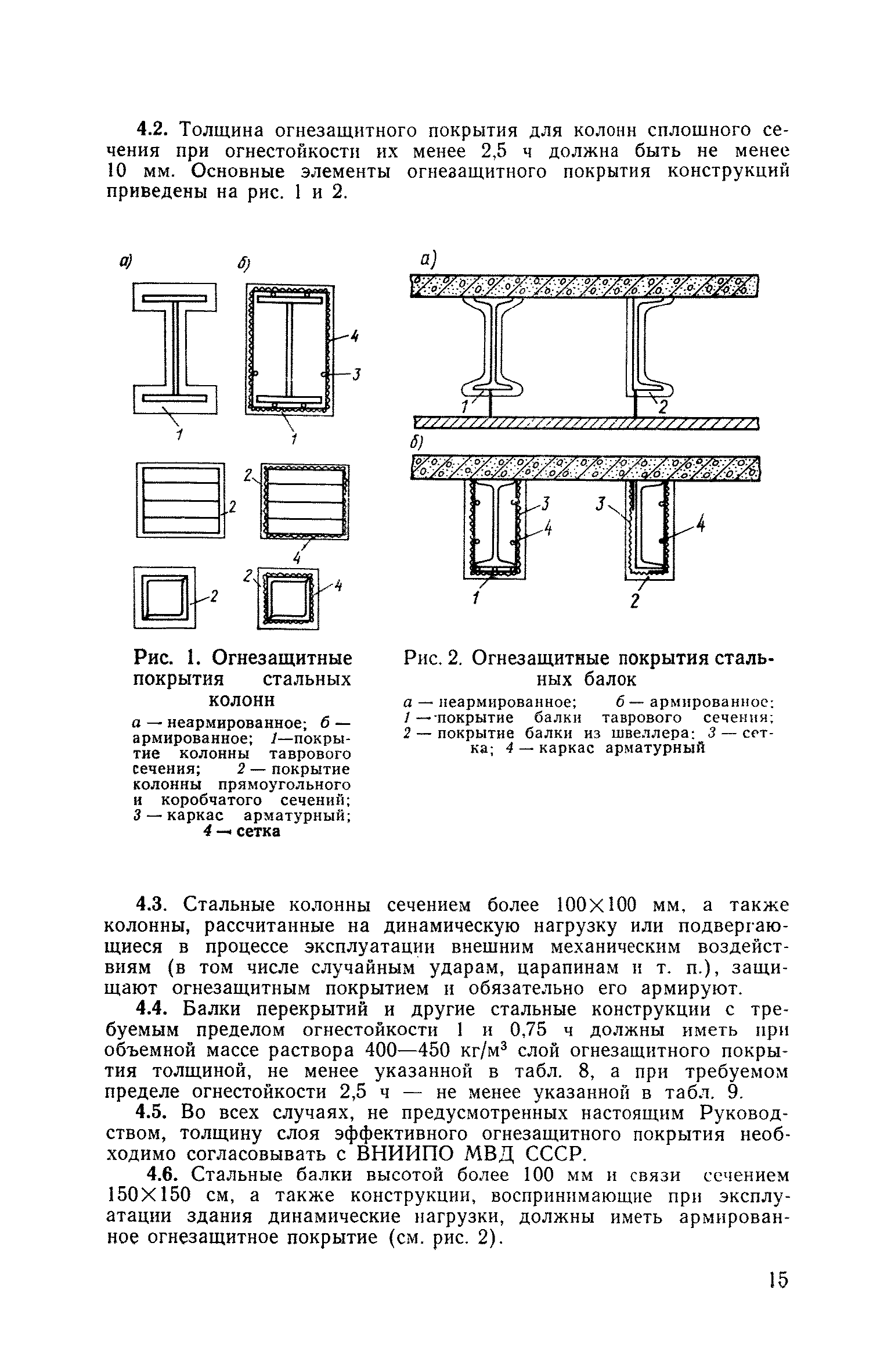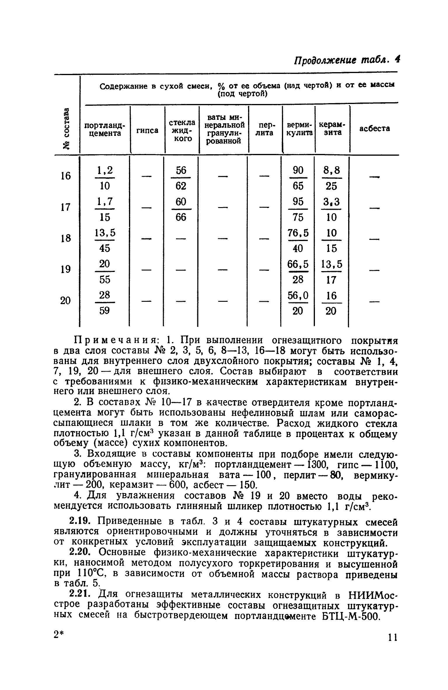 | Оглавление: | Предисловие 1. Общие положения . 2. Применяемые материалы и растворы 3. Приготовление и хранение штукатурных смесей 4. Конструктивные характеристики огнезащитных и теплоизоляционных штукатурок 5. Выполнение огнезащитных и теплоизоляционных штукатурных слоев 6. Полусухое торкретирование 7. Нанесение огнезащитных составов методом набрызга 8. Работа в условиях отрицательных температур 9. Контроль качества 10. Техника безопасности Приложение 1. Изготовление гранулированной минеральной ваты Приложение 2. Приготовление замедлителей схватывания из органического сырья Приложение 3. Плотность растворов солей-электролитов при температуре плюс 20 градусов Цельсия Приложение 4. Перечень машин, оборудования, механизированных и ручных инструментов, инвентаря и приспособлений для выполнения теплоизоляционных и огнезащитных штукатурок методом полусухого торкретирования Приложение 5. Перечень машин и оборудования для выполнения огнезащитных и теплоизоляционных штукатурок методом набрызга |