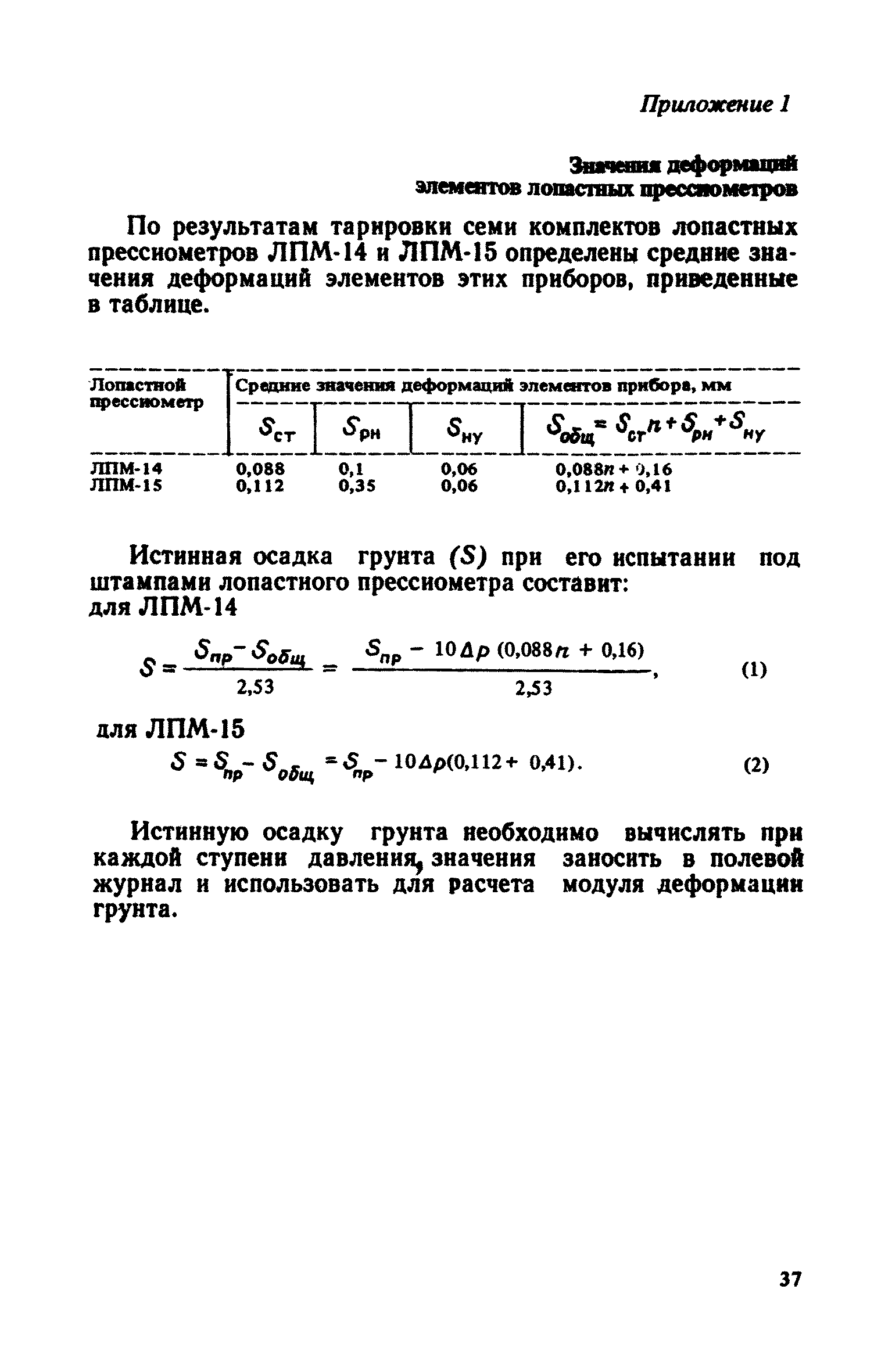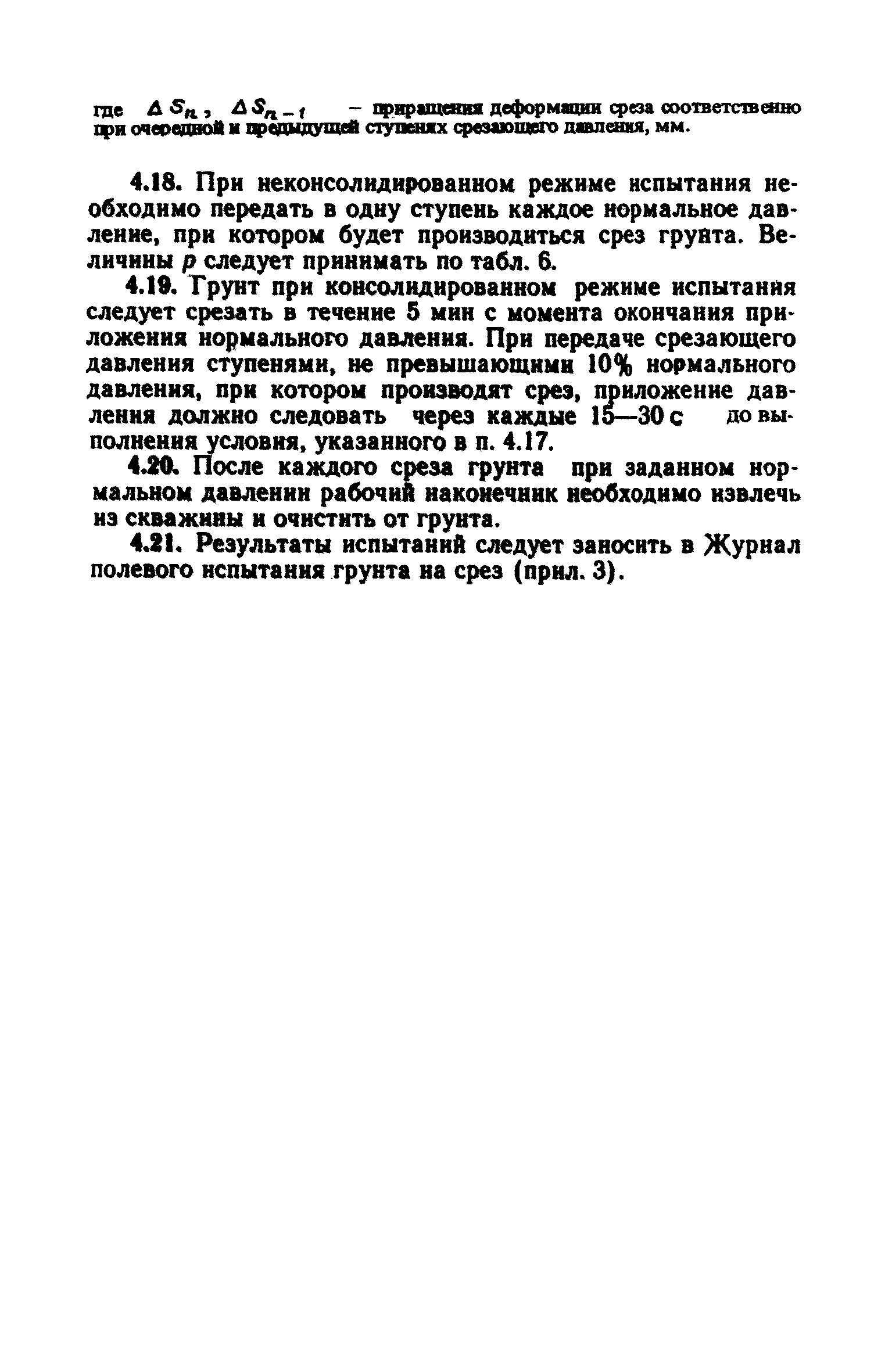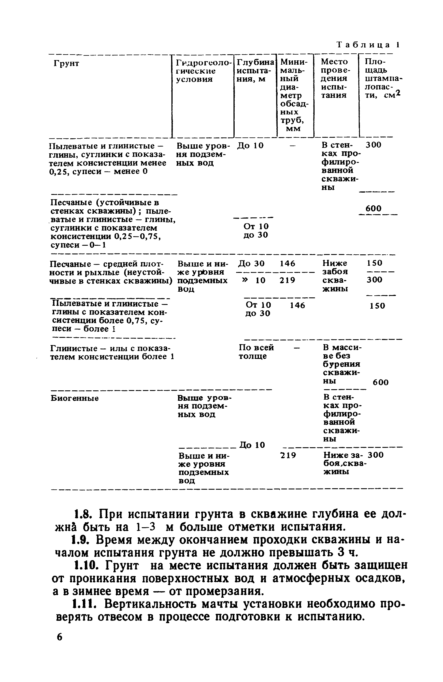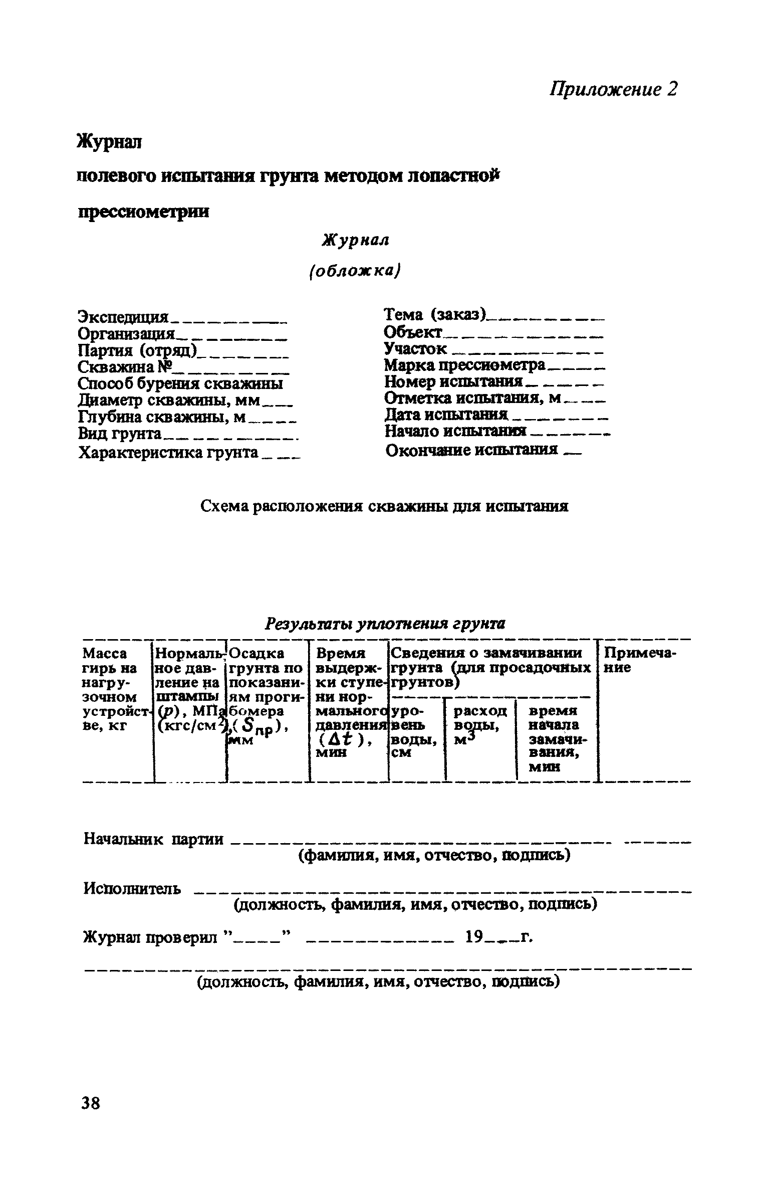 | Оглавление: | Введение 1. Общие положения 2. Технические средства для испытания грунтов и последовательность работы с ними 3. Подготовка к испытанию 4. Проведение испытания 5. Обработка результатов испытаний Приложение 1. Значения деформаций элементов лопастных прессиометров Приложение 2. Журнал полевого испытания грунта методом лопастной прессиометрии Приложение 3. Журнал полевого испытания грунта на срез Приложение 4. Пример построения графика зависимости при испытании грунта лопастным прессиометром Приложение 5. Пример обработки результатов испытания грунтов лопастными прессиометрами Приложение 6. Сопоставительные результаты испытаний грунтов методами статических нагрузок на штамп и лопастной прессиометрии Приложение 7. Пример обработки результатов испытания грунтов на срез прессиометром-сдвигомером ЛПМ-14С Приложение 8. Сопоставительные результаты испытаний грунтов методами ускоренного одноплоскостного и поступательного среза |