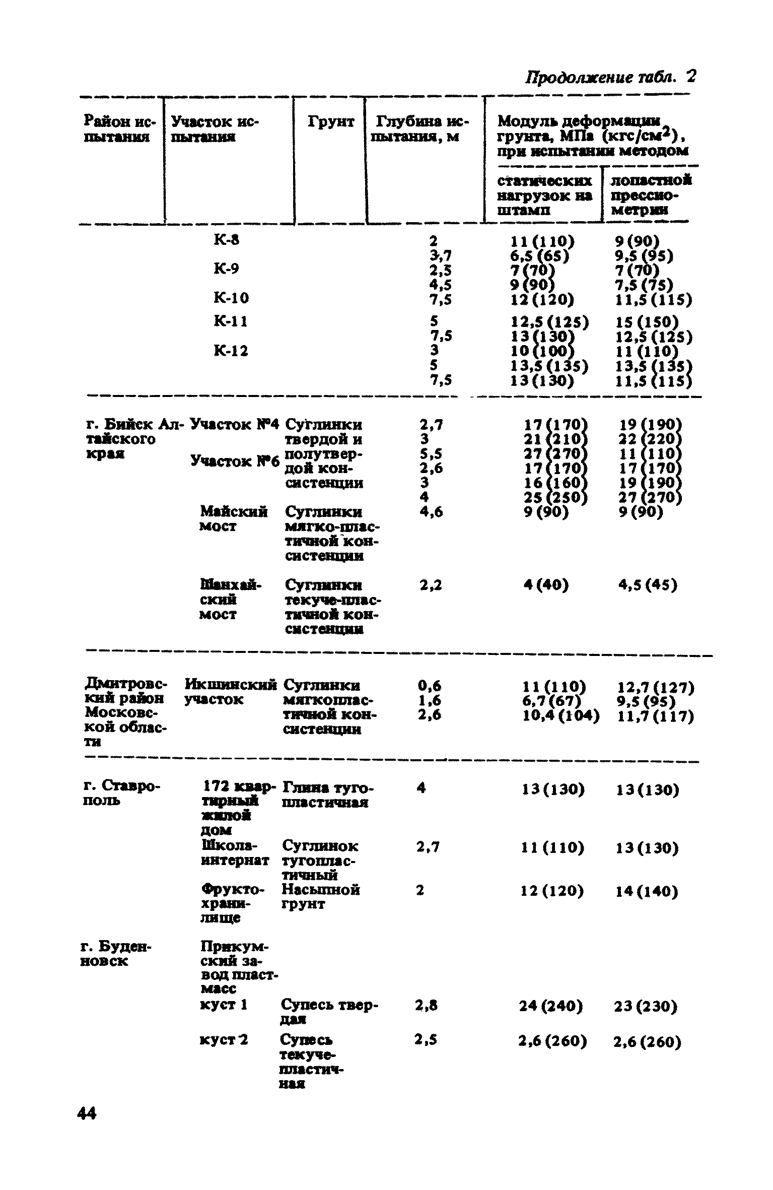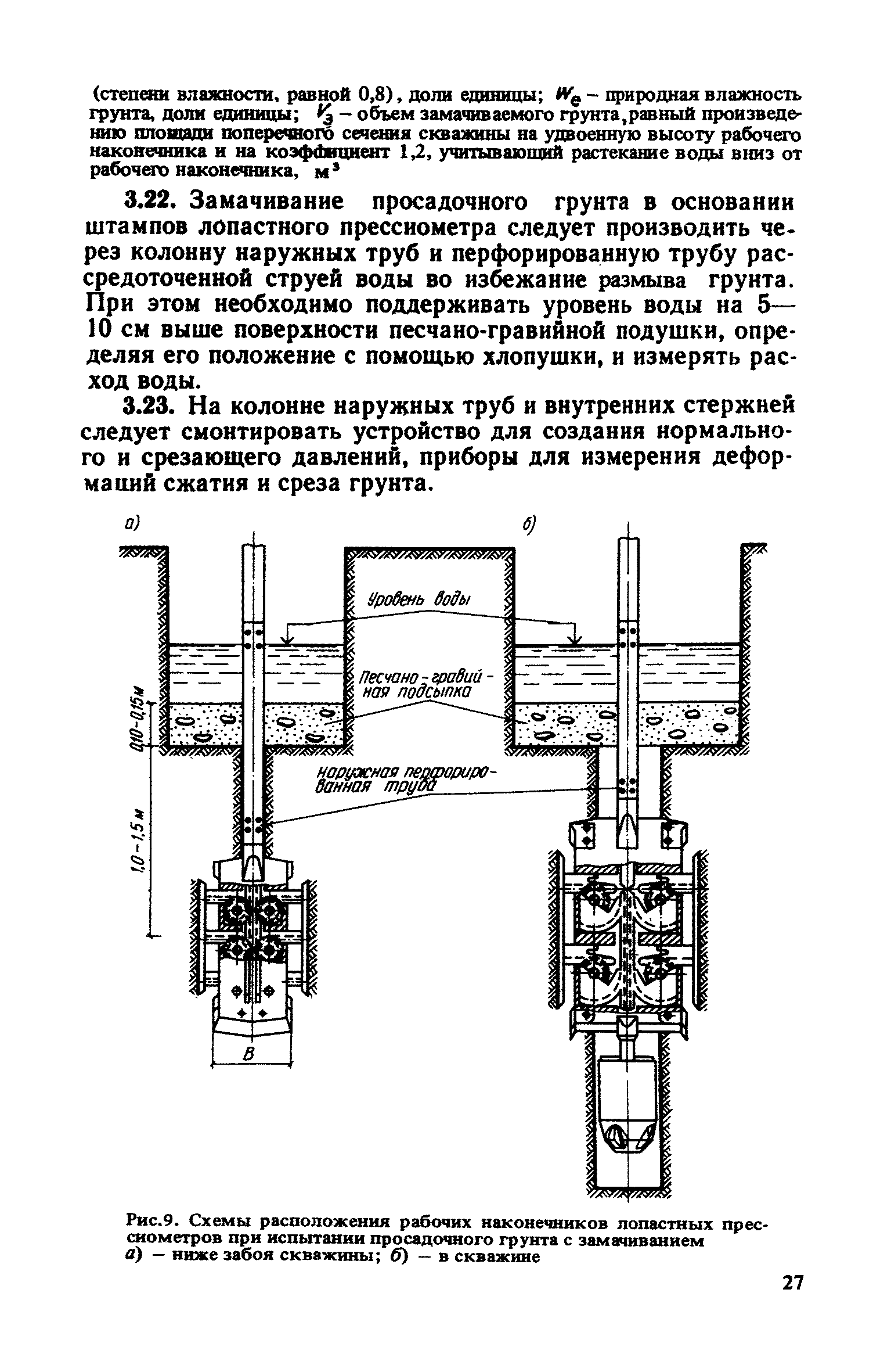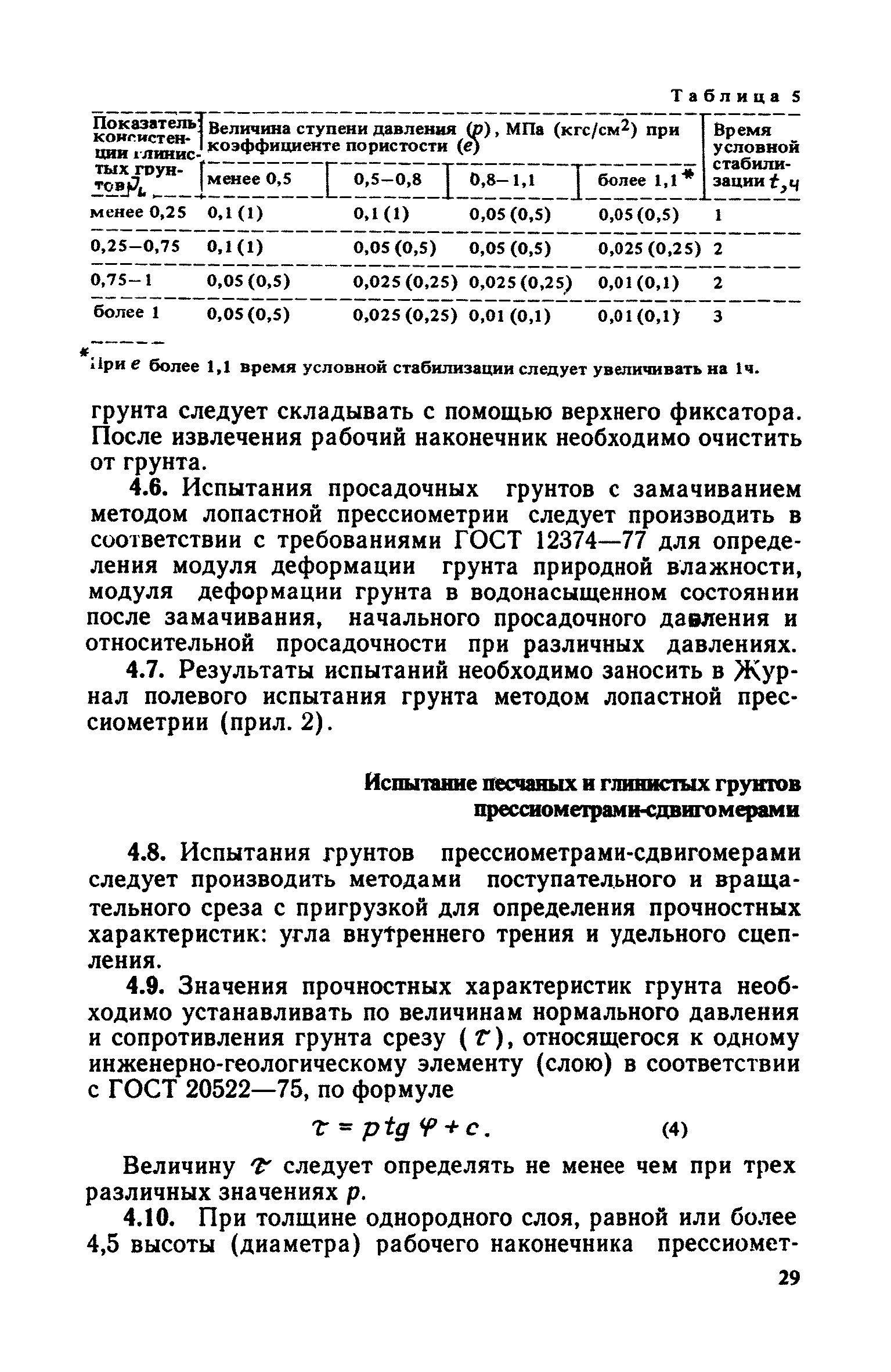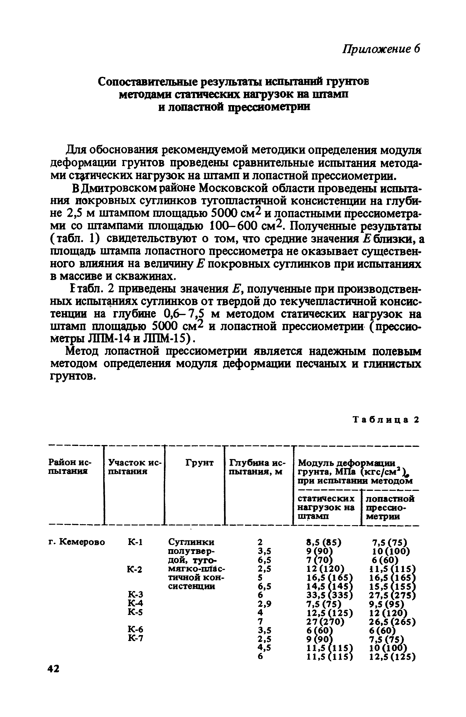 | Оглавление: | Введение 1. Общие положения 2. Технические средства для испытания грунтов и последовательность работы с ними 3. Подготовка к испытанию 4. Проведение испытания 5. Обработка результатов испытаний Приложение 1. Значения деформаций элементов лопастных прессиометров Приложение 2. Журнал полевого испытания грунта методом лопастной прессиометрии Приложение 3. Журнал полевого испытания грунта на срез Приложение 4. Пример построения графика зависимости при испытании грунта лопастным прессиометром Приложение 5. Пример обработки результатов испытания грунтов лопастными прессиометрами Приложение 6. Сопоставительные результаты испытаний грунтов методами статических нагрузок на штамп и лопастной прессиометрии Приложение 7. Пример обработки результатов испытания грунтов на срез прессиометром-сдвигомером ЛПМ-14С Приложение 8. Сопоставительные результаты испытаний грунтов методами ускоренного одноплоскостного и поступательного среза |
