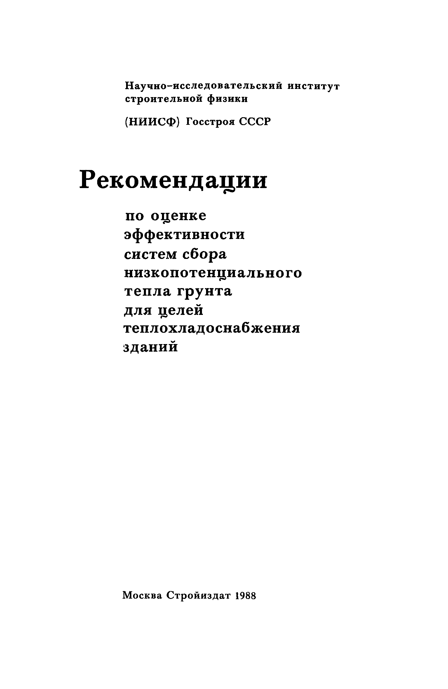 | Название рус.: | Рекомендации по оценке эффективности систем сбора низкопотенциального тепла грунта для целей теплохладоснабжения зданий |