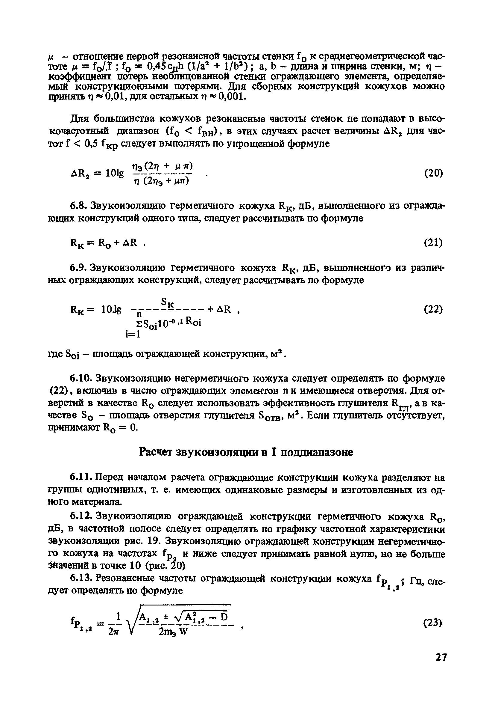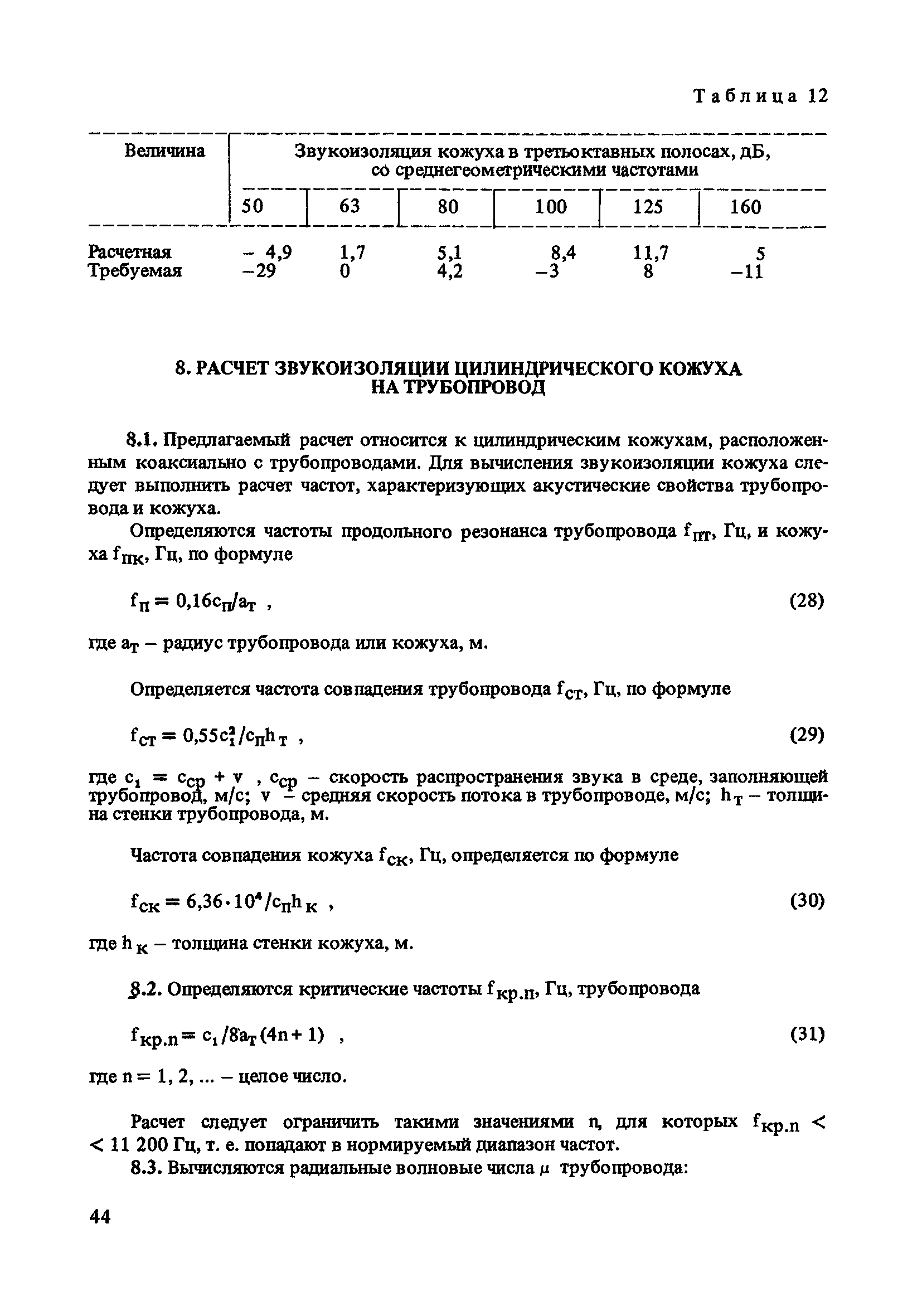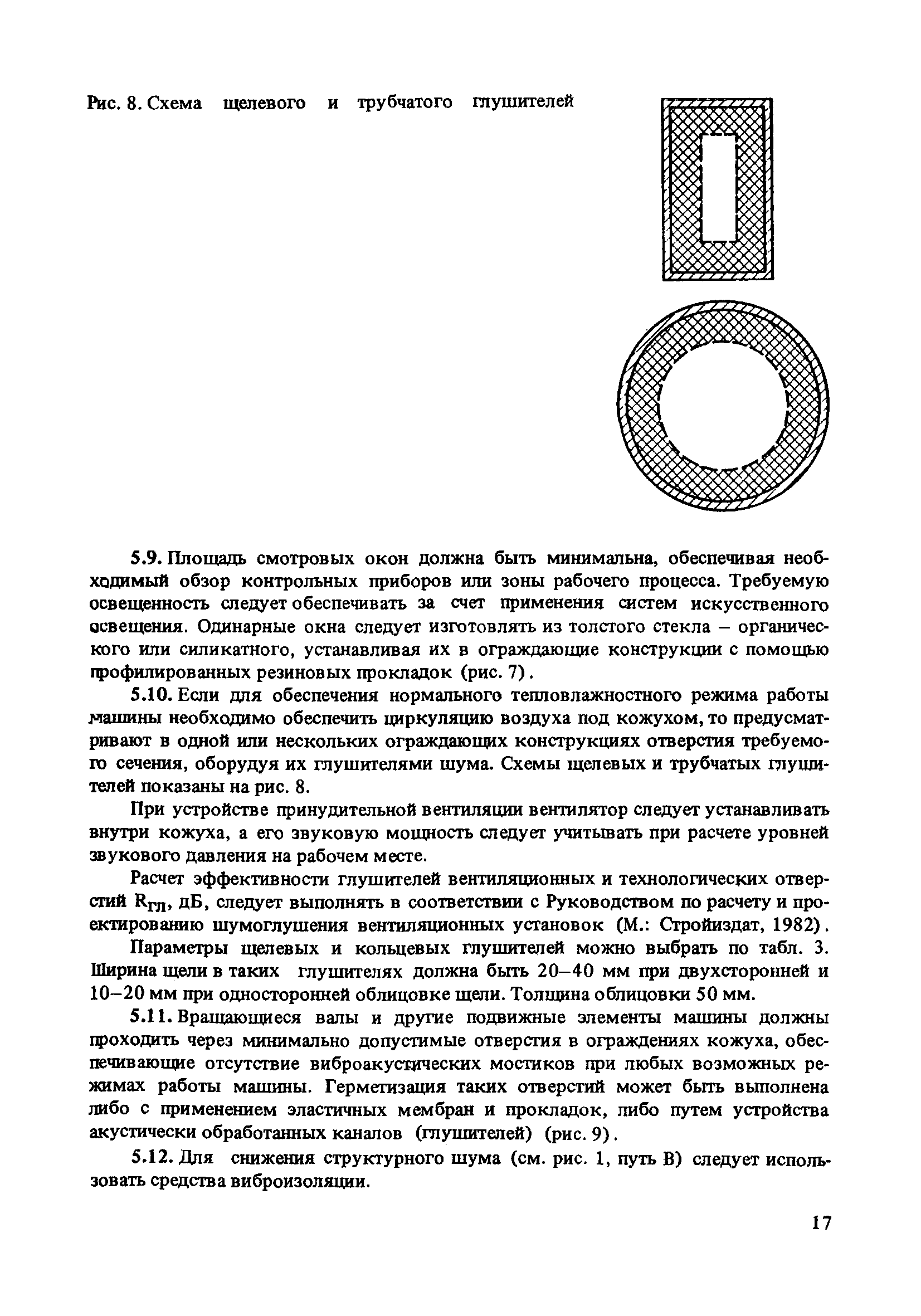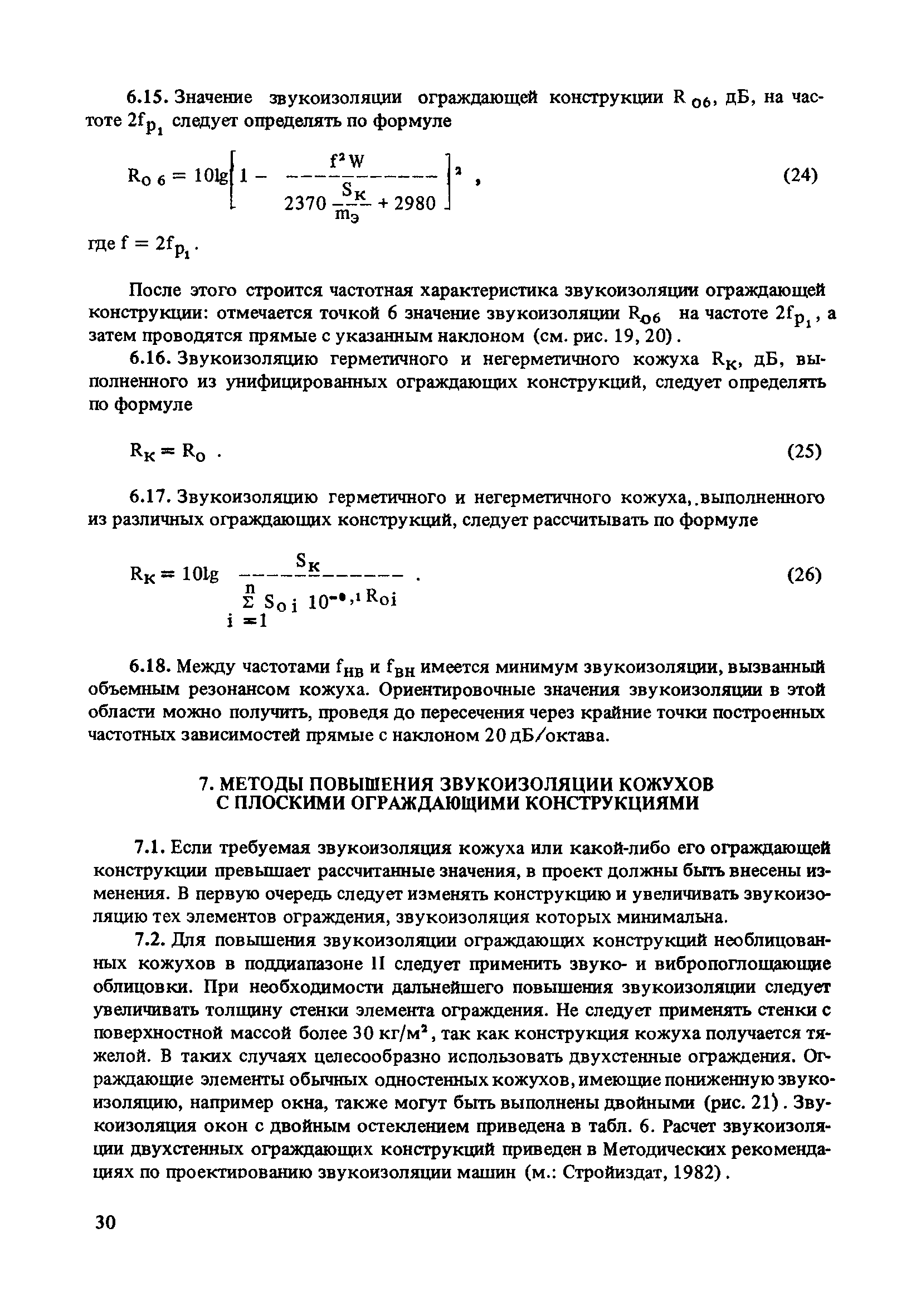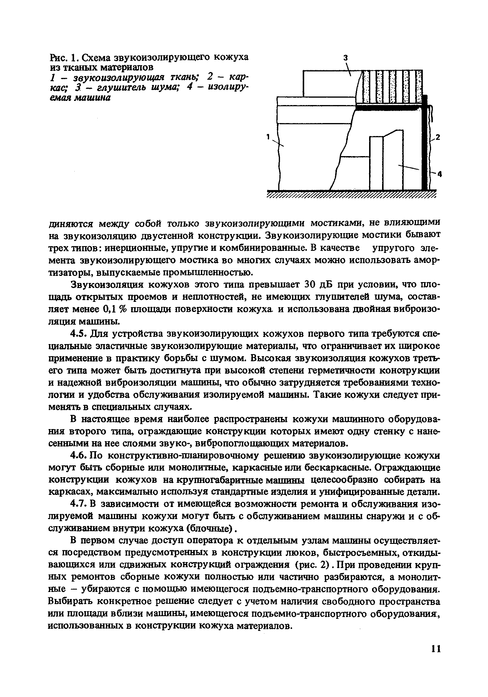| Оглавление: | Предисловие 1. Основные понятия и определения 2. Общие указания по применению звукоизолирующих ограждений машинного оборудования 3. Расчет требуемой звукоизоляции. Задачи акустического расчета 4. Типы звукоизолирующих кожухов. Выбор прототипа 5. Требования к ограждающим конструкциям звукоизолирующих кожухов 6. Расчет звукоизоляции кожуха с плоскими ограждающими конструкциями 7. Методы повышения звукоизоляции кожухов с плоскими ограждающими конструкциями 8. Расчет звукоизоляции цилиндрического кожуха на трубопровод Приложение 1. Конструкции звукоизолирующих ограждений машин Приложение 2. Границы частотных полос |