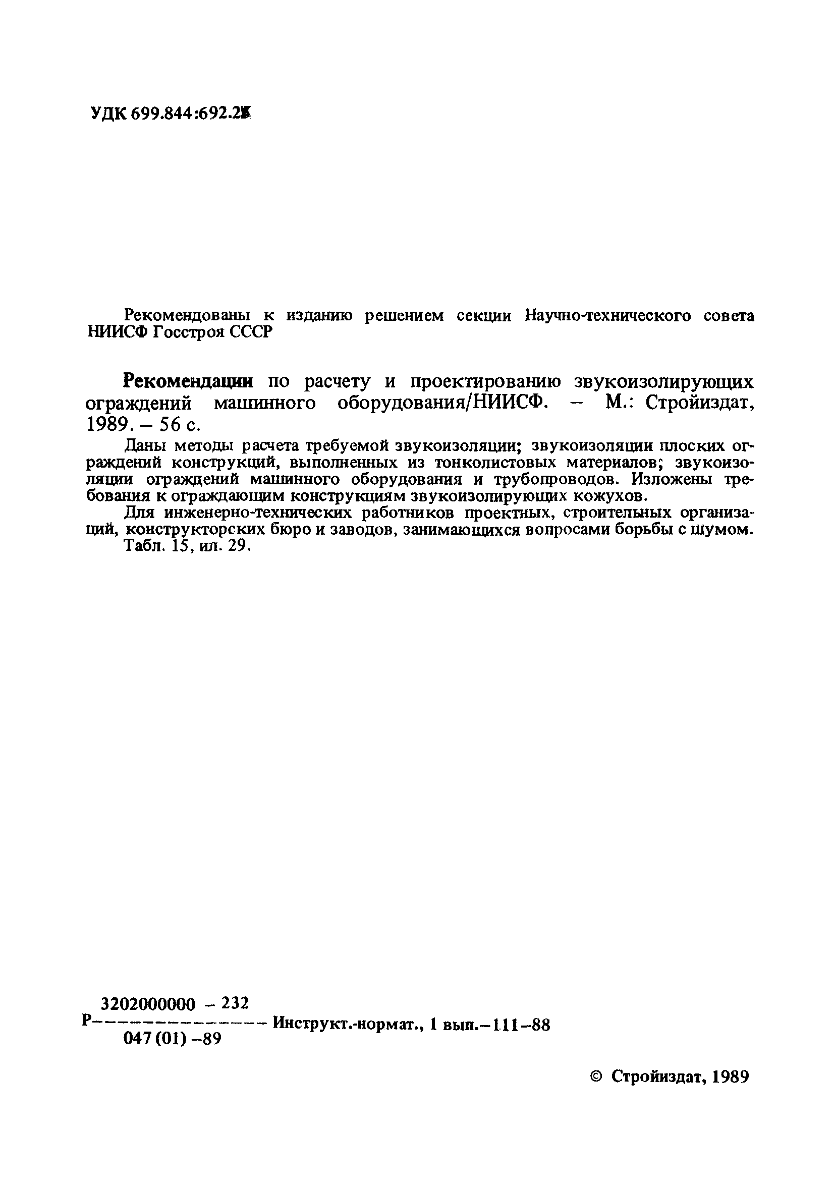 | Название рус.: | Рекомендации по расчету и проектированию звукоизолирующих ограждений машинного оборудования |