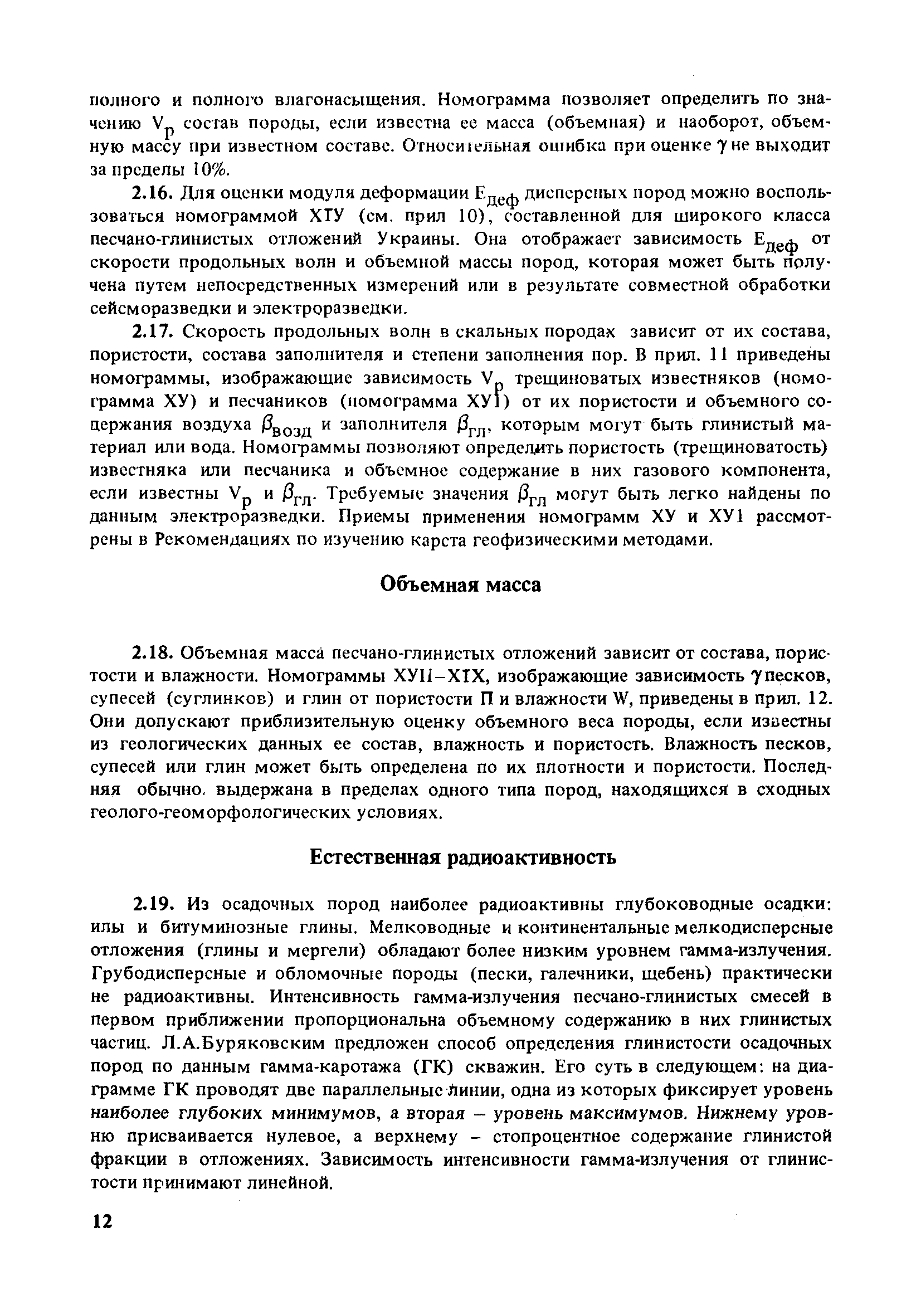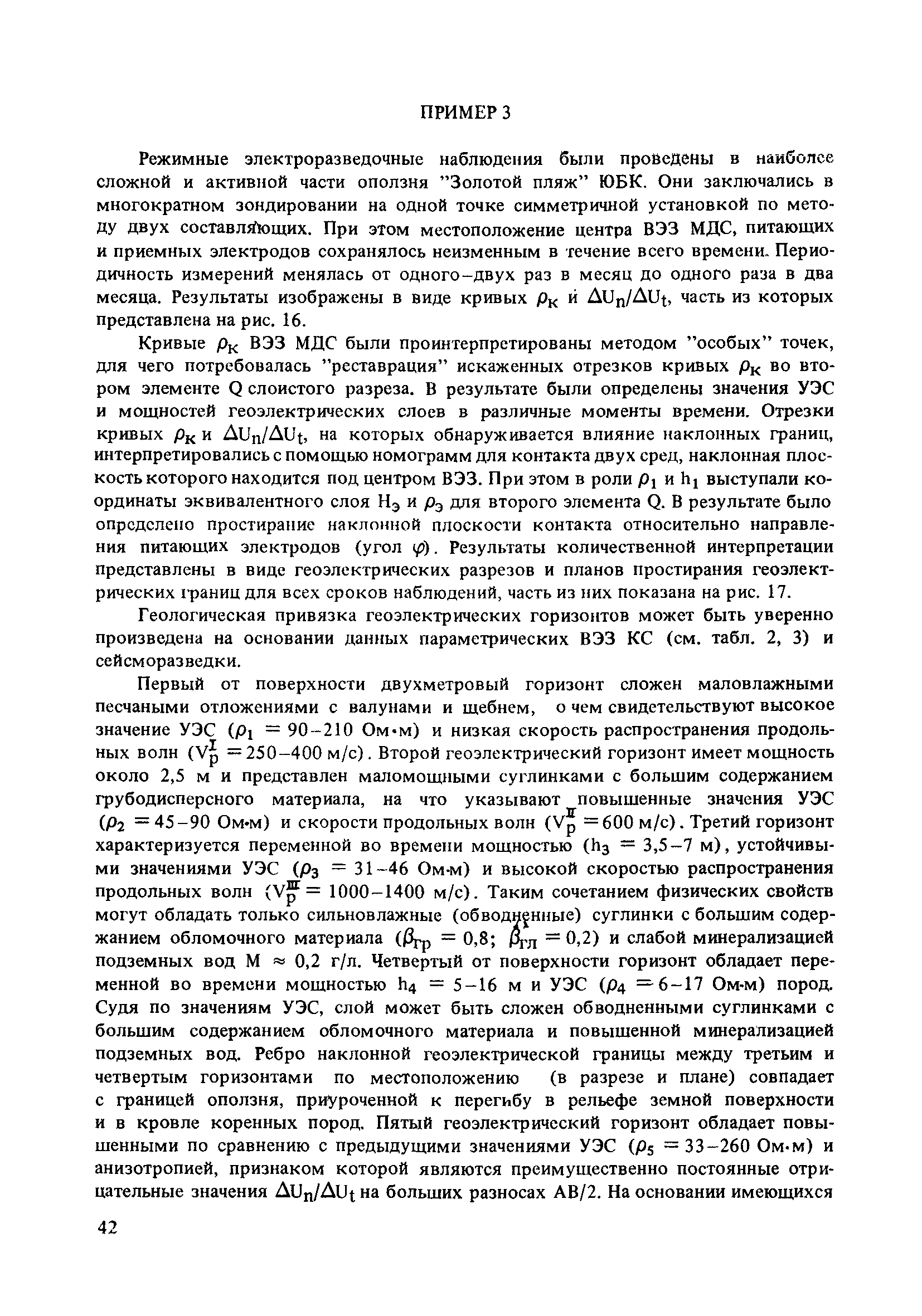 Рекомендации по режимным геофизическим наблюдениям на оползнях| Статус: | справочные материалы, мп, тпр | | Название рус.: | Рекомендации по режимным геофизическим наблюдениям на оползнях | | Дата добавления в базу: | 21.05.2015 | | Дата актуализации: | 01.01.2021 | | Область применения: | В документе рассмотрены типичные геолого-геофизические модели различных типов оползней и исследованы особенности их отражения в геофизических полях. Сформулированы основные критерии выбора комплекса геофизических методов для режимных наблюдений на оползнях, определены задачи режимных геофизических исследований оползней. Даны номограммы, позволяющие определить состав и состояние пород на момент измерений и следить за изменениями их во времени по изменению значений УЭС, скорости продольных воли, объемной массы пород. Рассмотрены примеры проведения комплексных геофизических исследований на различных стадиях режимных наблюдений, показаны способы обработки полевых материалов и представления результатов. Для производственных, научно-исследовательских и проектных организаций, занимающихся режимными исследованиями оползней | | Оглавление: | 1. Общие положения методики режимных наблюдений на оползнях 2. Выбор рационального комплекса геофизических методов изучения оползней Физические свойства пород Удельное электрическое сопротивление Вызванная электрическая поляризуемость Сейсмоакустические свойства Объемная масса Естественная радиоактивность Физико-геологические модели оползней и типичные геофизические аномалии над ними Геоэлектрические модели основных типов оползней Геосейсмические модели основных типов оползней Геоплотностные и гравитационные модели основных типов оползней Выбор комплекса геофизических методов 3. Комплекс геофизических методов для режимных наблюдений на оползнях Геофизическая съемка на исходный момент времени Пример 1 Пример 2 Пример 3 Приложение 1. Номограмма 1. Зависимость УЭС слабоминерализованных дисперсных пород от их состава, влажности или температуры Приложение 2. Номограмма II. Зависимость УЭС дисперсных пород от их состава и минерализации подземных вод Приложение 3. Номограмма III. Для оценки объемного содержания грубообломочного материала в песчано-глинистых отложениях Приложение 4. Система номограмм IV - VII, изображающих зависимость УЭС порового раствора от минерализации и объемного содержания поровой влаги в породах различного состава Приложение 5. Номограмма IX. Для оценки соотношения суммарных мощностей, проводящих и непроводящих электрический ток прослоев в слоистых разрезах Приложение 6. Номограмма X. Номограмма Х. Для определения объемного содержания проводящего материала в порах и трещинах по величинам среднеквадратического УЭС и коэффициента анизотропии толщи Приложение 7. Номограмма ХI. Зависимость УЭС воды от ее минерализации (приведенная к 18 градусов Цельсия) Приложение 8. Номограмма XII. Зависимость истинной поляризуемости пород от состава и влажности при минерализации М = 0,5 г/л Приложение 9. Номограмма XIII. Зависимость скорости продольных волн от состава и объемной массы при неполном и полном влагонасыщении Приложение 10. Номограмма XIV. Зависимость модуля деформации песчано-глинистых отложений от скорости продольных волн и объемной массы пород Приложение 11. Номограмма ХV. Зависимость скор