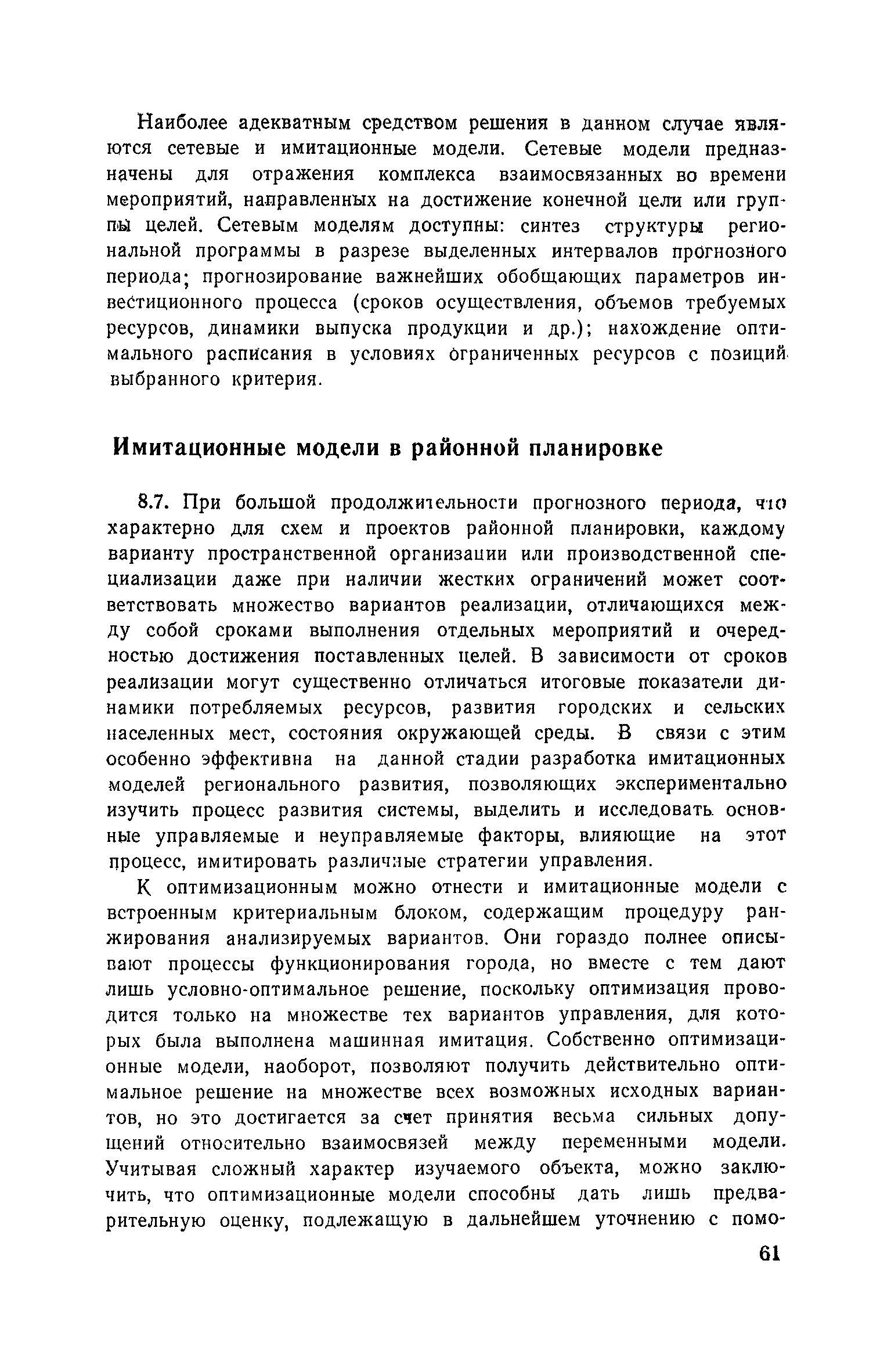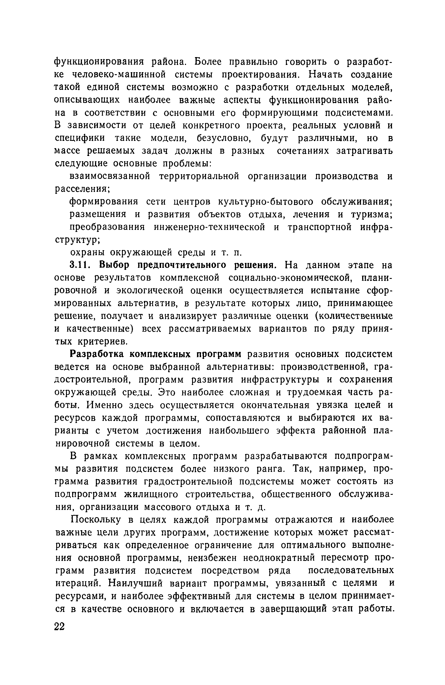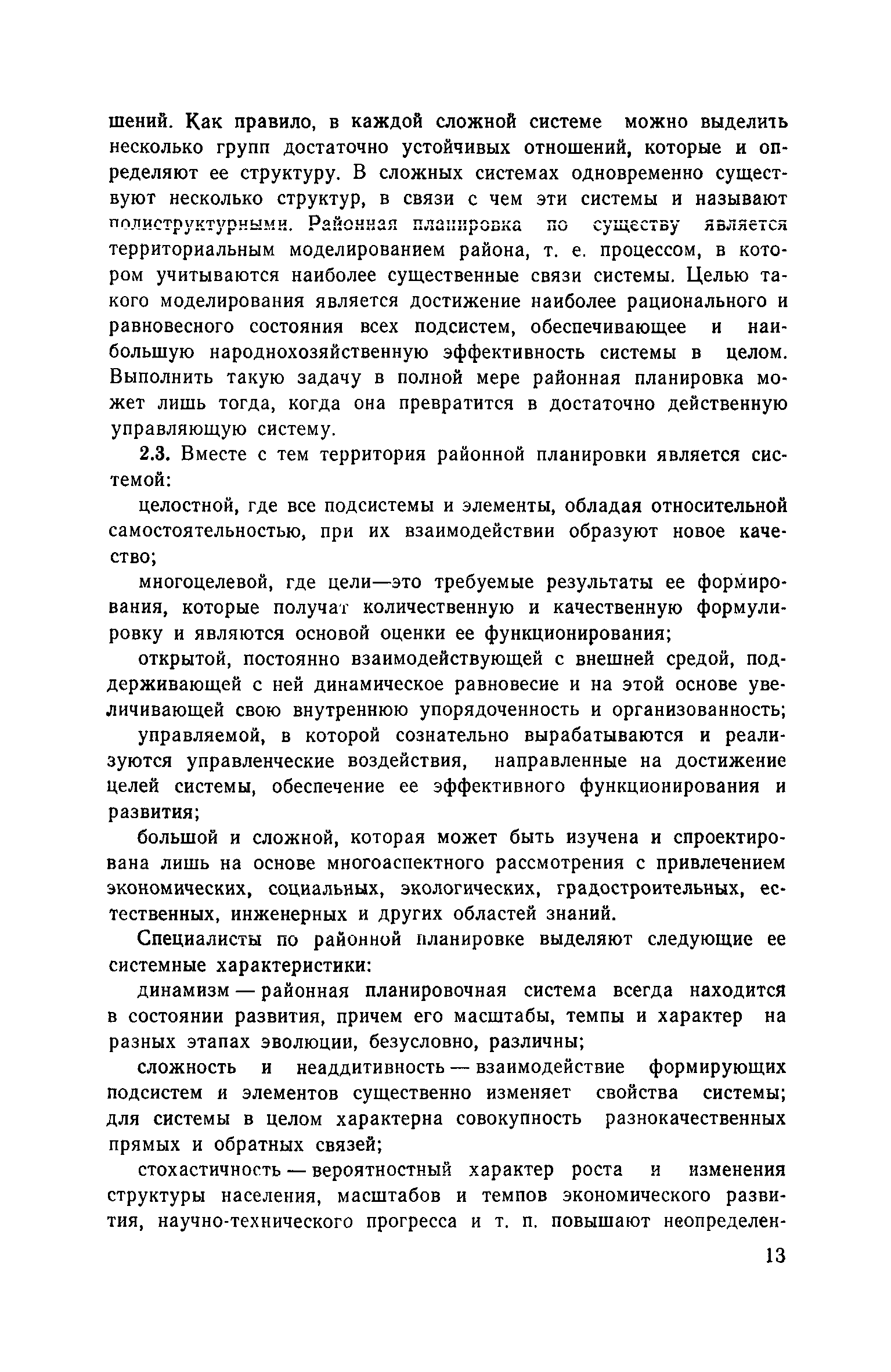 | Оглавление: | Предисловие 1. Системные основы районной планировки Основные принципы системных исследований Районная планировка как системный метод Районная планировка и система основных территориальных документов 2. Системные принципы методики районной планировки Определение объекта районной планировки Районная планировка как управляющая система 3. Этапы и процедуры системной разработки схем и проектов Общие положения Основные этапы 4. Программно-целевой подход в районной планировке Общие положения Целевой подход Программный подход 5. Структурно-функциональный анализ Общие положения Логика структурно-функционального анализа Основные формирующие подсистемы района 6. Альтернативный подход к формированию основных подсистем Принципы формирования альтернатив Формирование альтернатив основных подсистем 7. Системные принципы планировочной организации территории Понятие планировочной организации Планировочная структура Функциональное зонирование 8. Принципы и методы математического моделирования Общие принципы Оптимизационные модели в районной планировке Имитационные модели в районной планировке 9. Эффективность районной планировки Общие положения Основные подходы 10. Реализация районной планировки Пути реализации Методы совершенствования Приложение 1. Моделирование групповой системы населенных мест в составе проекта районной планировки Приложение 2. Типовые цели формирования ГСНМ Приложение 3. Цели и критерии оценки альтернатив формирования ГСНМ Приложение 4. Экономический блок районной планировки: цели и программы Приложение 5. Использование математических моделей при разработке проекта районной планировки Приложение 6. Условные примеры расчета общего эффекта схемы и проекта районной планировки аналитическим методом |
