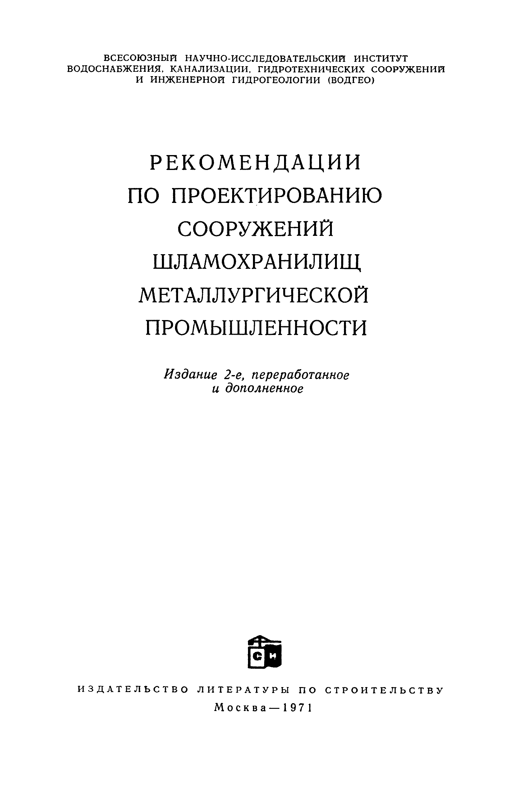 | Название рус.: | Рекомендации по проектированию сооружений шламохранилищ металлургической промышленности |