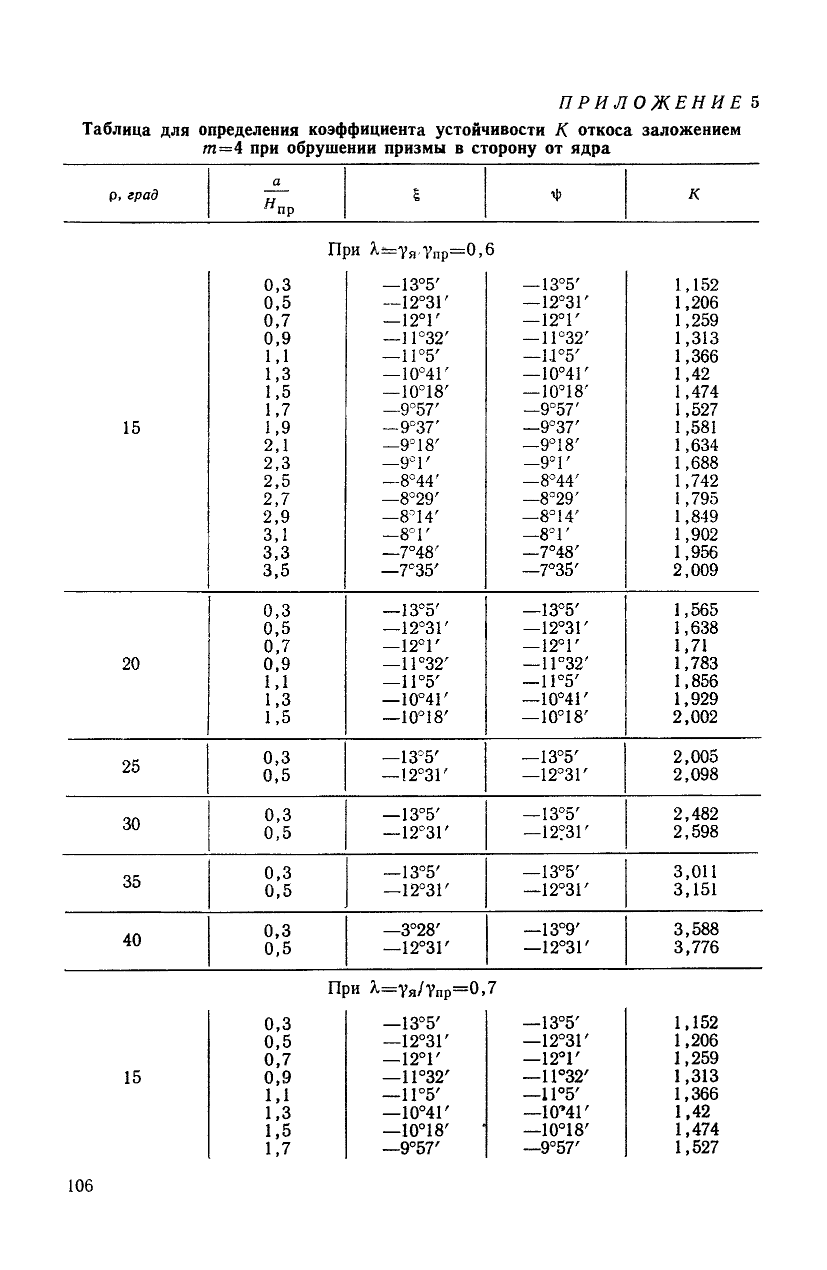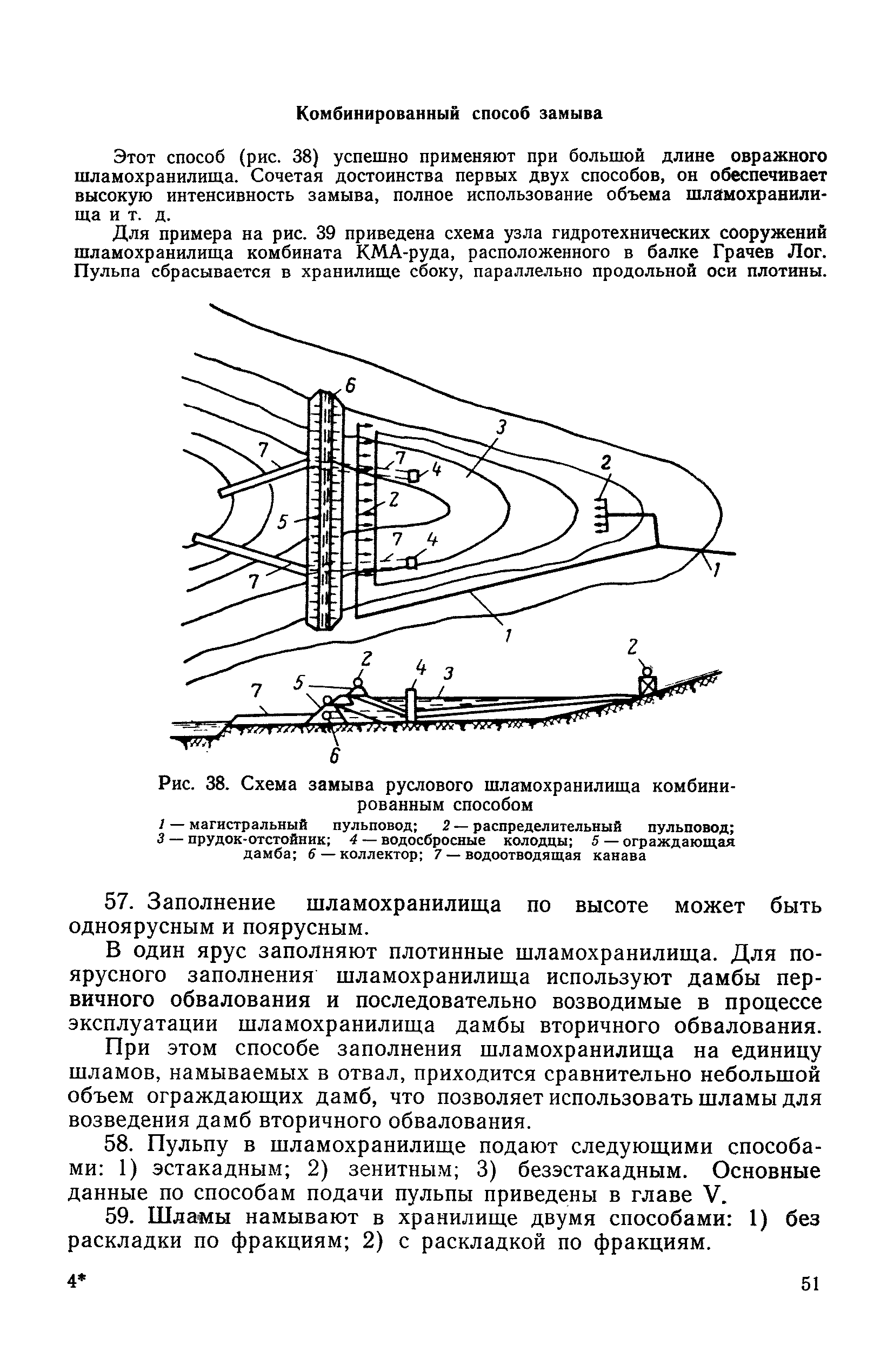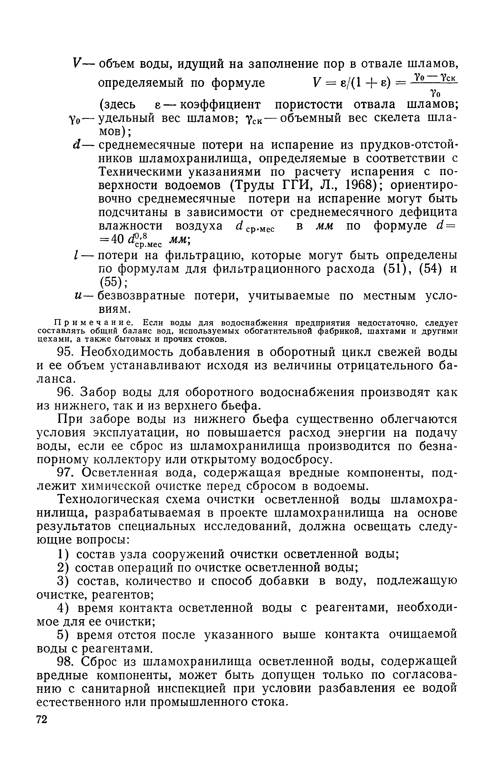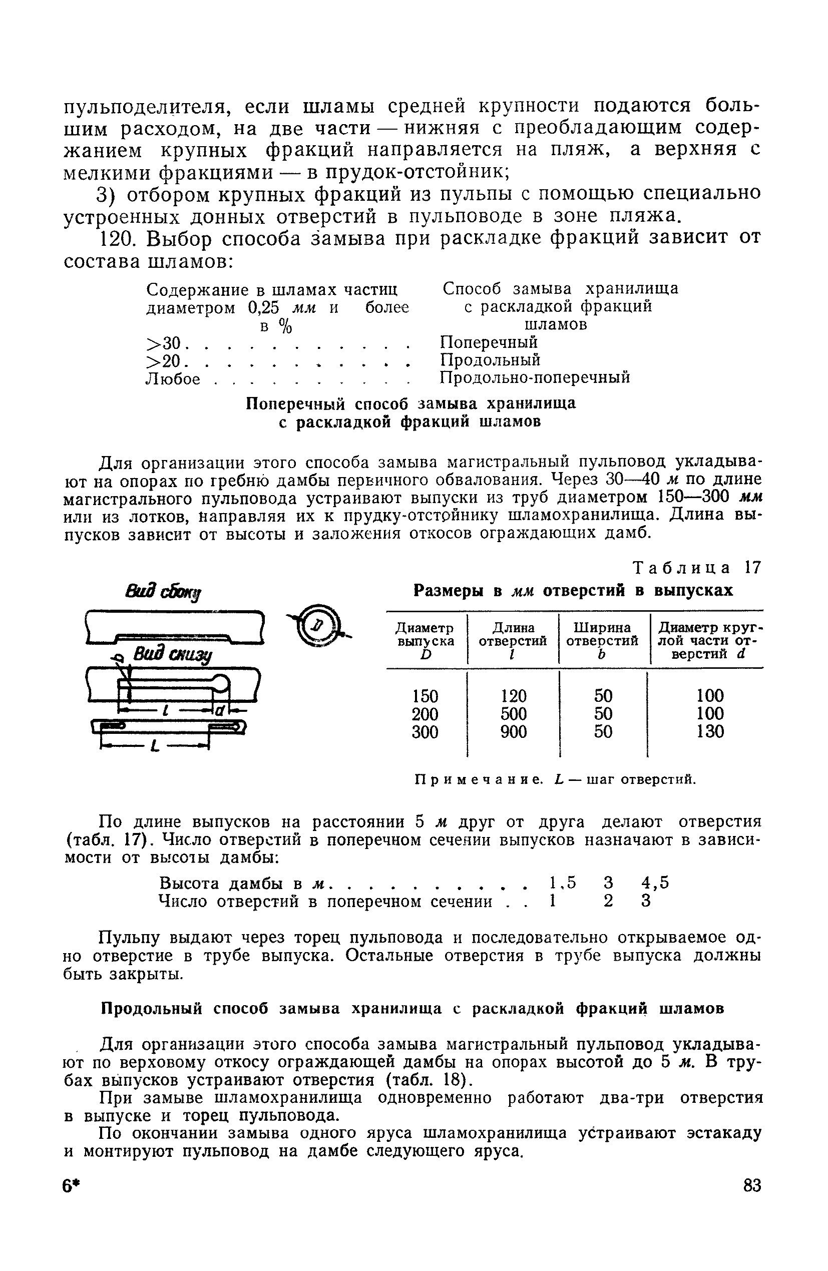 | Оглавление: | Предисловие Глава 1. Общие положения 1. Область применения 2. Основная терминология 3. Классификация шламохранилищ 4. Требования к ограждающим дамбам Глава II. Топографические, гидрологические, инженерно-геологические и гидрогеологические изыскания и исследования 1. Топографические и гидрологические изыскания 2. Инженерно-геологические и гидрогеологические изыскания 3. Требования к изысканиям для проектирования менее ответственных шламохранилищ 4. Оценка грунтов оснований чаши шламохранилища и его сооружений Глава III. Проектирование шламохранилищ 1. Общие вопросы 2. Выбор расчетных физико-механических характеристик шламов 3. Выбор расчетных физико-механических характеристик мерзлых и оттаявших шламов 4. Выбор класса капитальности шламохранилища 5. Выбор места расположения площадки для шламохранилища 6. Расчет отвала и прудка-отстойника 7. Выбор способа замыва шламохранилища 8. Защита территории прилегающей к шламохранилищу, от подтопления и заболачивания Глава IV. Проектирование и возведение гидротехнических сооружений шламохранилищ 1. Выбор типа ограждающих дамб 2. Дренажные устройства 3. Проектирование ограждающих дамб 4. Возведение ограждающих дамб первичного обвалования 5. Оборотное водоснабжение и сброс осветленной воды Глава V. Эксплуатация шламохранилищ 1. Организация эксплуатации шламохранилища 2. Возведение ограждающих дамб вторичного обвалования 3. Организация подачи пульпы в шламохранилище 4. Раскладка шламов в хранилище 5. Замыв шламохранилища в зимних условиях 6. Контрольные наблюдения при эксплуатации шламохранилищ 7. Указания по текущему ремонту сооружений при эксплуатации шламохранилищ Приложение 1. Ориентировочный расход сточных вод на 1 т перерабатываемой руды Приложение 2. Характеристика стока обогатительных фабрик цветной металлургии Приложение 3. Таблица для определения коэффициента устойчивости К откоса заложением m=2 при обрушении призмы в сторону от ядра Приложение 4. Таблица для определения коэффициента устойчивости К откоса заложением m=3 при обрушении призмы в сторону от ядра Приложение 5. Таблица для определения коэффициента устойчивости К откоса заложением m=4 при обрушении призмы в сторону от ядра Приложение 6. Таблица для определения коэффициента устойчивости К откоса заложением m=5 при обрушении призмы в сторону от ядра Приложение 7. График для определения угла наклона альфа внутренней грани упорной призмы при заложении откосов m = 2 - 5 |