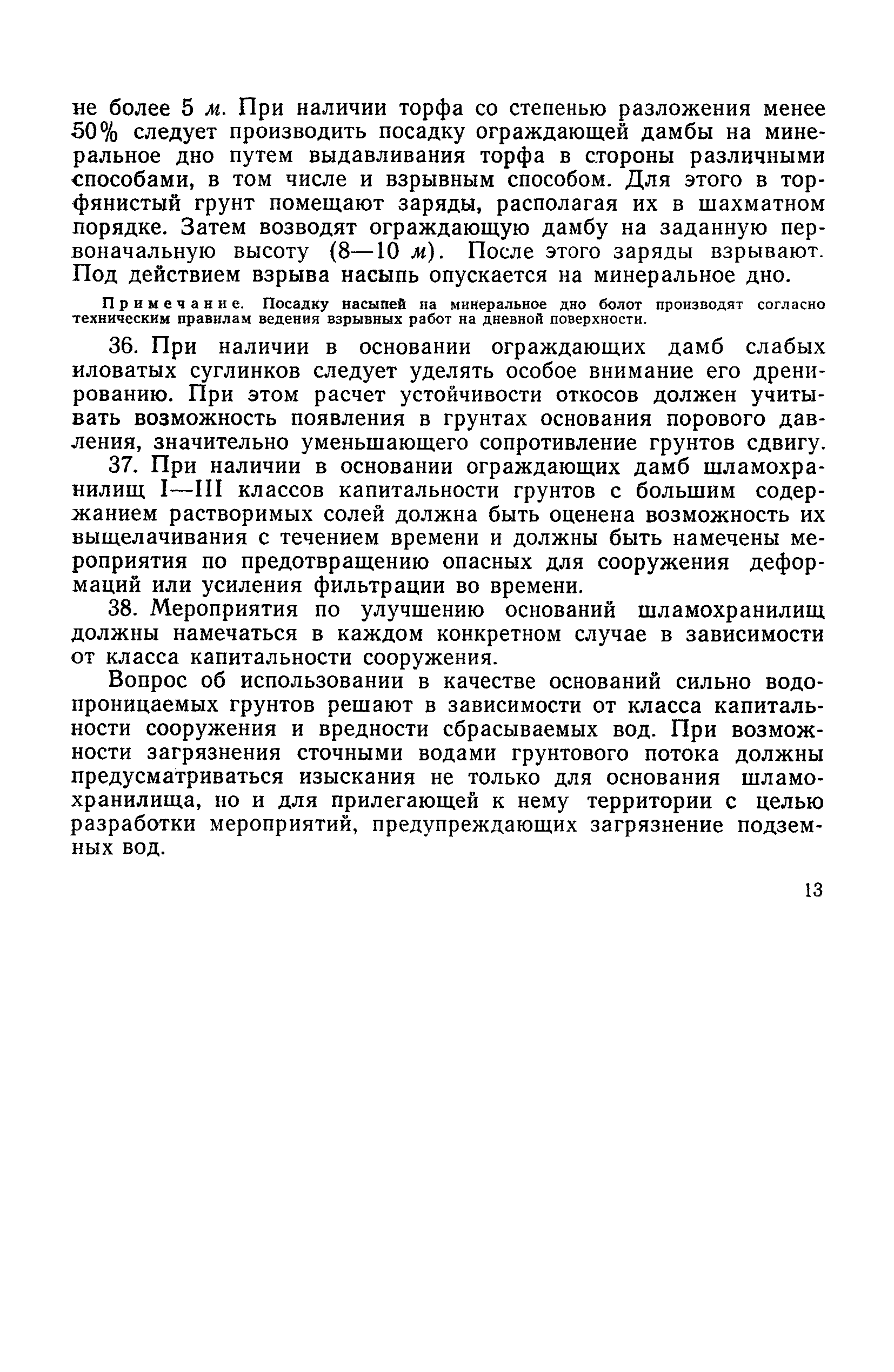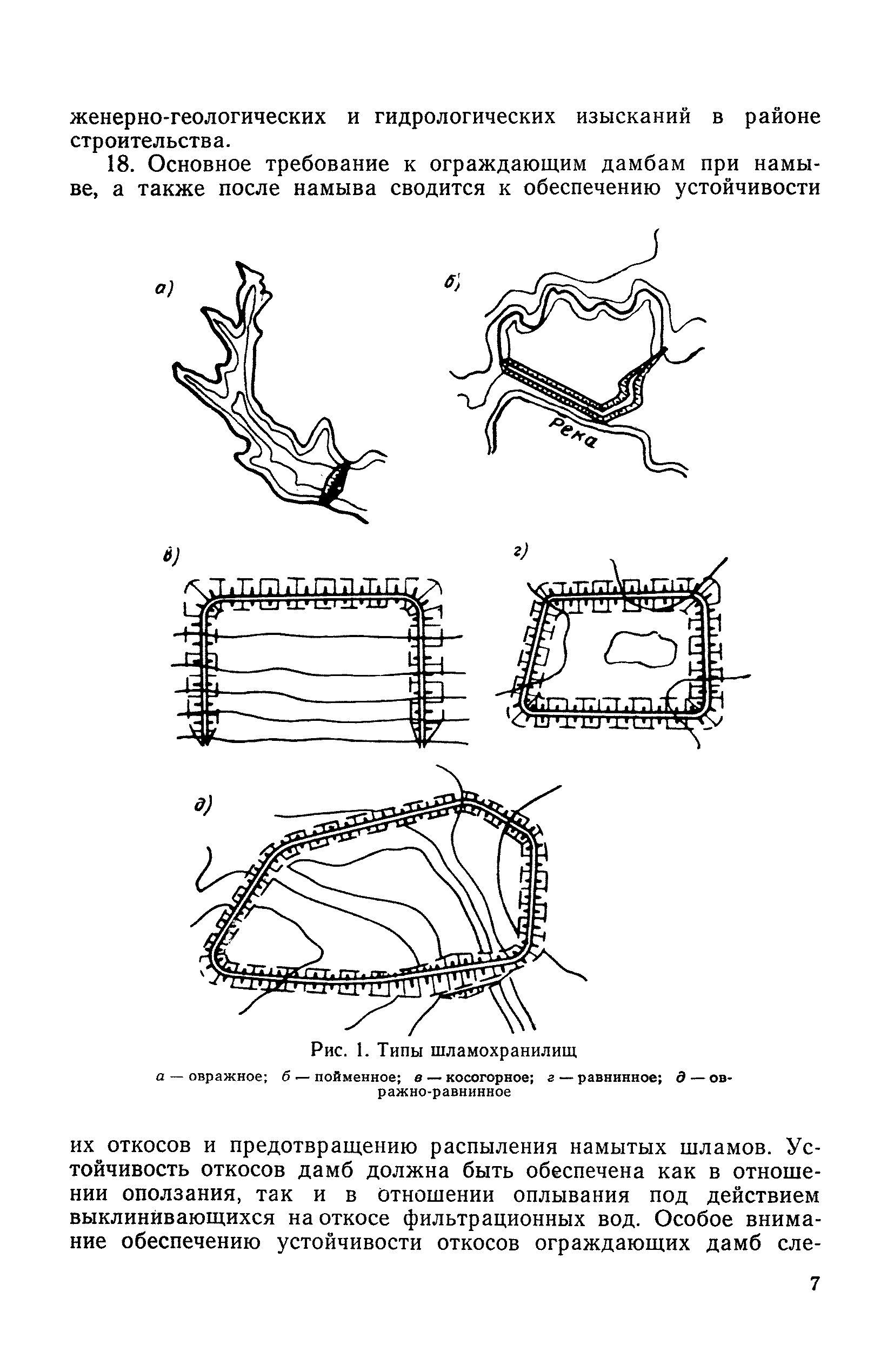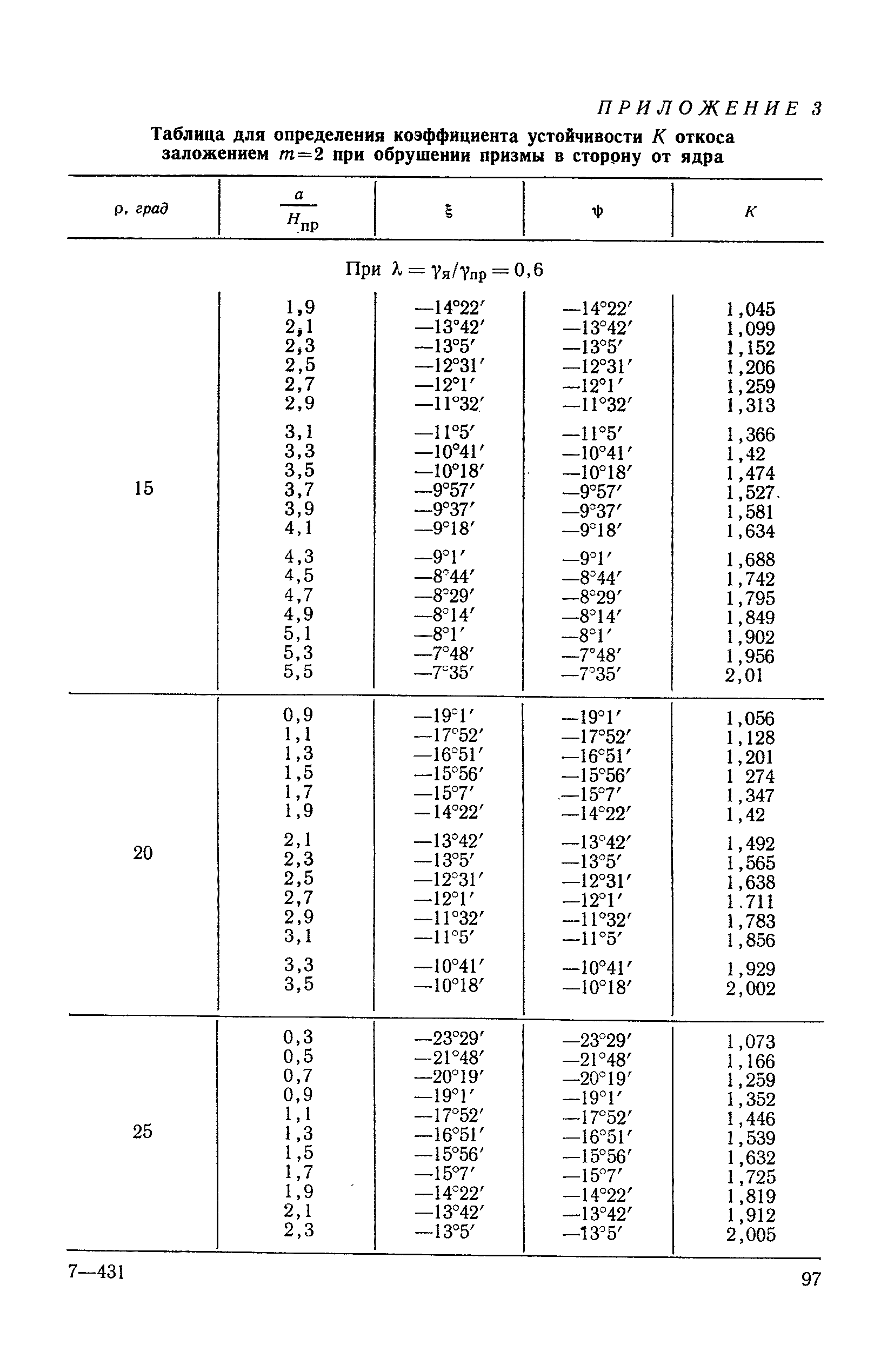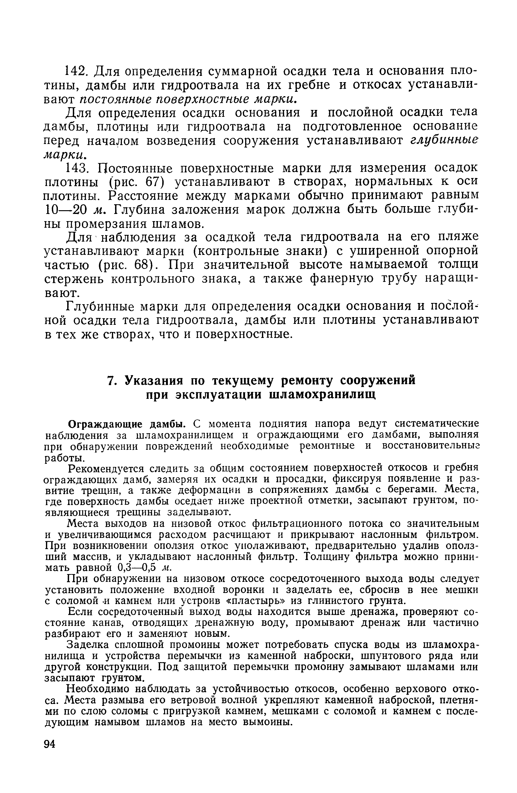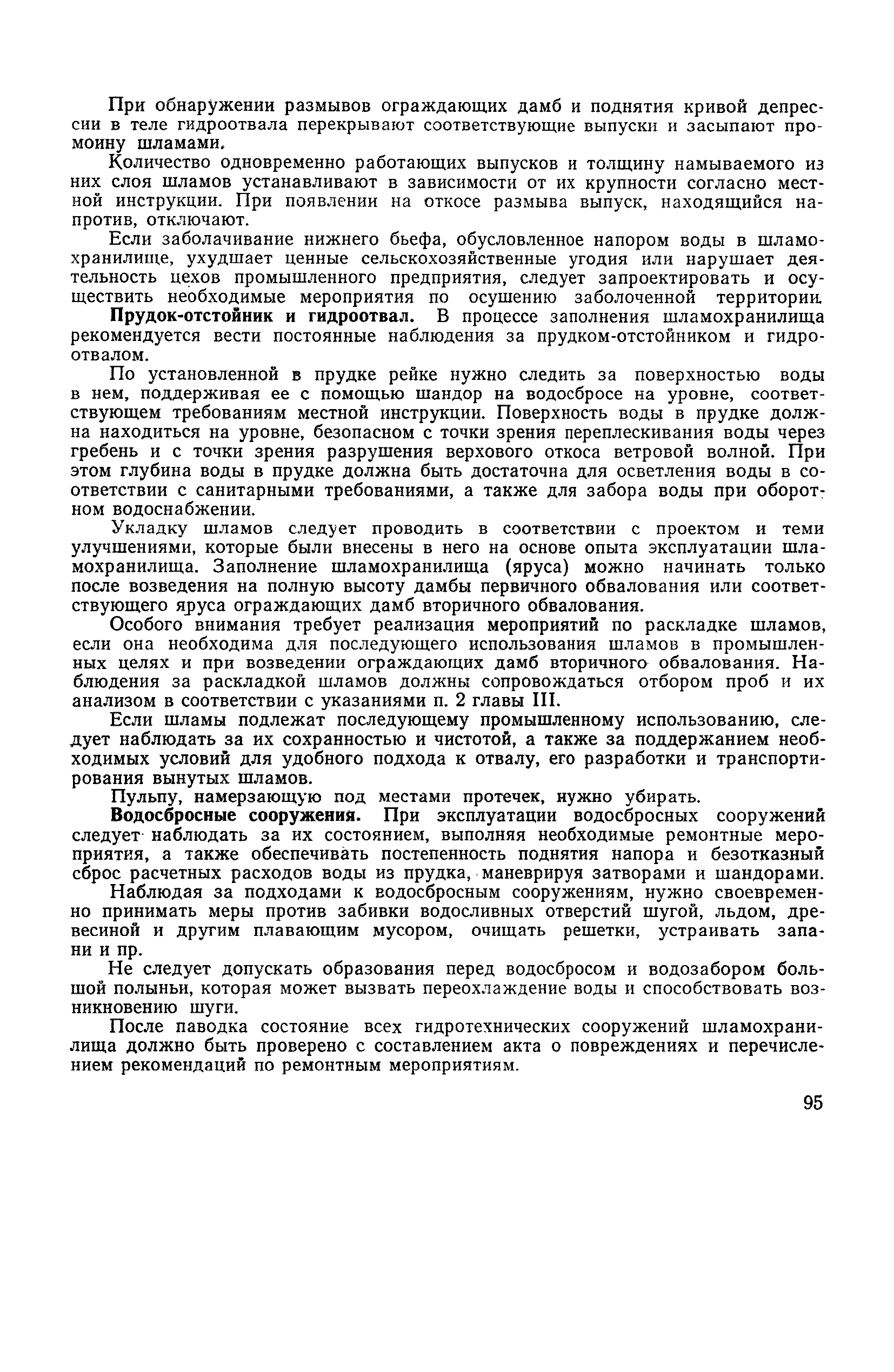 | Оглавление: | Предисловие Глава 1. Общие положения 1. Область применения 2. Основная терминология 3. Классификация шламохранилищ 4. Требования к ограждающим дамбам Глава II. Топографические, гидрологические, инженерно-геологические и гидрогеологические изыскания и исследования 1. Топографические и гидрологические изыскания 2. Инженерно-геологические и гидрогеологические изыскания 3. Требования к изысканиям для проектирования менее ответственных шламохранилищ 4. Оценка грунтов оснований чаши шламохранилища и его сооружений Глава III. Проектирование шламохранилищ 1. Общие вопросы 2. Выбор расчетных физико-механических характеристик шламов 3. Выбор расчетных физико-механических характеристик мерзлых и оттаявших шламов 4. Выбор класса капитальности шламохранилища 5. Выбор места расположения площадки для шламохранилища 6. Расчет отвала и прудка-отстойника 7. Выбор способа замыва шламохранилища 8. Защита территории прилегающей к шламохранилищу, от подтопления и заболачивания Глава IV. Проектирование и возведение гидротехнических сооружений шламохранилищ 1. Выбор типа ограждающих дамб 2. Дренажные устройства 3. Проектирование ограждающих дамб 4. Возведение ограждающих дамб первичного обвалования 5. Оборотное водоснабжение и сброс осветленной воды Глава V. Эксплуатация шламохранилищ 1. Организация эксплуатации шламохранилища 2. Возведение ограждающих дамб вторичного обвалования 3. Организация подачи пульпы в шламохранилище 4. Раскладка шламов в хранилище 5. Замыв шламохранилища в зимних условиях 6. Контрольные наблюдения при эксплуатации шламохранилищ 7. Указания по текущему ремонту сооружений при эксплуатации шламохранилищ Приложение 1. Ориентировочный расход сточных вод на 1 т перерабатываемой руды Приложение 2. Характеристика стока обогатительных фабрик цветной металлургии Приложение 3. Таблица для определения коэффициента устойчивости К откоса заложением m=2 при обрушении призмы в сторону от ядра Приложение 4. Таблица для определения коэффициента устойчивости К откоса заложением m=3 при обрушении призмы в сторону от ядра Приложение 5. Таблица для определения коэффициента устойчивости К откоса заложением m=4 при обрушении призмы в сторону от ядра Приложение 6. Таблица для определения коэффициента устойчивости К откоса заложением m=5 при обрушении призмы в сторону от ядра Приложение 7. График для определения угла наклона альфа внутренней грани упорной призмы при заложении откосов m = 2 - 5 |