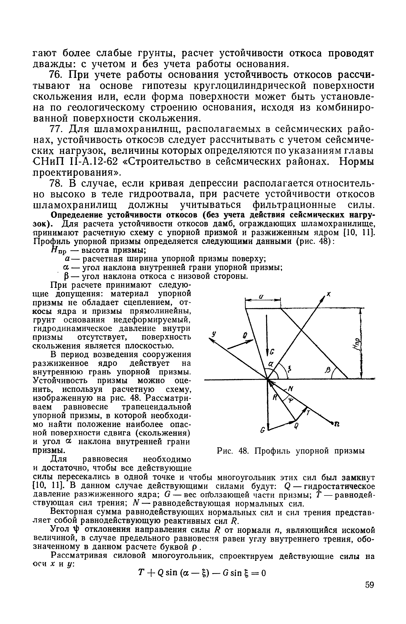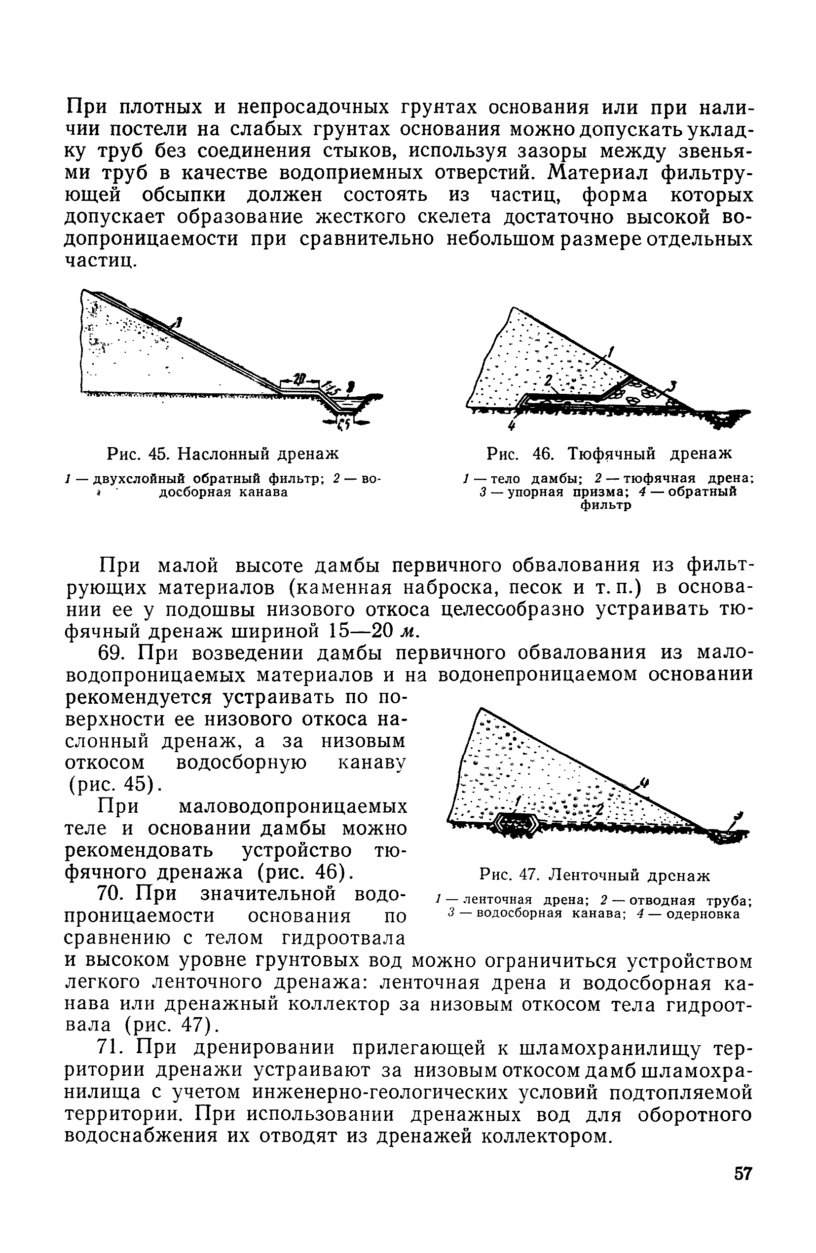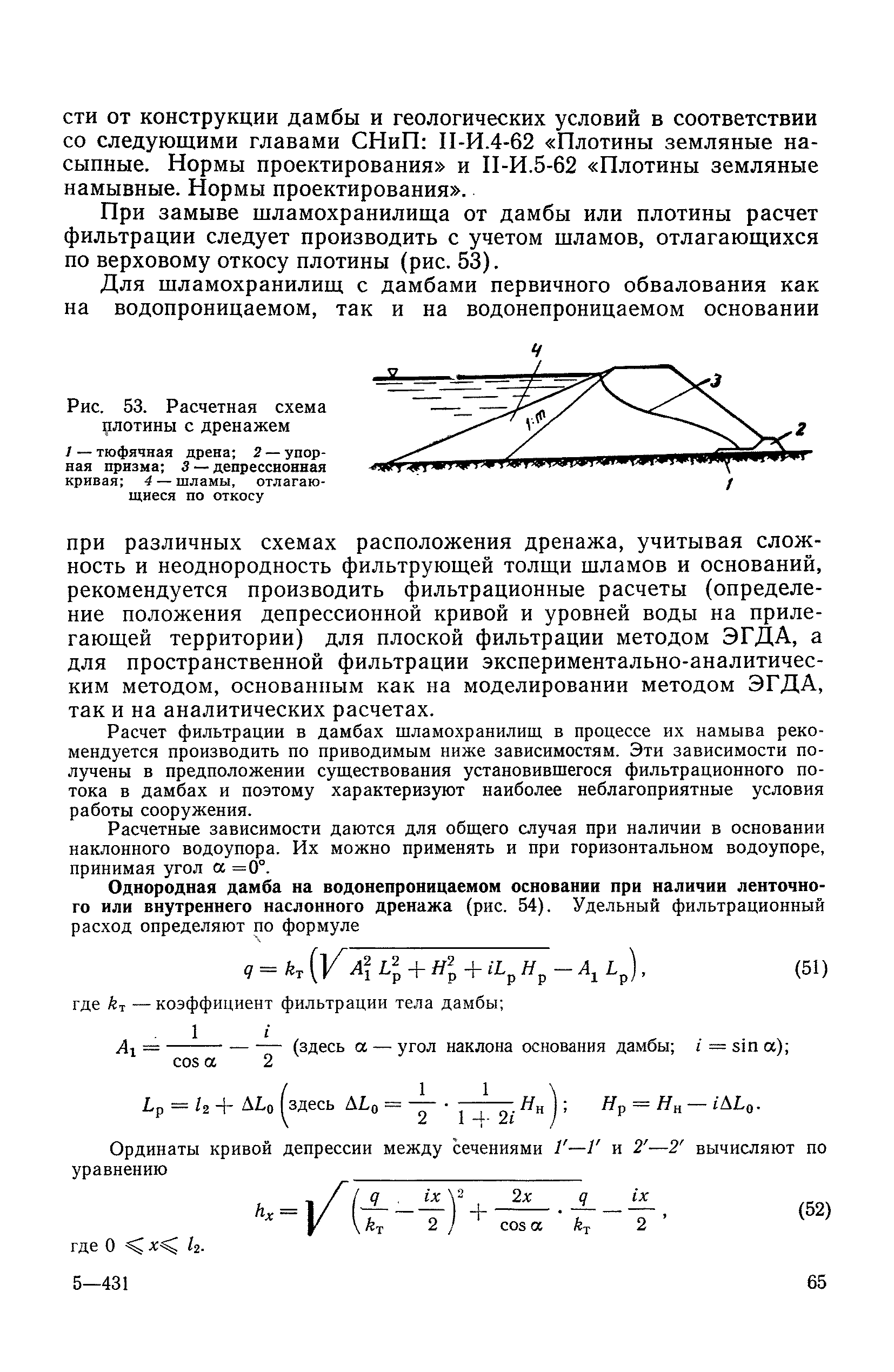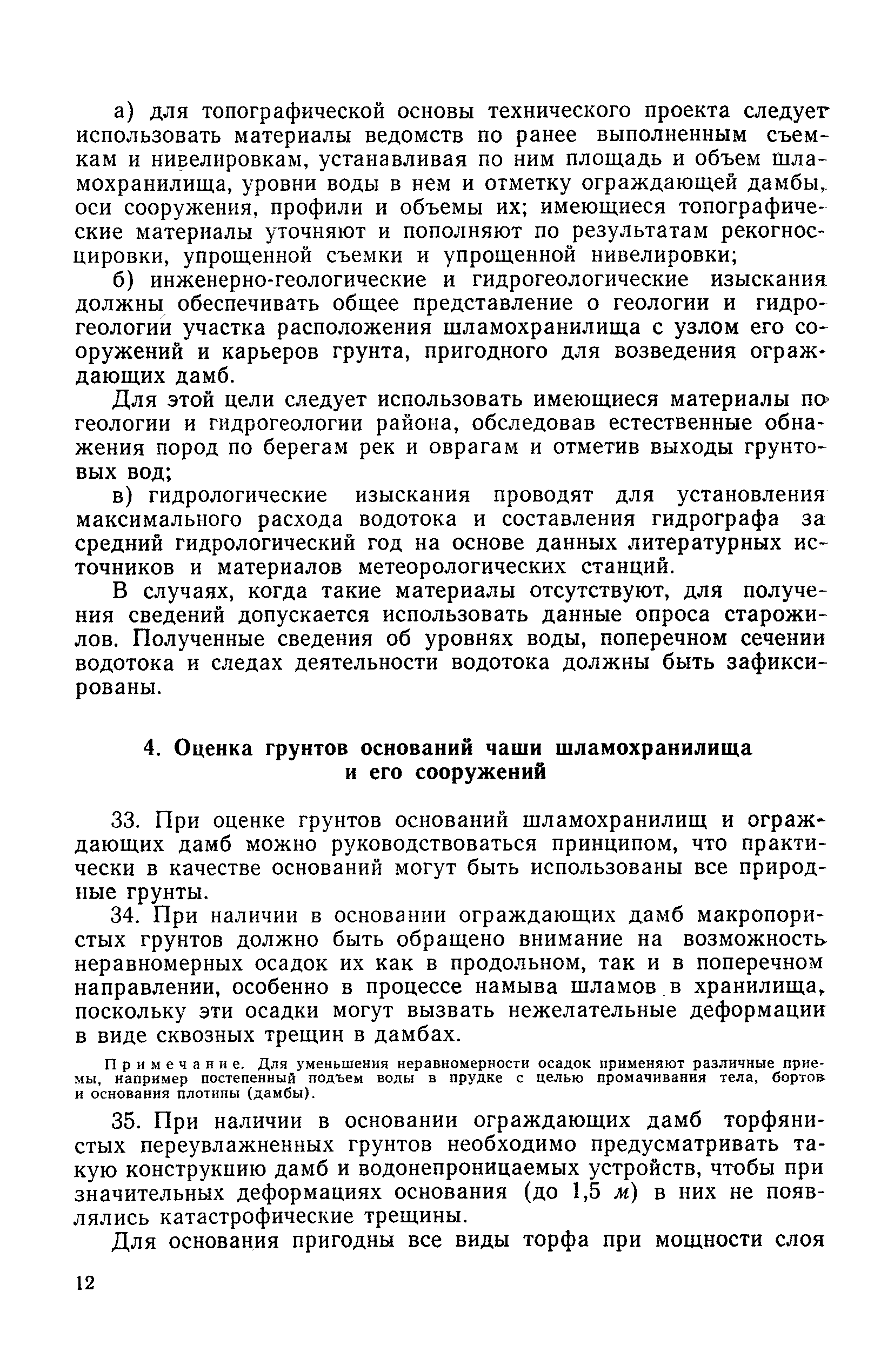 | Оглавление: | Предисловие Глава 1. Общие положения 1. Область применения 2. Основная терминология 3. Классификация шламохранилищ 4. Требования к ограждающим дамбам Глава II. Топографические, гидрологические, инженерно-геологические и гидрогеологические изыскания и исследования 1. Топографические и гидрологические изыскания 2. Инженерно-геологические и гидрогеологические изыскания 3. Требования к изысканиям для проектирования менее ответственных шламохранилищ 4. Оценка грунтов оснований чаши шламохранилища и его сооружений Глава III. Проектирование шламохранилищ 1. Общие вопросы 2. Выбор расчетных физико-механических характеристик шламов 3. Выбор расчетных физико-механических характеристик мерзлых и оттаявших шламов 4. Выбор класса капитальности шламохранилища 5. Выбор места расположения площадки для шламохранилища 6. Расчет отвала и прудка-отстойника 7. Выбор способа замыва шламохранилища 8. Защита территории прилегающей к шламохранилищу, от подтопления и заболачивания Глава IV. Проектирование и возведение гидротехнических сооружений шламохранилищ 1. Выбор типа ограждающих дамб 2. Дренажные устройства 3. Проектирование ограждающих дамб 4. Возведение ограждающих дамб первичного обвалования 5. Оборотное водоснабжение и сброс осветленной воды Глава V. Эксплуатация шламохранилищ 1. Организация эксплуатации шламохранилища 2. Возведение ограждающих дамб вторичного обвалования 3. Организация подачи пульпы в шламохранилище 4. Раскладка шламов в хранилище 5. Замыв шламохранилища в зимних условиях 6. Контрольные наблюдения при эксплуатации шламохранилищ 7. Указания по текущему ремонту сооружений при эксплуатации шламохранилищ Приложение 1. Ориентировочный расход сточных вод на 1 т перерабатываемой руды Приложение 2. Характеристика стока обогатительных фабрик цветной металлургии Приложение 3. Таблица для определения коэффициента устойчивости К откоса заложением m=2 при обрушении призмы в сторону от ядра Приложение 4. Таблица для определения коэффициента устойчивости К откоса заложением m=3 при обрушении призмы в сторону от ядра Приложение 5. Таблица для определения коэффициента устойчивости К откоса заложением m=4 при обрушении призмы в сторону от ядра Приложение 6. Таблица для определения коэффициента устойчивости К откоса заложением m=5 при обрушении призмы в сторону от ядра Приложение 7. График для определения угла наклона альфа внутренней грани упорной призмы при заложении откосов m = 2 - 5 |