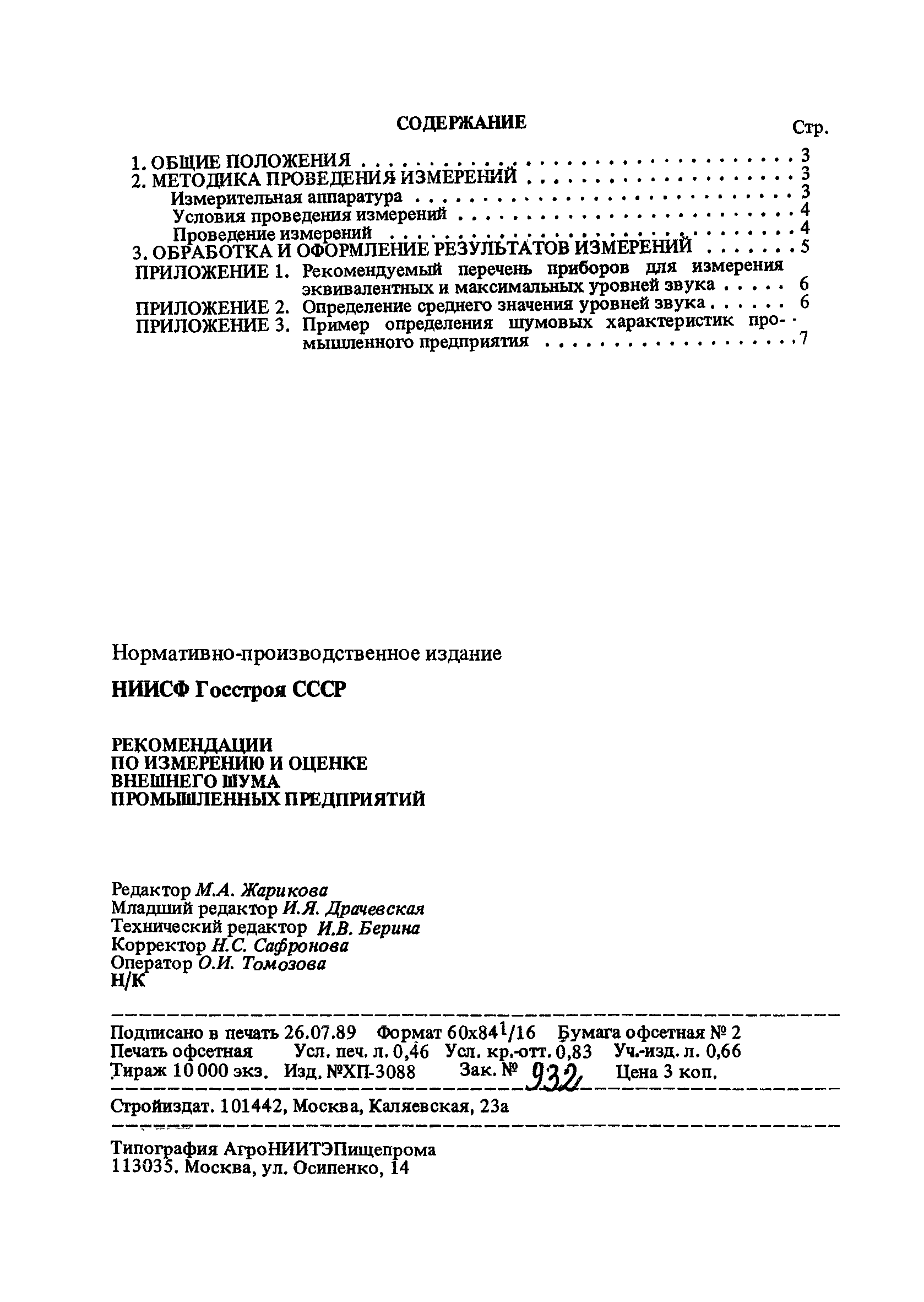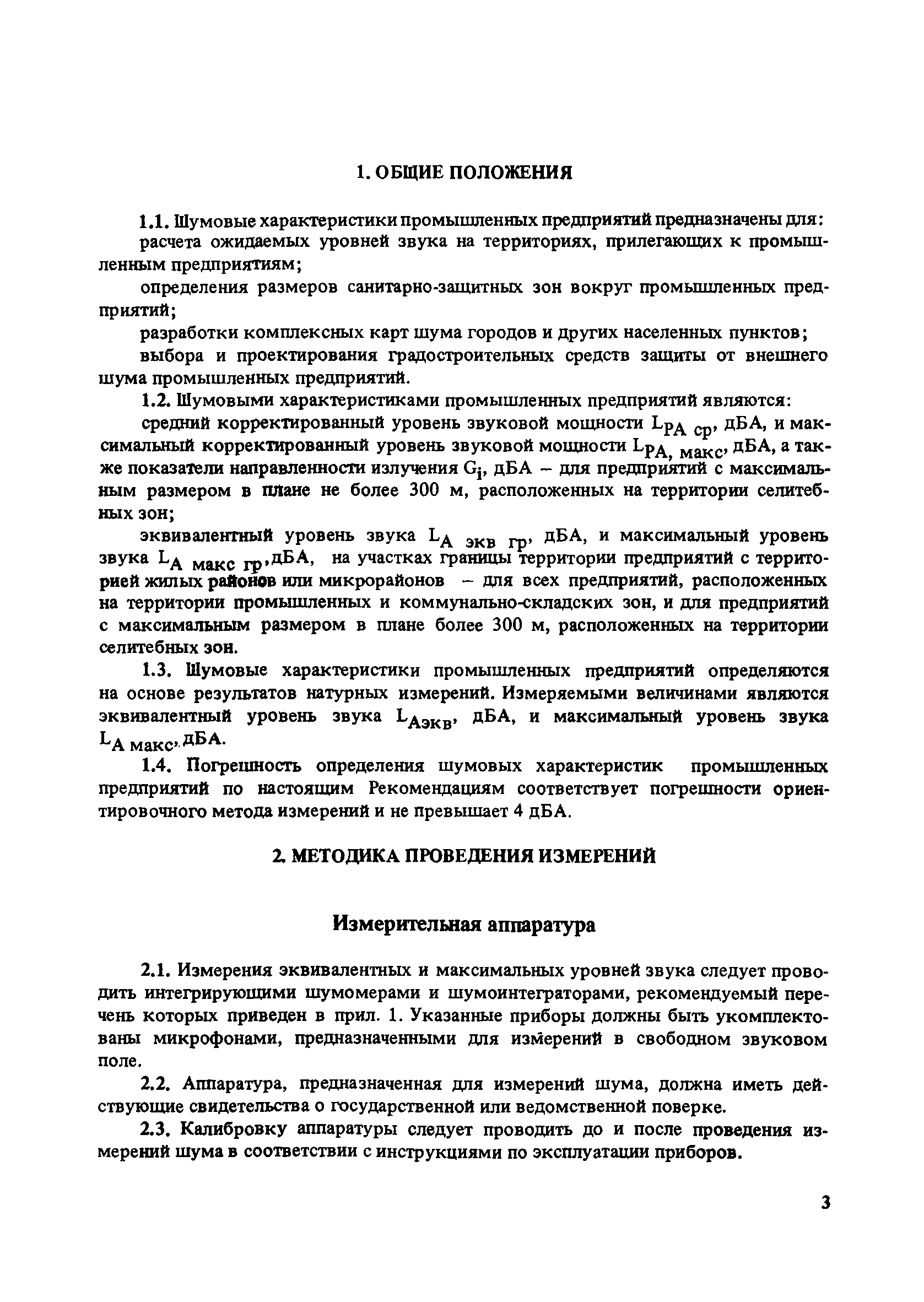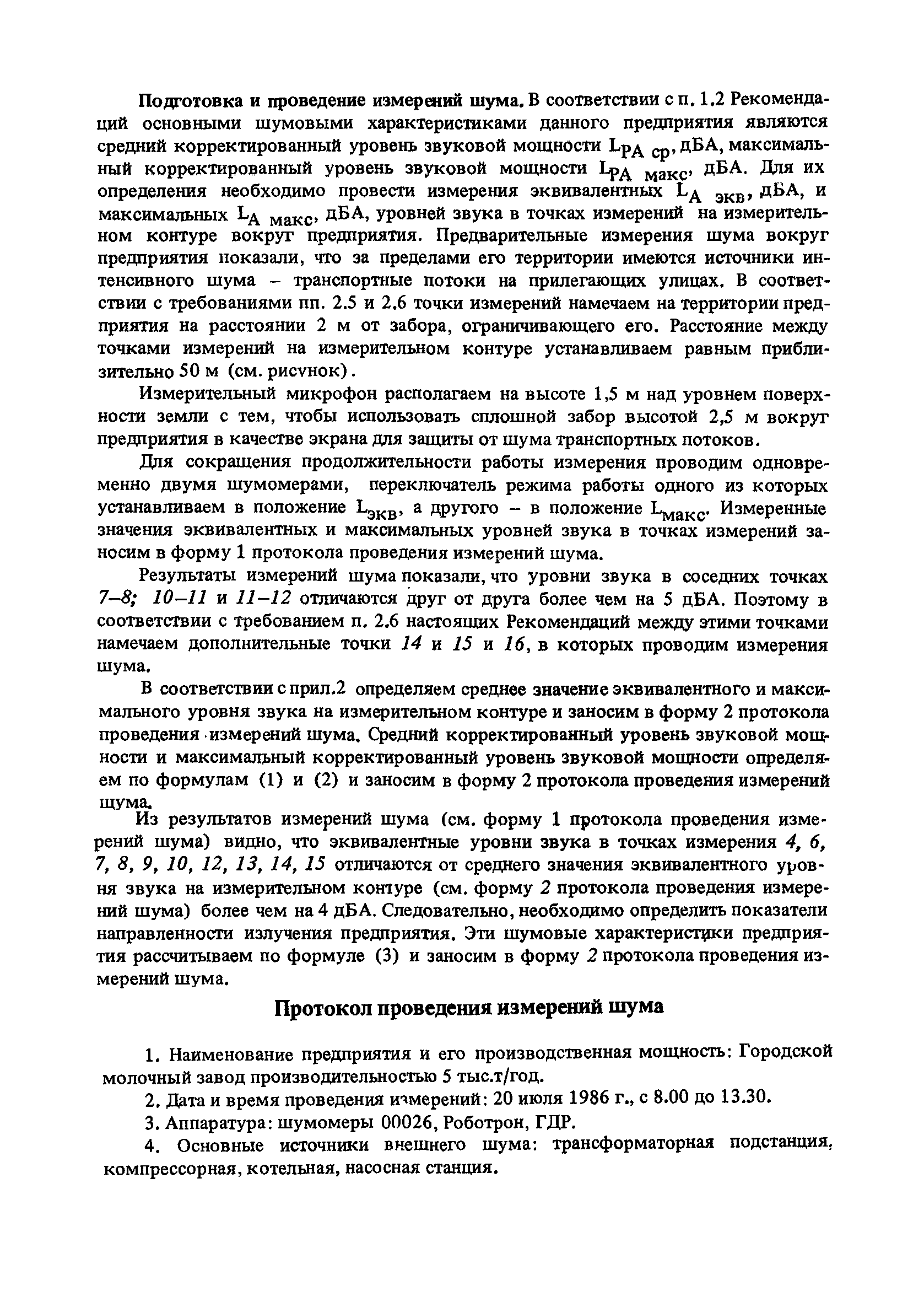 | Оглавление: | 1. Общие положения 2. Методика проведения измерений Измерительная аппаратура Условия проведения измерений проведение измерений Приложение 1. Рекомендуемый перечень приборов для измерения эквивалентных и максимальных уровней звука Приложение 2. Определение среднего значения уровней звука Приложение 3. Пример определения шумовых характеристик промышленного предприятия |