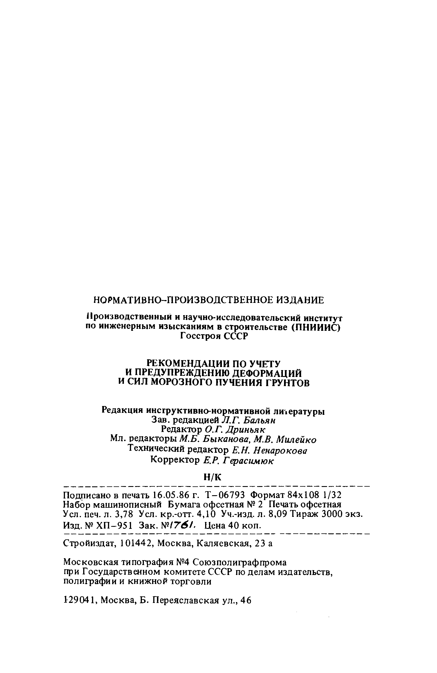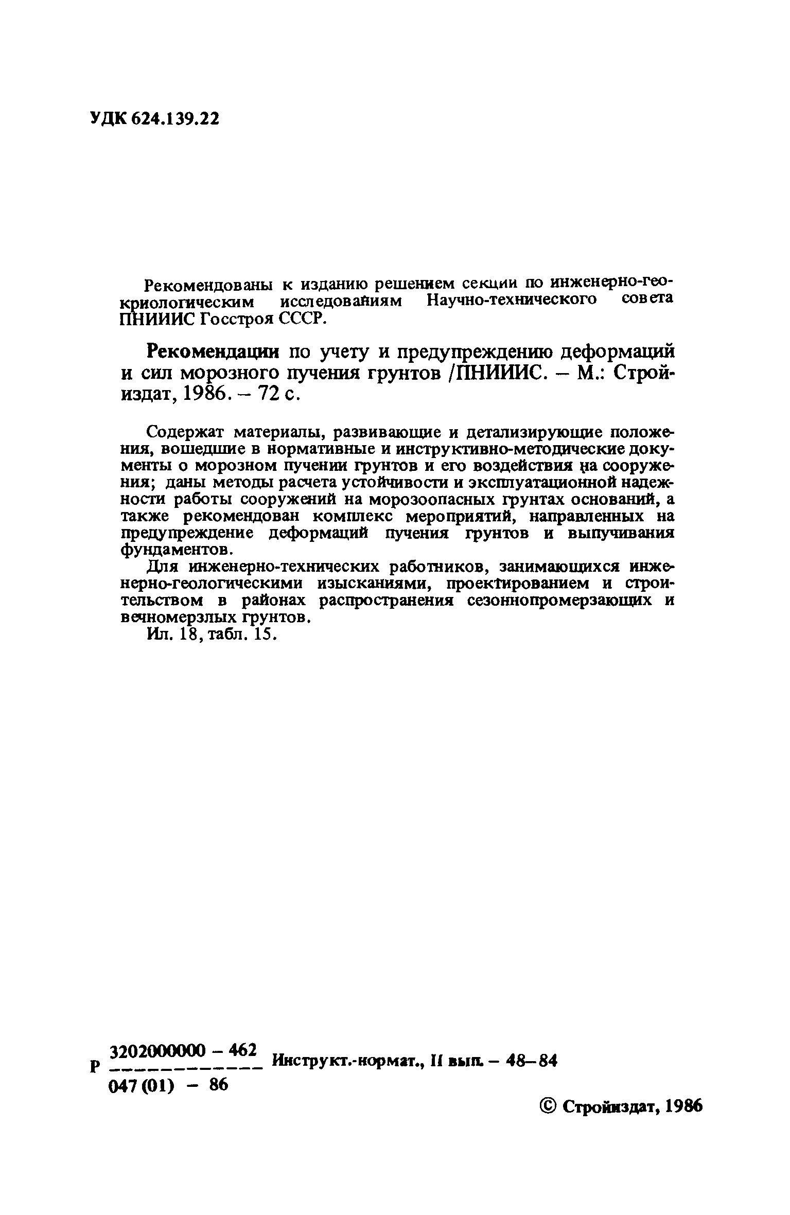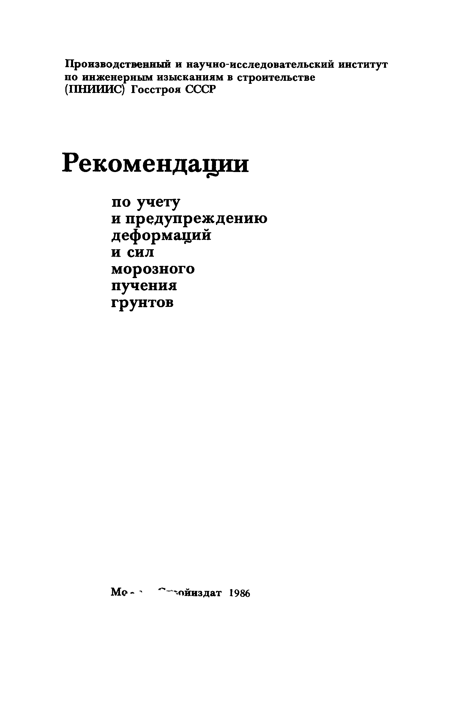 | Название рус.: | Рекомендации по учету и предупреждению деформаций и сил морозного пучения грунтов |