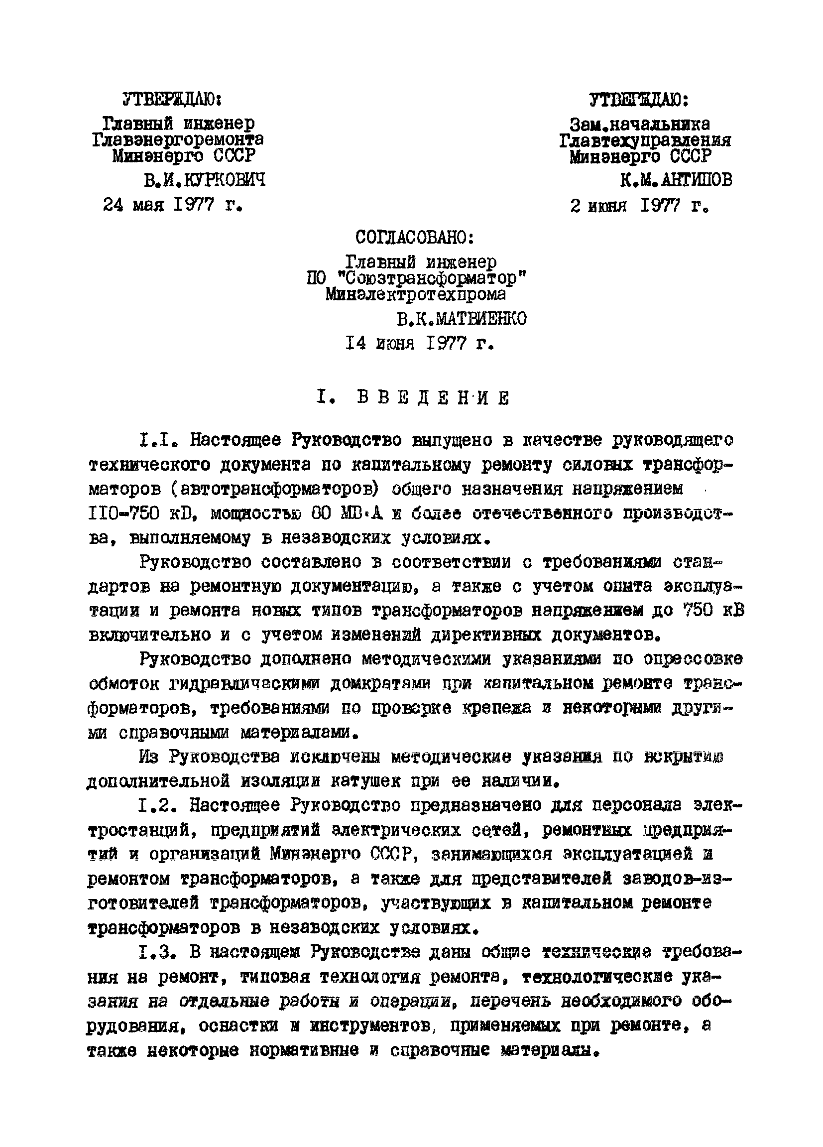 | Утверждён: | 02.06.1977 Главтехуправление Минэнерго СССР (Glavtekhupravleniye, USSR Minenergo ) 24.05.1977 Главэнергоремонт Минэнерго СССР |