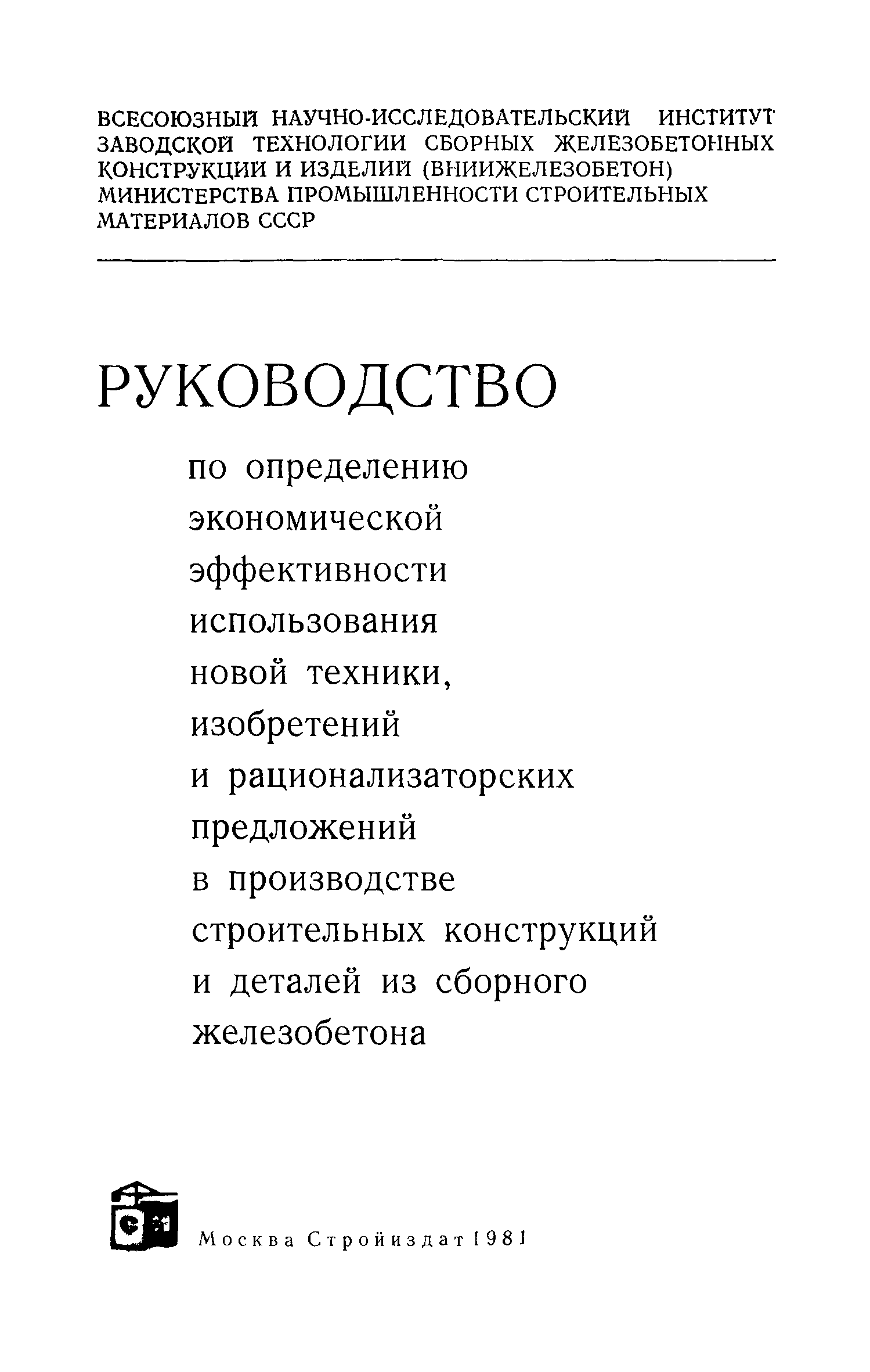 | Название рус.: | Руководство по определению экономической эффективности использования новой техники, изобретений и рационализаторских предложений в производстве строительных конструкций и деталей из сборного железобетона |