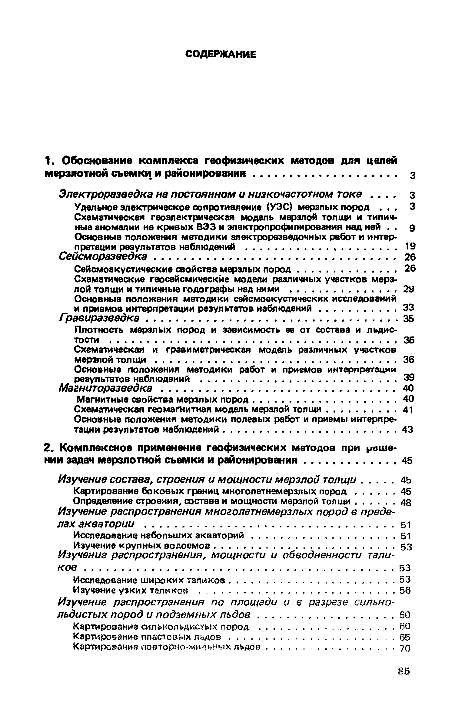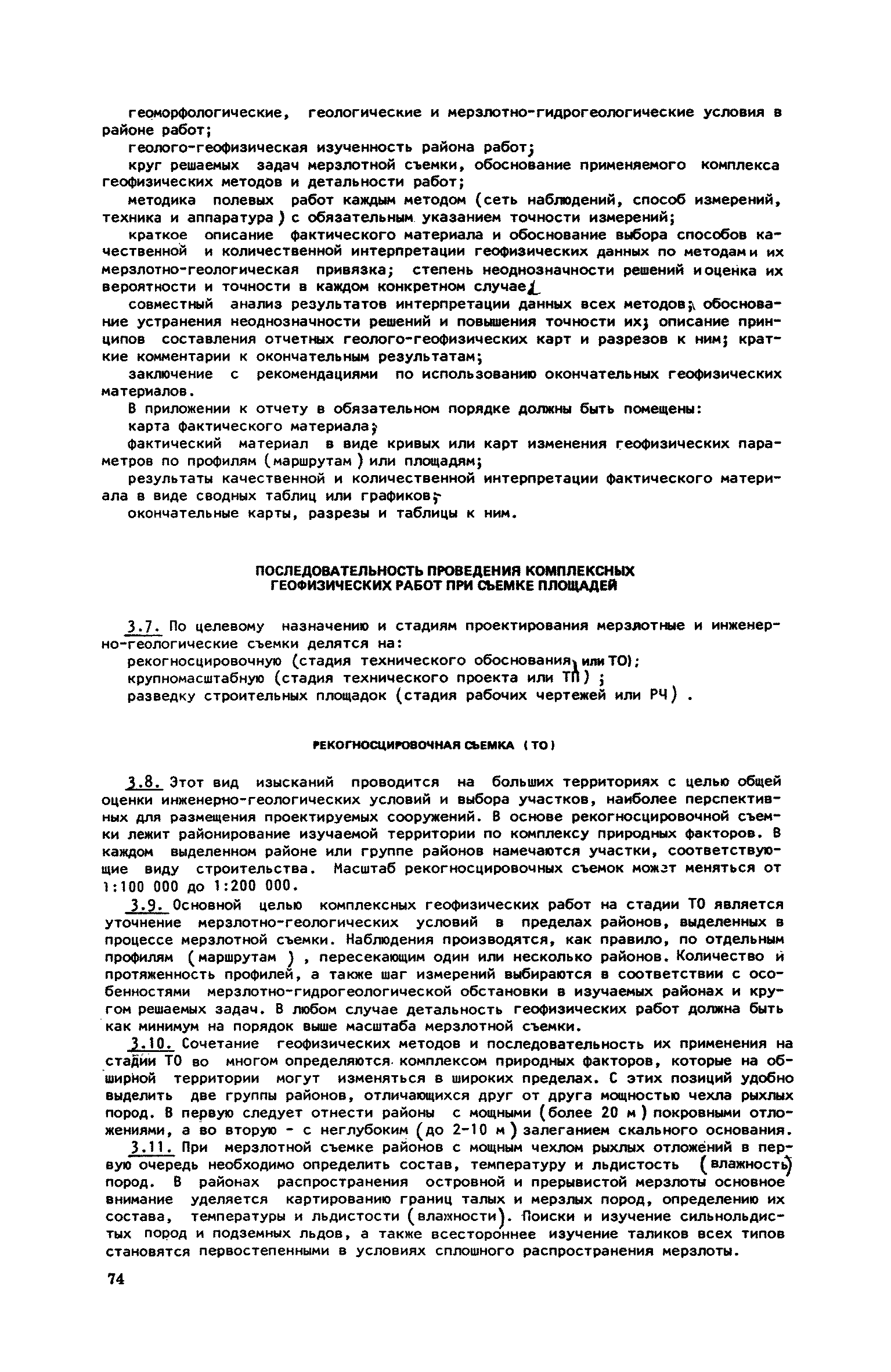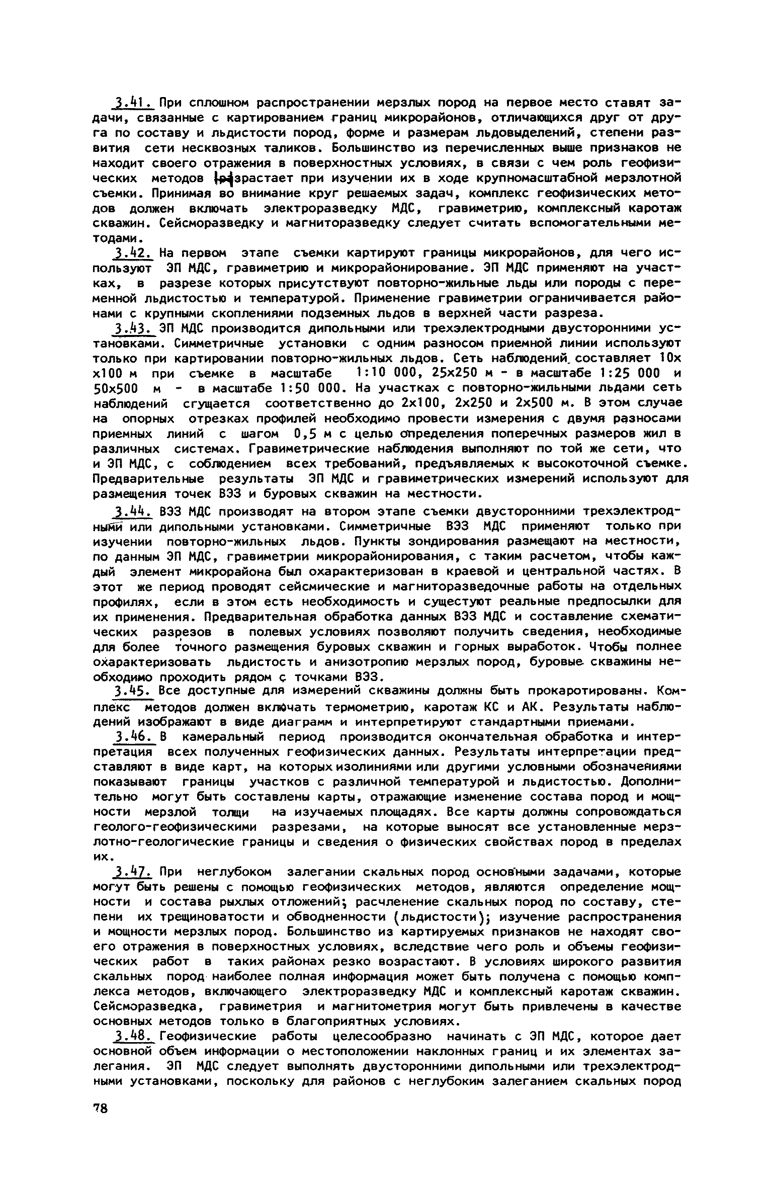 | Оглавление: | 1. Обоснование комплекса геофизических методов для целей мерзлотной съемки и районирования Электроразведка на постоянном и низкочастотном токе Удельное электрическое сопротивление (УЭС) мерзлых пород Схематическая геоэлектрическая модель мерзлой толщи и типичные аномалии на кривых ВЭЗ и электропрофилирования над ней Основные положения методики электроразведочных работ и интерпретации результатов наблюдений Сейсморазведка Сейсмоакустические свойства мерзлых пород Схематические геосейсмические модели различных участков мерзлой толщи и типичные годографы над ними Основные положения методики сейсмоакустических исследований и приемов интерпретации результатов наблюдений Гравиразведка Плотность мерзлых пород и зависимость ее от состава и льдистости Схематическая и гравиметрическая модель различных участков мерзлой толщи Основные положения методики работ и приемов интерпретации результатов наблюдений Магниторазведка Магнитные свойства мерзлых пород Схематическая геомагнитная модель мерзлой толщи Основные положения методики полевых работ и приемы интерпретации результатов наблюдений 2. Комплексное применение геофизических методов при решении задач мерзлотной съемки и районирования Изучение состава, строения и мощности мерзлой толщи Картирование боковых границ многолетнемерзлых пород Определение строения, состава и мощности мерзлой толщи Изучение распространения многолетнемерзлых пород в пределах акватории Исследование небольших акваторий Изучение крупных водоемов Изучение распространения, мощности и обводненности таликов Исследование широких таликов Изучение узких таликов Изучение распространения по площади и в разрезе сильнольдистых пород и подземных льдов Картирование сильно льдистых пород Картирование пластовых льдов Картирование повторно-жильных льдов 3. Последовательность применения комплекса геофизических методов при мерзлотной съемке по стадиям проектирования Общие положения Виды съемок Общие вопросы организации и проведения геофизических работ Отчет о результатах геофизических работ Последовательность проведения комплексных геофизических работ при съемке площадей Рекогносцировочная съемка (ТО) Крупномасштабная съемка на стадии ТП Разведка площадей стадии РЧ Съемка под линейные сооружения Крупномасштабные съемки на стадии ТП Мерзлотная съемка переходов через водоемы Разведка трасс на стадии РЧ |