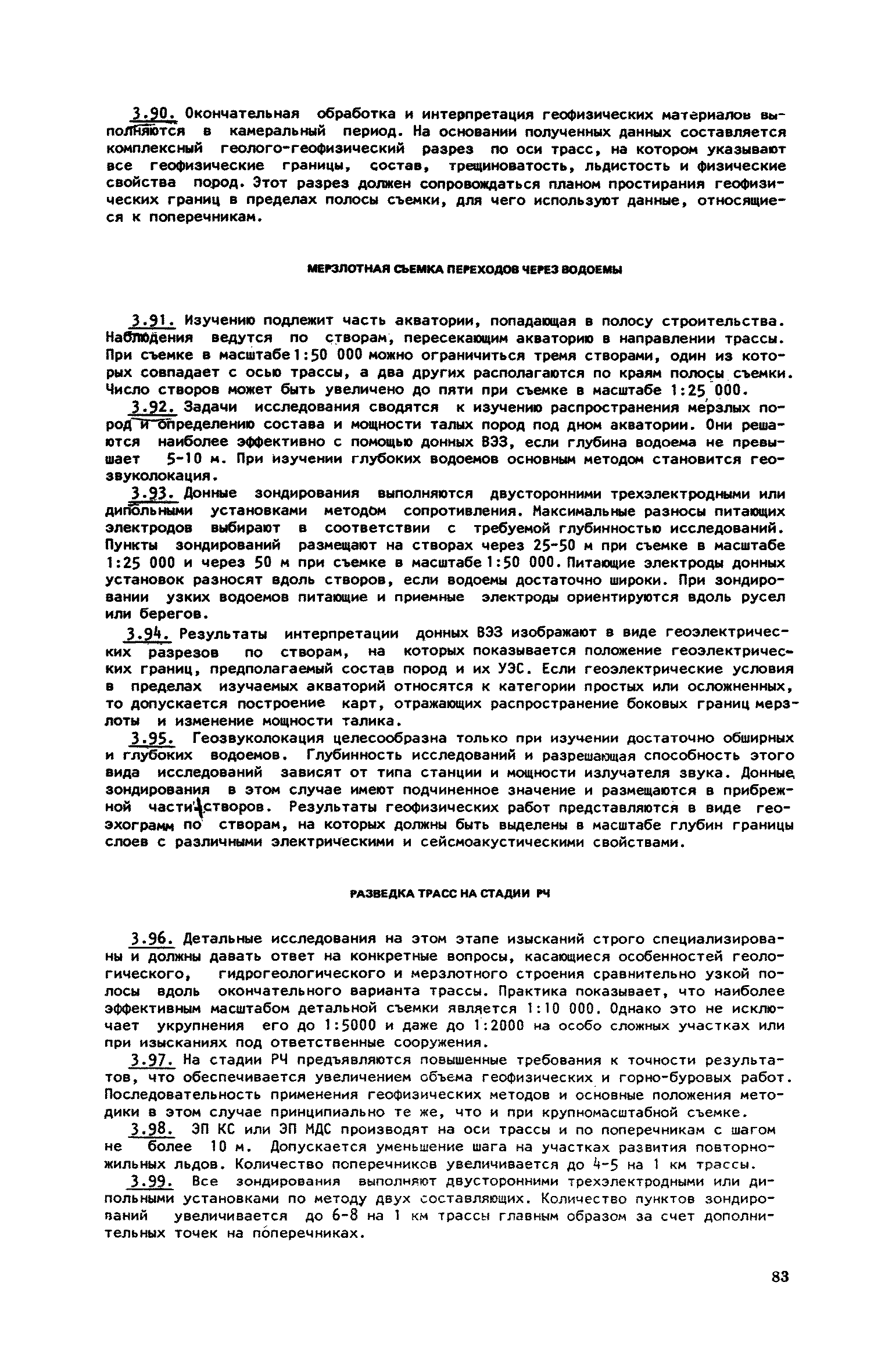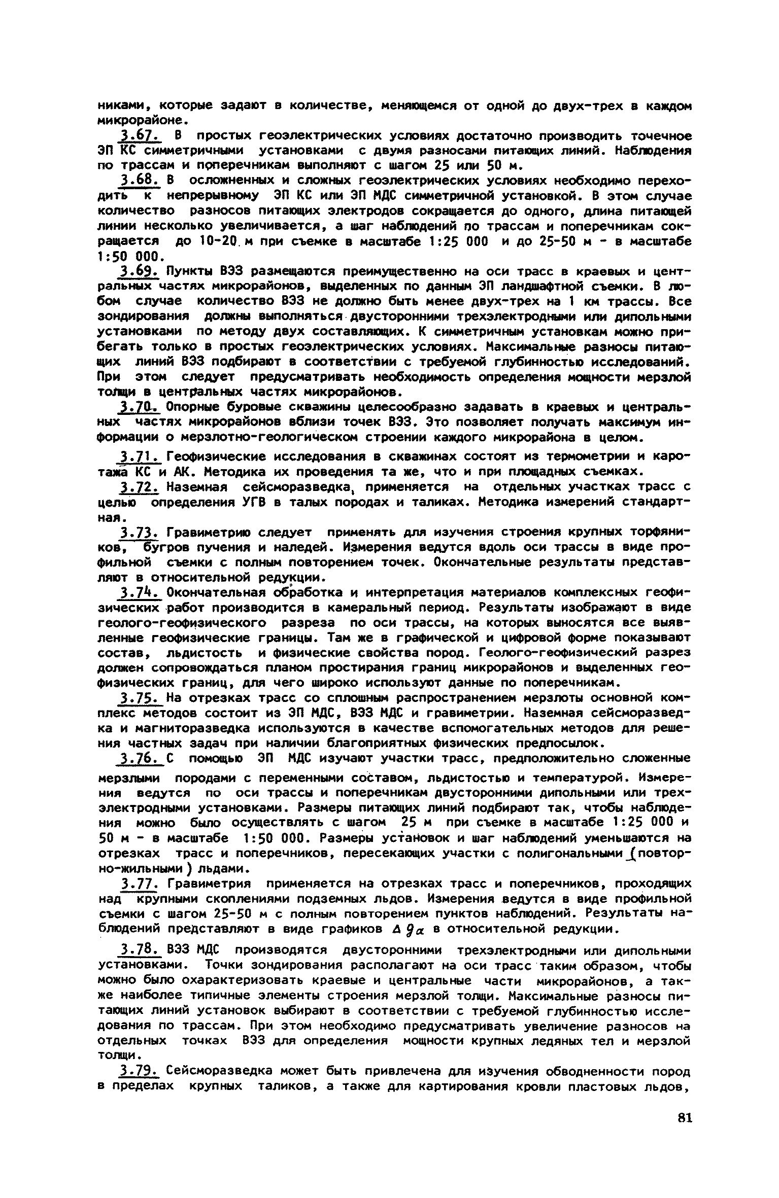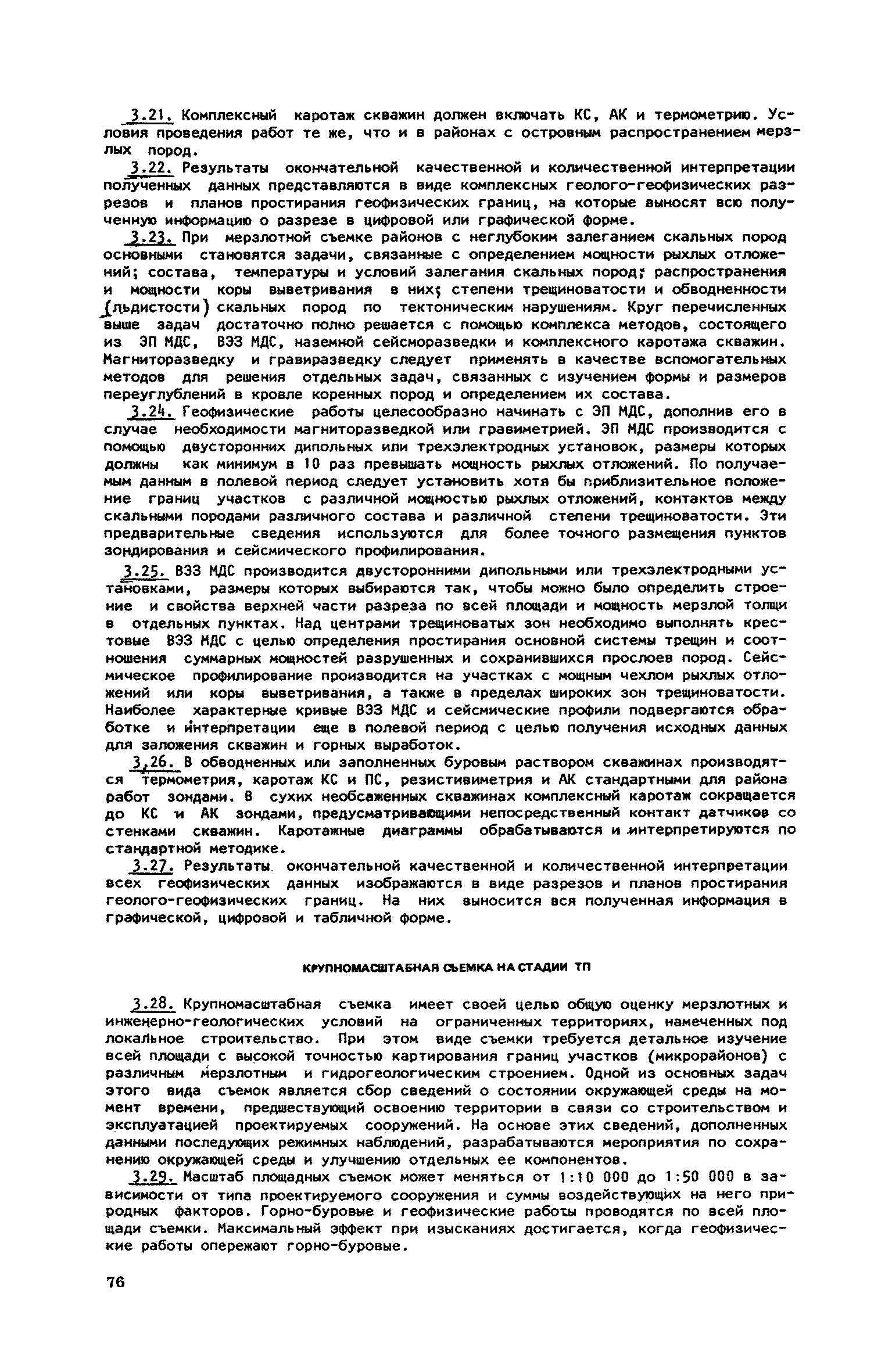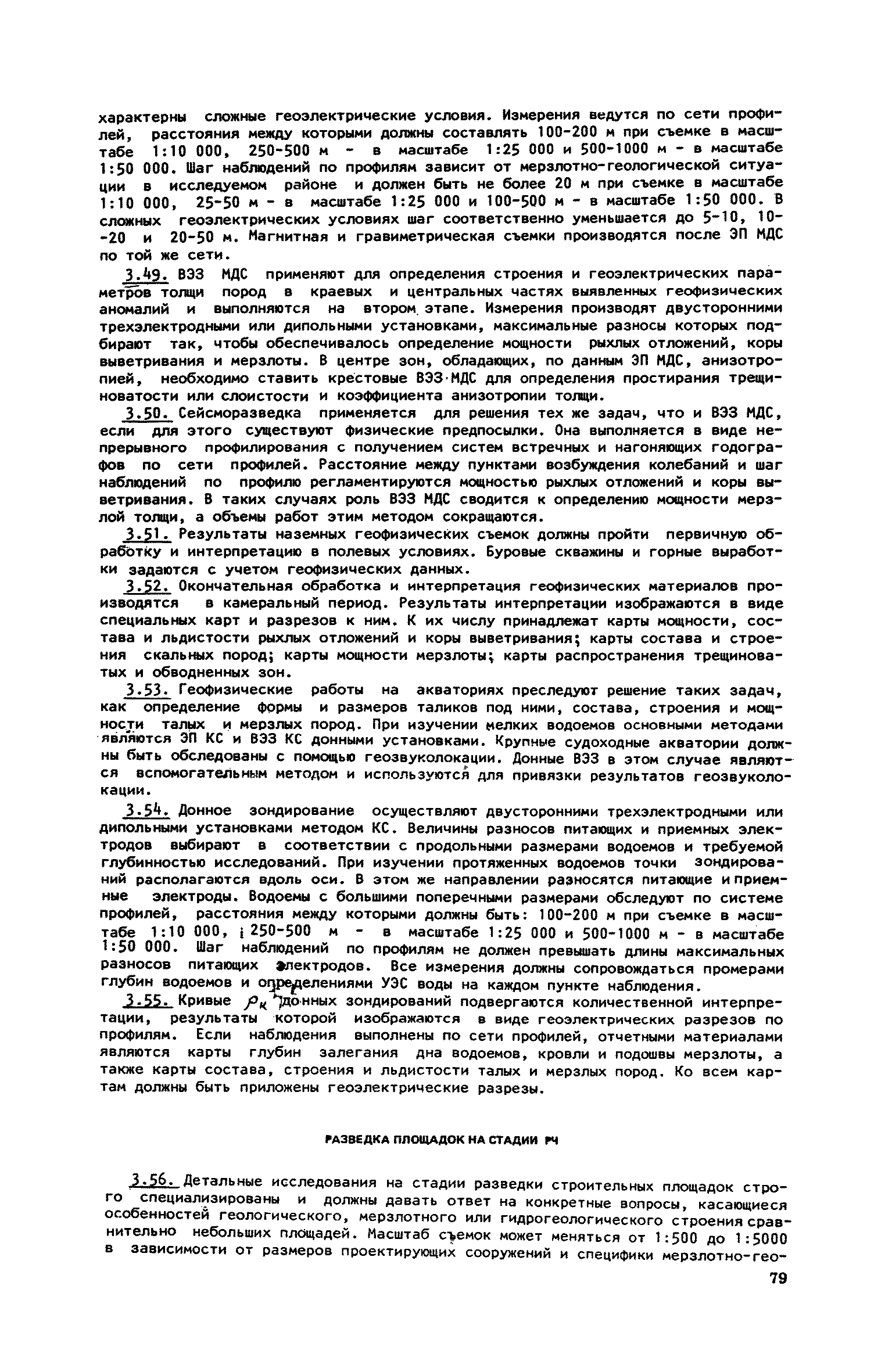 | Оглавление: | 1. Обоснование комплекса геофизических методов для целей мерзлотной съемки и районирования Электроразведка на постоянном и низкочастотном токе Удельное электрическое сопротивление (УЭС) мерзлых пород Схематическая геоэлектрическая модель мерзлой толщи и типичные аномалии на кривых ВЭЗ и электропрофилирования над ней Основные положения методики электроразведочных работ и интерпретации результатов наблюдений Сейсморазведка Сейсмоакустические свойства мерзлых пород Схематические геосейсмические модели различных участков мерзлой толщи и типичные годографы над ними Основные положения методики сейсмоакустических исследований и приемов интерпретации результатов наблюдений Гравиразведка Плотность мерзлых пород и зависимость ее от состава и льдистости Схематическая и гравиметрическая модель различных участков мерзлой толщи Основные положения методики работ и приемов интерпретации результатов наблюдений Магниторазведка Магнитные свойства мерзлых пород Схематическая геомагнитная модель мерзлой толщи Основные положения методики полевых работ и приемы интерпретации результатов наблюдений 2. Комплексное применение геофизических методов при решении задач мерзлотной съемки и районирования Изучение состава, строения и мощности мерзлой толщи Картирование боковых границ многолетнемерзлых пород Определение строения, состава и мощности мерзлой толщи Изучение распространения многолетнемерзлых пород в пределах акватории Исследование небольших акваторий Изучение крупных водоемов Изучение распространения, мощности и обводненности таликов Исследование широких таликов Изучение узких таликов Изучение распространения по площади и в разрезе сильнольдистых пород и подземных льдов Картирование сильно льдистых пород Картирование пластовых льдов Картирование повторно-жильных льдов 3. Последовательность применения комплекса геофизических методов при мерзлотной съемке по стадиям проектирования Общие положения Виды съемок Общие вопросы организации и проведения геофизических работ Отчет о результатах геофизических работ Последовательность проведения комплексных геофизических работ при съемке площадей Рекогносцировочная съемка (ТО) Крупномасштабная съемка на стадии ТП Разведка площадей стадии РЧ Съемка под линейные сооружения Крупномасштабные съемки на стадии ТП Мерзлотная съемка переходов через водоемы Разведка трасс на стадии РЧ |