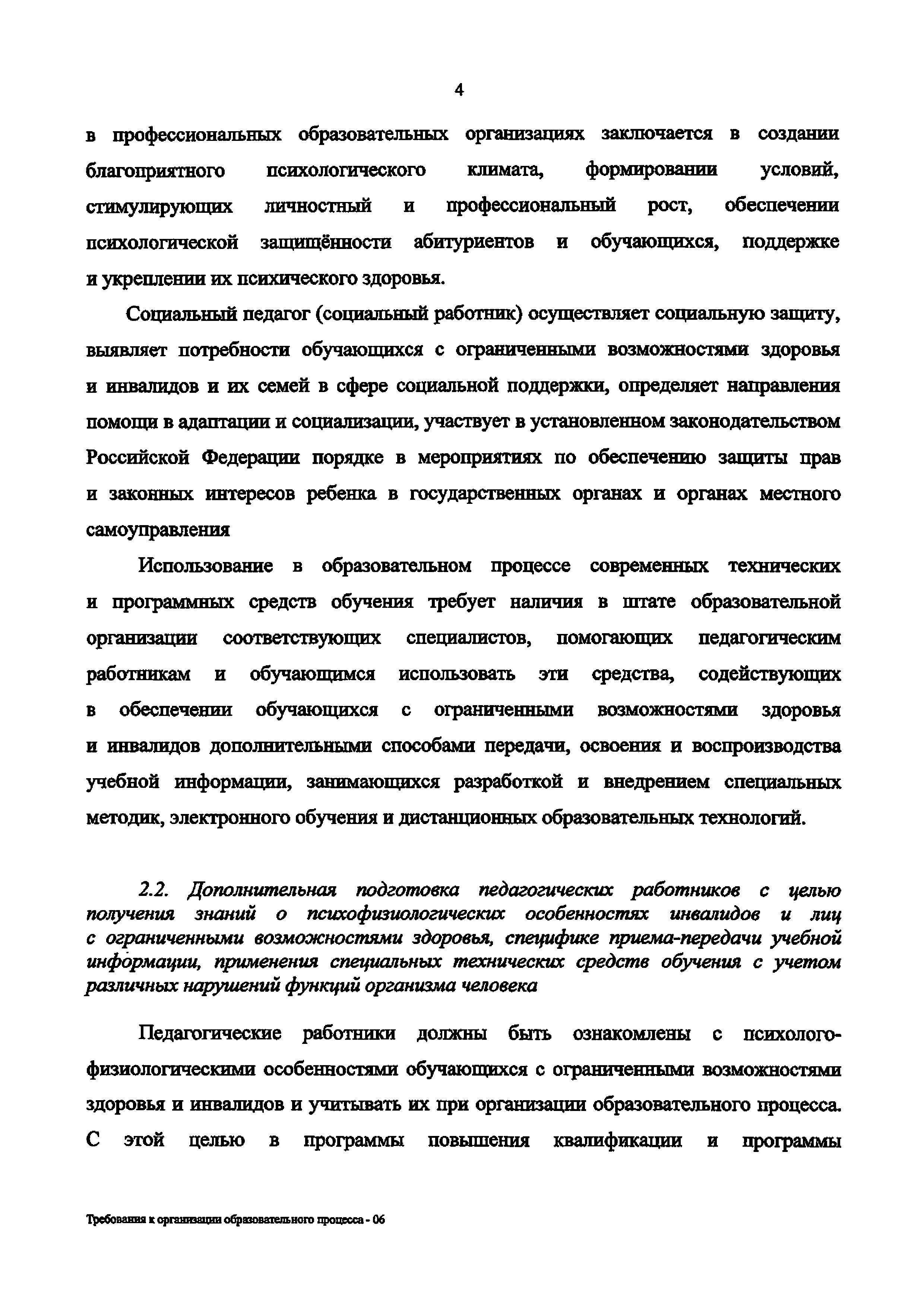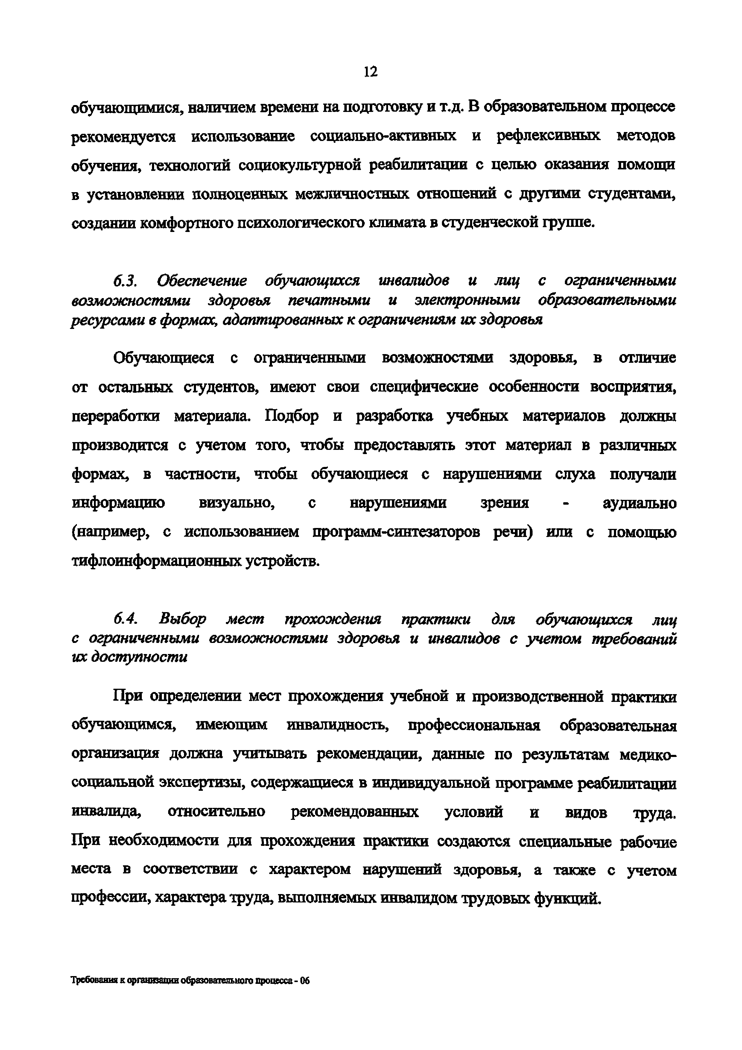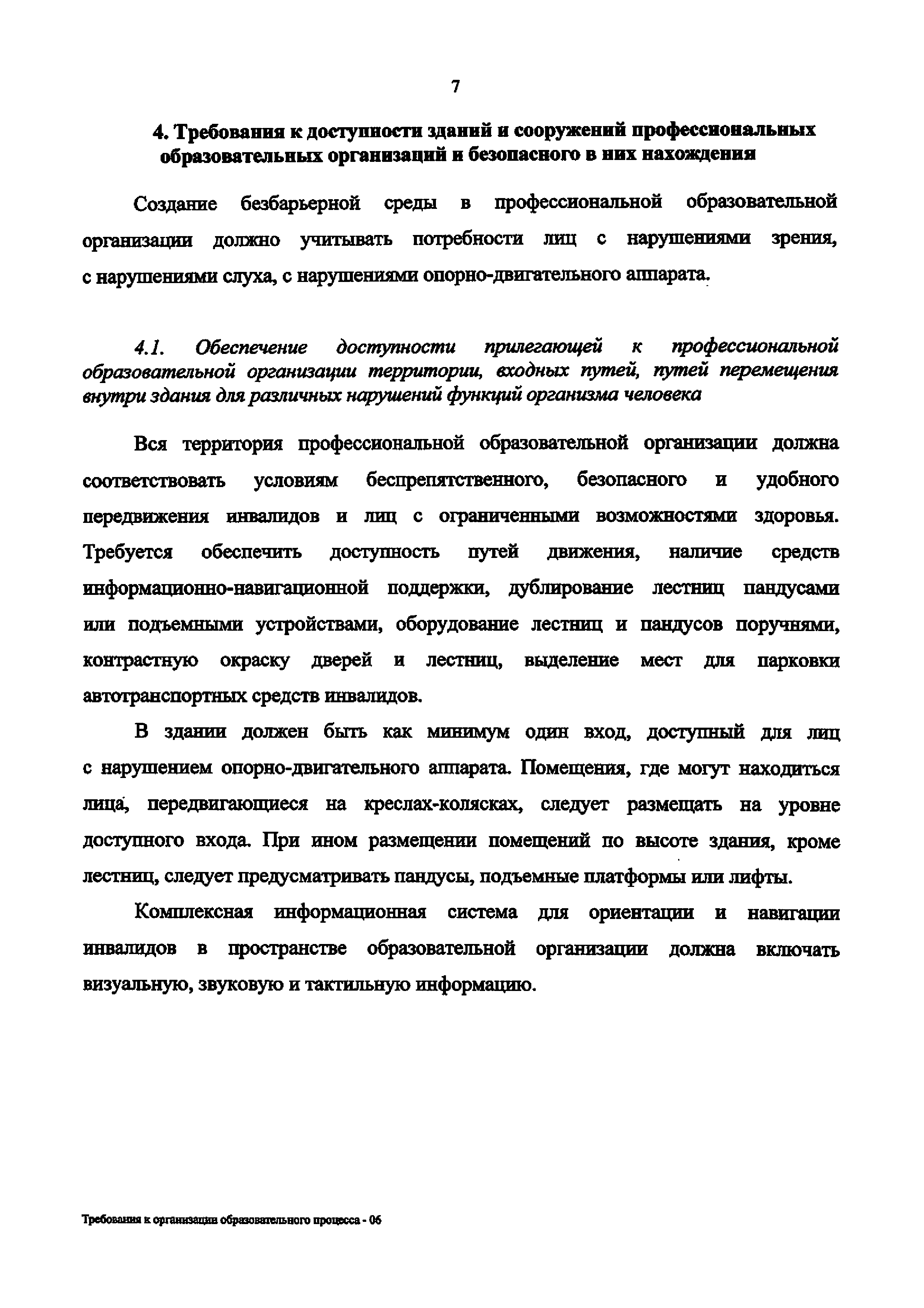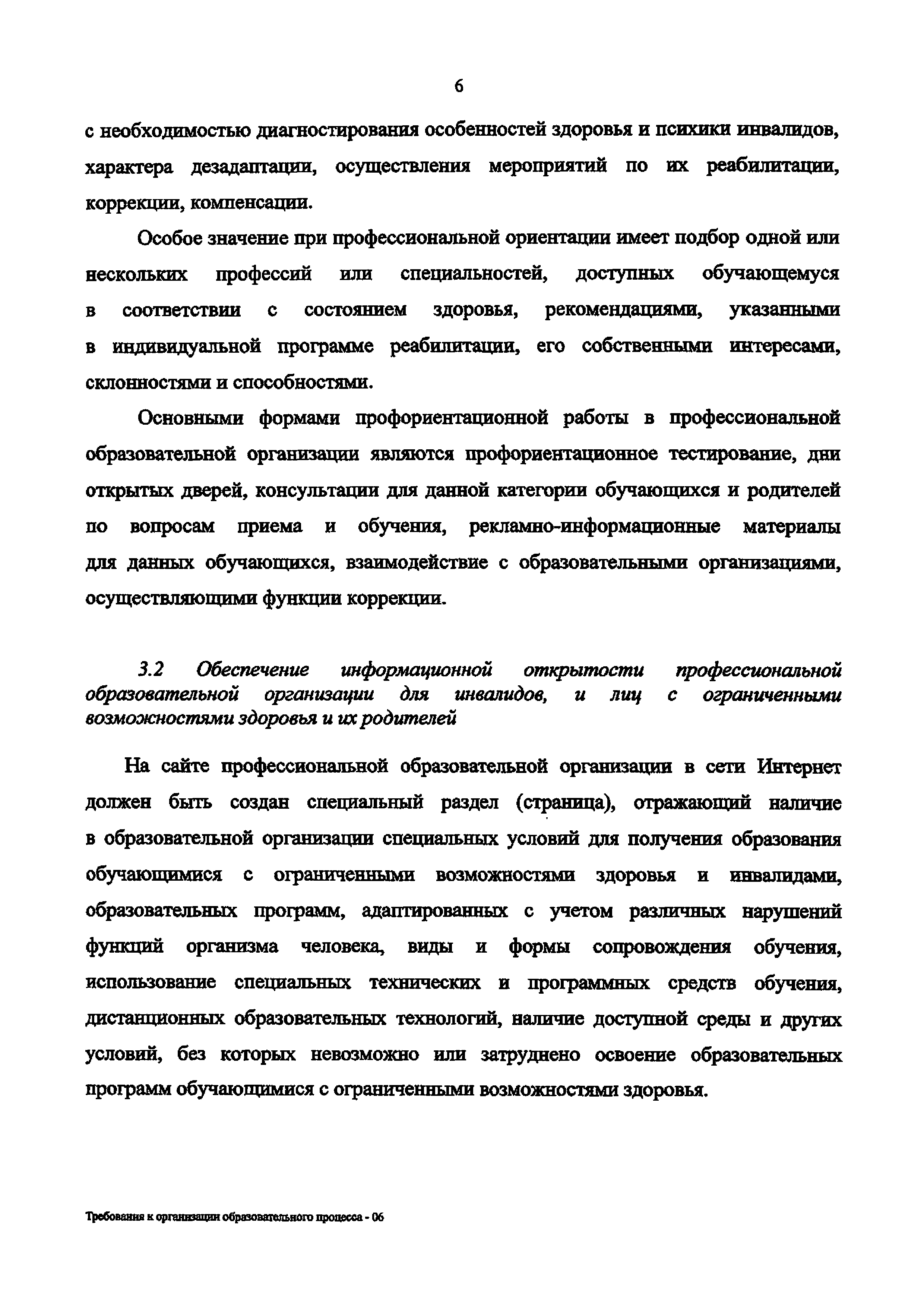 | Название рус.: | Требования к организации образовательного процесса для обучения инвалидов и лиц с ограниченными возможностями здоровья в профессиональных образовательных организациях, в том числе оснащенности образовательного процесса |