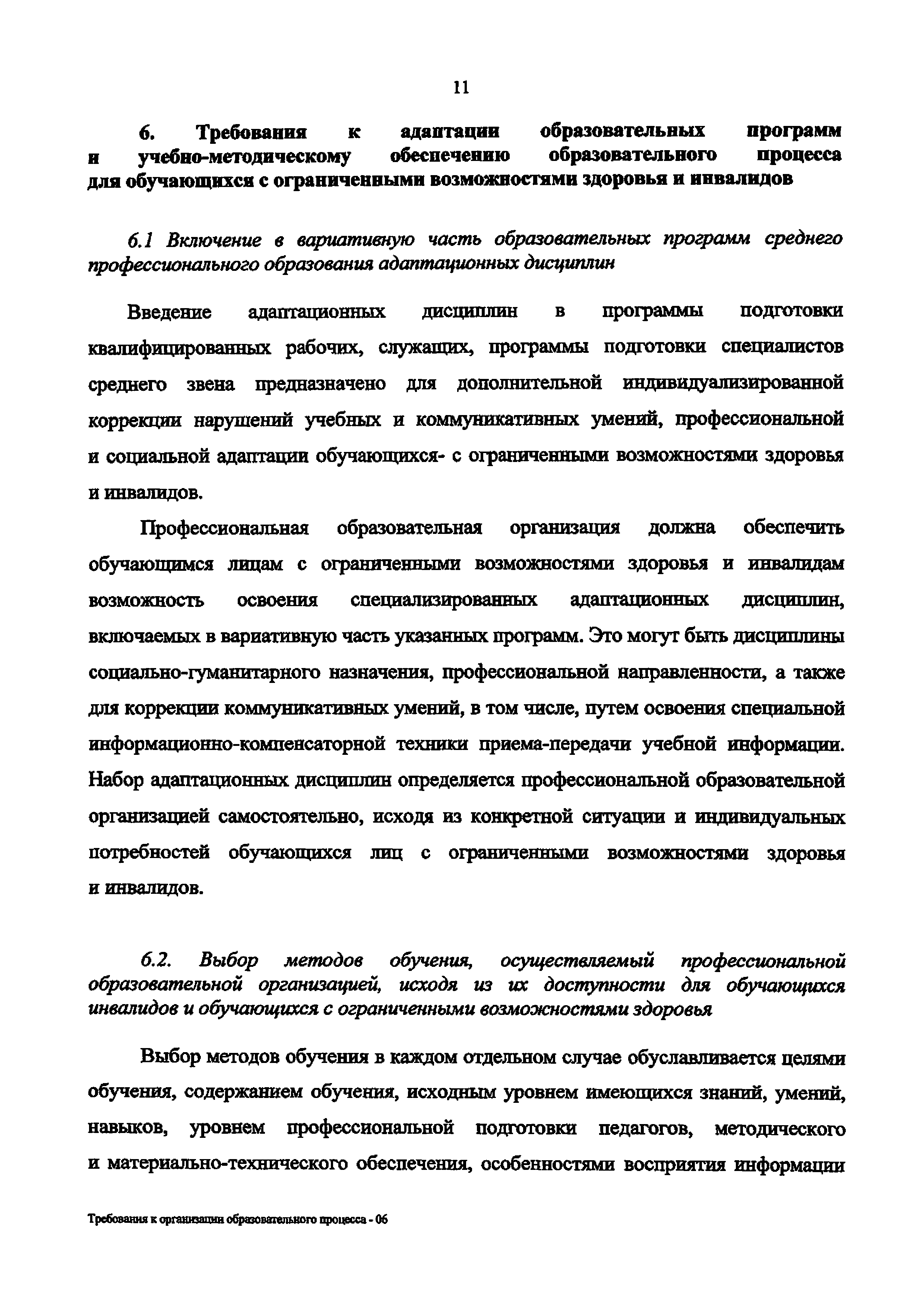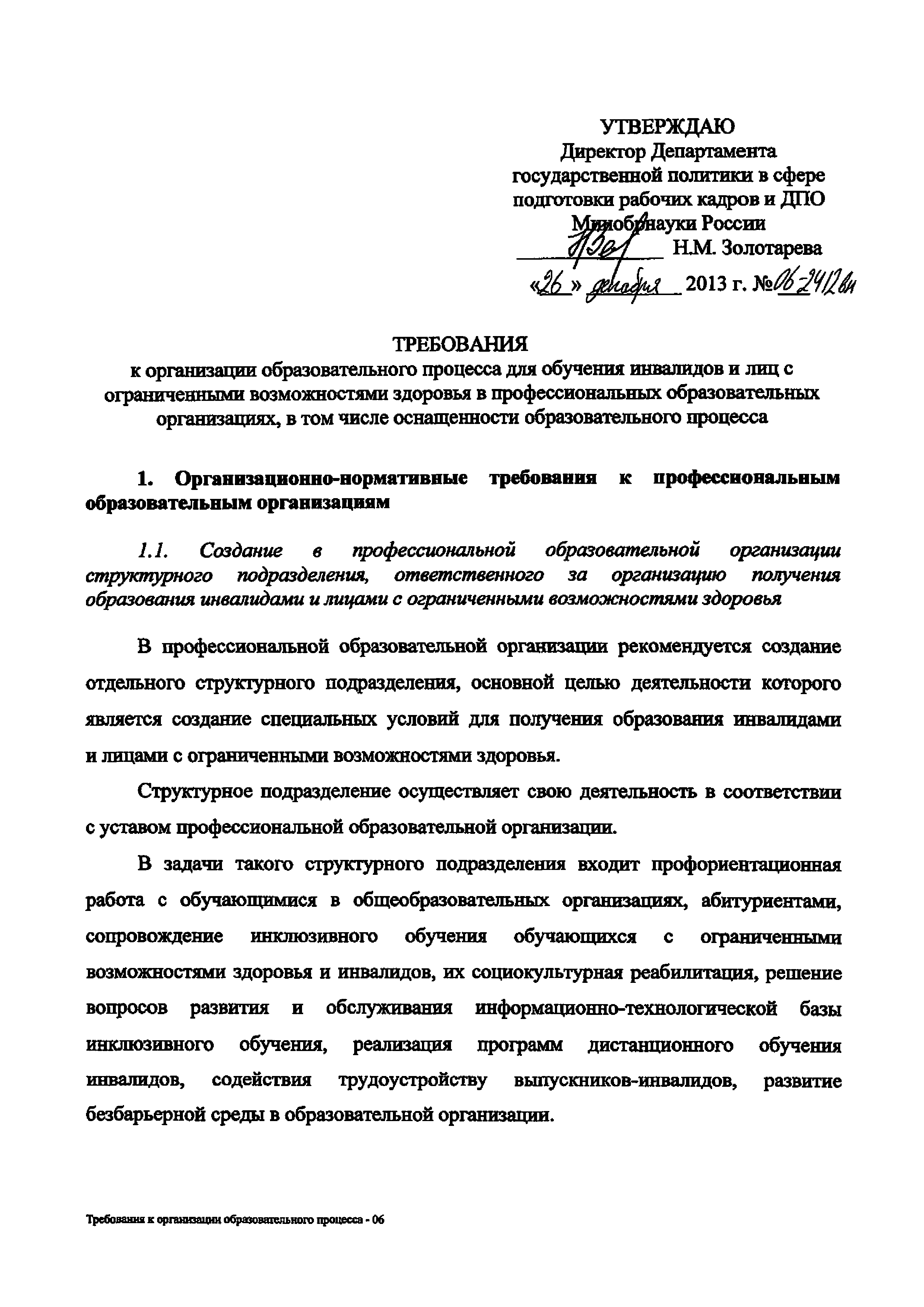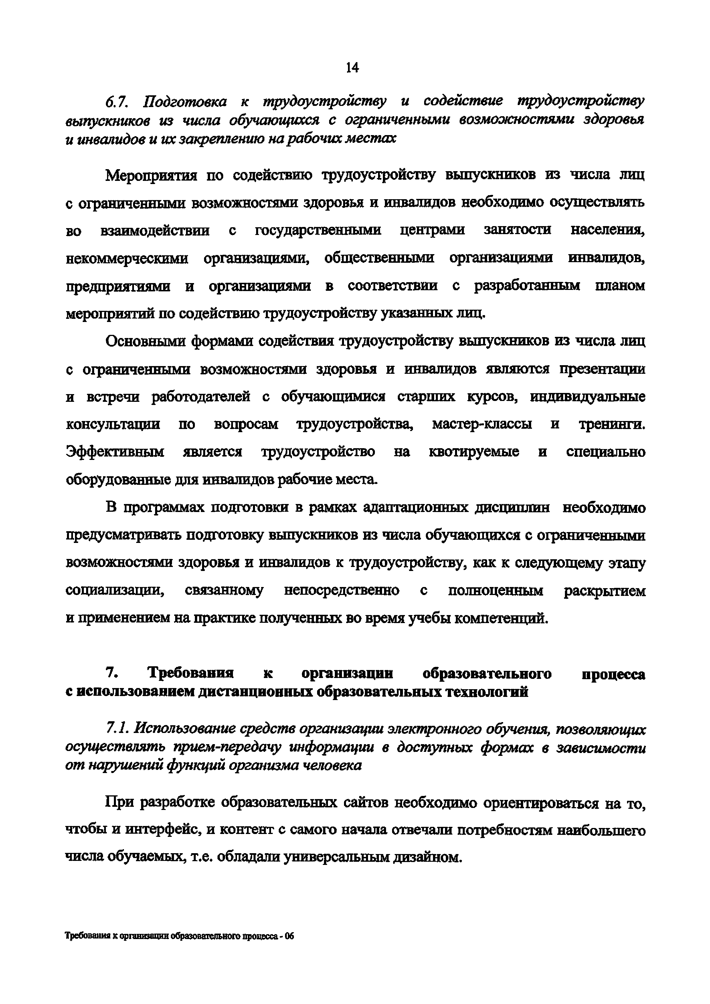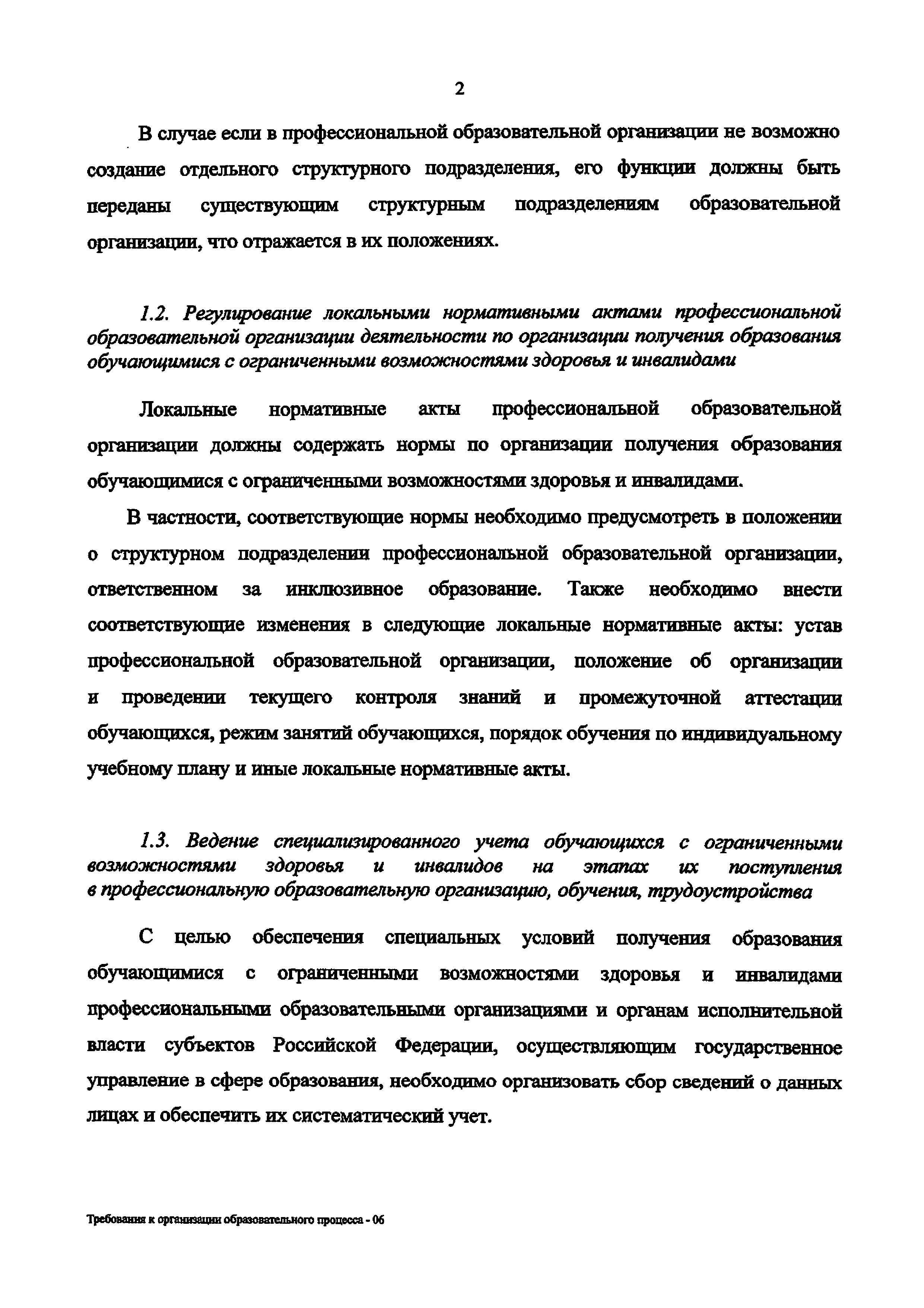 | Название рус.: | Требования к организации образовательного процесса для обучения инвалидов и лиц с ограниченными возможностями здоровья в профессиональных образовательных организациях, в том числе оснащенности образовательного процесса |
