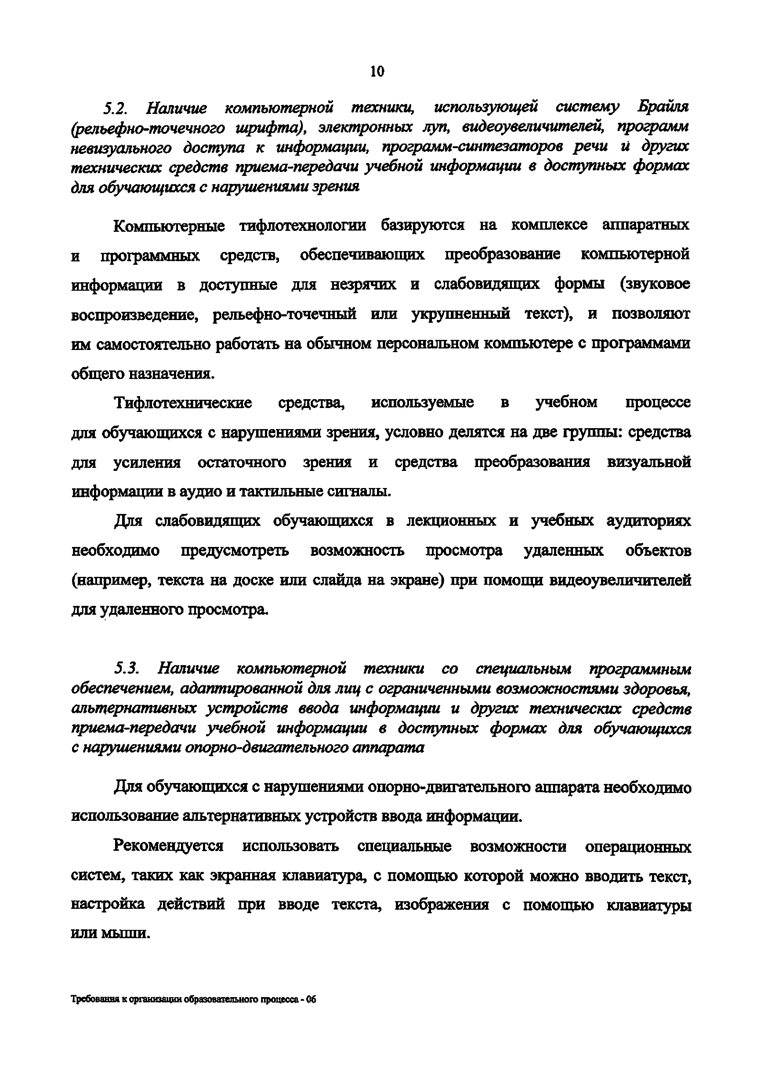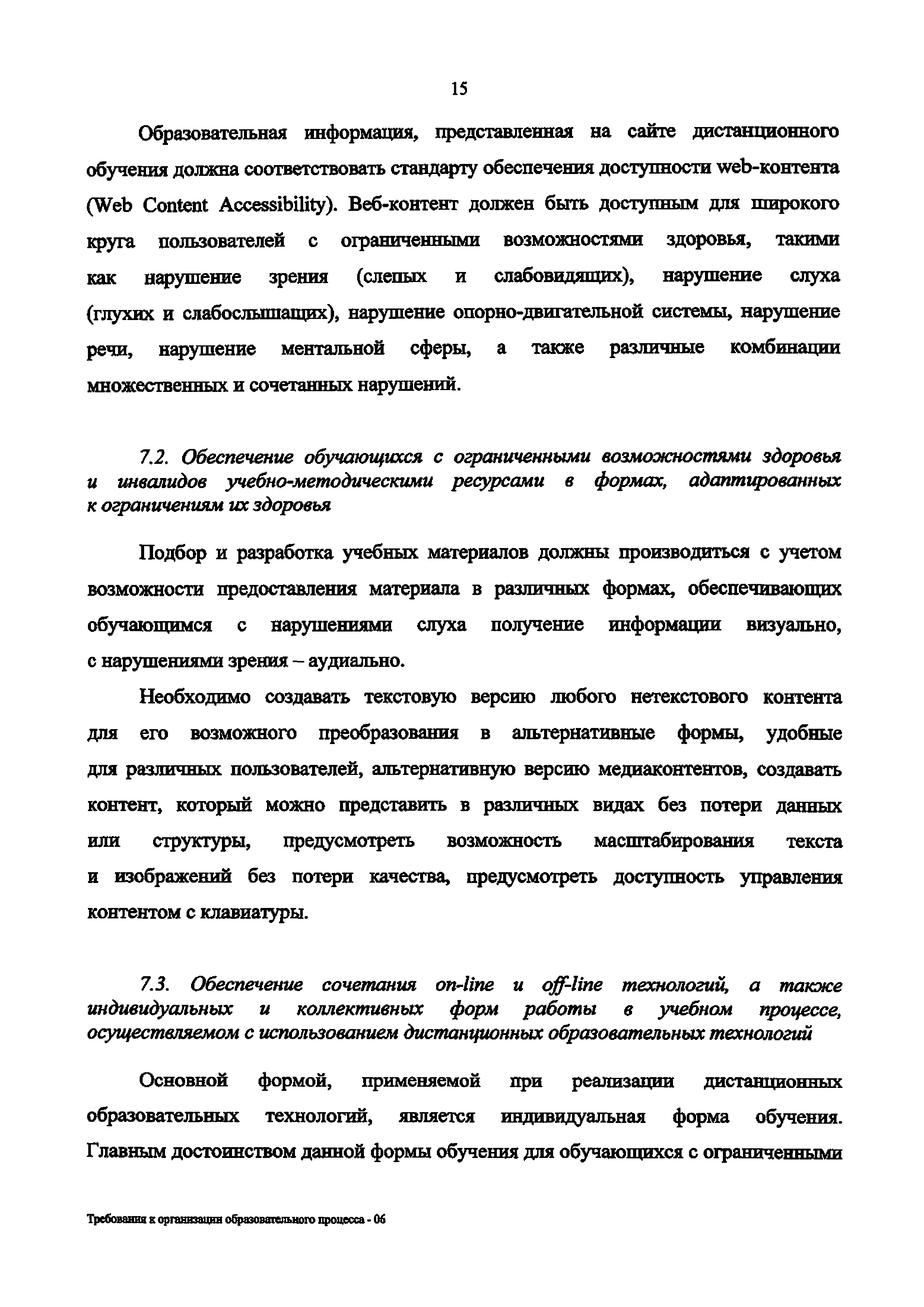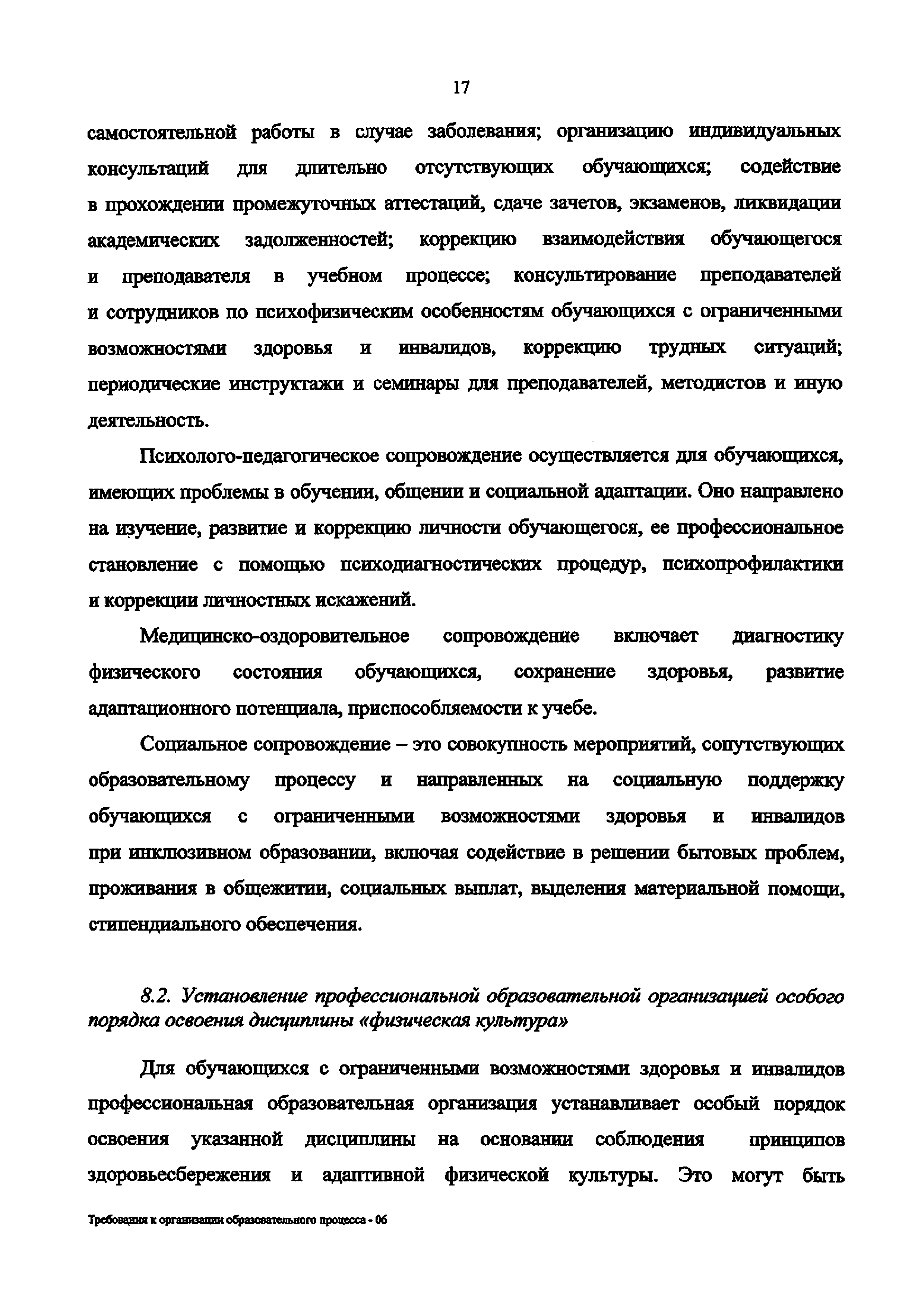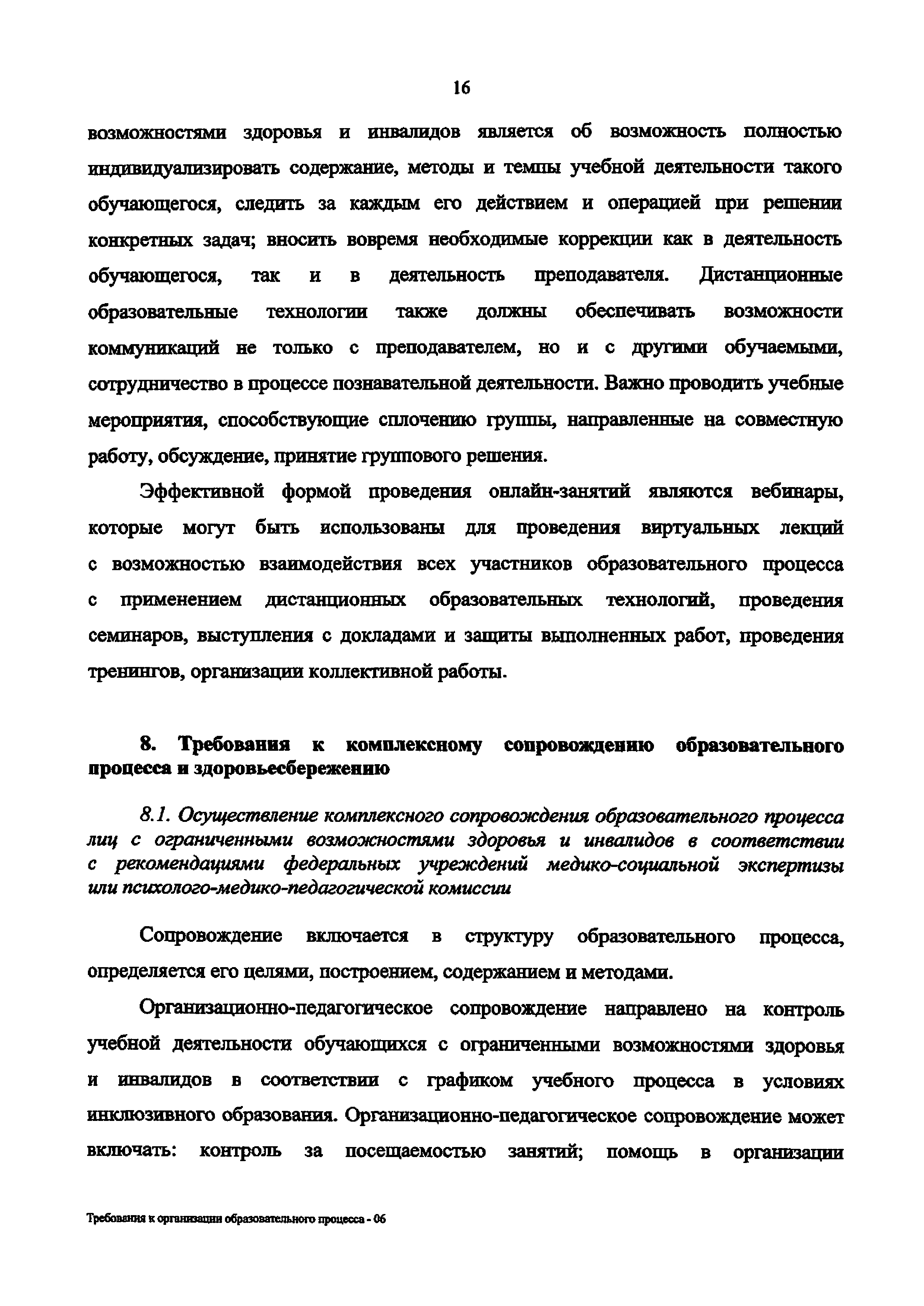 | Название рус.: | Требования к организации образовательного процесса для обучения инвалидов и лиц с ограниченными возможностями здоровья в профессиональных образовательных организациях, в том числе оснащенности образовательного процесса |