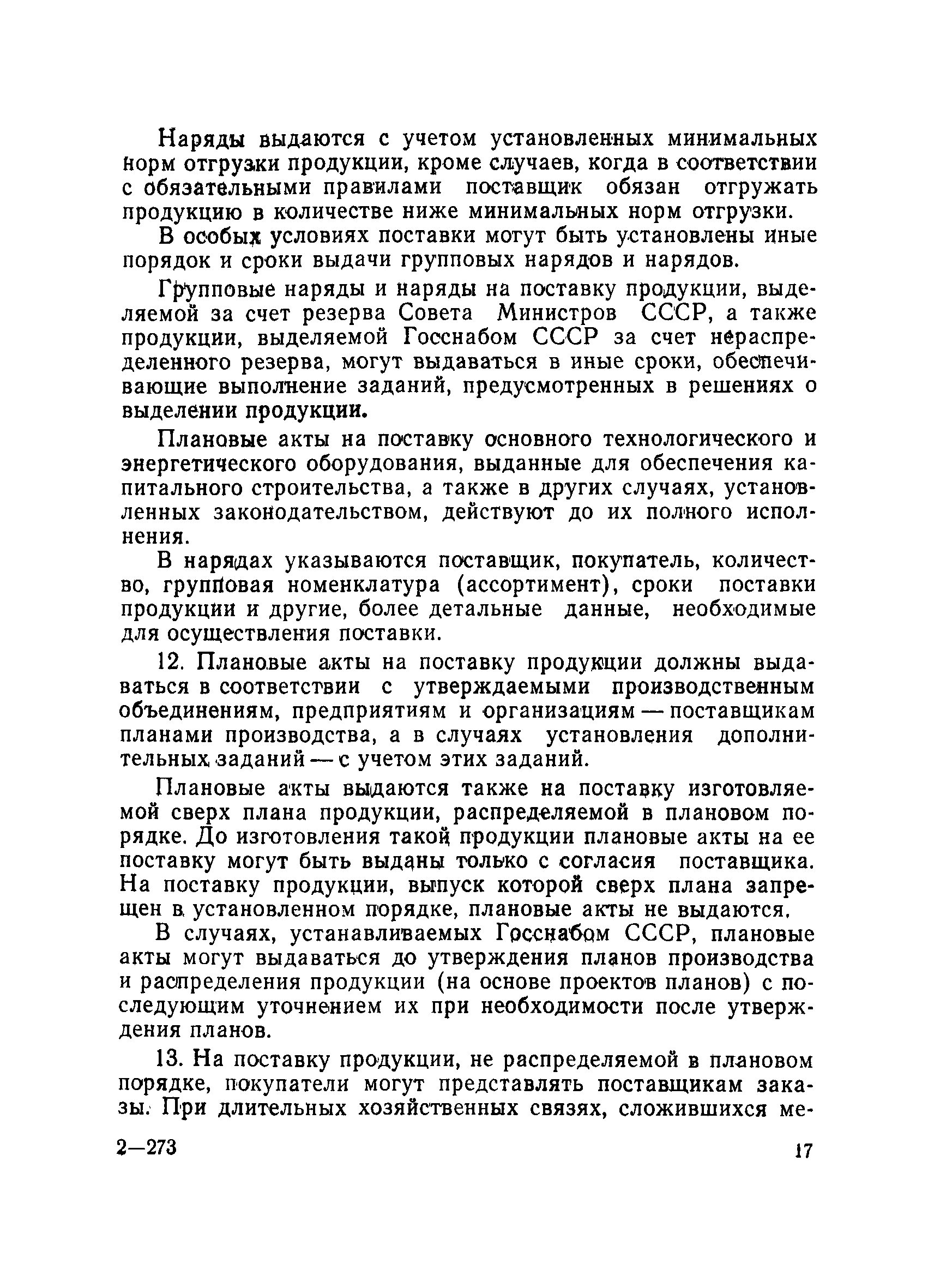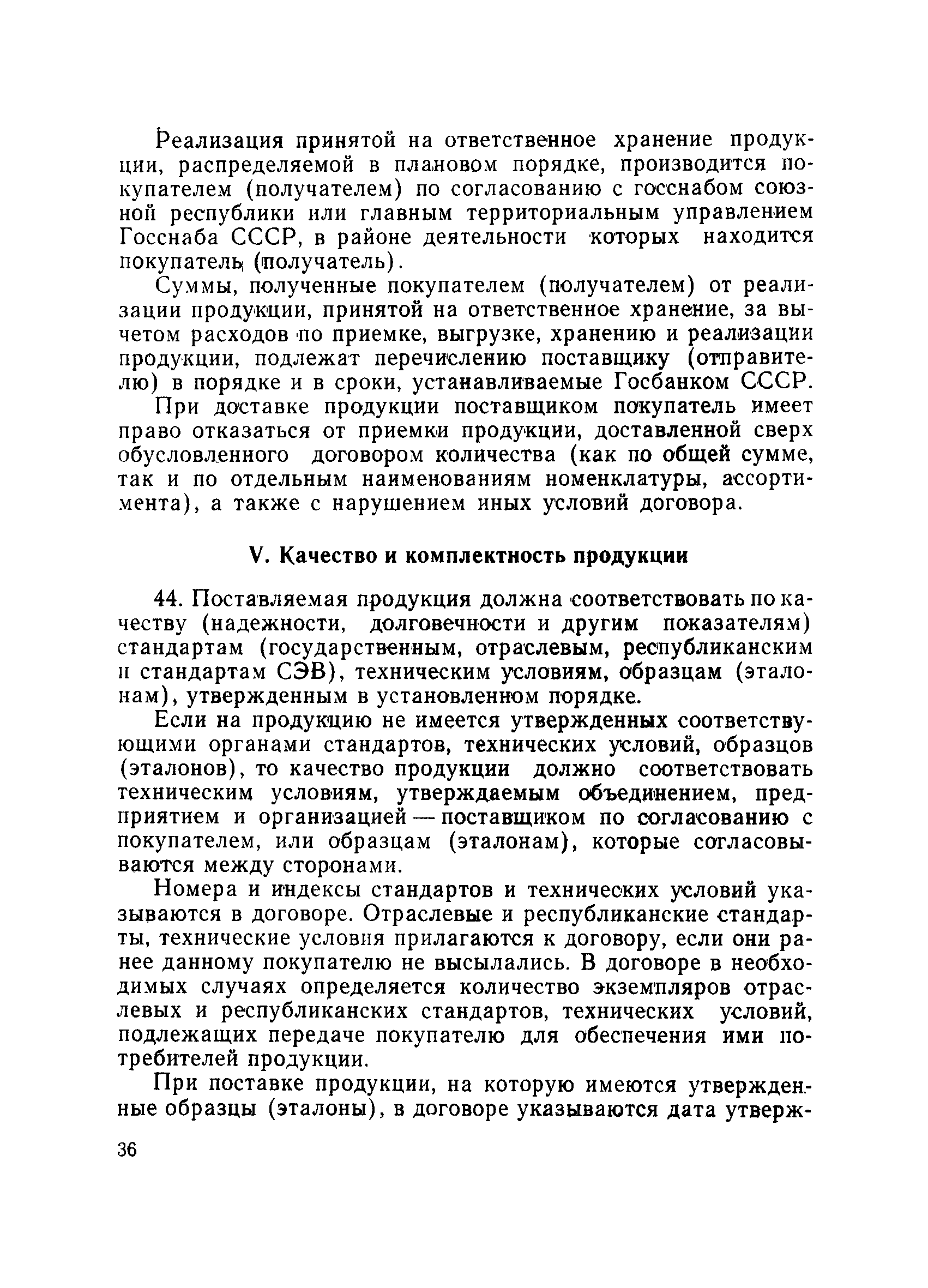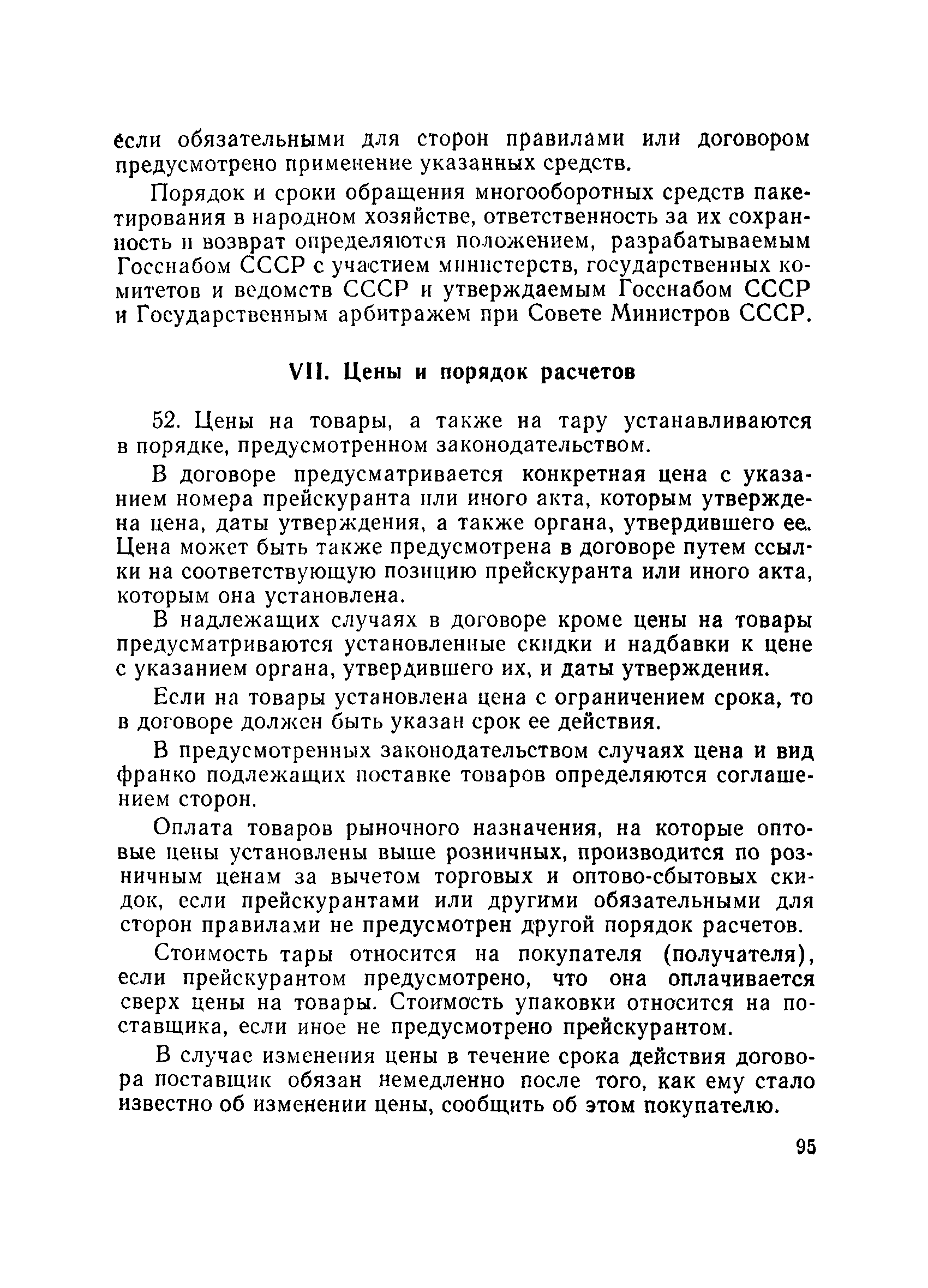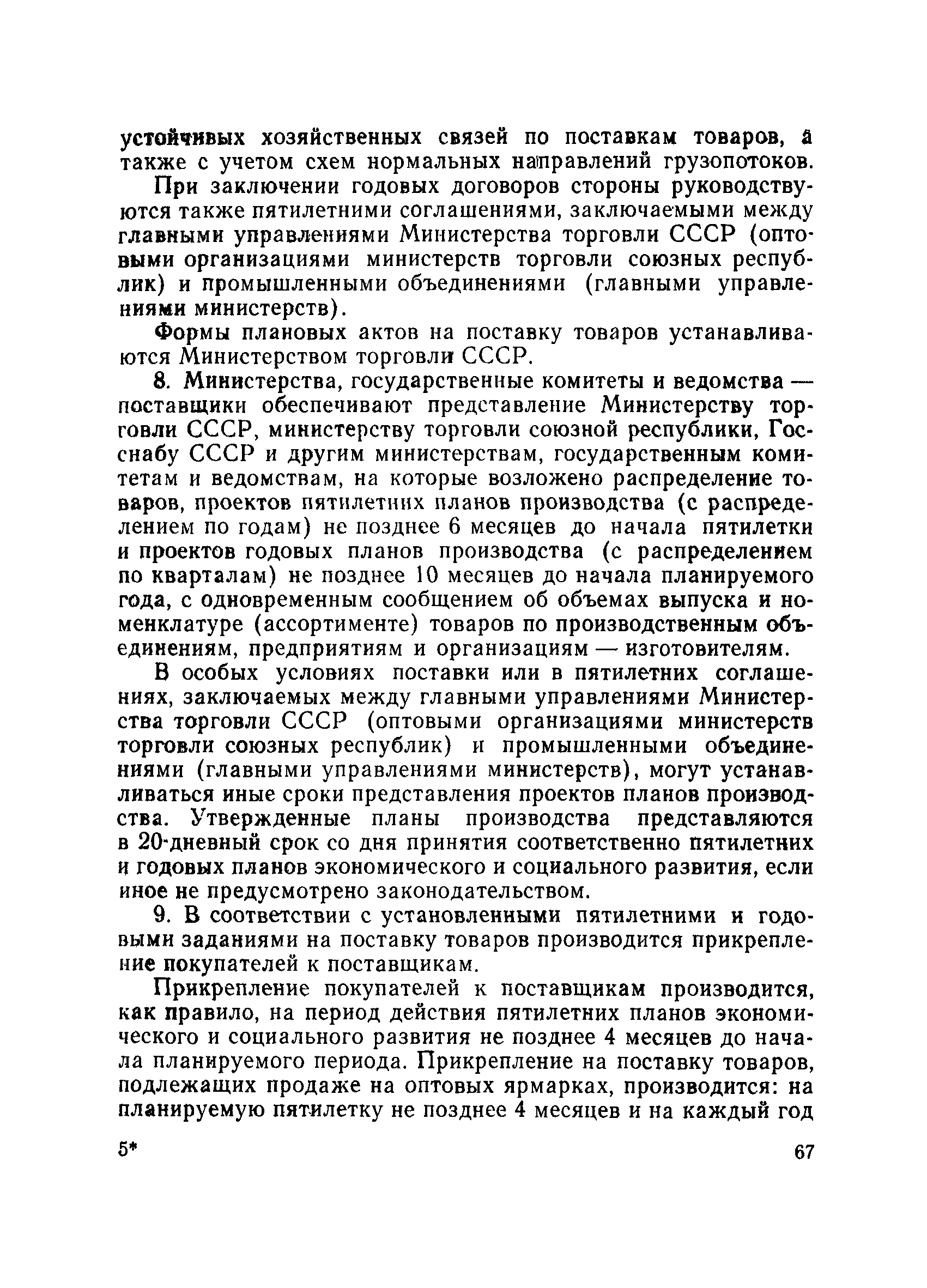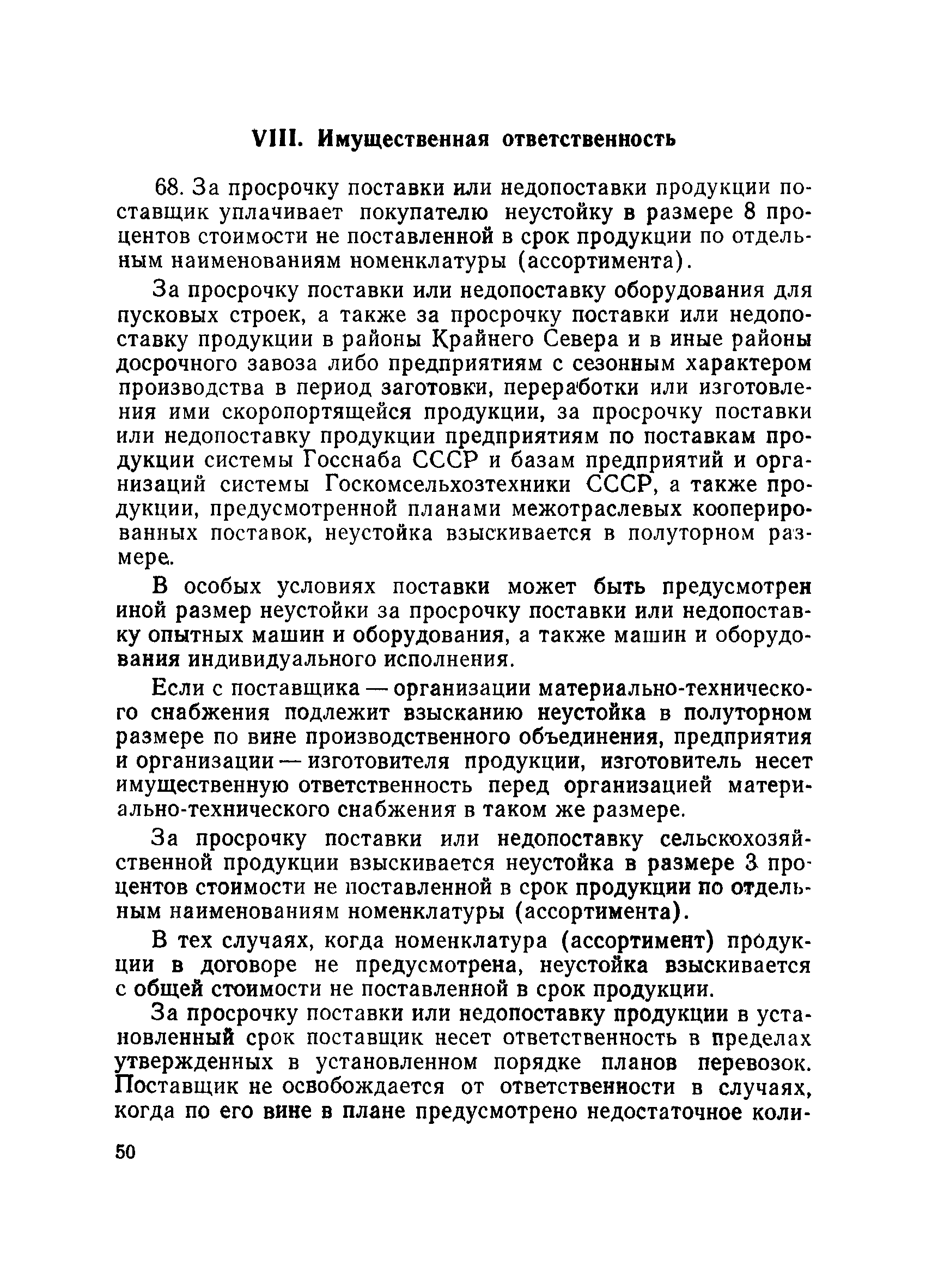 | Оглавление: | Положение о поставках продукции производственно-технического назначения I. Общие положения II. Плановые основания заключения договоров и организация хозяйственных связей III. Порядок и сроки заключения договоров IV. Количество, сроки и порядок поставки продукции V. Качество и комплектность продукции VI. Тара, упаковка и средства пакетирования продукции VII. Цены и порядок расчетов VIII. Имущественная ответственность Положение о поставках товаров народного потребления I. Общие положения II. Плановые основания заключения договоров и организация хозяйственных связей III. Порядок и сроки заключения договоров на поставку товаров IV. Количество, ассортимент, сроки и порядок поставки товаров V. Качество и комплектность товаров VI. Тара, упаковка и средства пакетирования товаров VII. Цены и порядок расчетов VIII. Имущественная ответственность Перечень утративших силу решений Правительства СССР Изменения, которые вносятся в решения Правительства СССР |